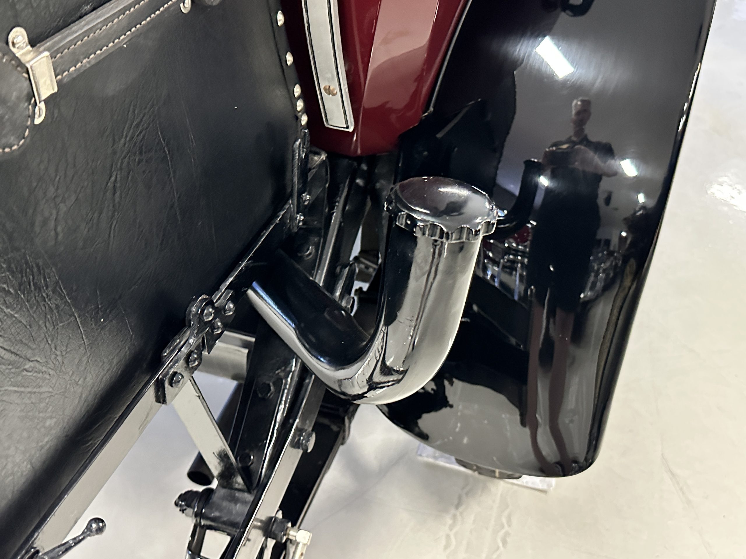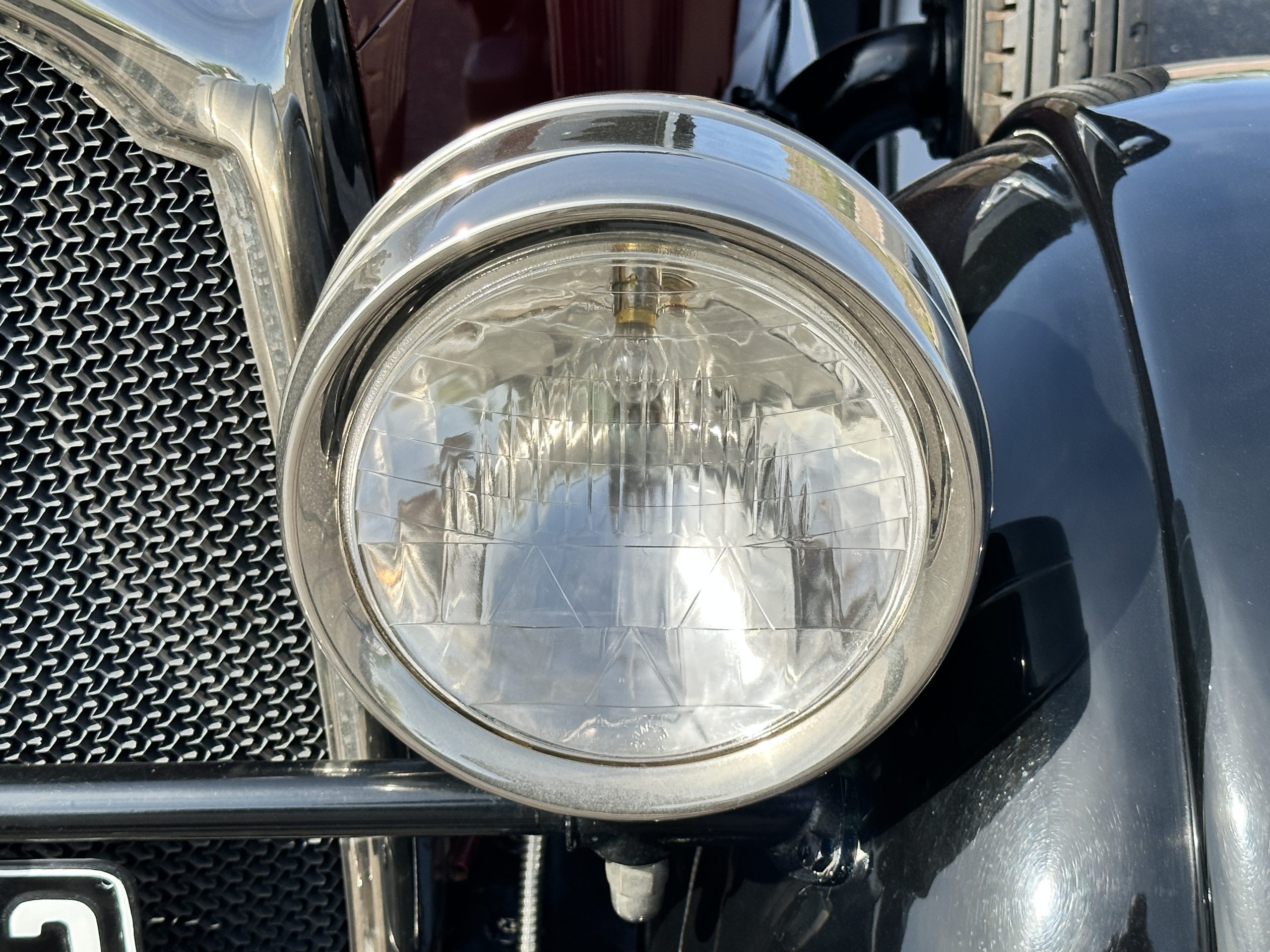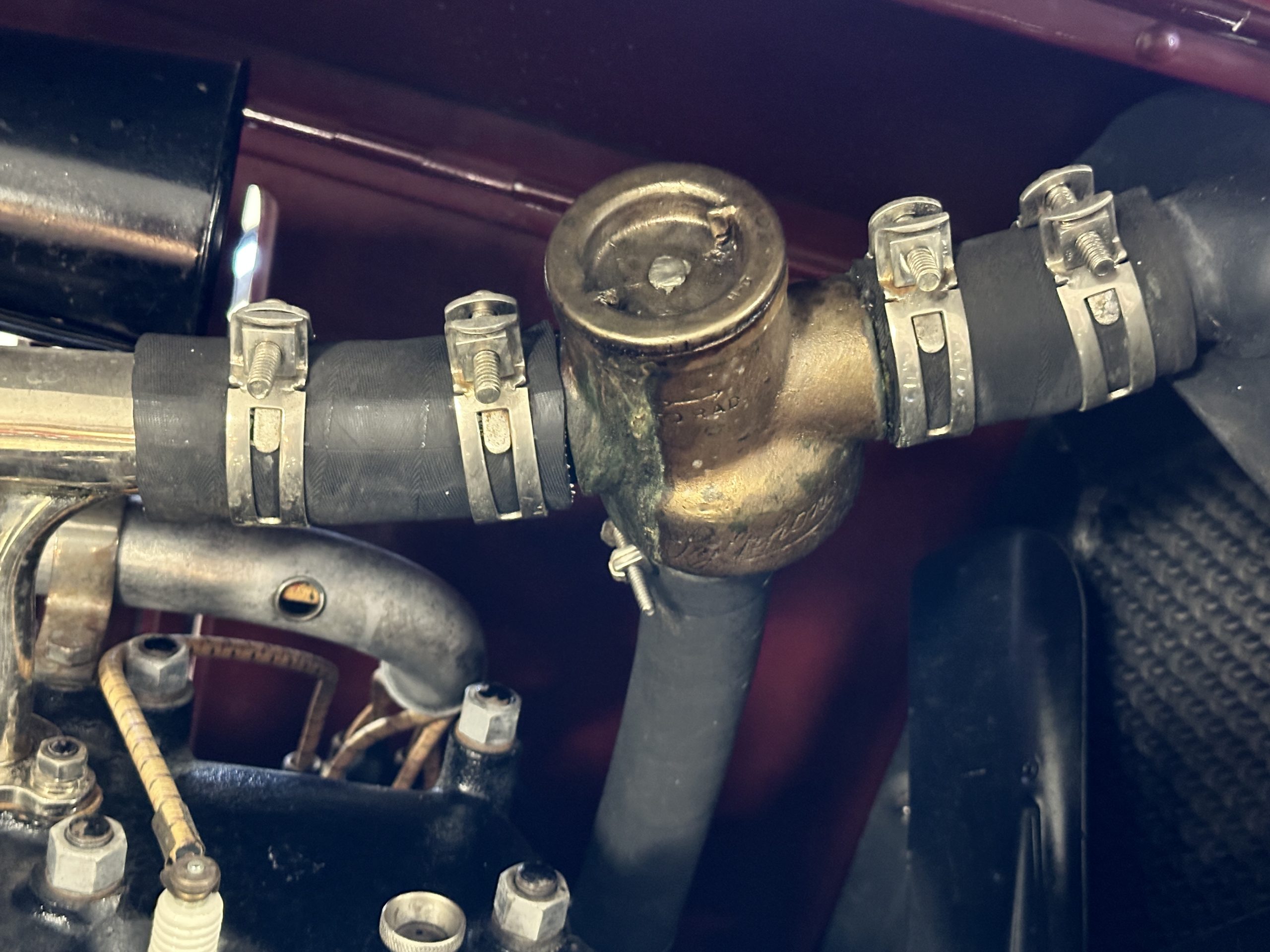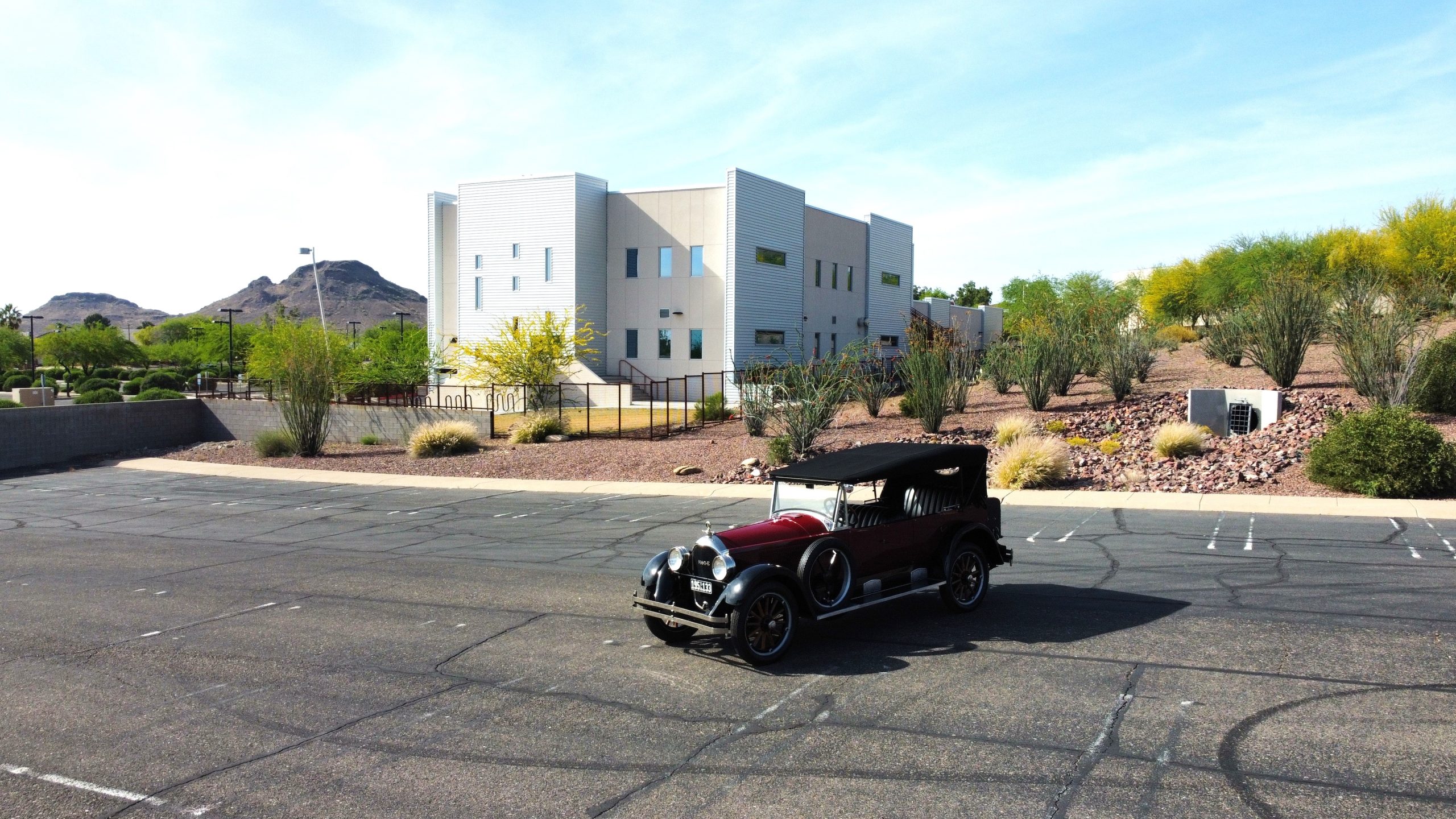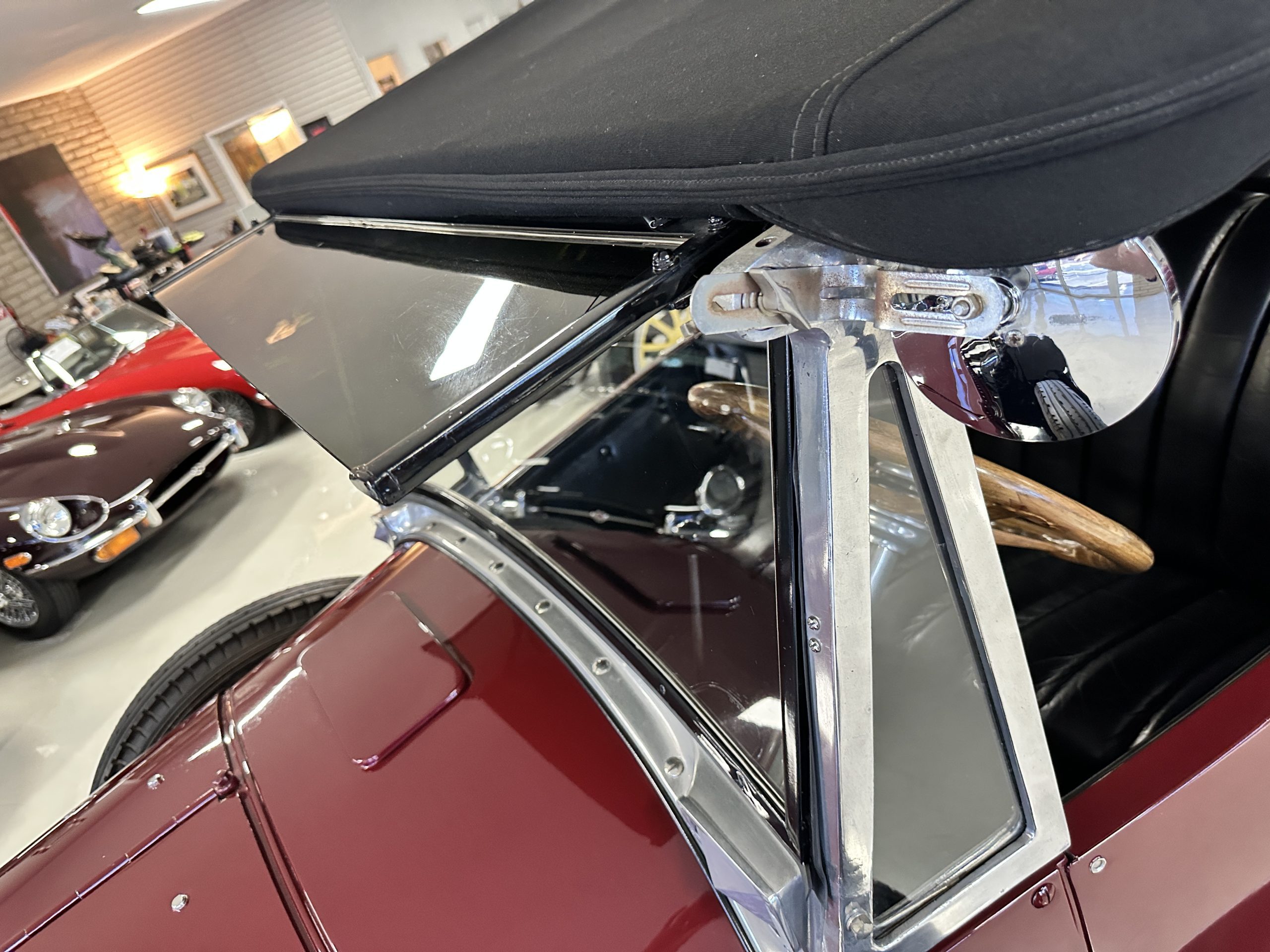 The livery is gorgeous in Burgundy and Black two tone with a black canvas convertible top. The paint is still in very nice show condition consistent with 250 miles added since being restored. The black canvas convertible top is as new and featured a beveled oval rear window. The 24-inch wooden artillery wheels look new. The gorgeous, sculptured chrome grill with its locking Motometer and headlights are in show condition as well. The Paige featured many accessories, such as the double shock absorbing bumpers, cast aluminum windshield frames, dual side mounted spares and a beautifully designed cut curved area for the rear trunk. This Paige has a fully restored trunk that is a showstopper. The tinted external sun visor is a very practical feature that we benefitted from here in the Arizona sun. Overall, this Paige is still quite a show car and is well detailed throughout.