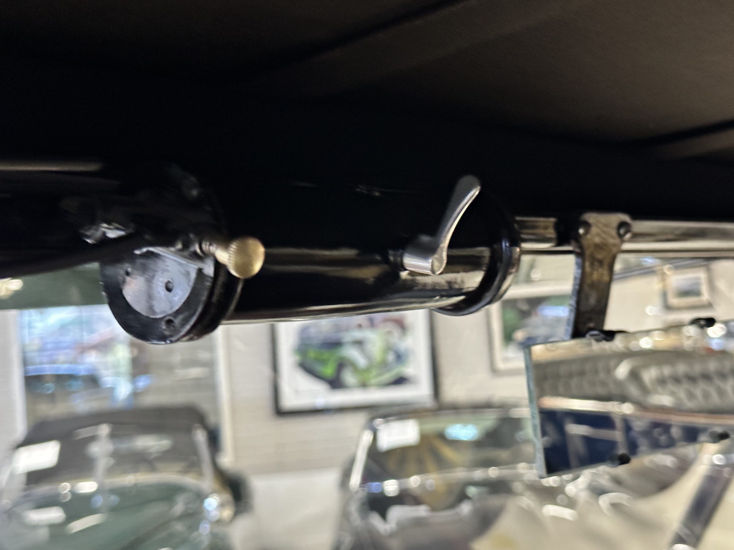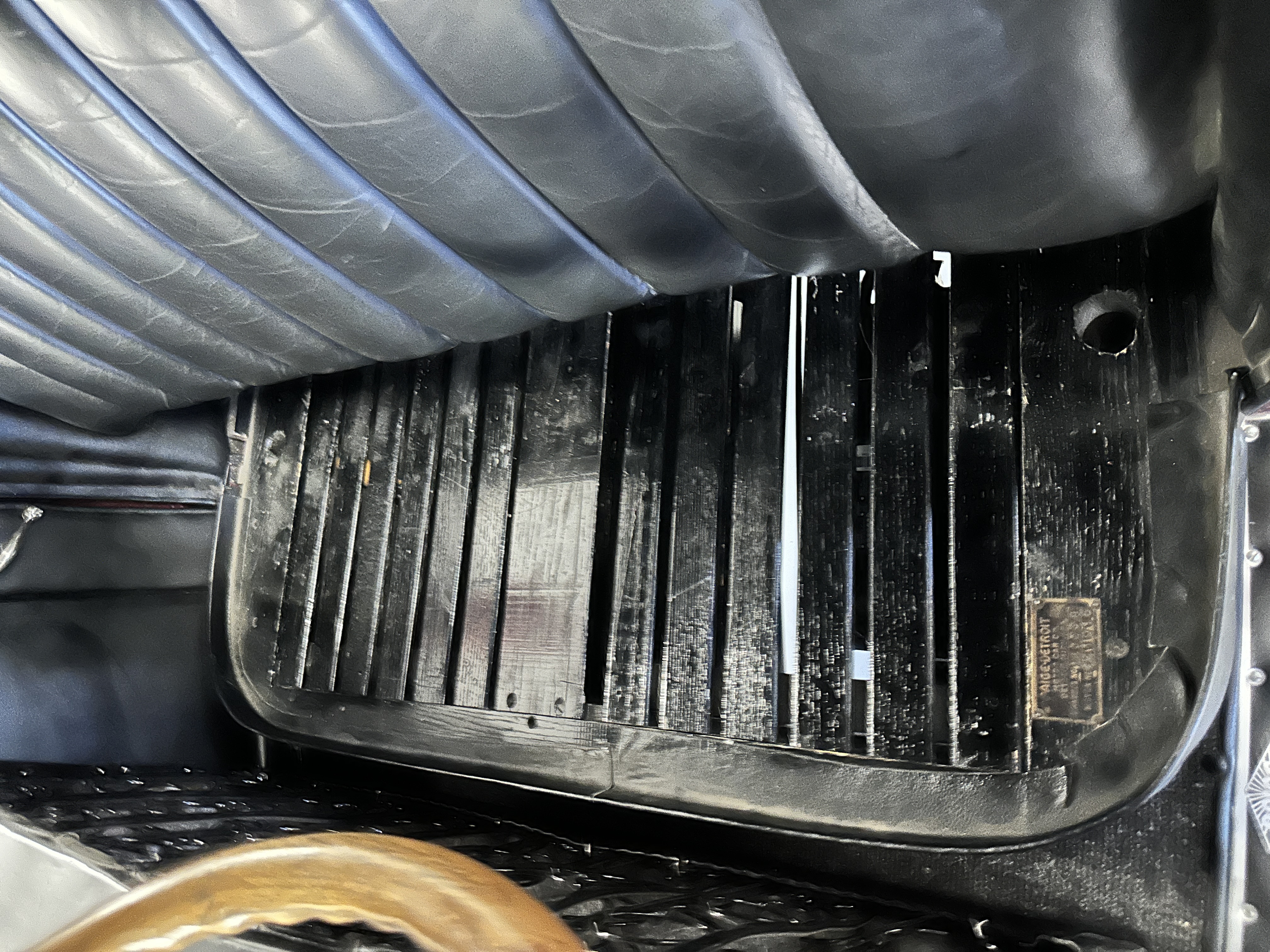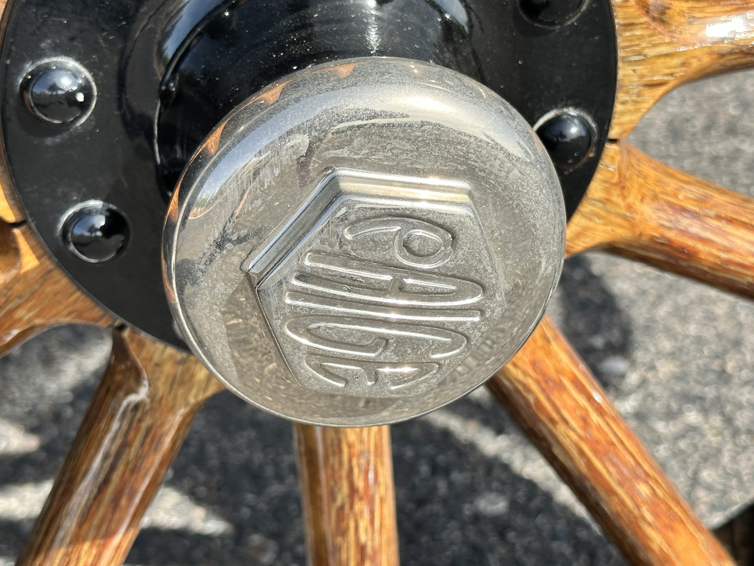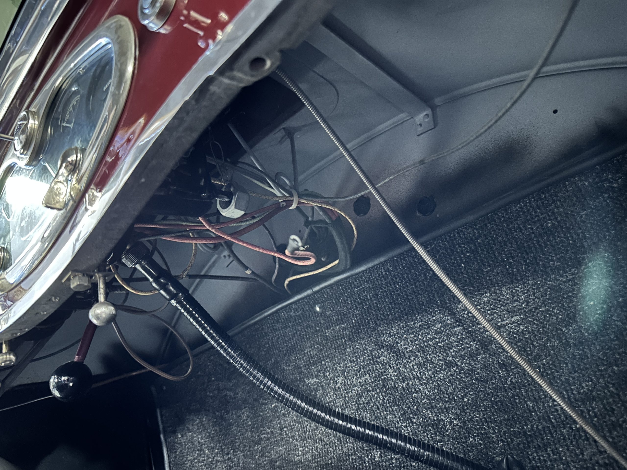 The Black pleated leather interior is excellent and shows as new. The leather is soft and supple. The two jump seats in the rear compartment allow for a total of seven adults to ride in comfort. The dashboard is also cast aluminum that is painted, and all of the instruments are integrated into the center of the dash under one glass unit, an advanced design. The steering wheel is the correct all wood wheel that feels nice in your hands. The dark gray wool carpeting is also as new and looks terrific. All of the lighting and instruments function well.