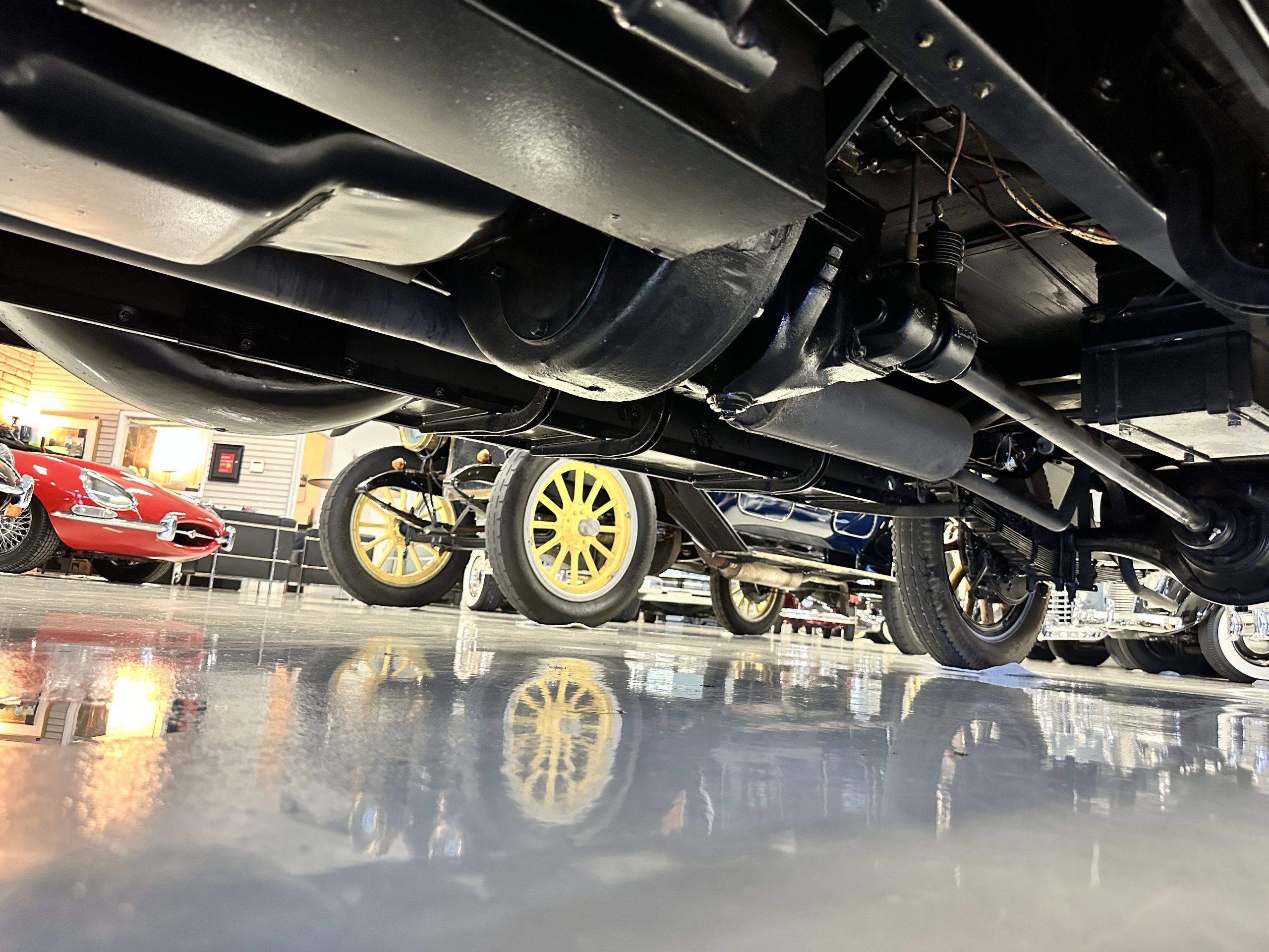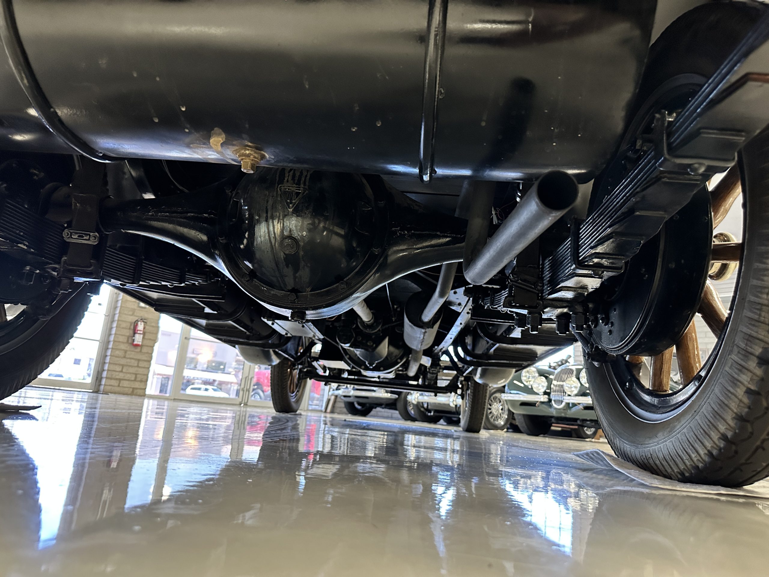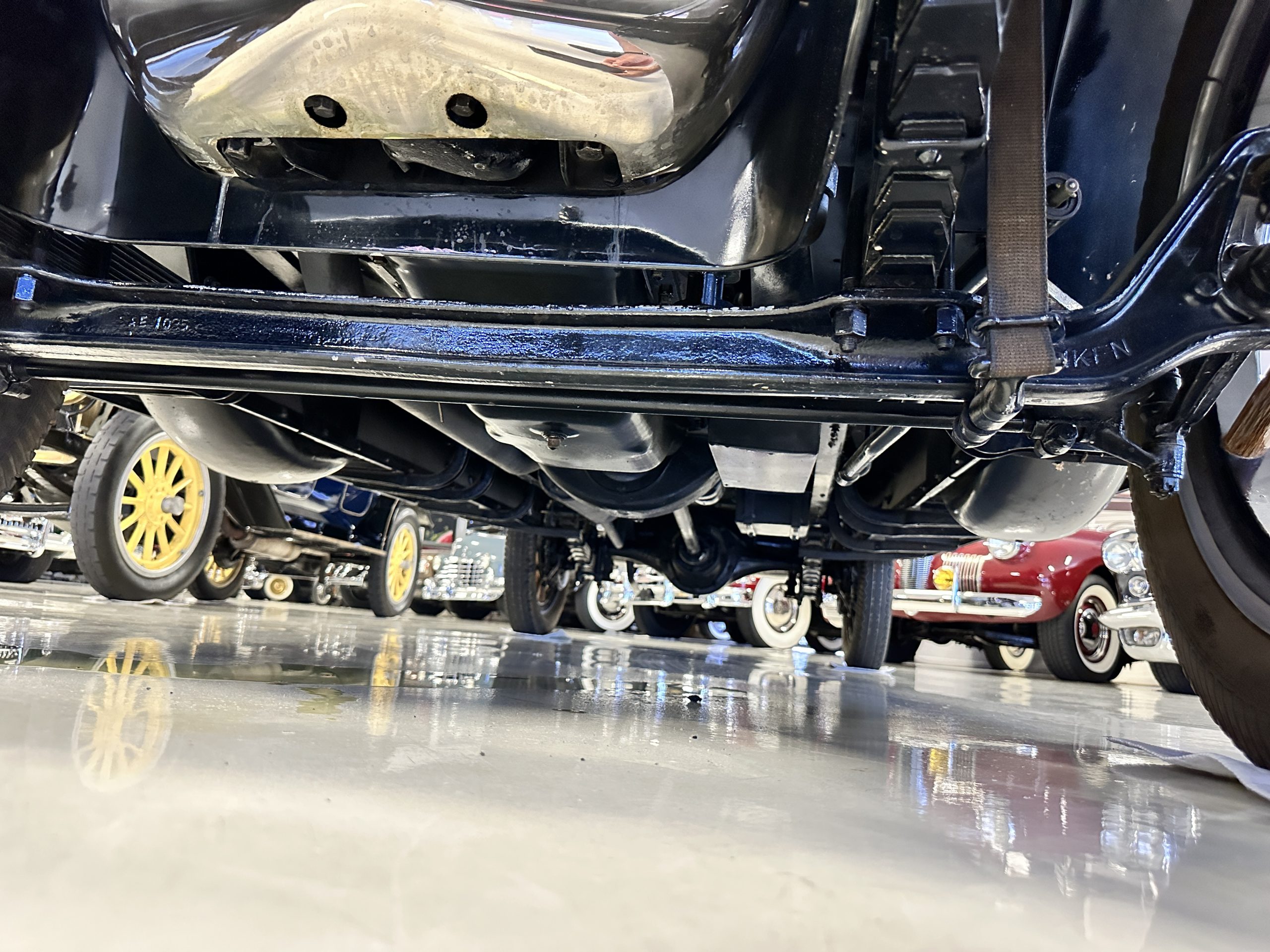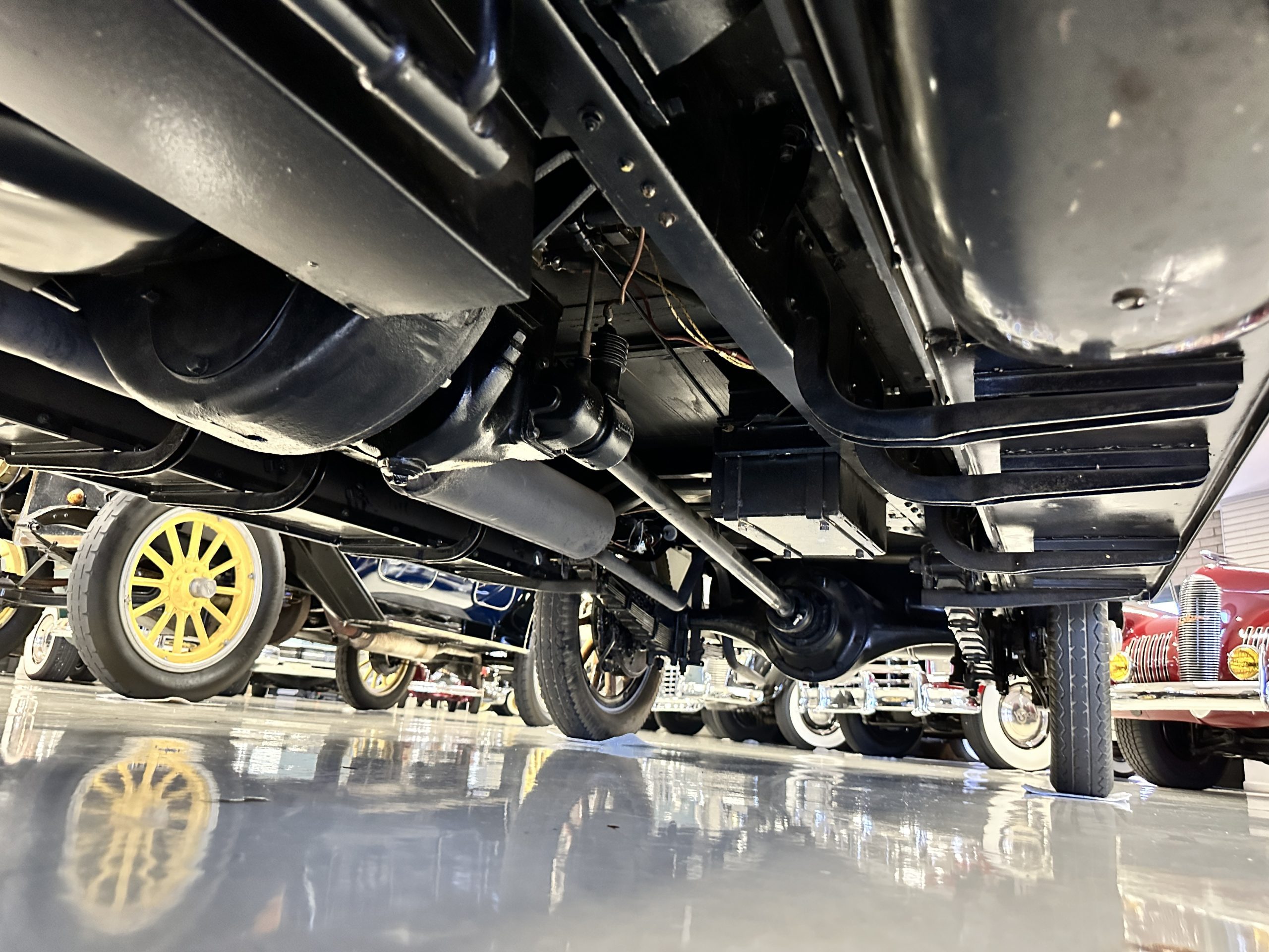 The engine compartment is well detailed and is easily readied for show. Paige was known for setting world speed records and building high performance cars. The matching numbers 331 cid six-cylinder L-head design engine used for the Model 6-70 has an aluminum crankcase and three-speed transmission that shifts easily and smoothly on its 131-inch wheelbase. Paige advertised that there was so much low-end torque that it would allow you to travel from 2mph to 60 mph in top gear. This Paige cruises comfortably at 50 to 60 mph. As with the rest of this Paige, this chassis, suspension and drivetrain have all been completely restored and are in outstanding condition. A result of the 250 miles since restoration, this Paige should be thoroughly lubricated and readied before touring, as it has been shown and held in collections rather than toured in.