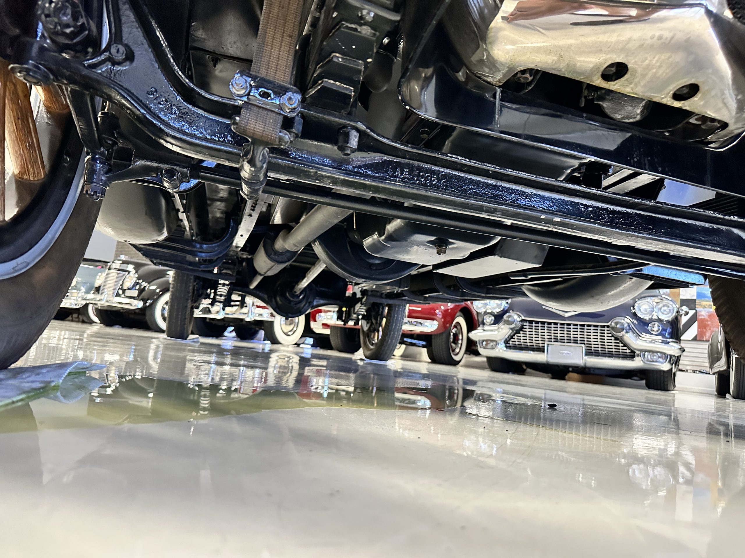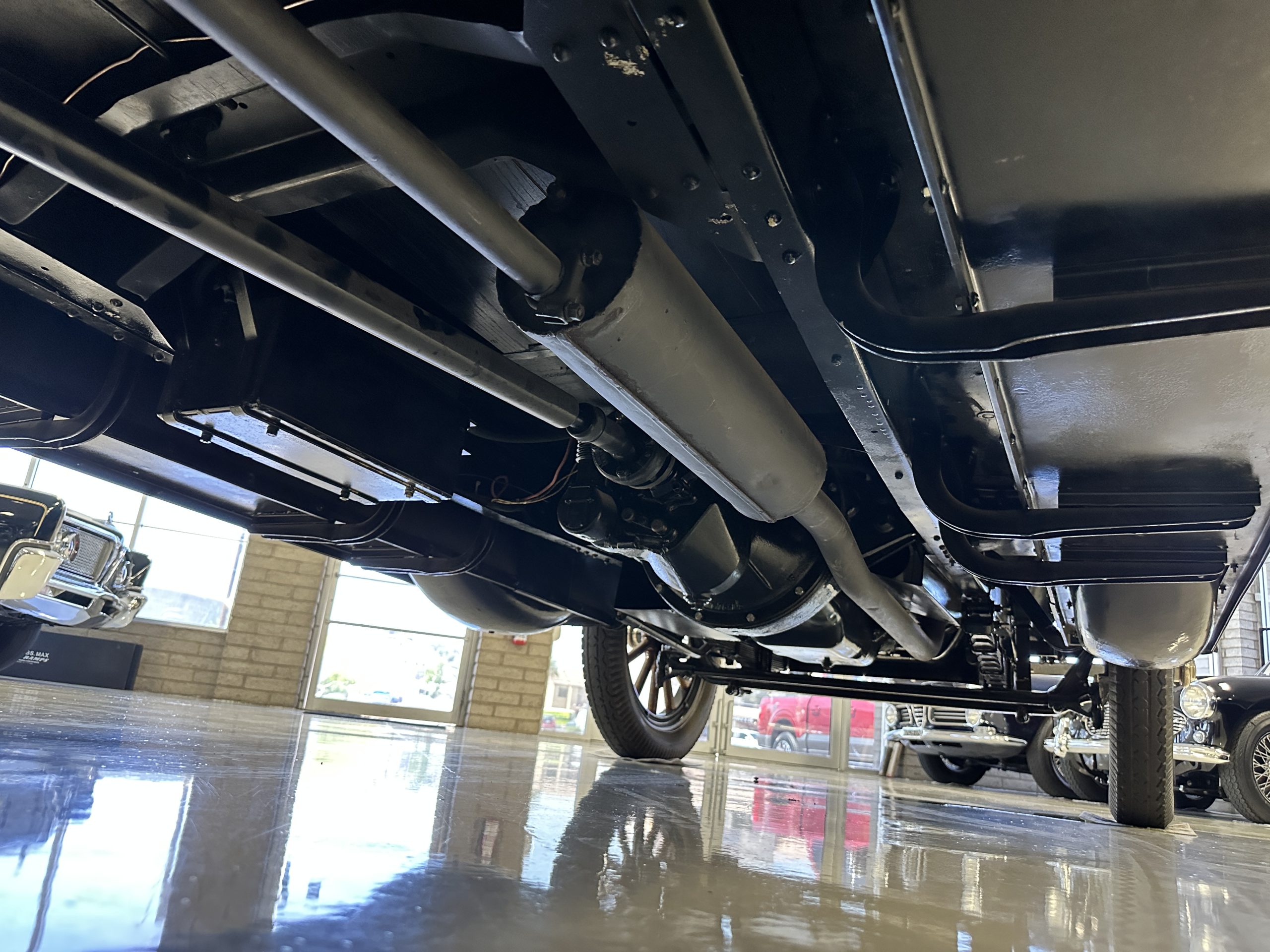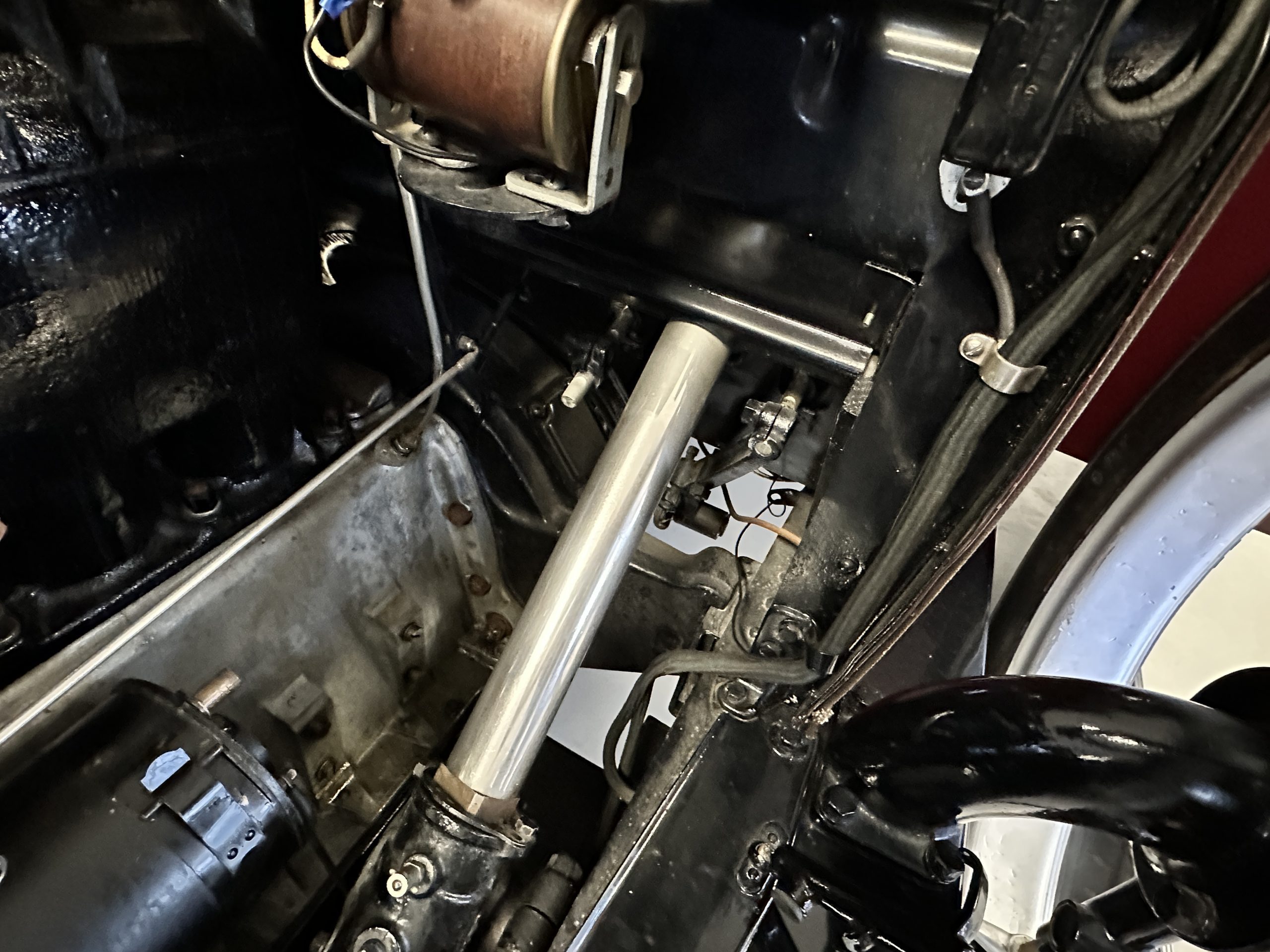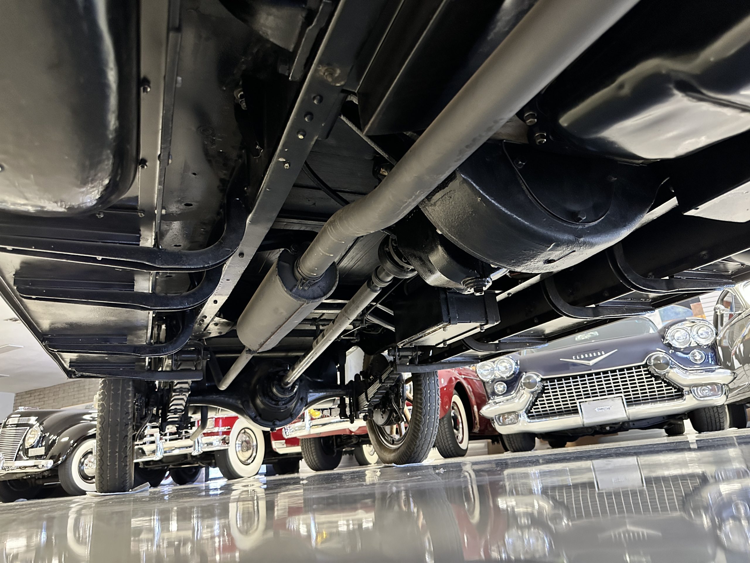 The engine compartment is well detailed and is easily readied for show. Paige was known for setting world speed records and building high performance cars. The matching numbers 331 cid six-cylinder L-head design engine used for the Model 6-70 has an aluminum crankcase and three-speed transmission that shifts easily and smoothly on its 131-inch wheelbase. Paige advertised that there was so much low-end torque that it would allow you to travel from 2mph to 60 mph in top gear. This Paige cruises comfortably at 50 to 60 mph. As with the rest of this Paige, this chassis, suspension and drivetrain have all been completely restored and are in outstanding condition. A result of the 250 miles since restoration, this Paige should be thoroughly lubricated and readied before touring, as it has been shown and held in collections rather than toured in.
