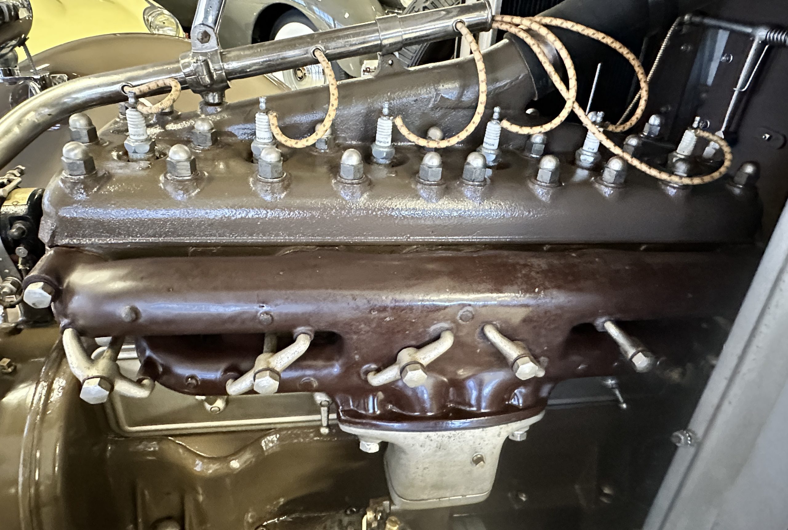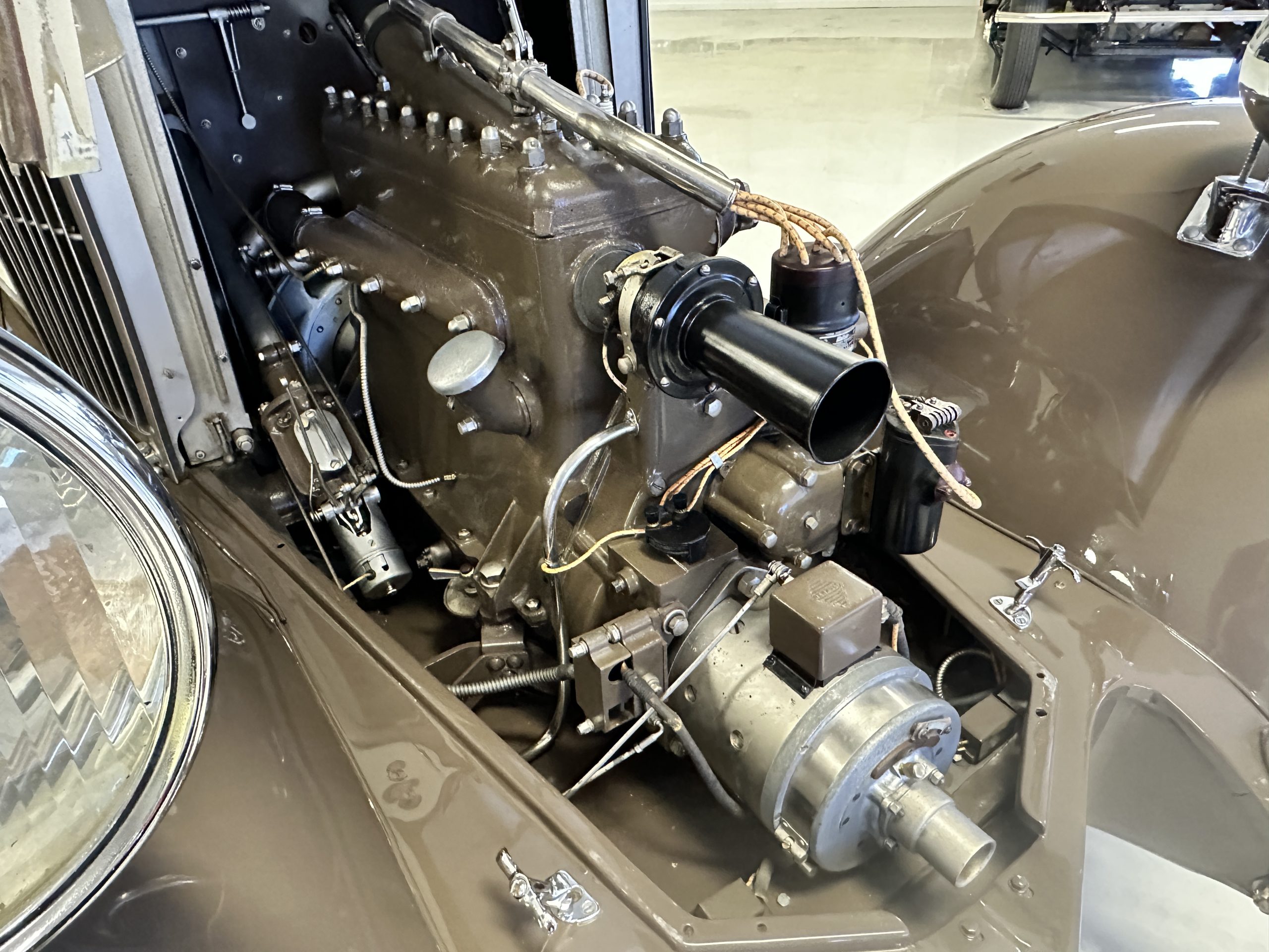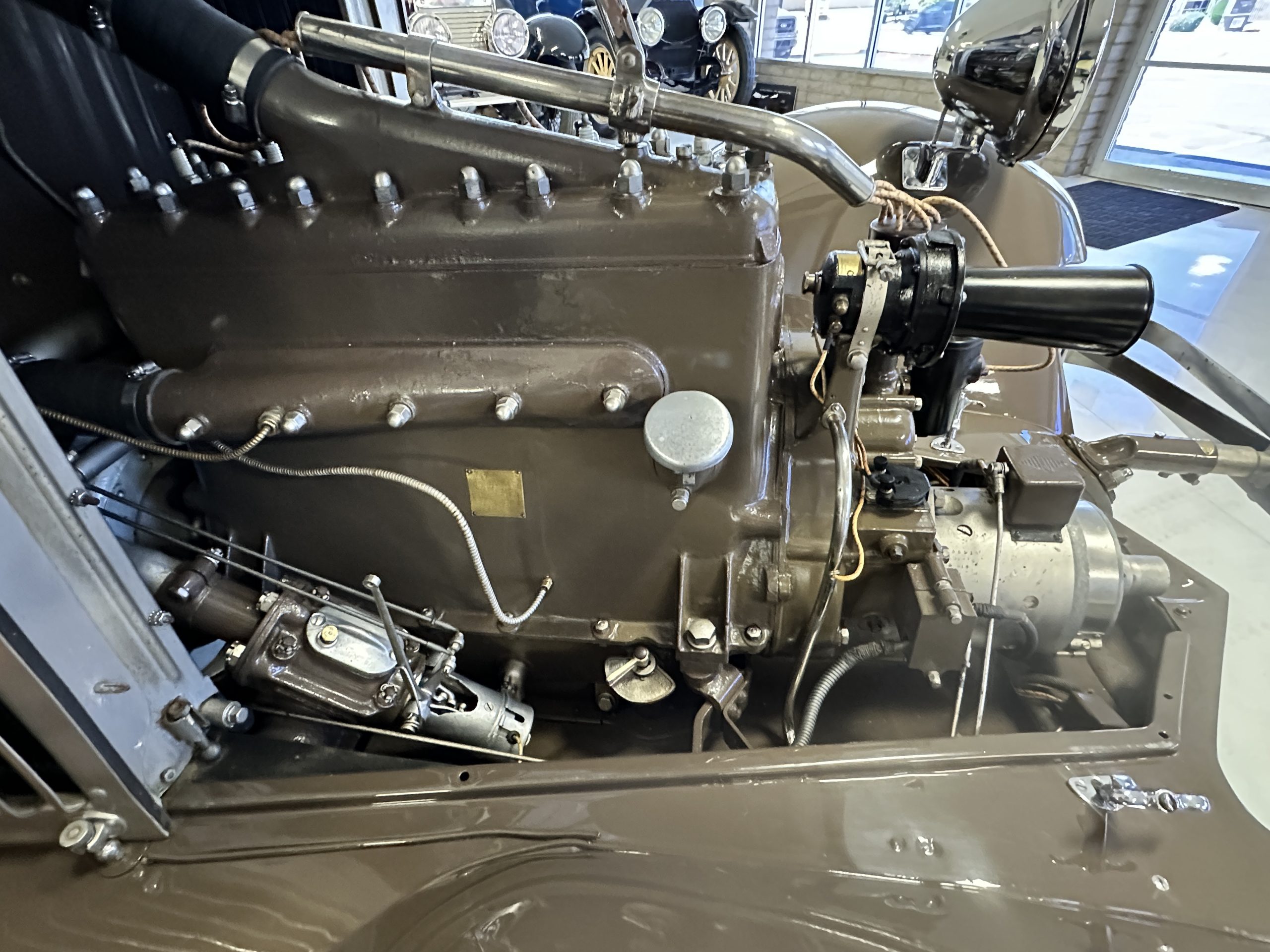 The 3,181cc L-head inline-six features a Detroit Lubricator updraft carburetor, Mallory coil and distributor ignition, an electric starter, a dynamo, and a radiator positioned behind the engine. The car has undergone a mechanical recommissioning by Restorations by York in Ridgefield, Connecticut, in 2021, while fluid changes, lubrication service, and electrical repairs were performed in January 2024.