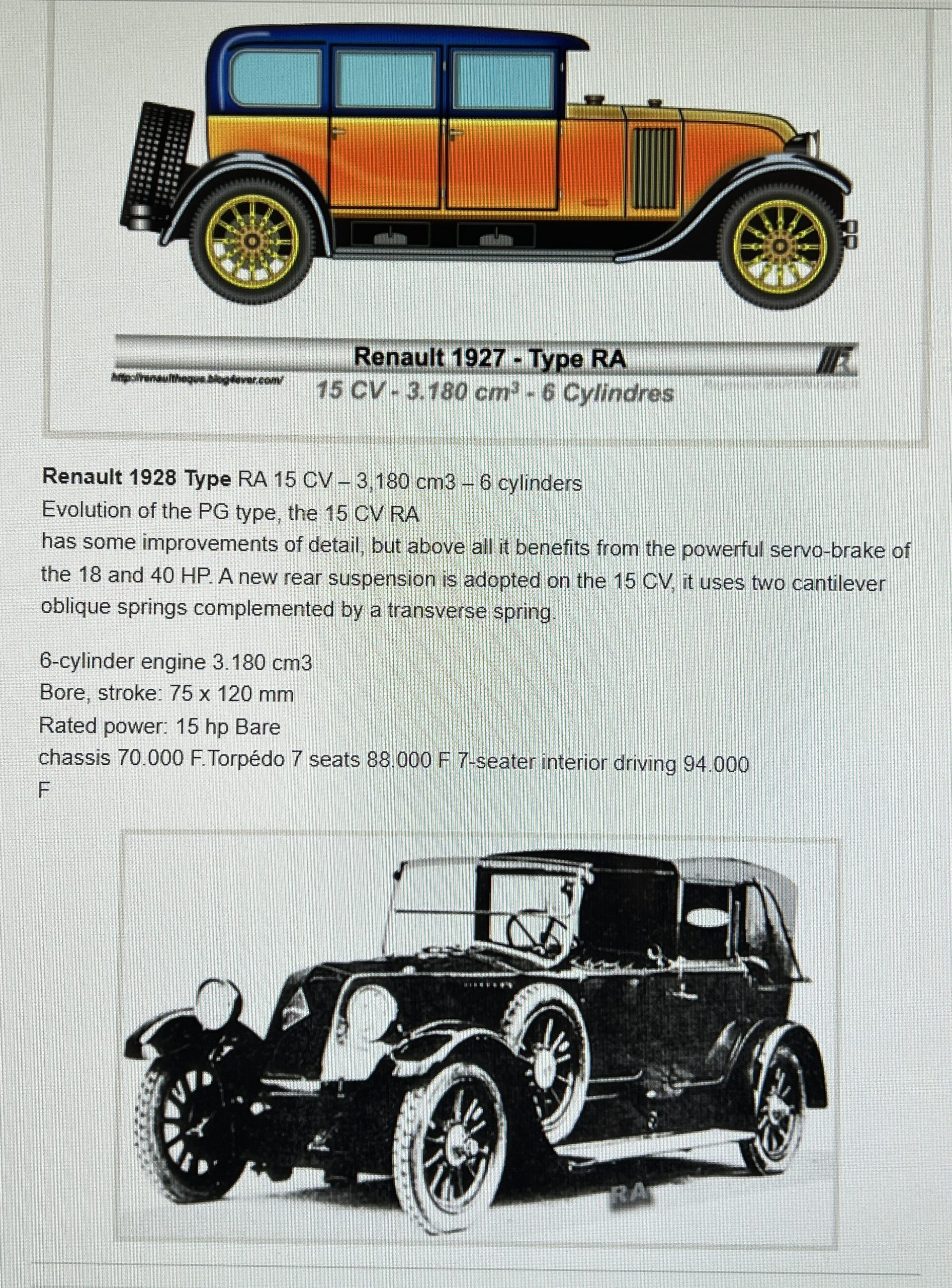 The Type RA was introduced in September 1926 as a longer-wheelbase and more-luxuriously appointed variant of the 15 CV Type PG, which was replaced by the Vivasix line the following year. While sharing the PG’s 15-taxable-horsepower engine, the RA benefited from the massive chassis, brake servo, cantilever-spring rear suspension, and four-speed transmission utilized on the top-of-the-line 40 CV. The Type RA was produced through 1928 when it was superseded by the Vivastella.
