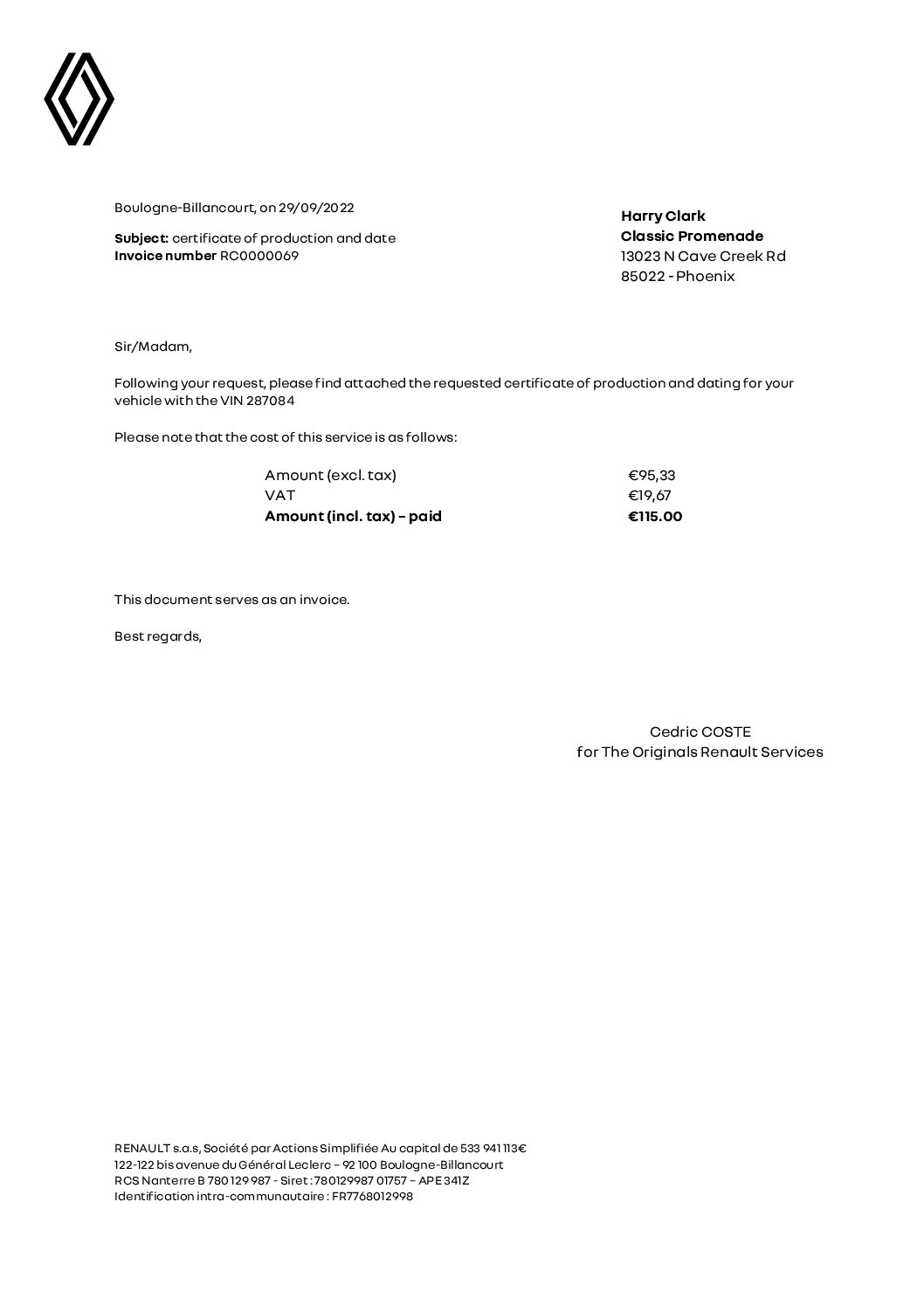 For more information and details, call, text or email Harry Clark at +1.623.404.9042 or sales@classicpromenade.com. See our 140+ photos and three videos on our website to learn more. This Renault is available for viewing at our Phoenix showroom. We are pleased to offer FaceTime or WhatsApp live video inspections and we help coordinate shipping worldwide. We also have financing partners if you are interested in financing.