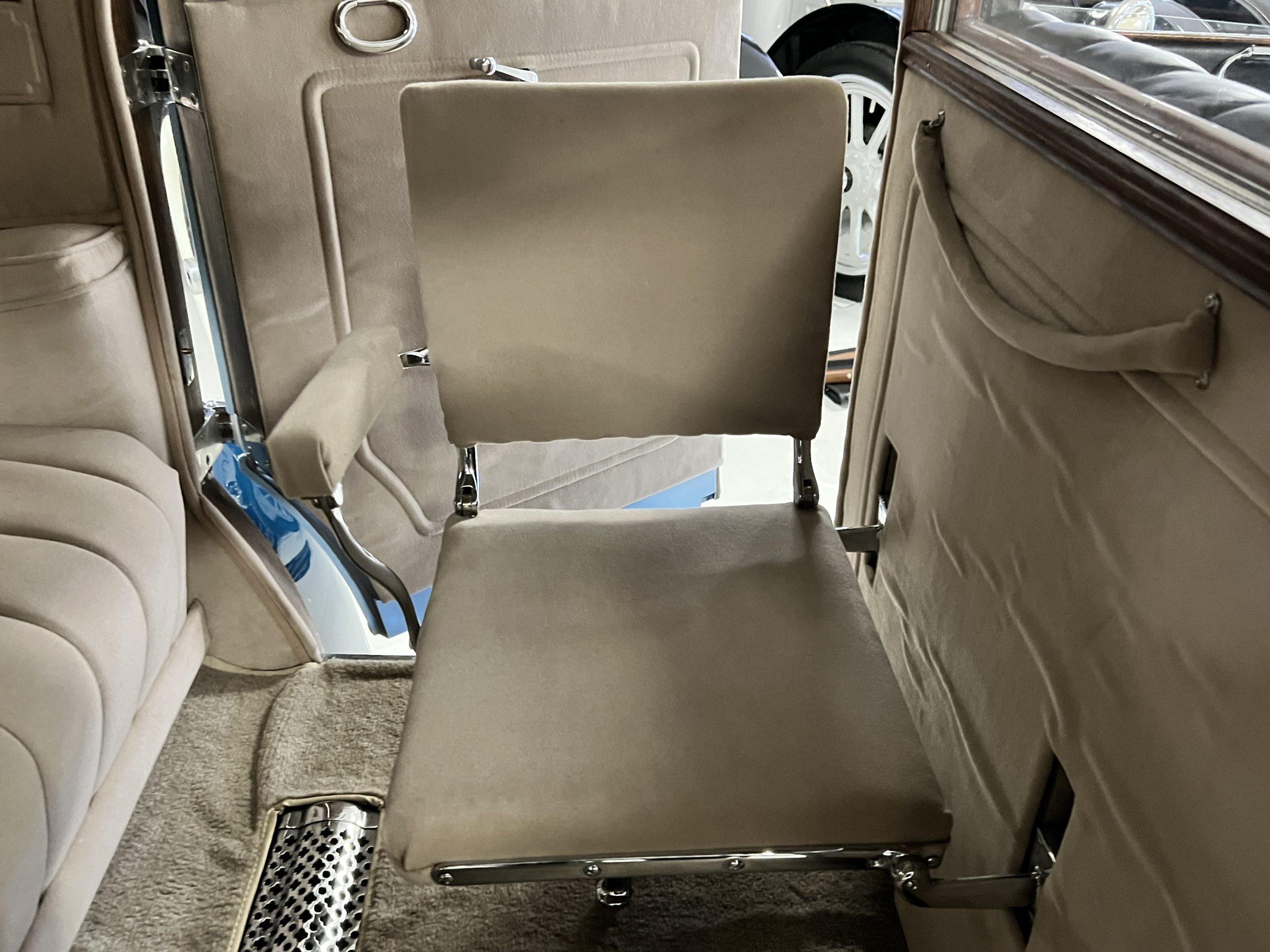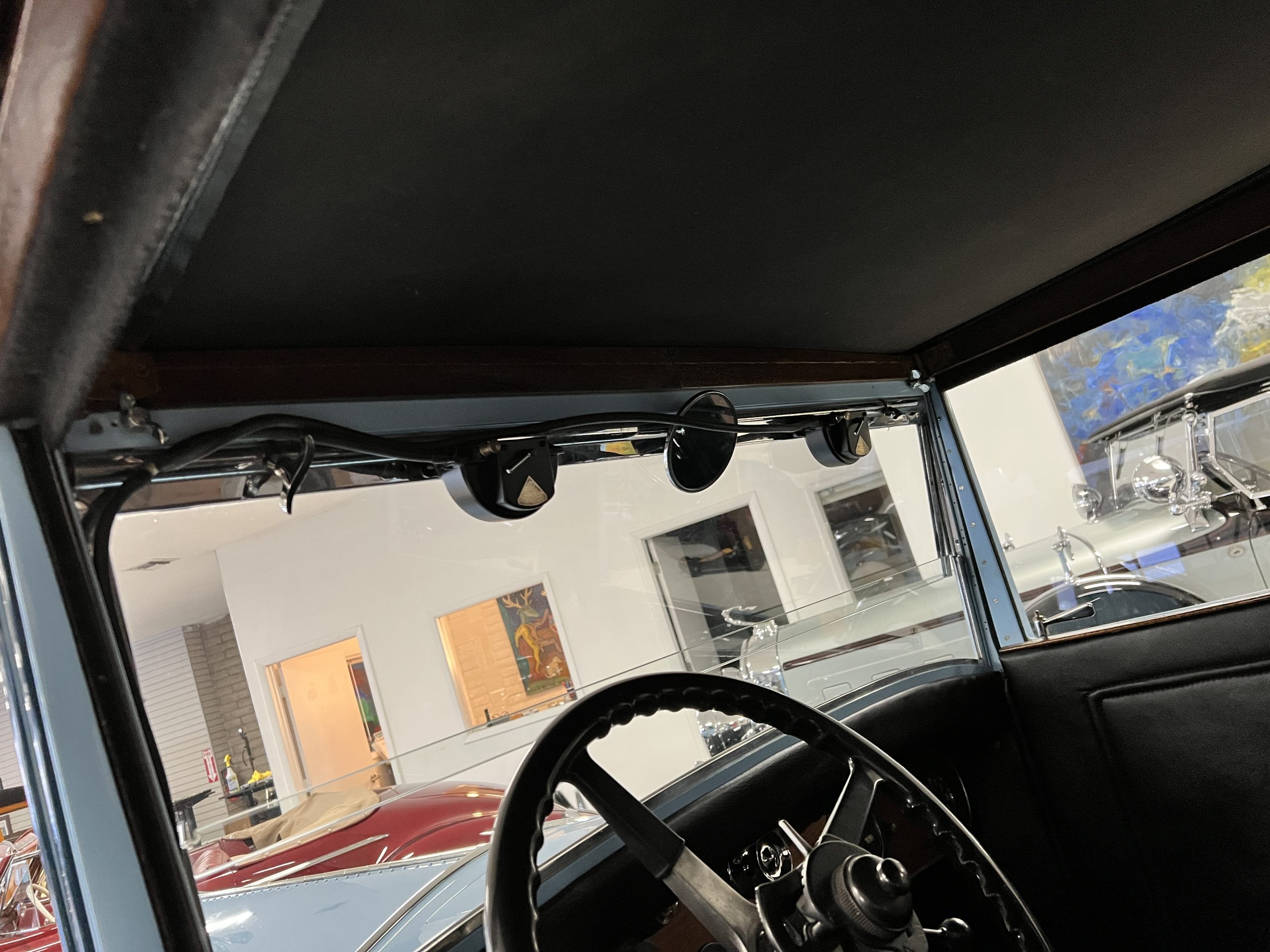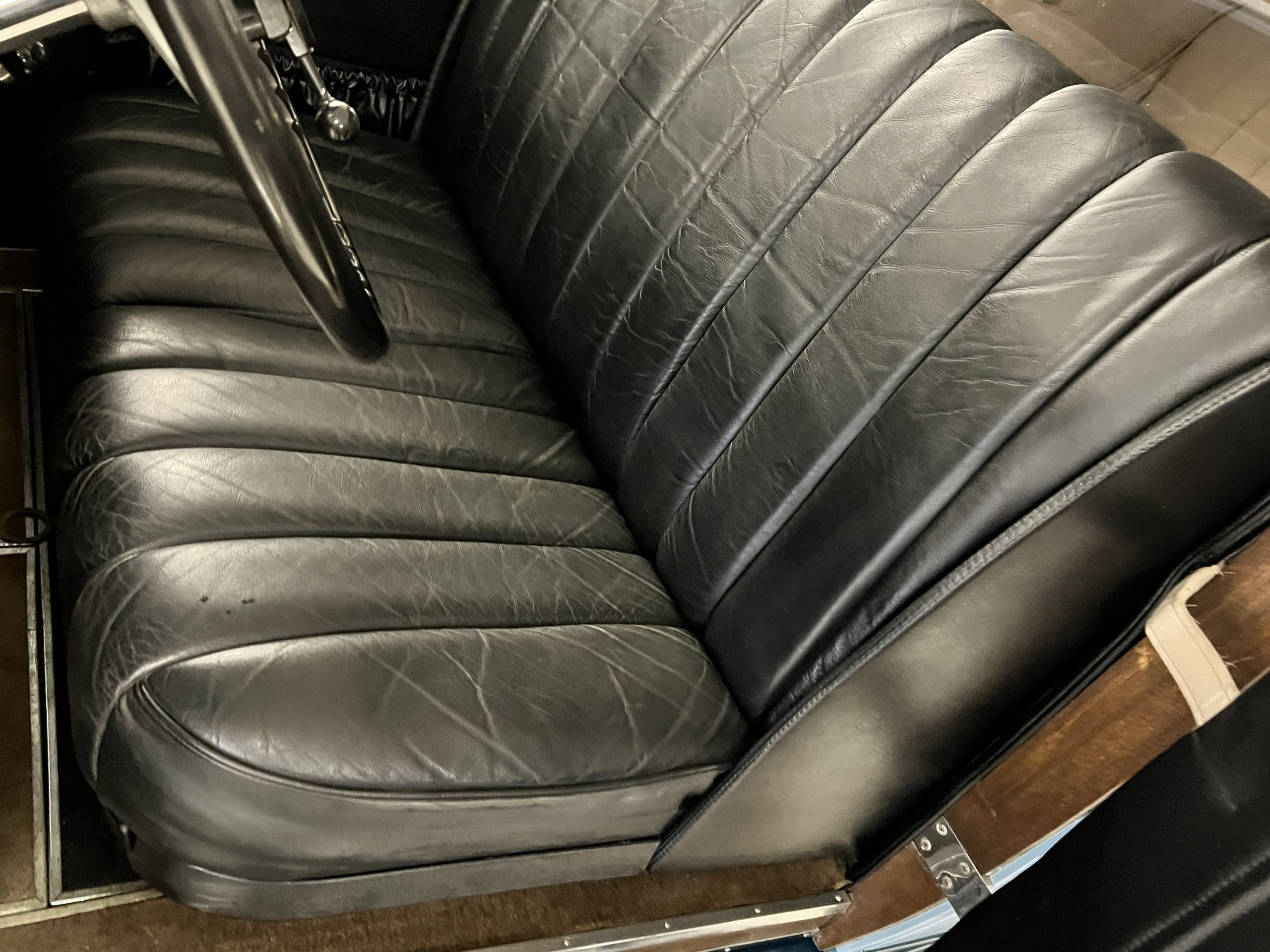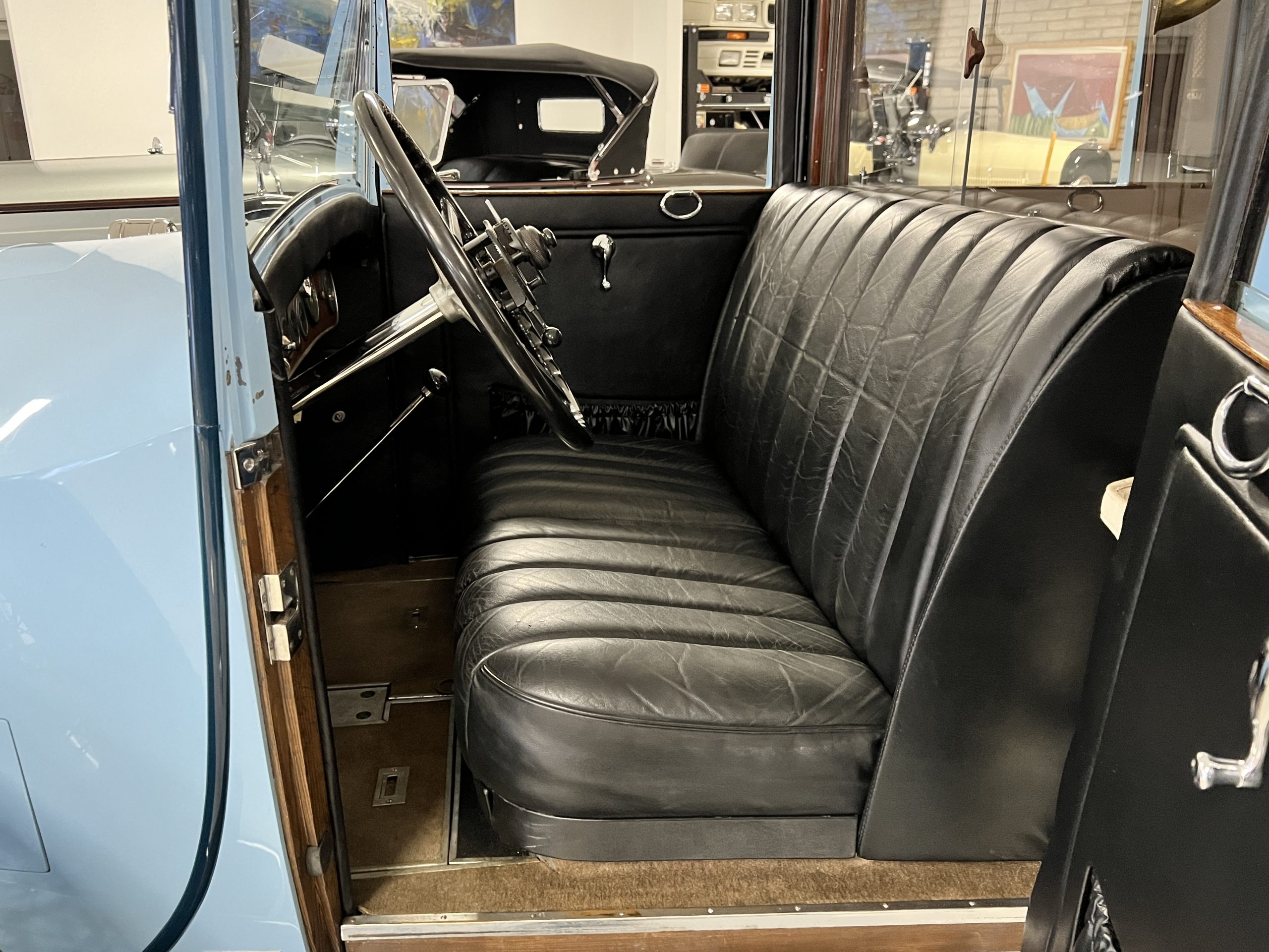 S195FR was an early Springfield Phantom I with the smaller grille, manual vertical radiator shutters, drum headlights, dual side mounts and the attractive rounded chromed pipe bumpers. Being a later Springfield Phantom, S195FR was one of the first Phantoms with chrome rather than nickel and is left hand drive. In total, 1,241 Springfield Phantom I’s were produced. The body and fenders are believed to be original to the car, but it is said that in the mid 1930’s it was sent to Rollston of New York to have the original fenders “skirted” to give it a more updated appearance.