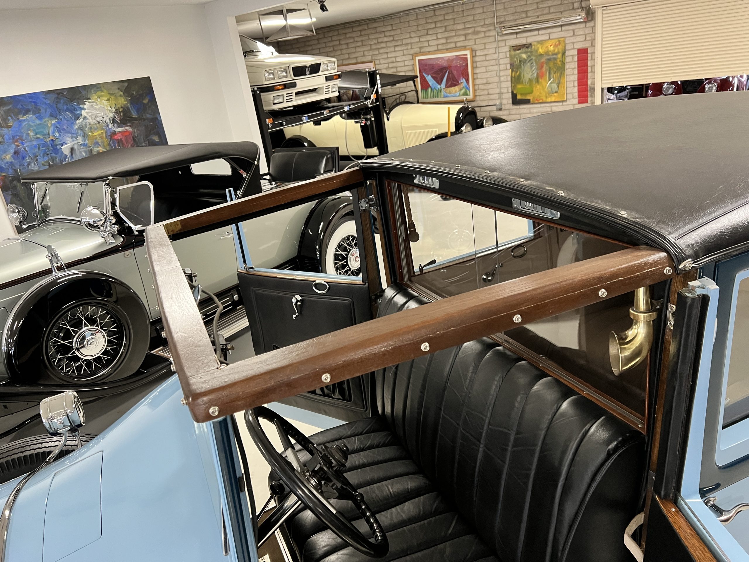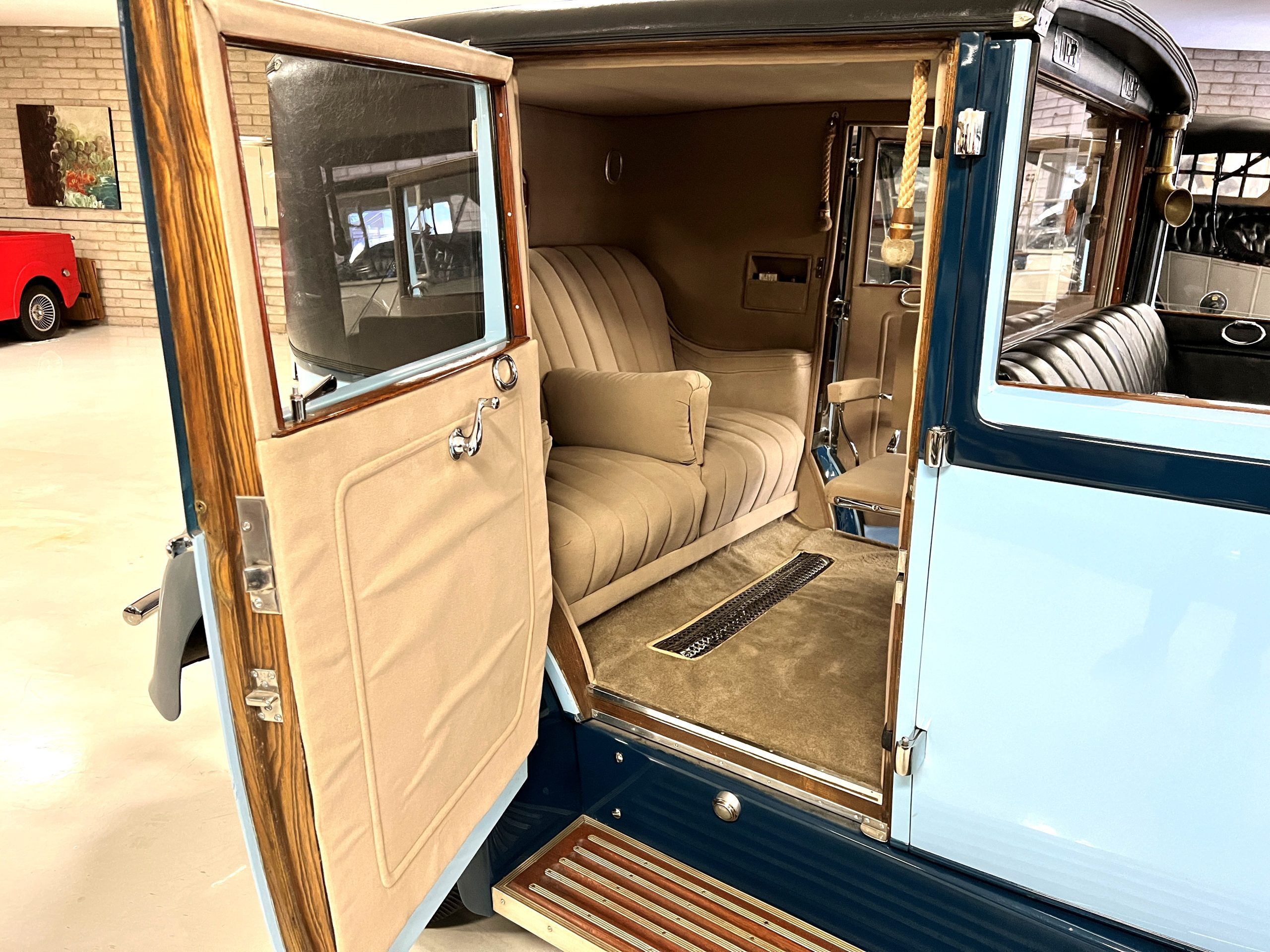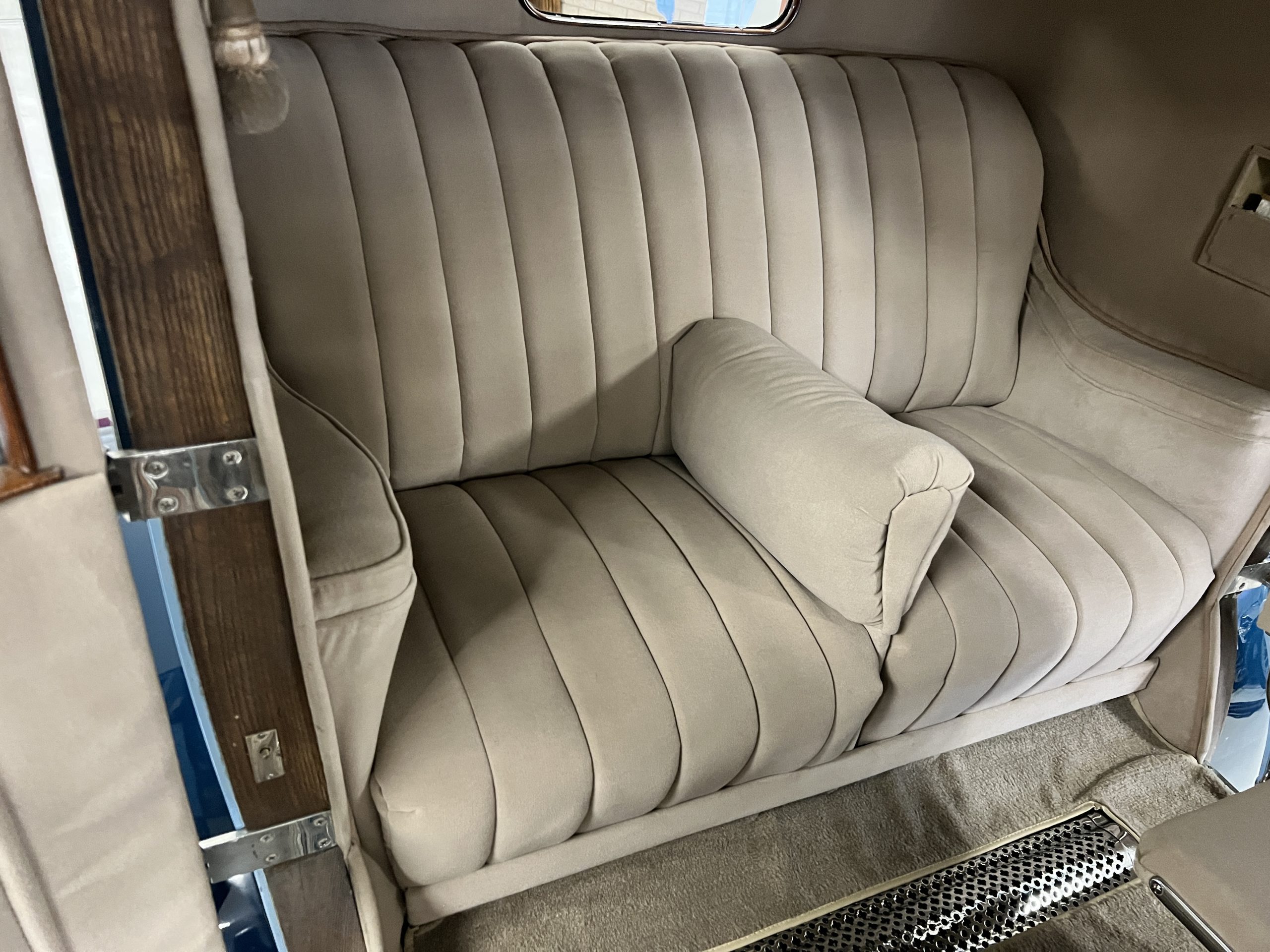 S195FR was an early Springfield Phantom I with the smaller grille, manual vertical radiator shutters, drum headlights, dual side mounts and the attractive rounded chromed pipe bumpers. Being a later Springfield Phantom, S195FR was one of the first Phantoms with chrome rather than nickel and is left hand drive. In total, 1,241 Springfield Phantom I’s were produced. The body and fenders are believed to be original to the car, but it is said that in the mid 1930’s it was sent to Rollston of New York to have the original fenders “skirted” to give it a more updated appearance.
