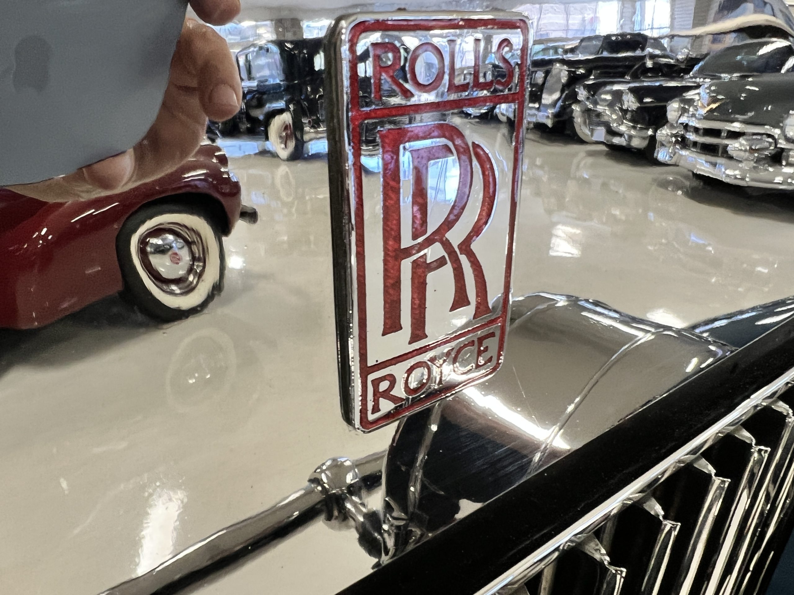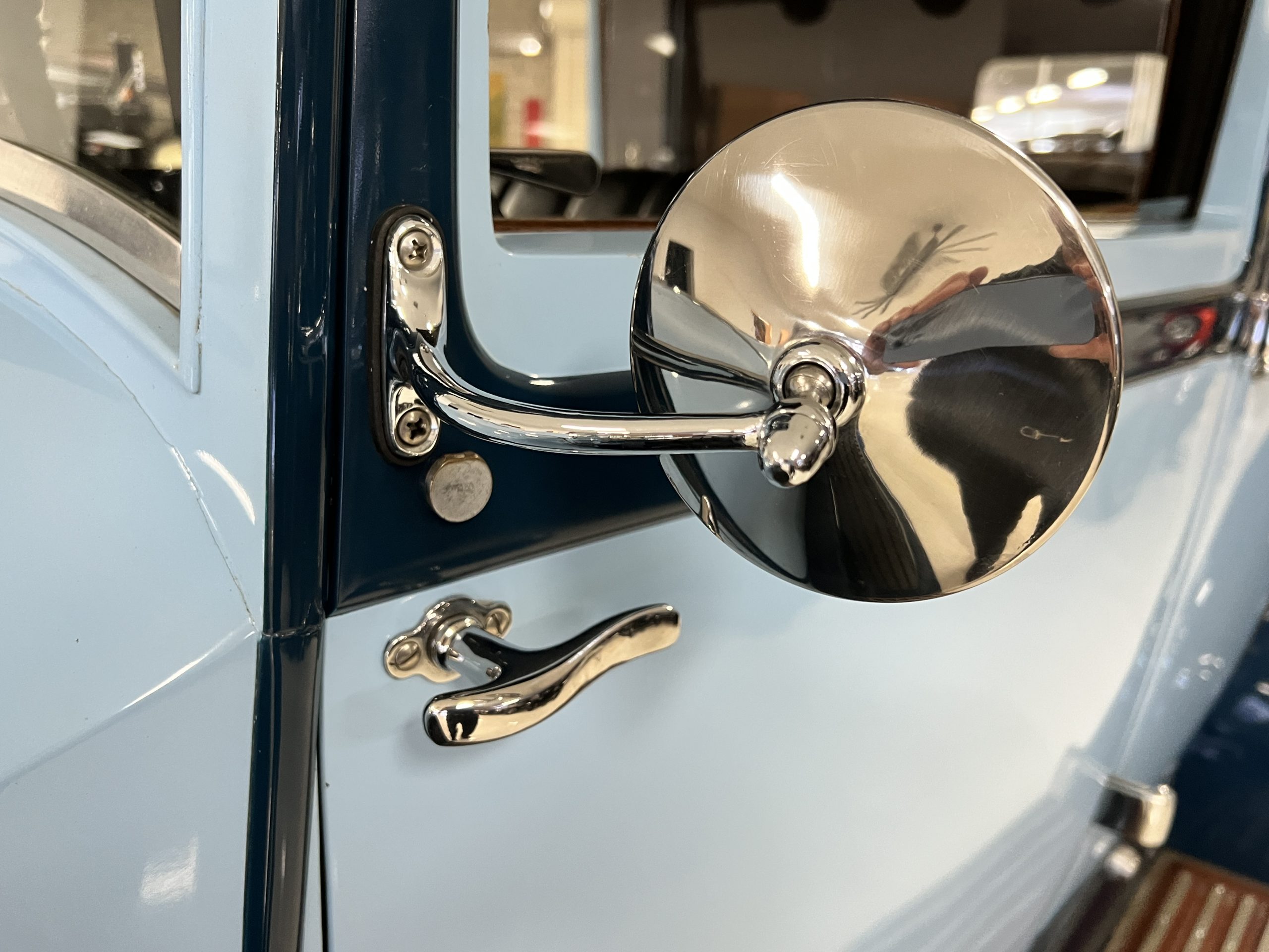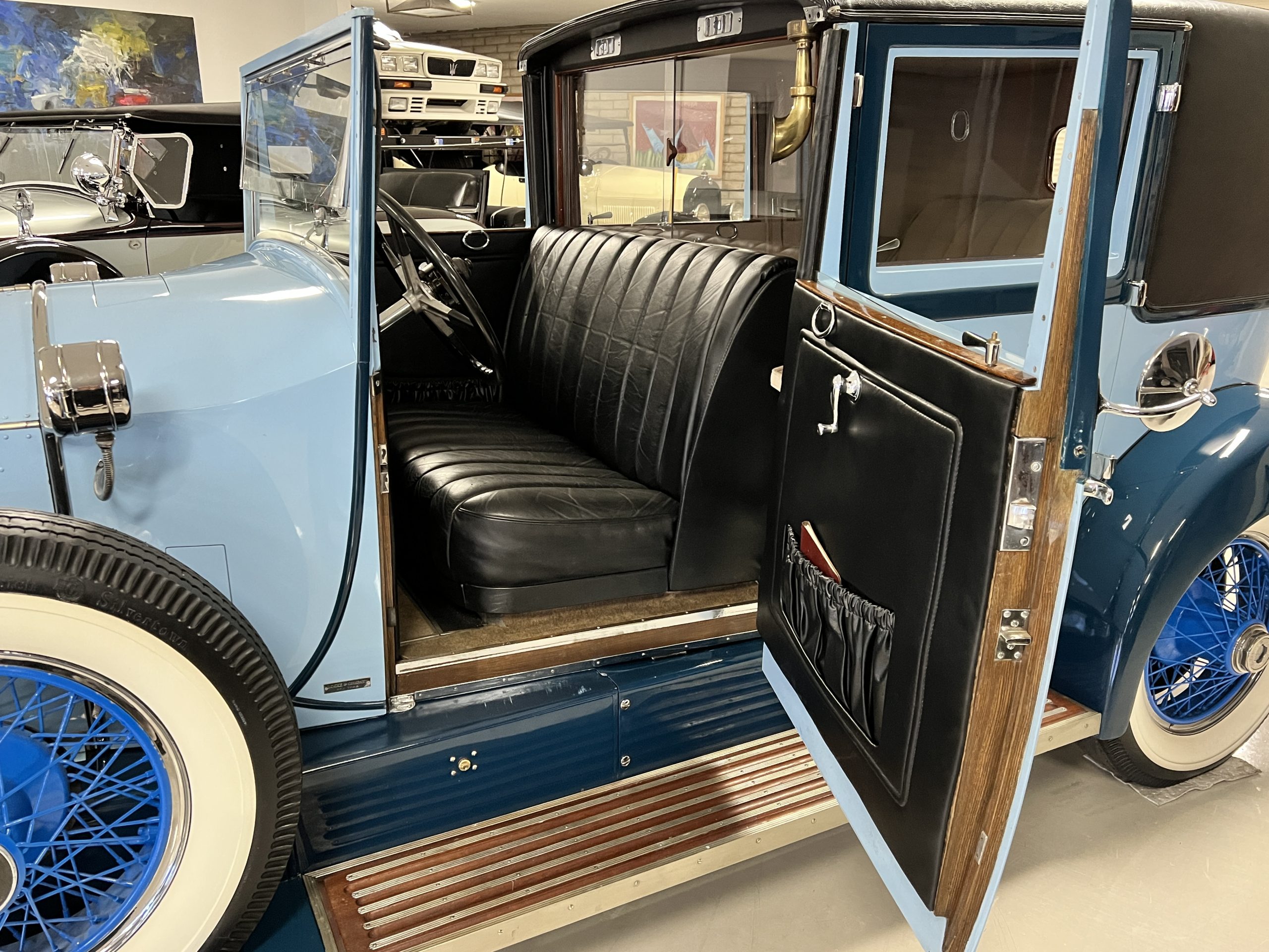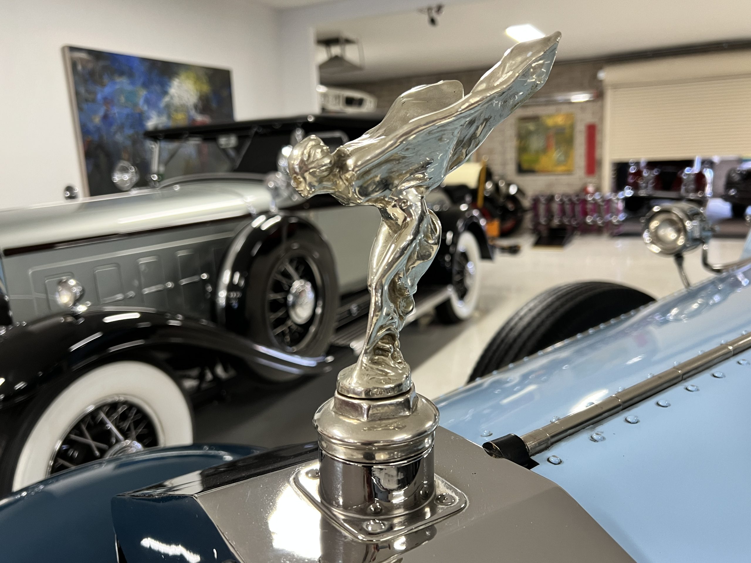 S195FR was an early Springfield Phantom I with the smaller grille, manual vertical radiator shutters, drum headlights, dual side mounts and the attractive rounded chromed pipe bumpers. Being a later Springfield Phantom, S195FR was one of the first Phantoms with chrome rather than nickel and is left hand drive. In total, 1,241 Springfield Phantom I’s were produced. The body and fenders are believed to be original to the car, but it is said that in the mid 1930’s it was sent to Rollston of New York to have the original fenders “skirted” to give it a more updated appearance.