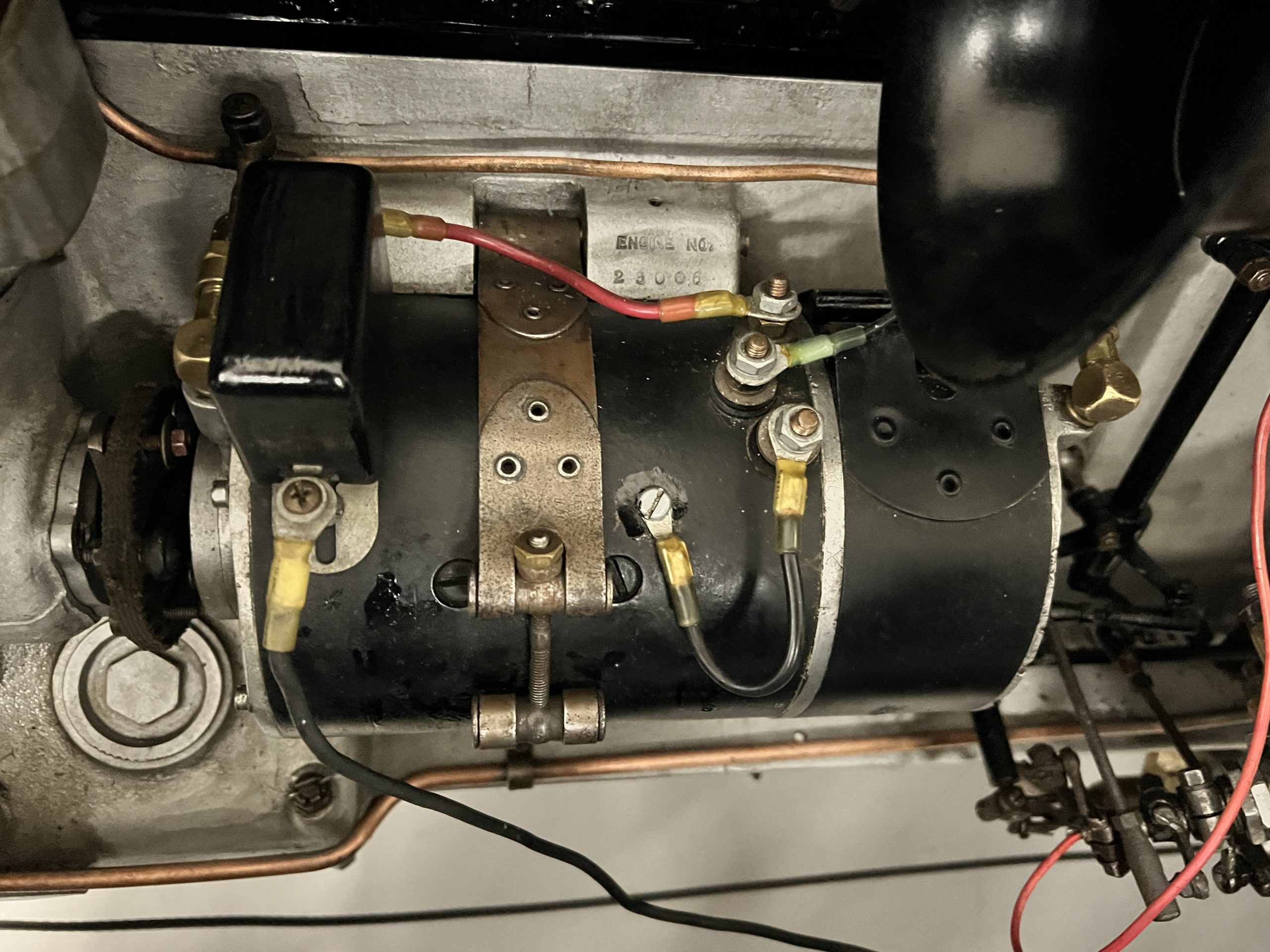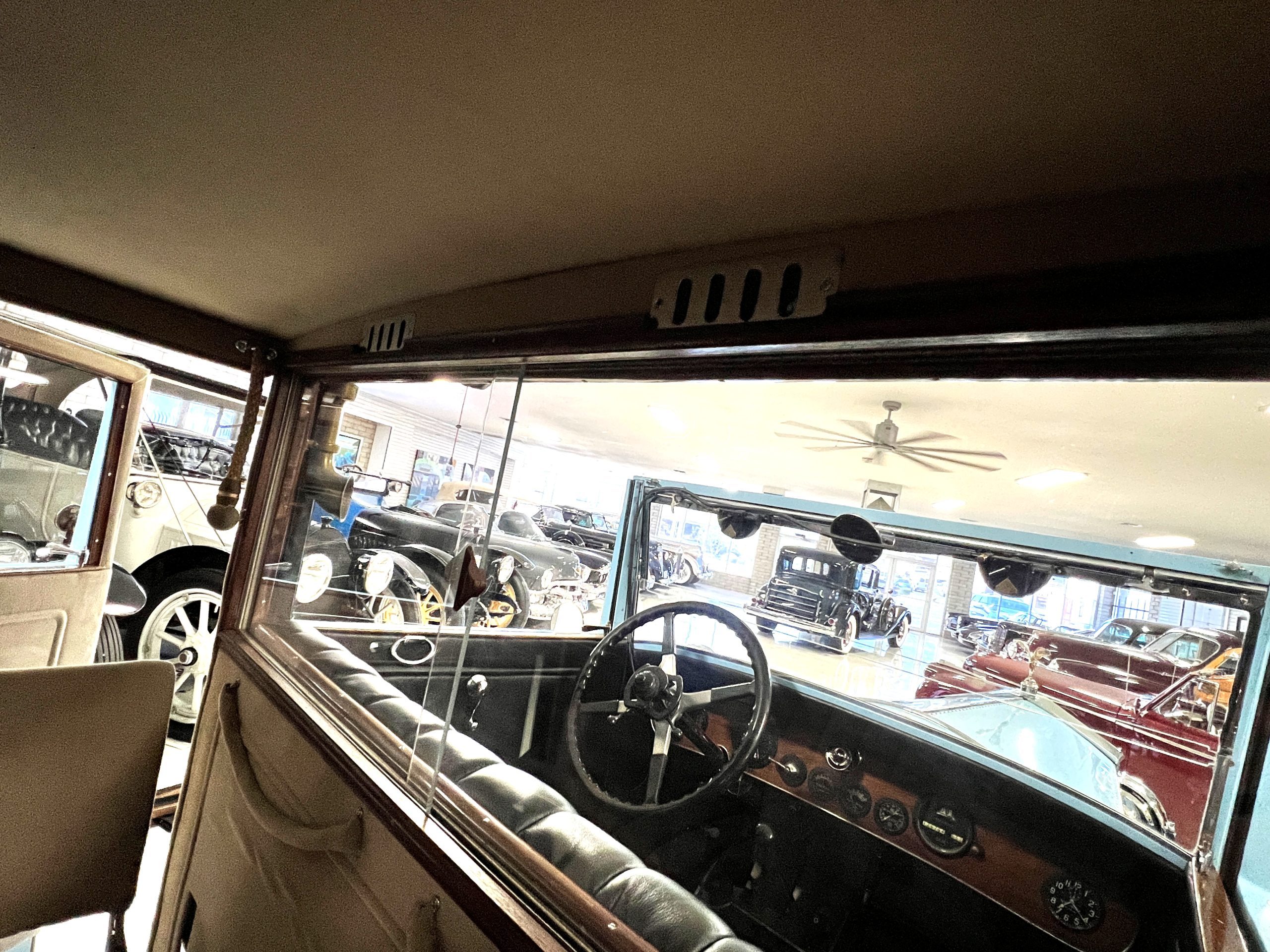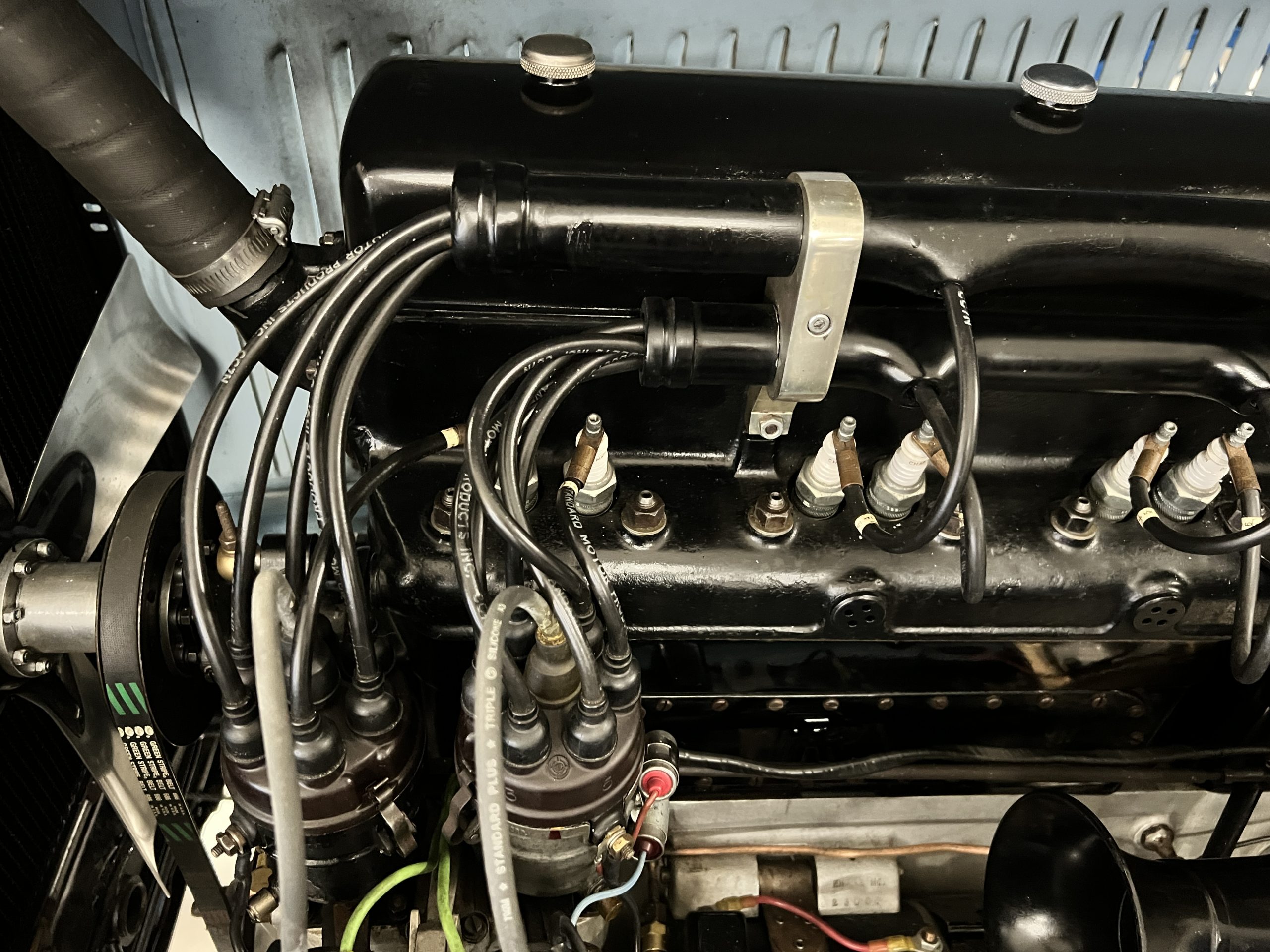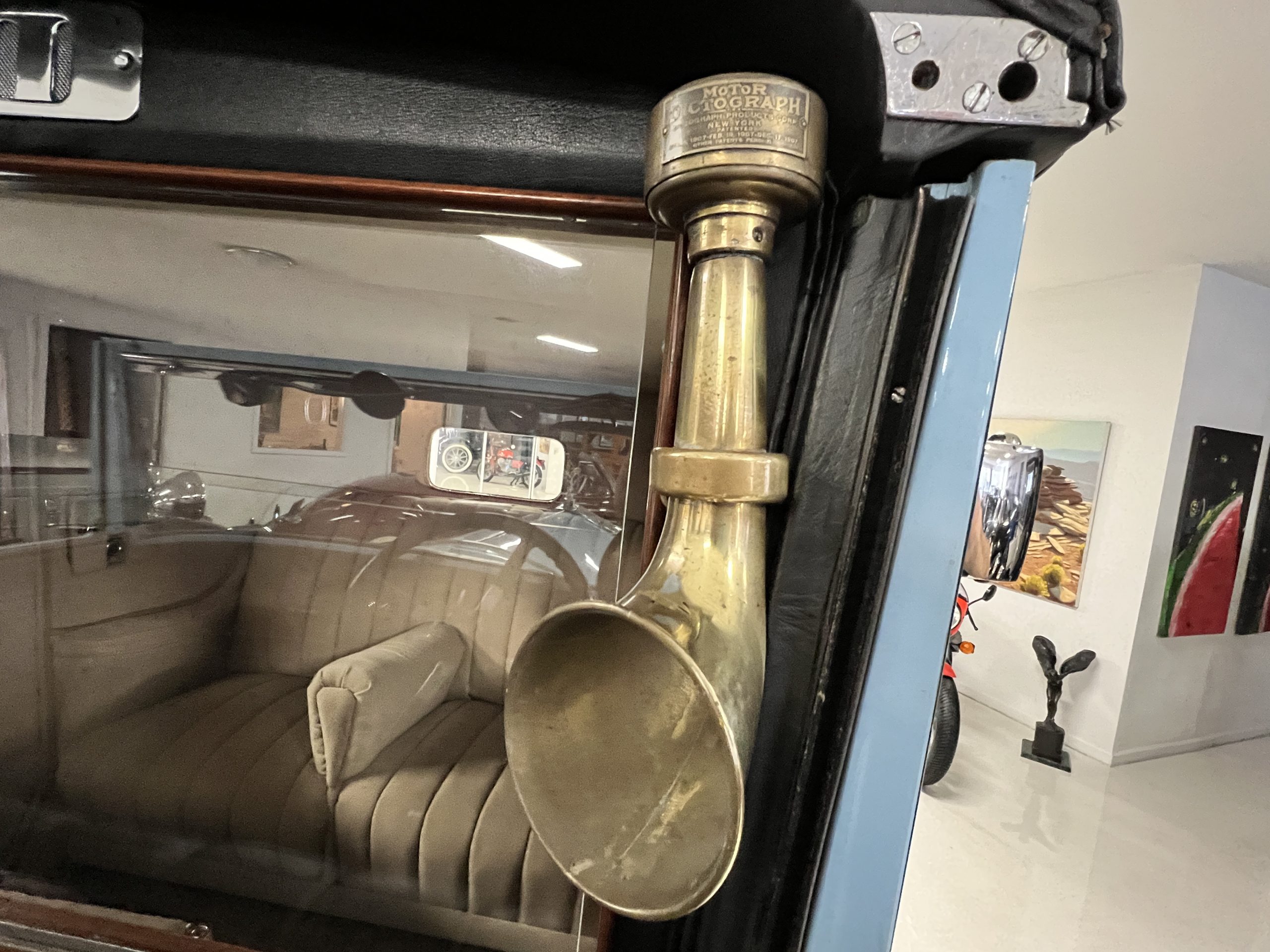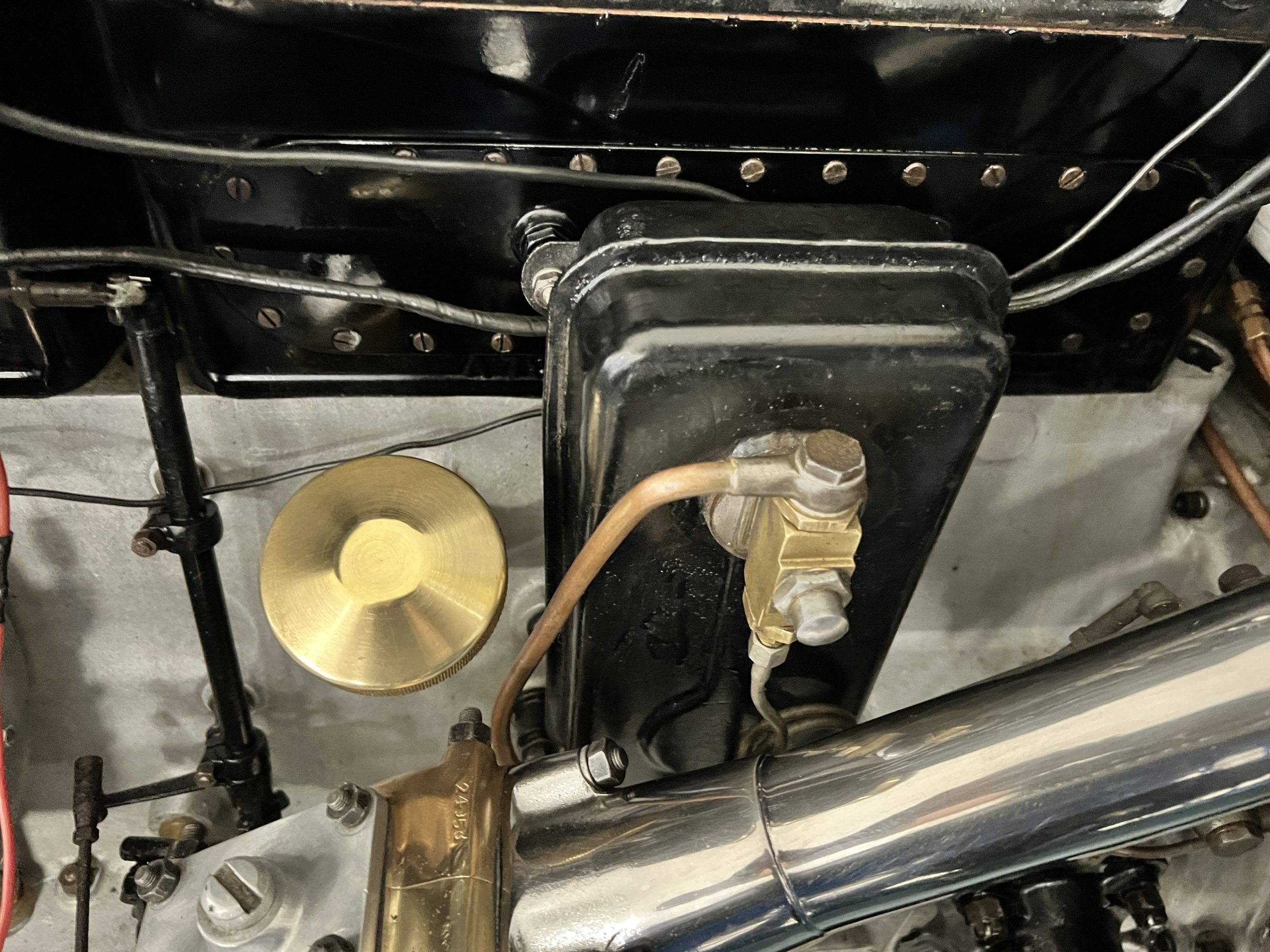 DRIVETRAIN: The engine and engine compartment are very impressive and in beautiful condition. The engine was replaced with a correct series SPI 7,668 cc six-cylinder inline engine with its 4-speed transmission (Engine No. 23006). The gauges all appear to work well including the speedometer, oil pressure, temperature, amp meter and fuel gauge. The clock is not working but is correct and original to the car. The drivetrain was completely restored during the restoration including the engine, transmission, suspension, Bjur lubrication, radiator, etc. The chassis is well detailed for a tour car and appropriate for show. The Phantom drives very well with cool operating temperatures and great oil pressure. We have serviced the oil, lubricated the chassis and completely serviced the carburetor.