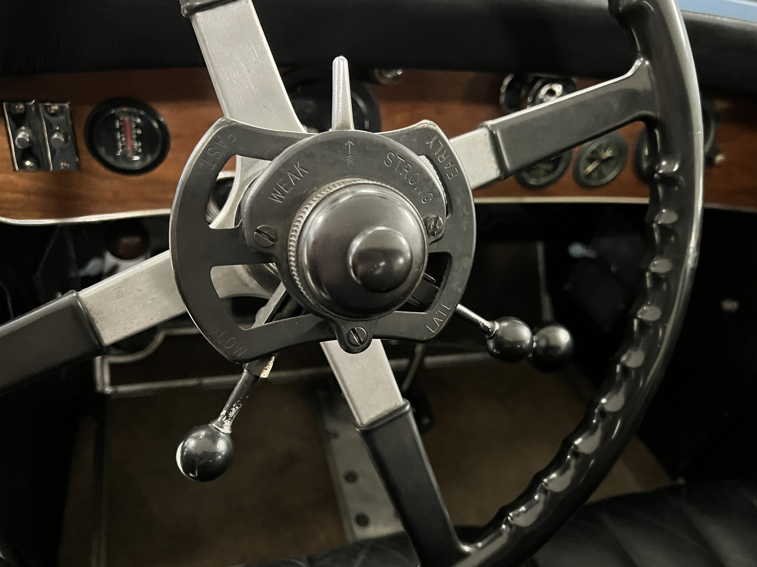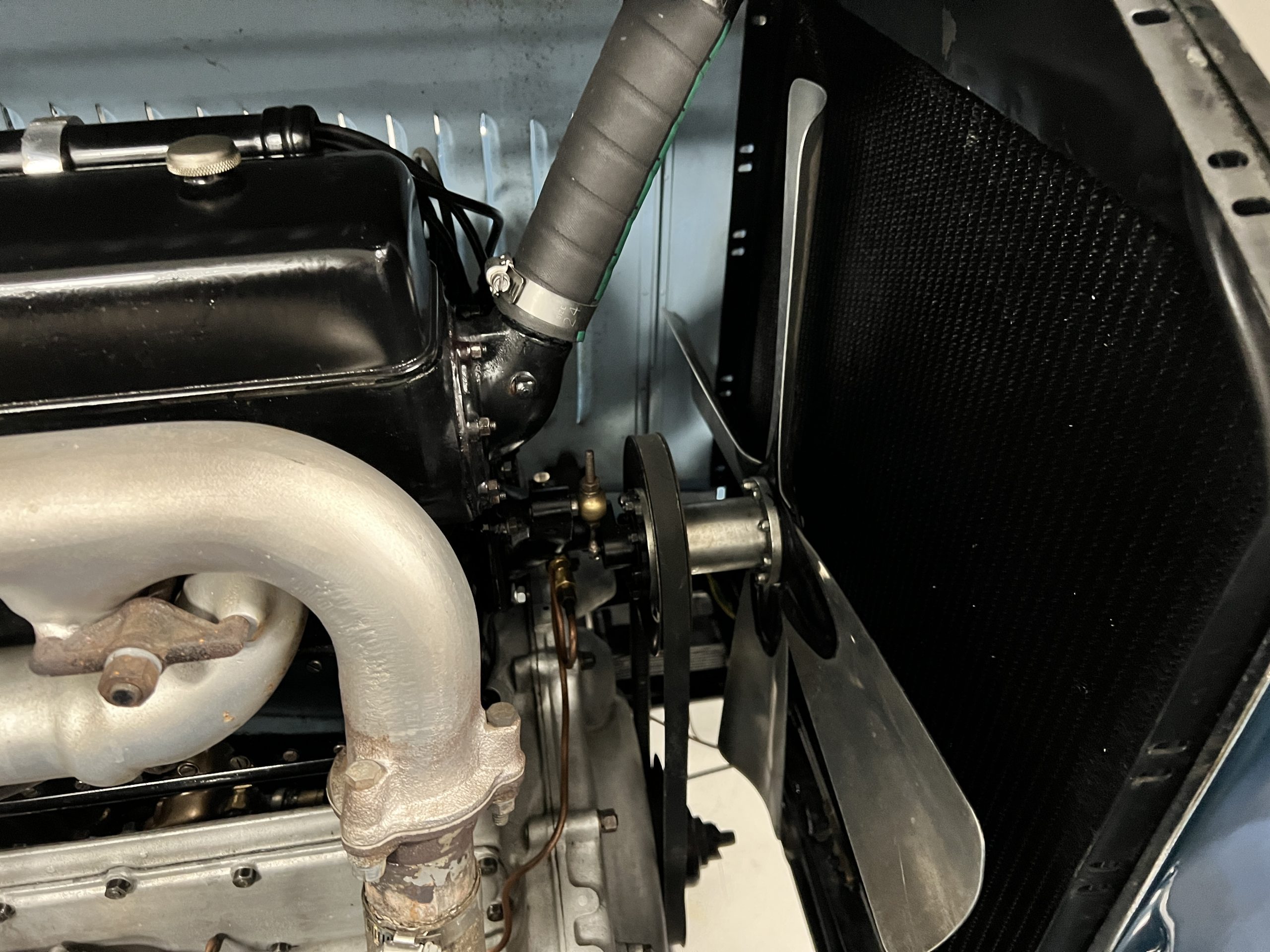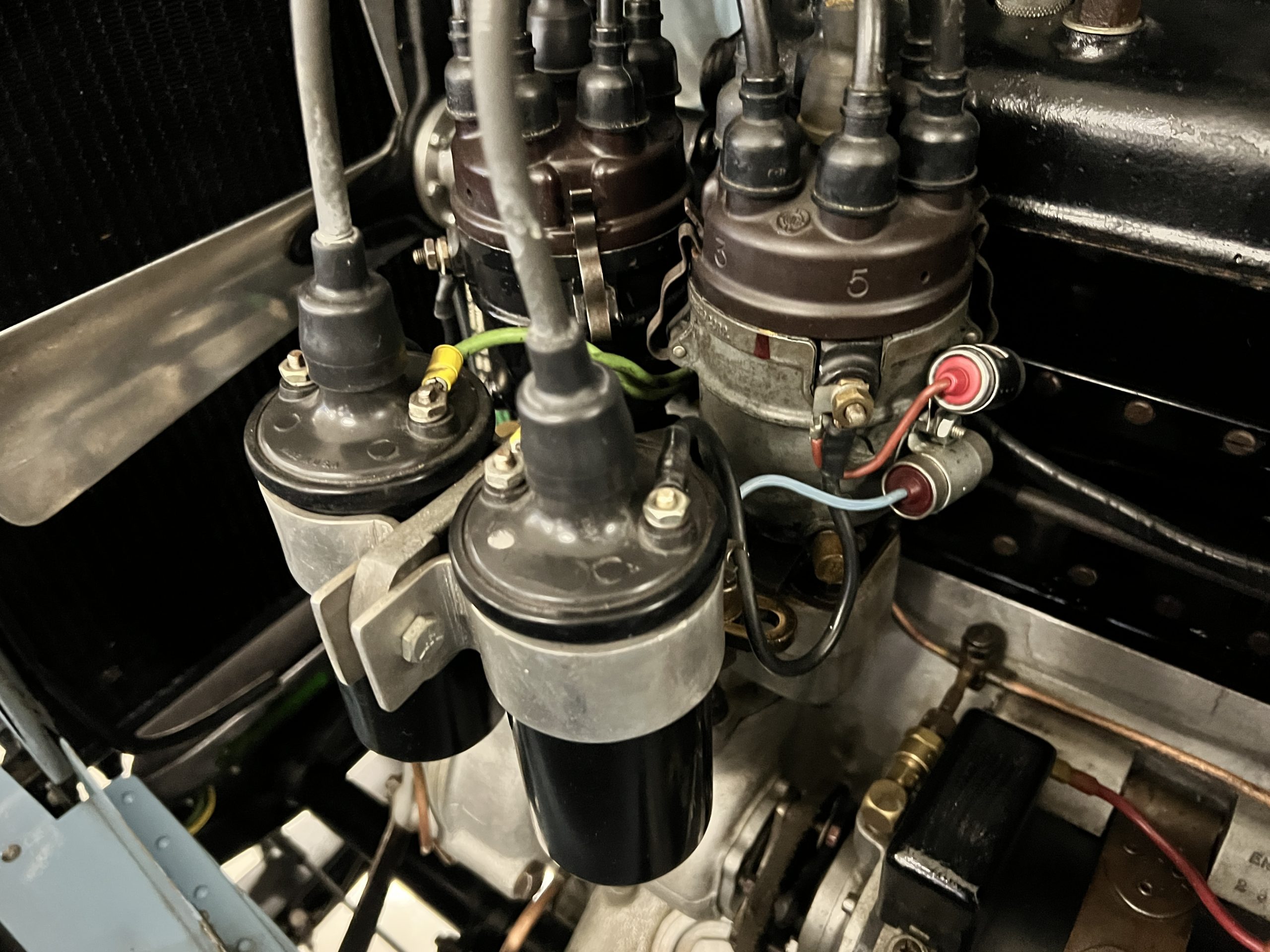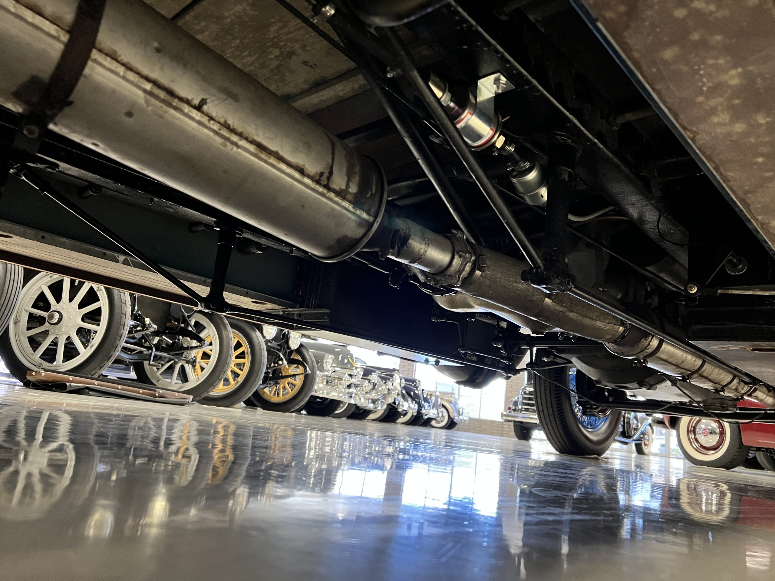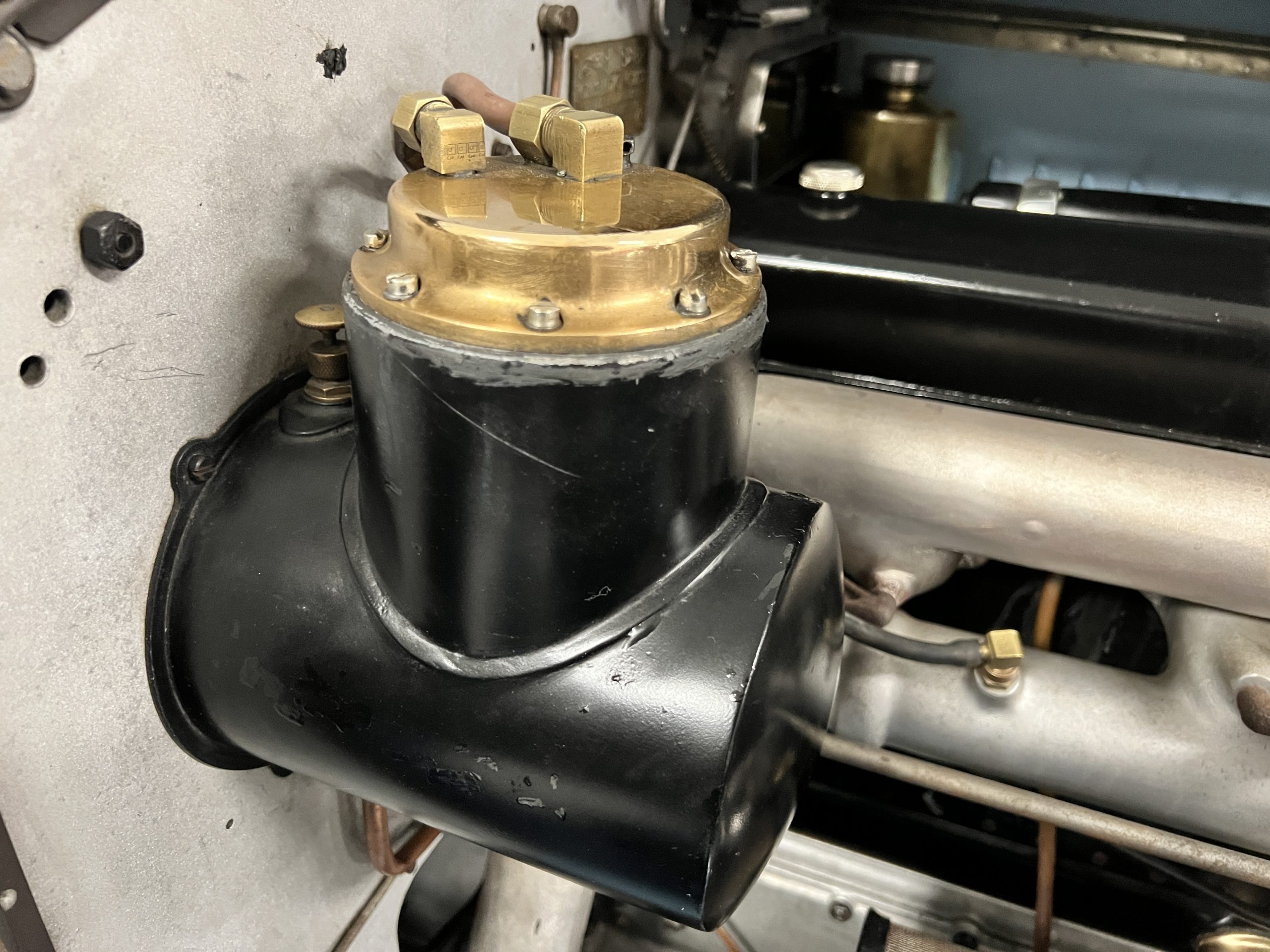 DRIVETRAIN: The engine and engine compartment are very impressive and in beautiful condition. The engine was replaced with a correct series SPI 7,668 cc six-cylinder inline engine with its 4-speed transmission (Engine No. 23006). The gauges all appear to work well including the speedometer, oil pressure, temperature, amp meter and fuel gauge. The clock is not working but is correct and original to the car. The drivetrain was completely restored during the restoration including the engine, transmission, suspension, Bjur lubrication, radiator, etc. The chassis is well detailed for a tour car and appropriate for show. The Phantom drives very well with cool operating temperatures and great oil pressure. We have serviced the oil, lubricated the chassis and completely serviced the carburetor.