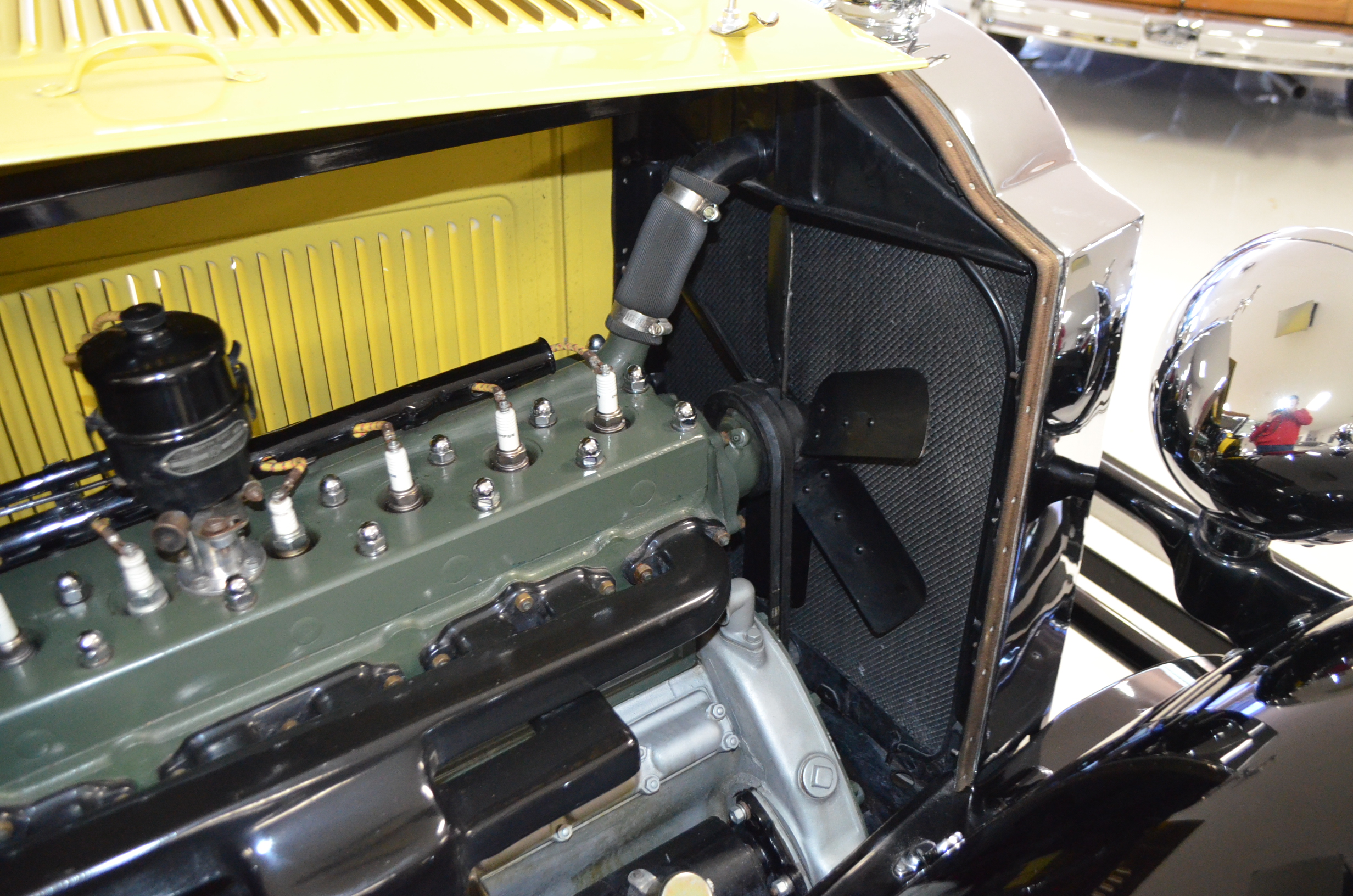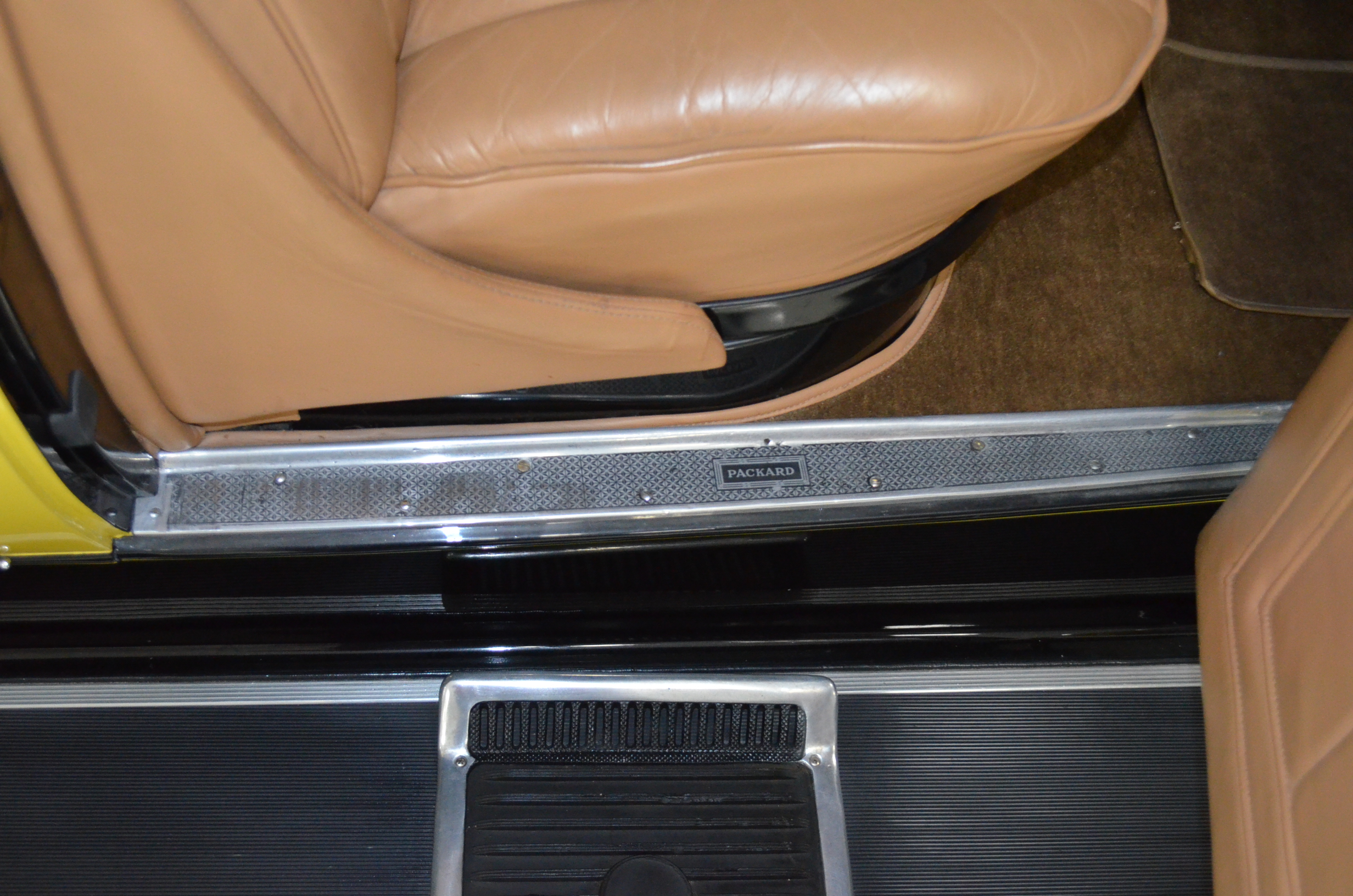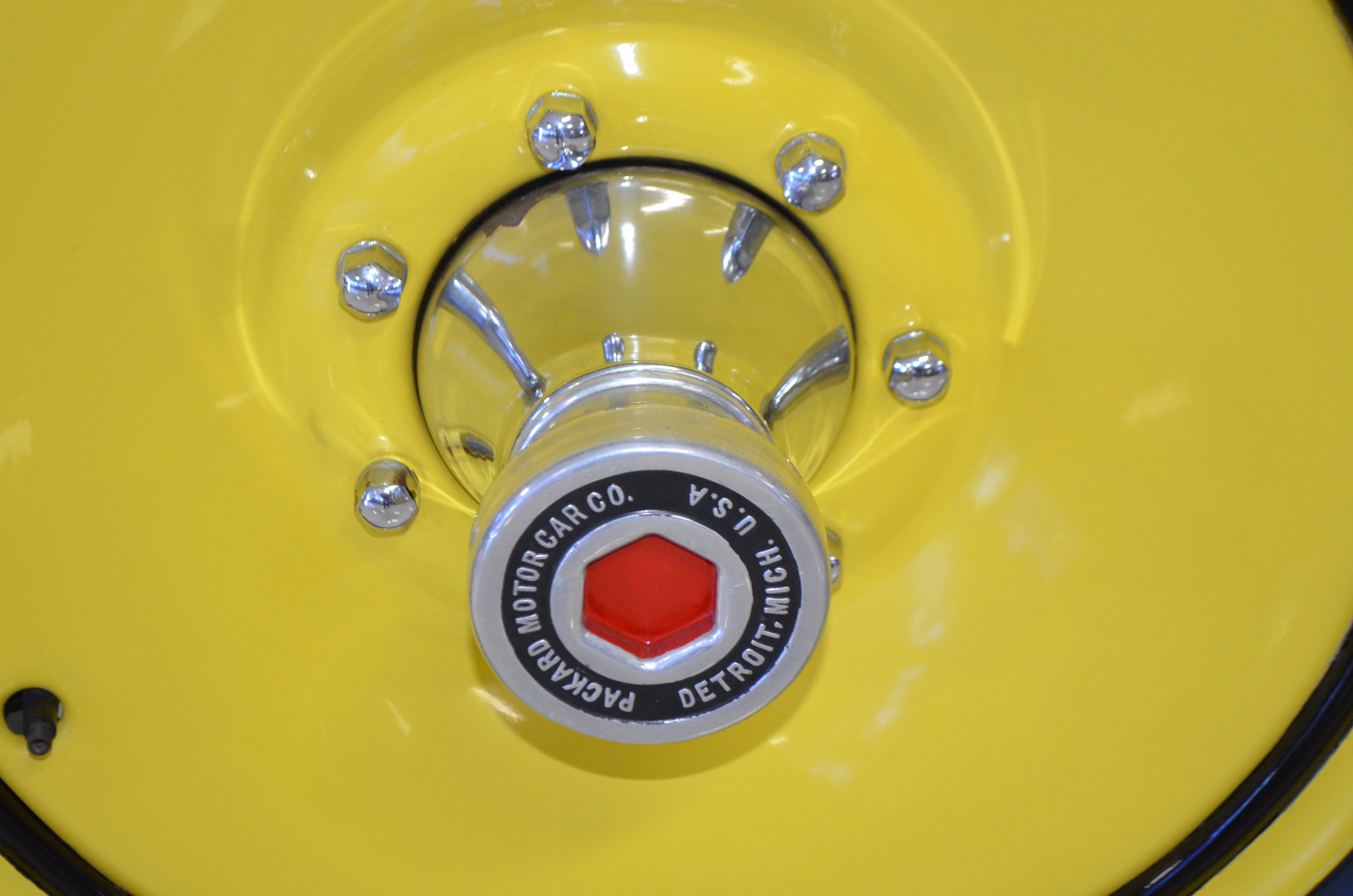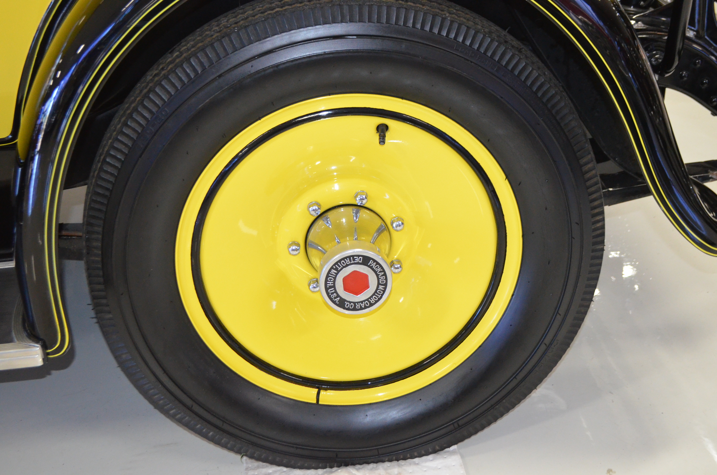 With its 134.5 inch wheelbase, this is far easier to drive than the longer Packards of the era. The yellow and black livery with blackwall tires looks more like a Bugatti than a Packard. It has a European flair to it that you just don’t see often on Packards. The paint and body finish quality are excellent. All the chrome has been replated and is well done. The door closure and other operational functions are all excellent with panel fit that is very good (the bottom of the doors are off about 1/4″ to 1/2″).