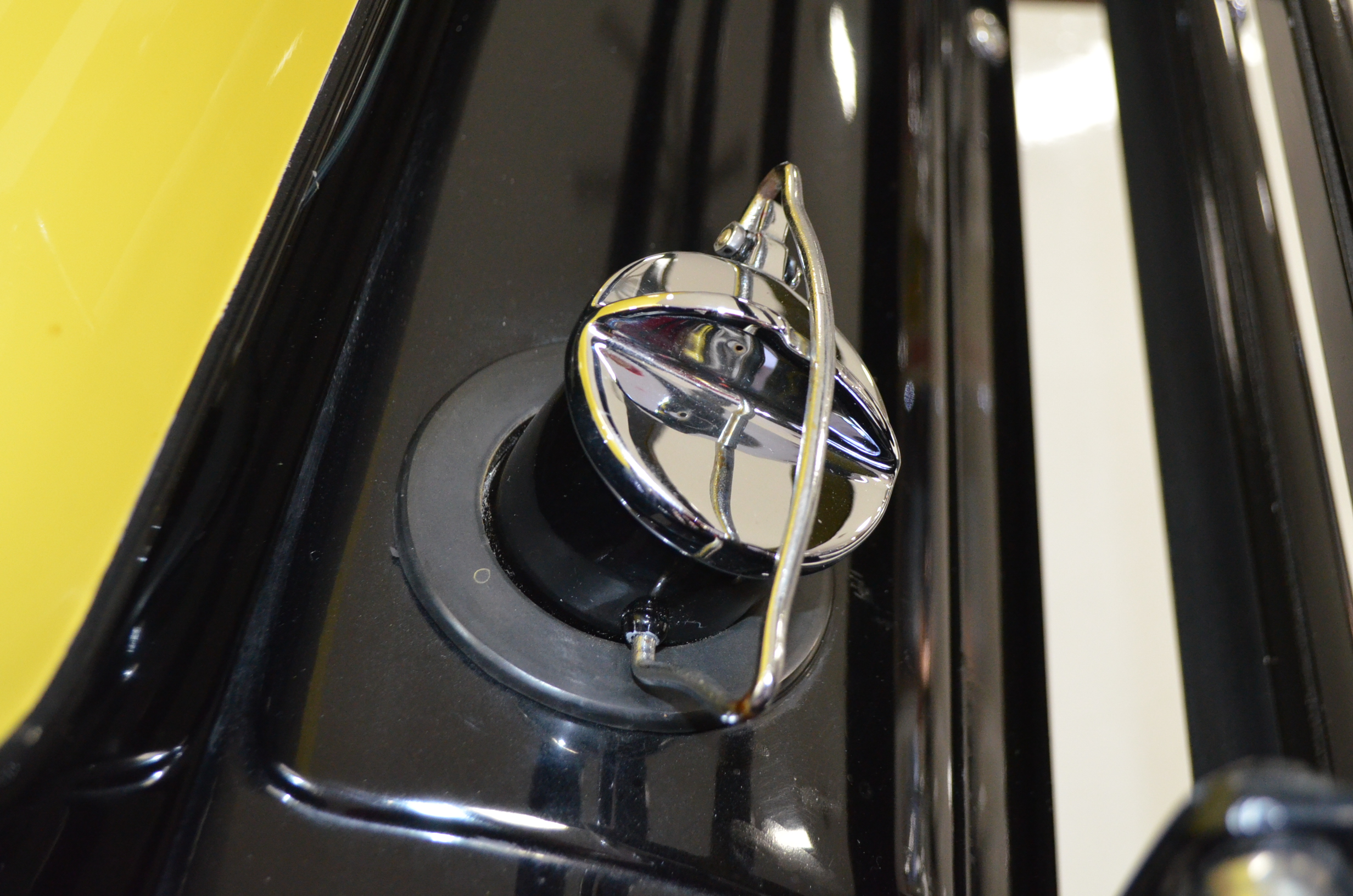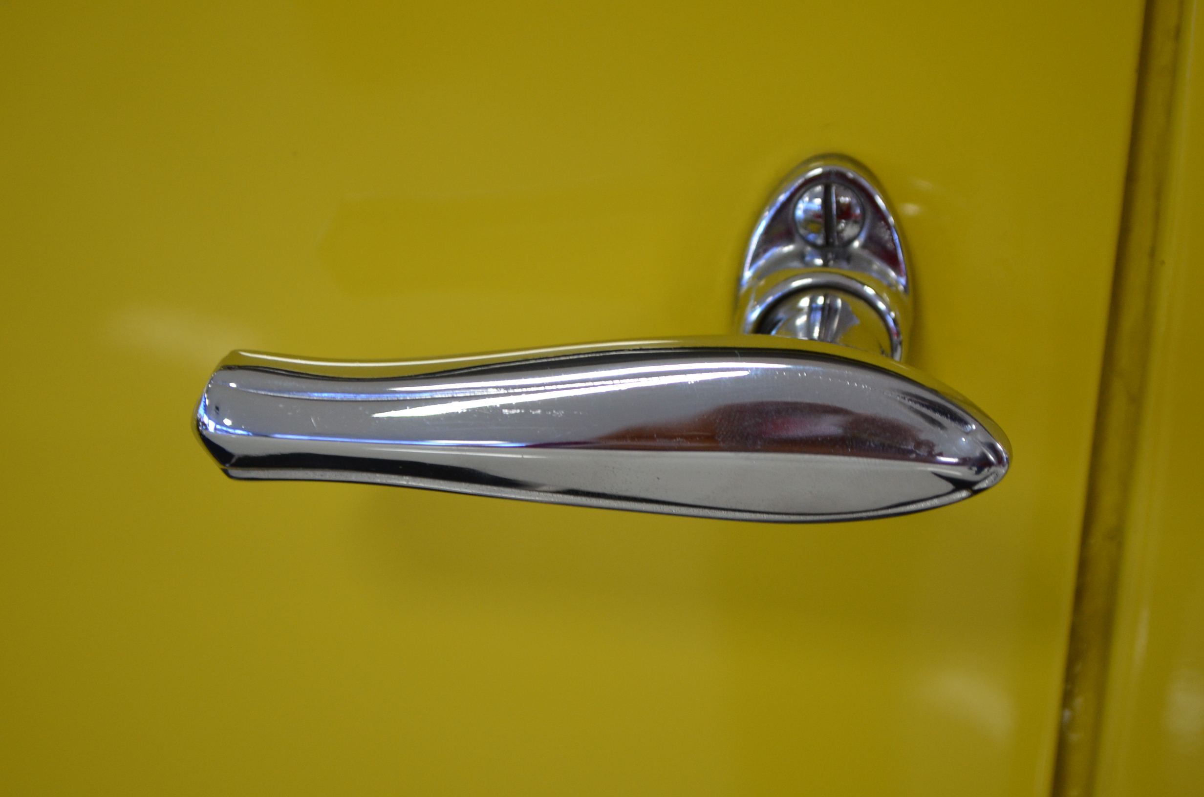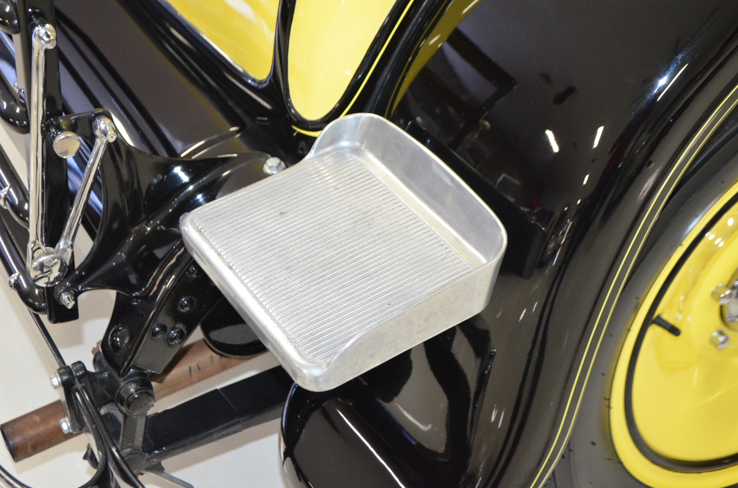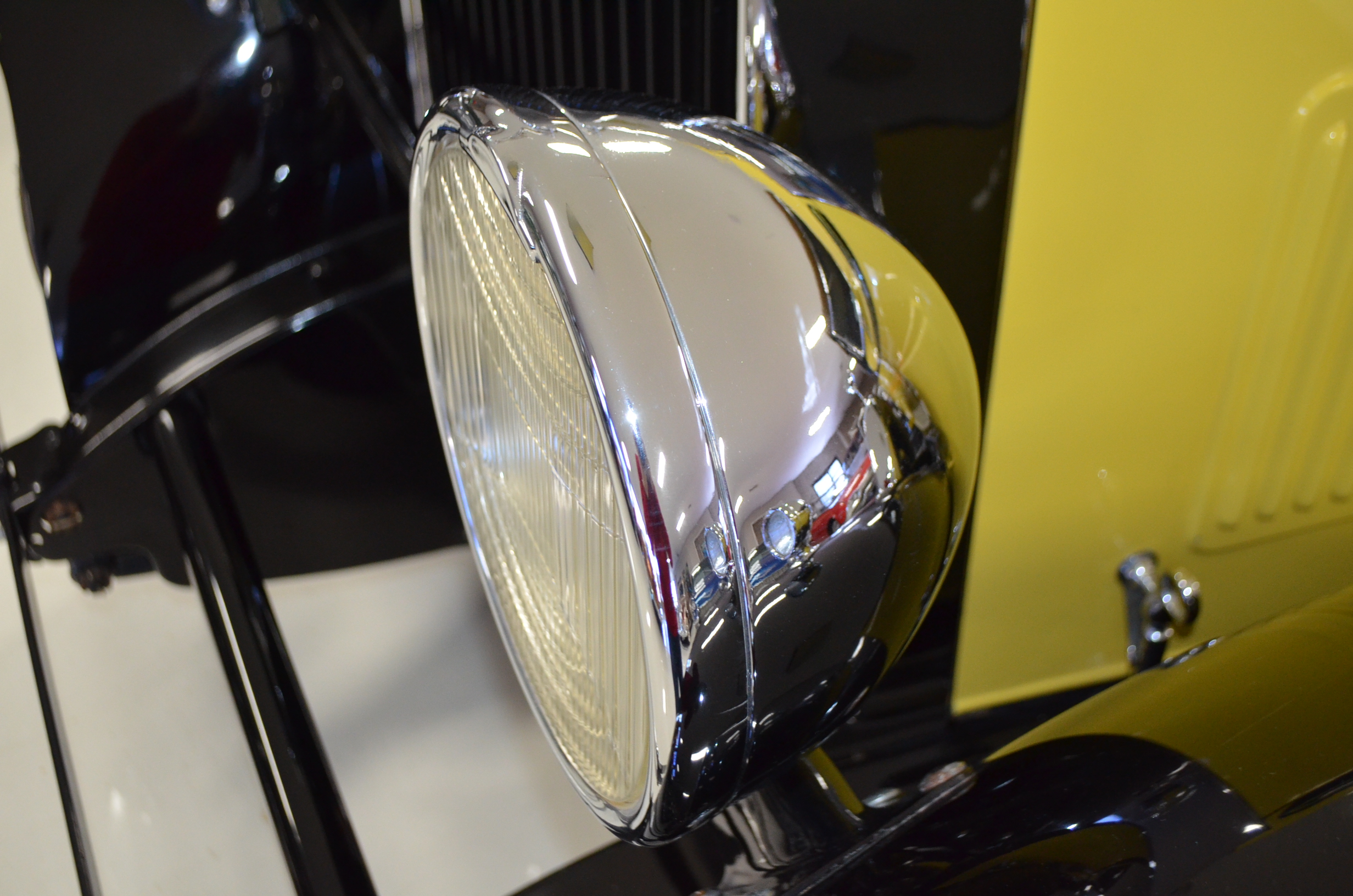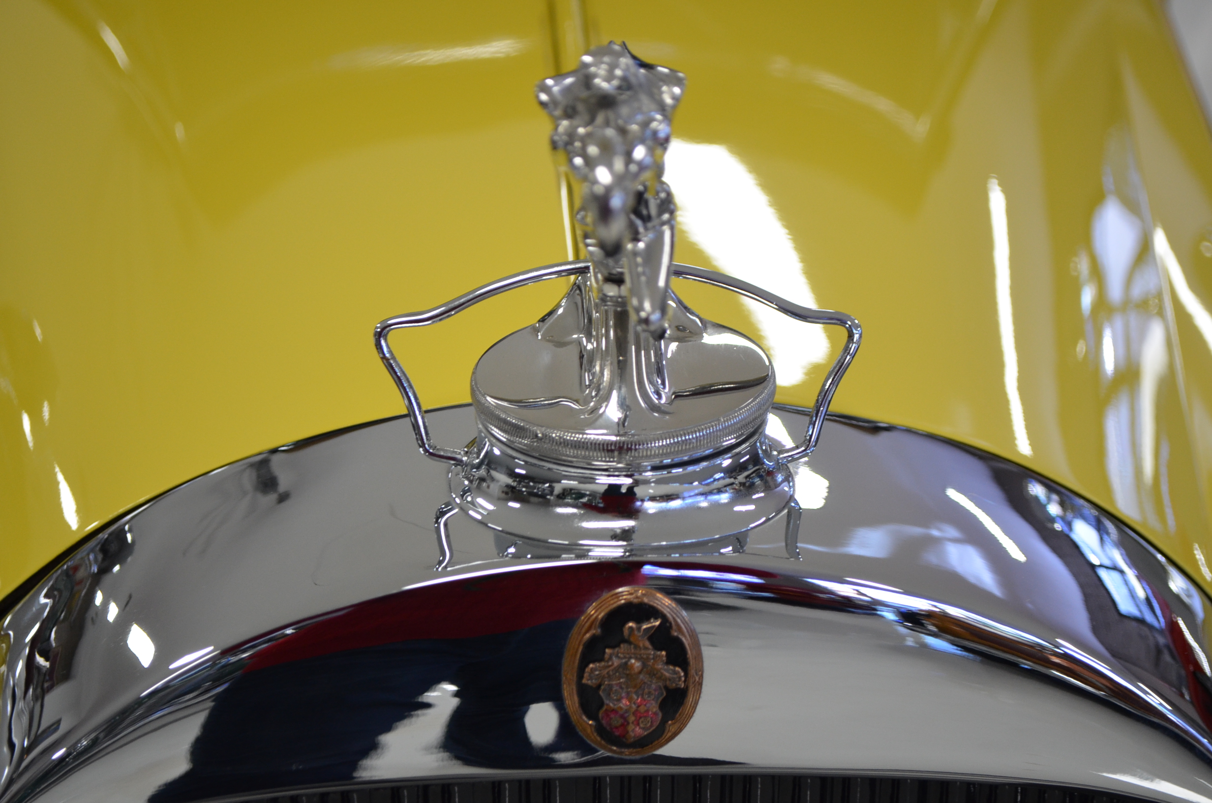 With its 134.5 inch wheelbase, this is far easier to drive than the longer Packards of the era. The yellow and black livery with blackwall tires looks more like a Bugatti than a Packard. It has a European flair to it that you just don’t see often on Packards. The paint and body finish quality are excellent. All the chrome has been replated and is well done. The door closure and other operational functions are all excellent with panel fit that is very good (the bottom of the doors are off about 1/4″ to 1/2″).