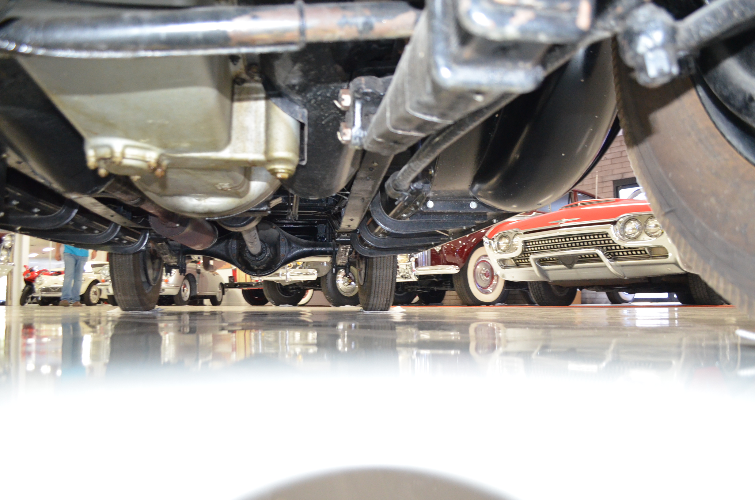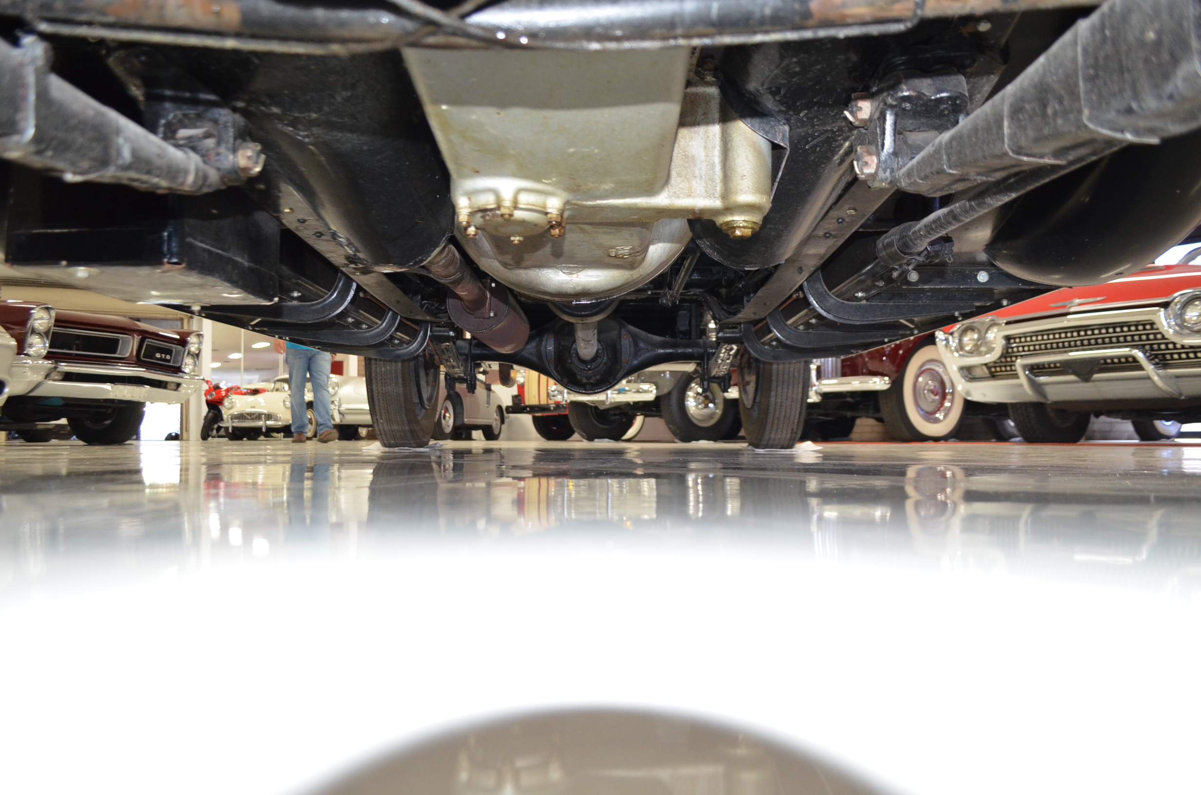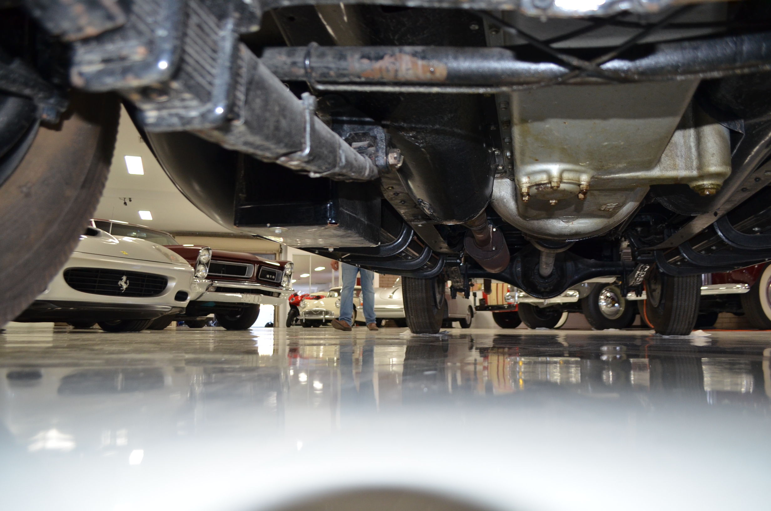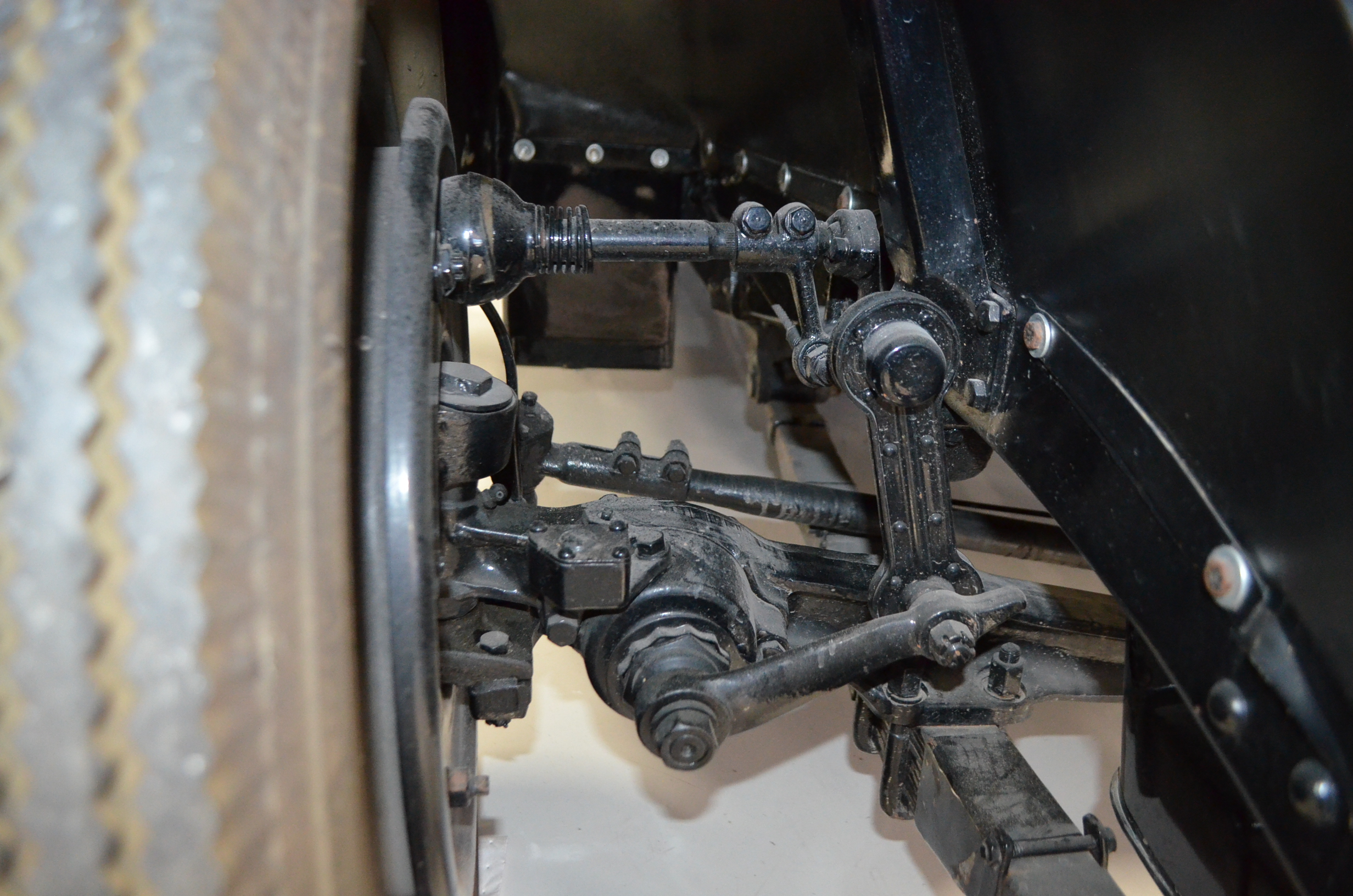 The engine detailing is correct and is showing a slight amount of patina from being held in a museum since restoration. Everything on this car has been rebuilt and restored. The chassis is well done, but would benefit from further cleaning before a concours event. The 320 CID straight eight engine has nine main bearings, performs well, and the carburetor has been recently rebuilt to ensure proper operations. The Packard emits some smoke which is likely from not being used and the valves not yet being seated.