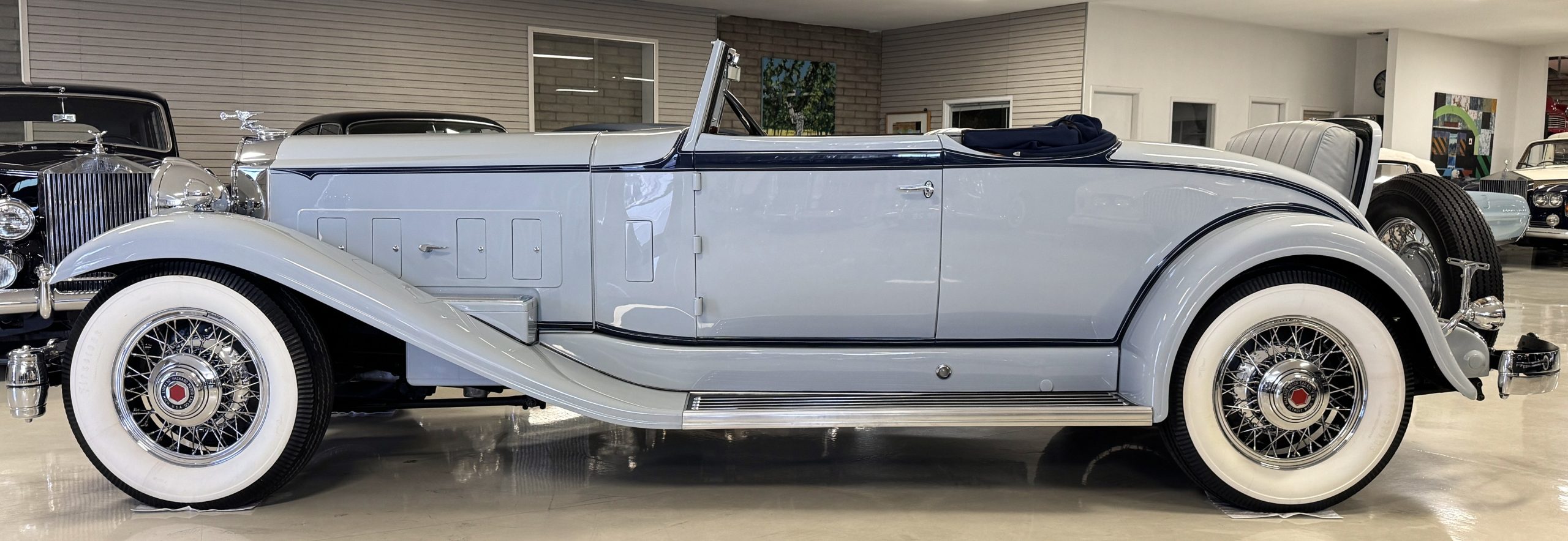 The 1932 Packard Deluxe Eight 903 Convertible Coupe represents the height of Depression-era luxury and craftsmanship, combining Art Deco styling with engineering excellence. This example, chassis 519-26, features the rare Convertible Coupe body, an elegant two-door design with space for two to four passengers, and has benefited from an extensive, frame-off restoration completed over nearly two decades. The Packard shows 47,481 miles. Finished in a stunning two-tone blue with a matching royal blue convertible top, this Packard is both a concours-quality showpiece and a CCCA-recognized Full Classic.
