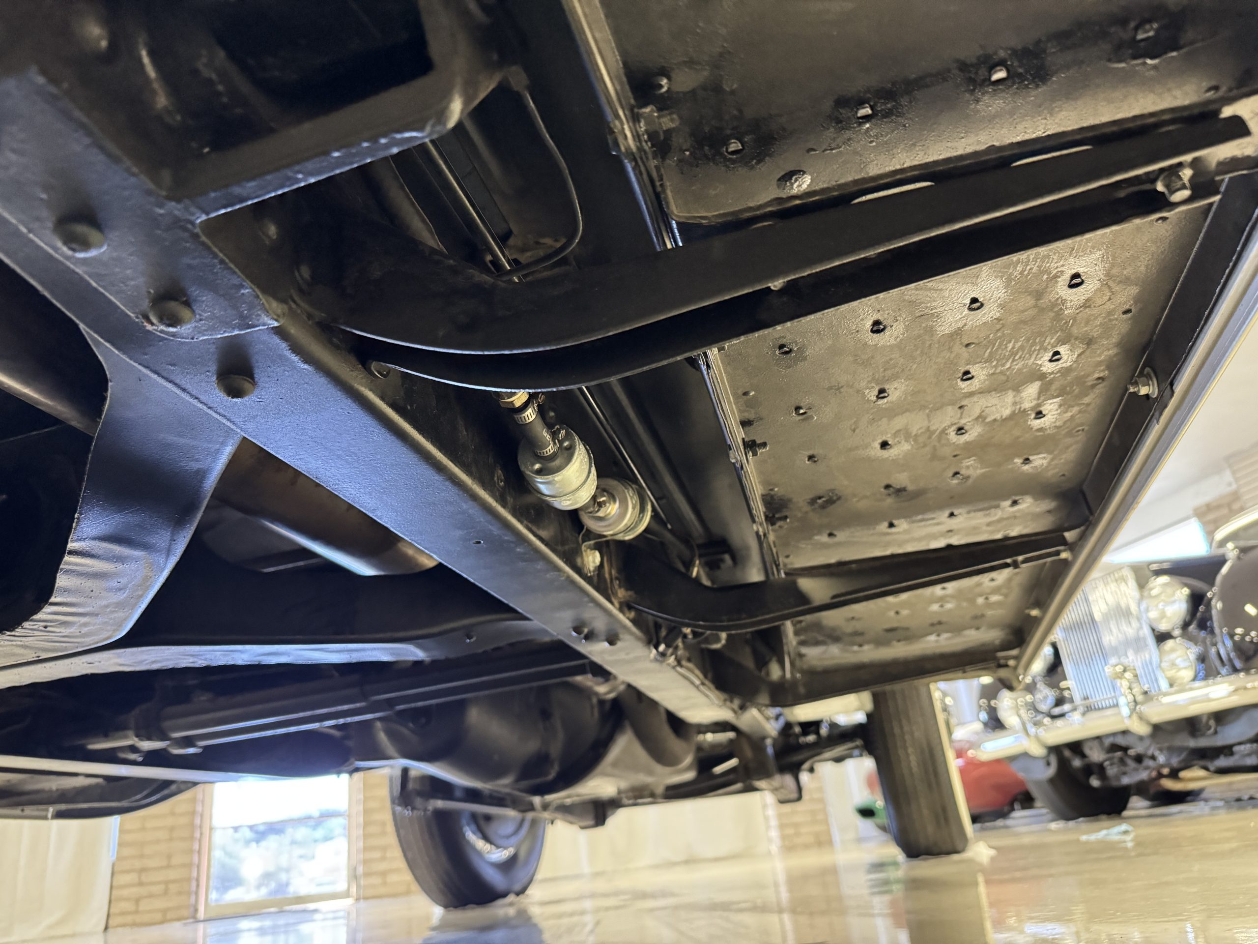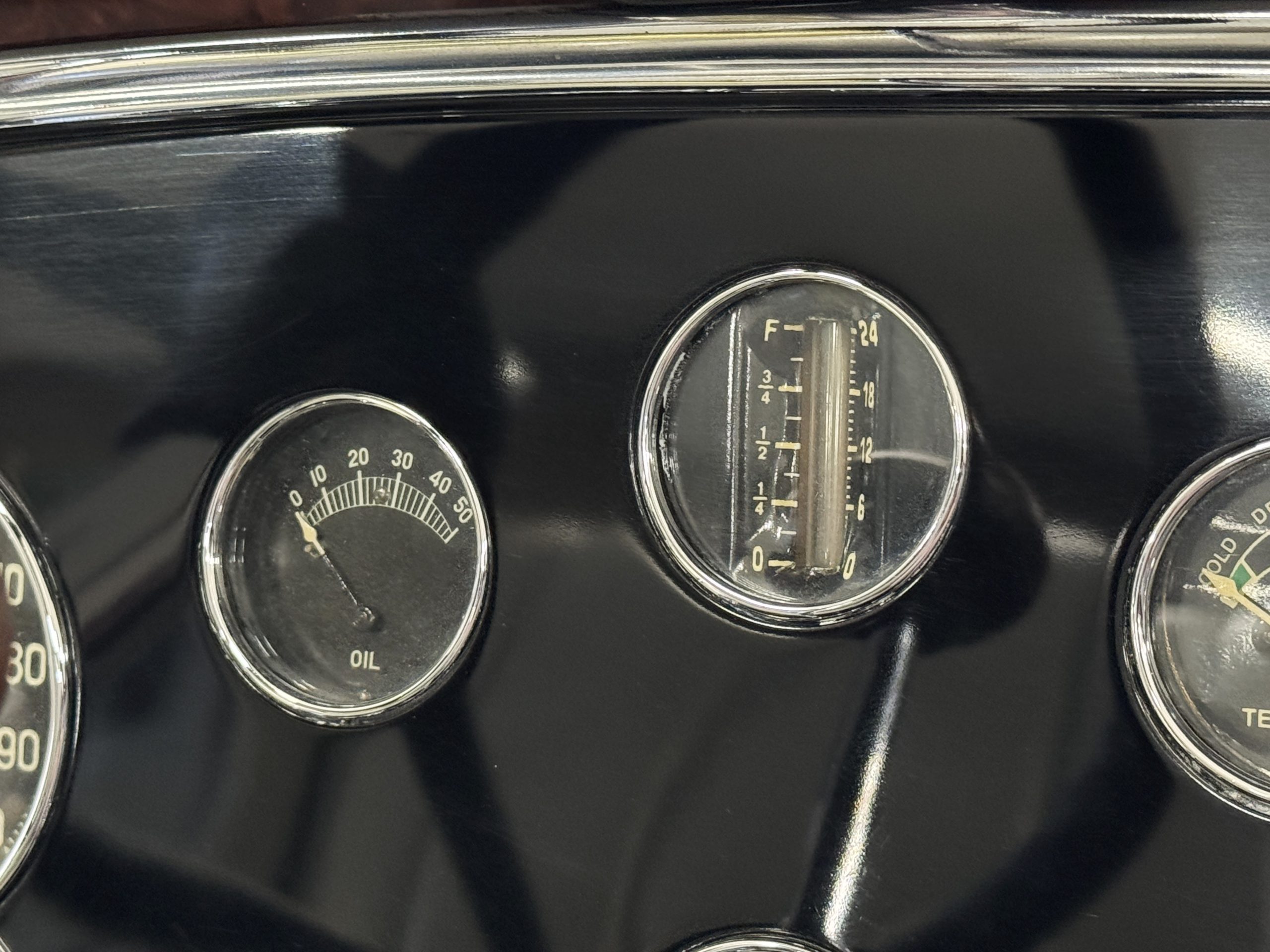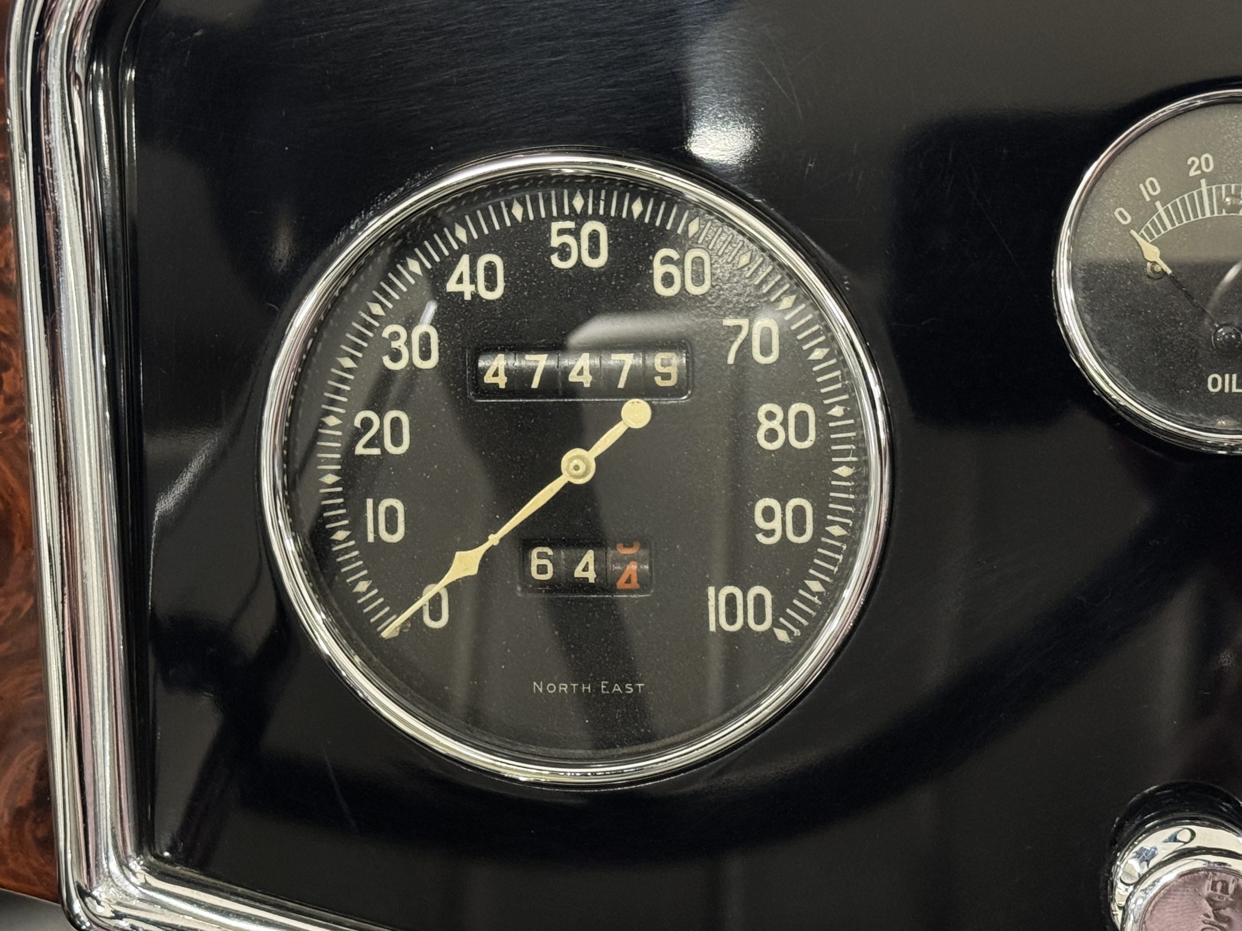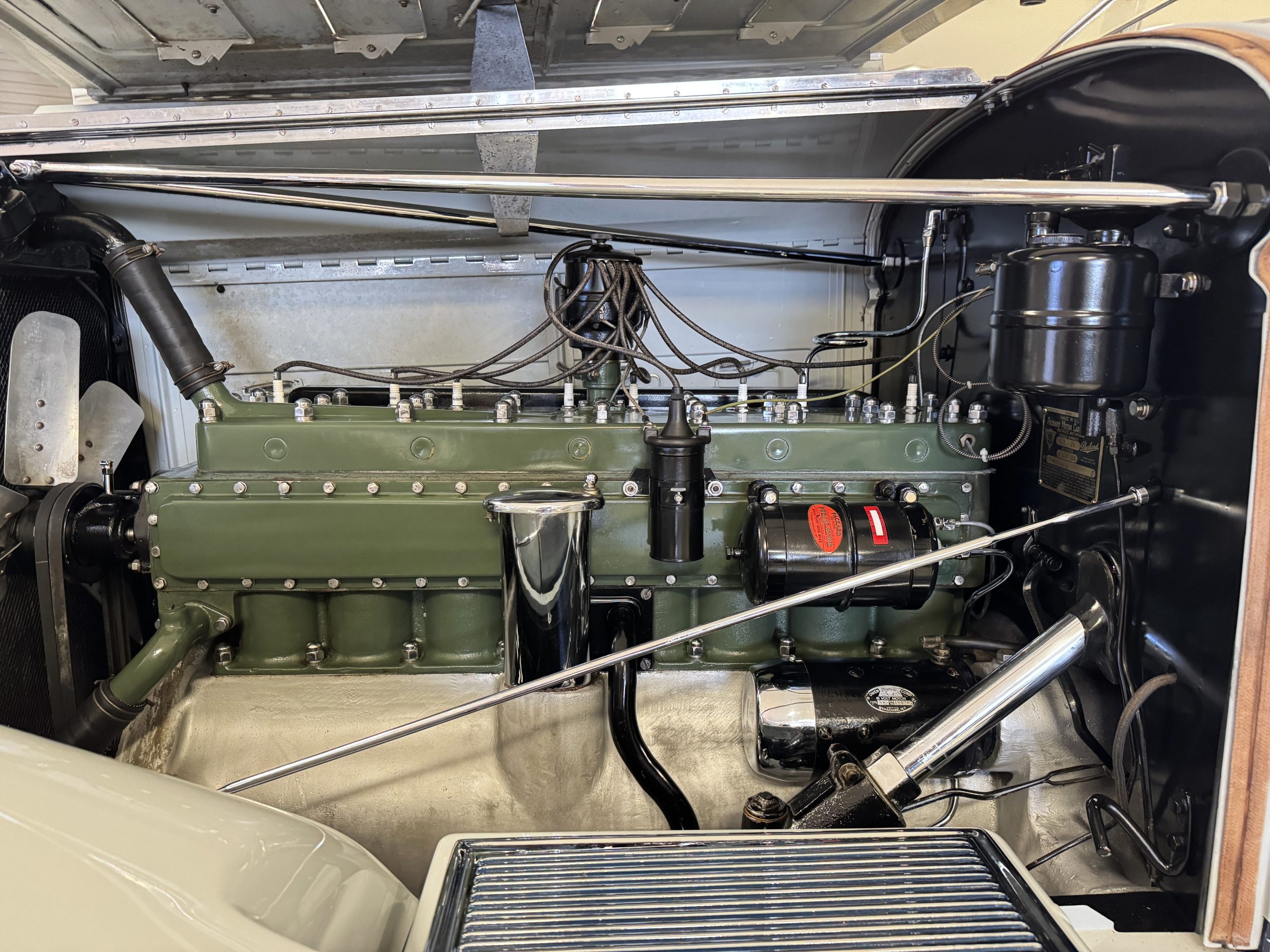 Power is supplied by Packard’s 384.8 cubic inch L-head inline eight-cylinder engine, delivering 135 horsepower through a four-speed manual transmission. The Packard drives really well with plenty of power, smooth shifting and comfortable suspension. The 903 chassis features vacuum-assisted clutch, adjustable ride control, and four-wheel mechanical drum brakes, technological innovations that made the Deluxe Eight one of the most advanced American cars of its time. With a 142⅛-inch wheelbase, the Packard delivers a remarkably smooth and composed ride. Recent servicing in September 2025 included a new battery, spark plugs, fuel pump, filter, and line, along with a tank cleaning, ensuring reliable operation.