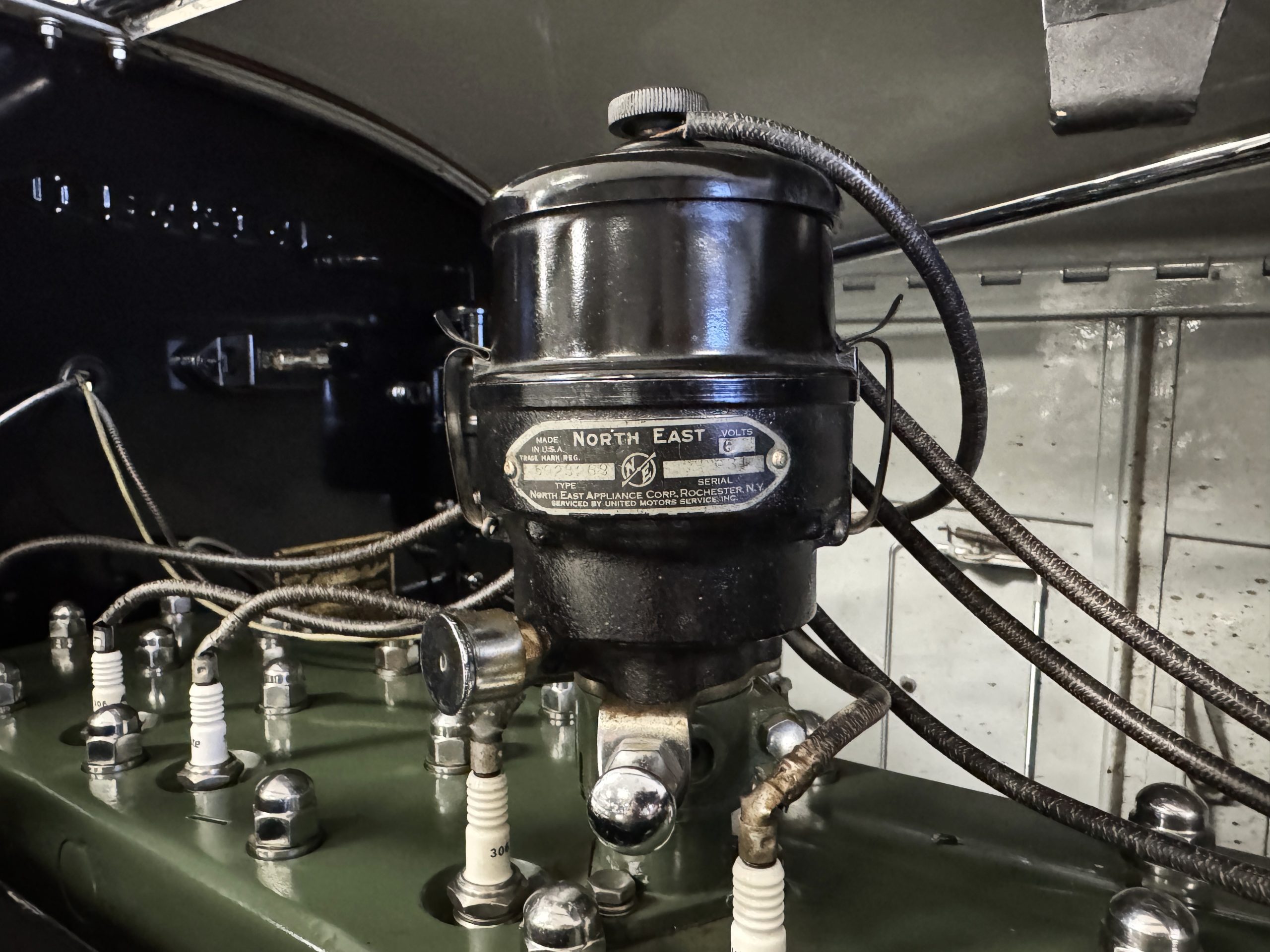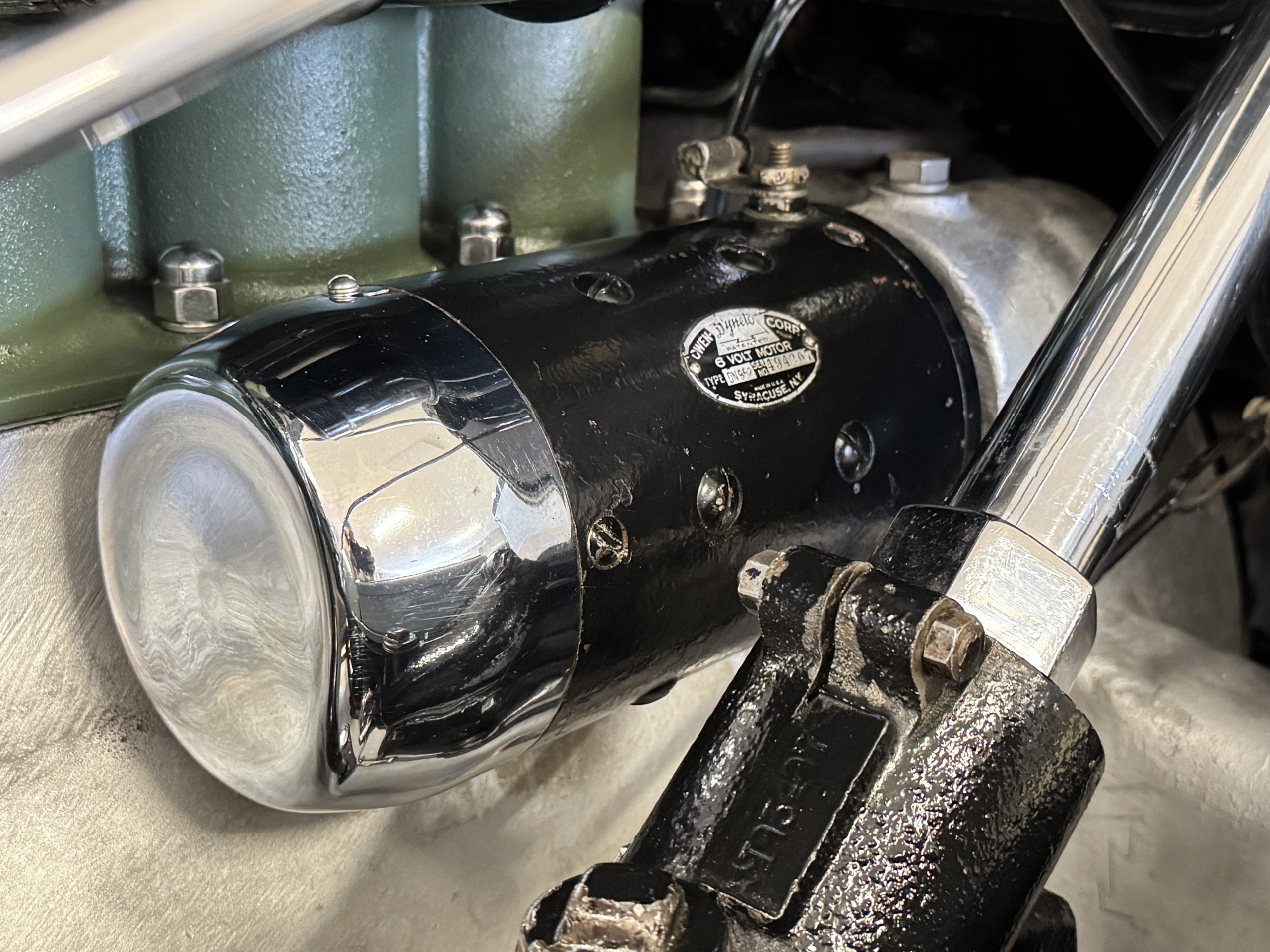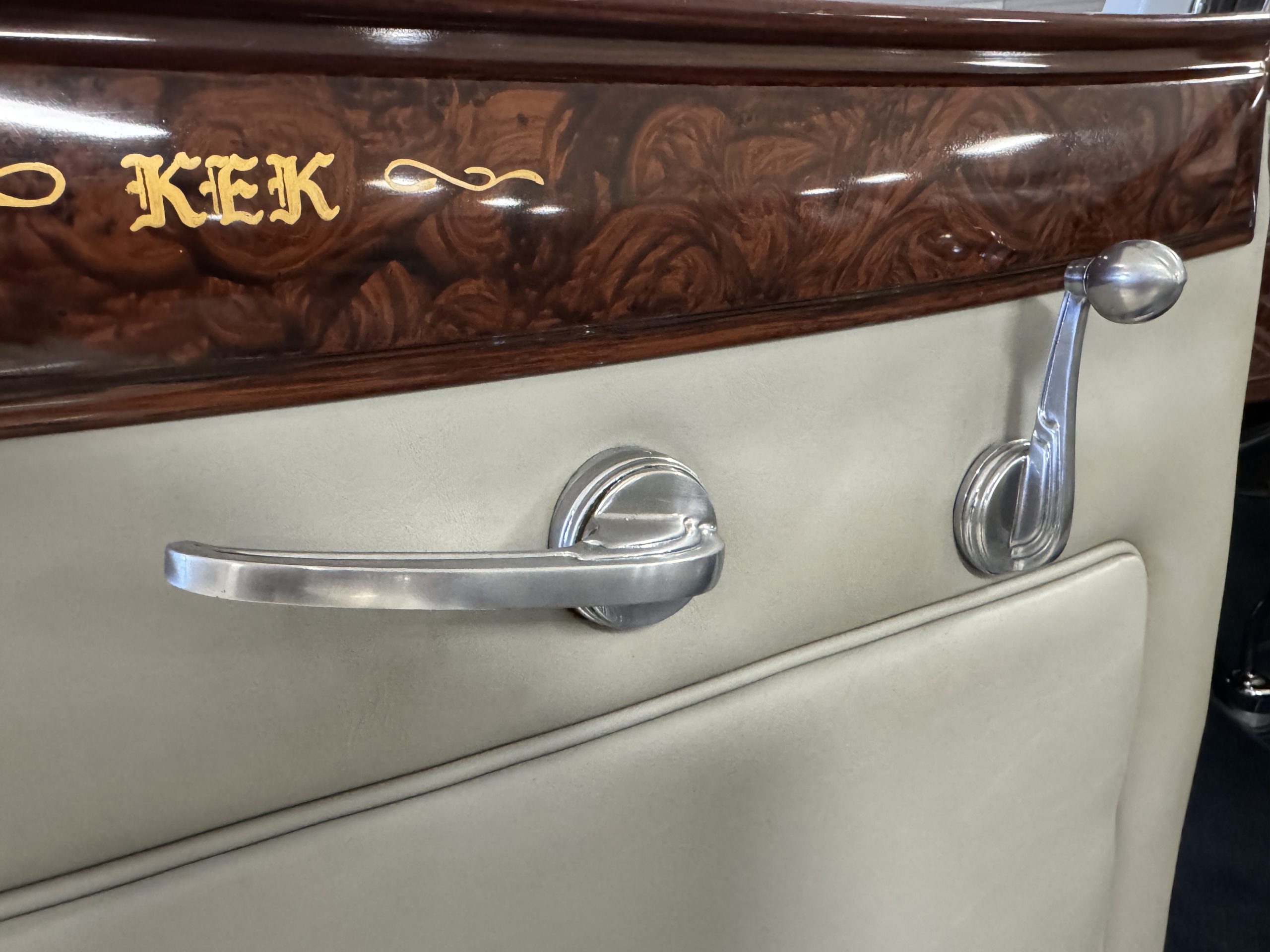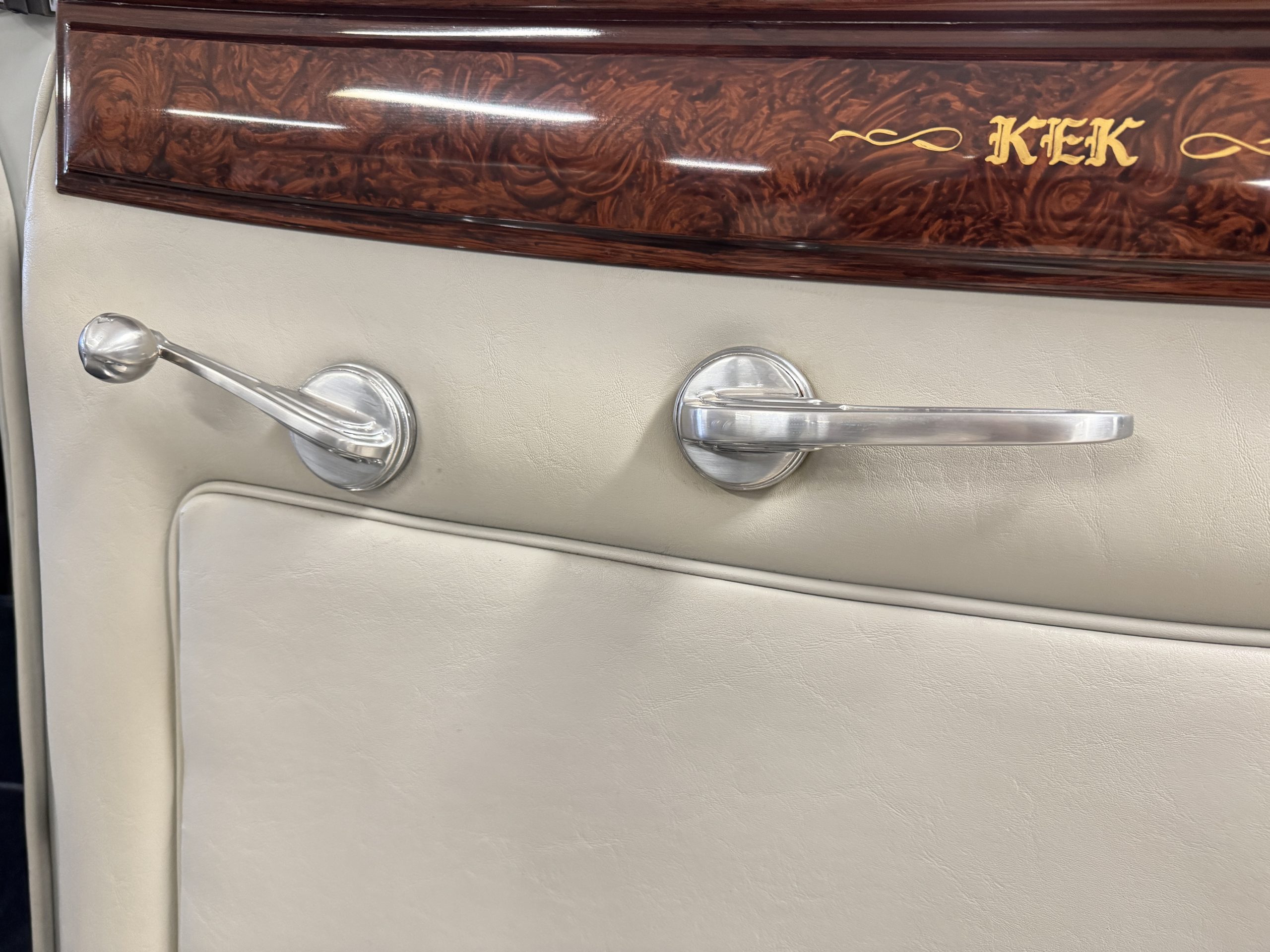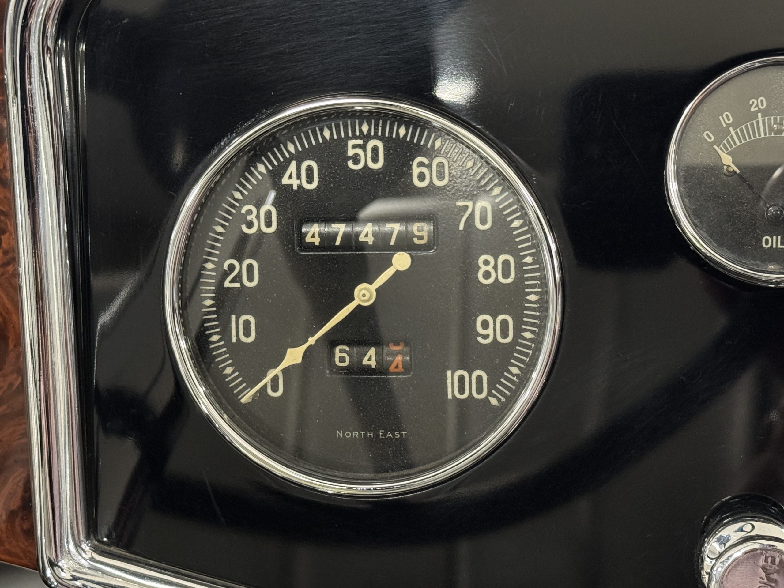 Power is supplied by Packard’s 384.8 cubic inch L-head inline eight-cylinder engine, delivering 135 horsepower through a four-speed manual transmission. The Packard drives really well with plenty of power, smooth shifting and comfortable suspension. The 903 chassis features vacuum-assisted clutch, adjustable ride control, and four-wheel mechanical drum brakes, technological innovations that made the Deluxe Eight one of the most advanced American cars of its time. With a 142⅛-inch wheelbase, the Packard delivers a remarkably smooth and composed ride. Recent servicing in September 2025 included a new battery, spark plugs, fuel pump, filter, and line, along with a tank cleaning, ensuring reliable operation.