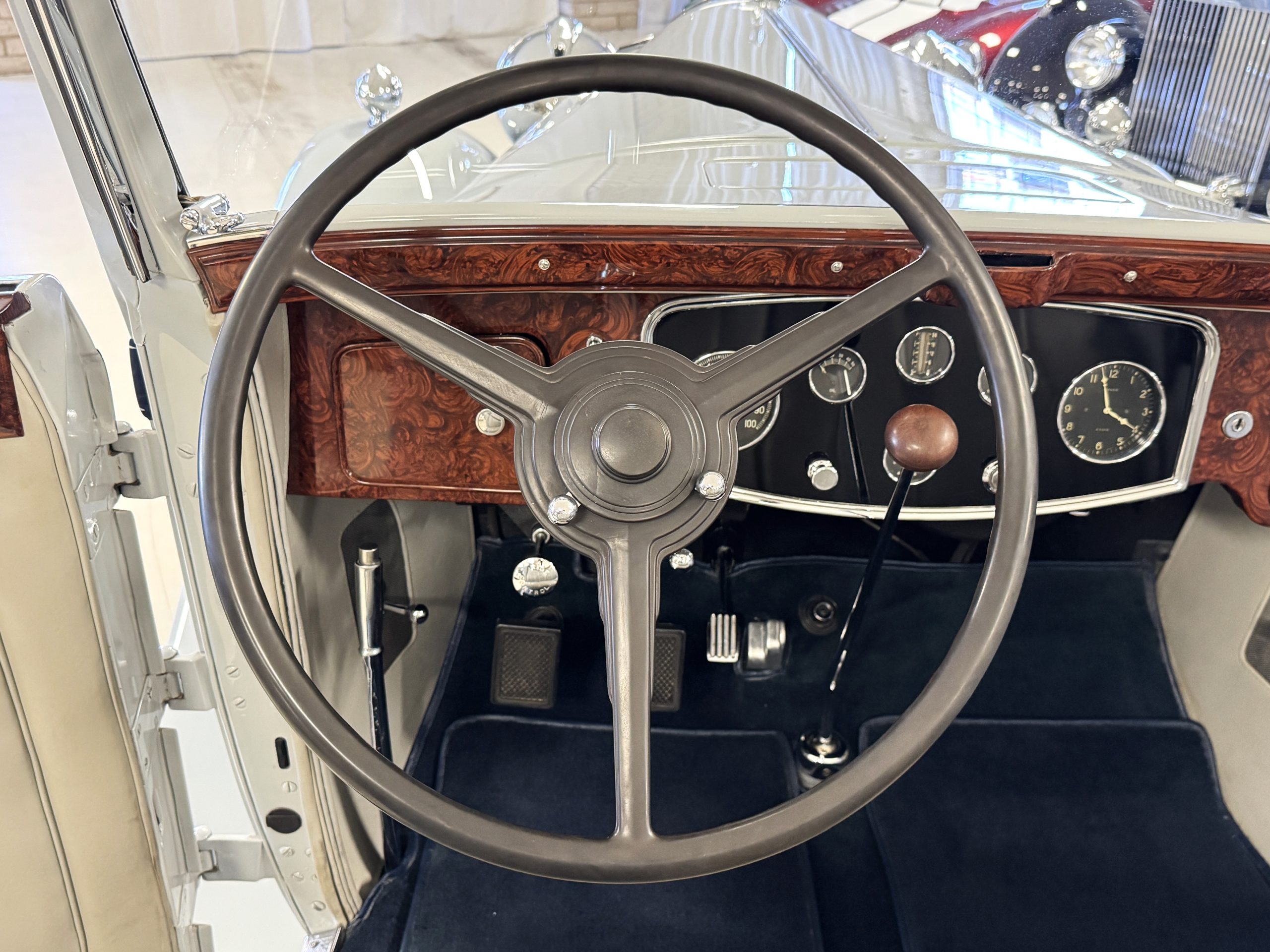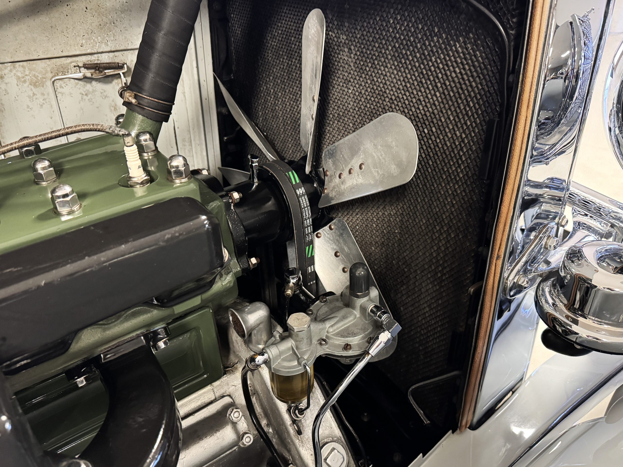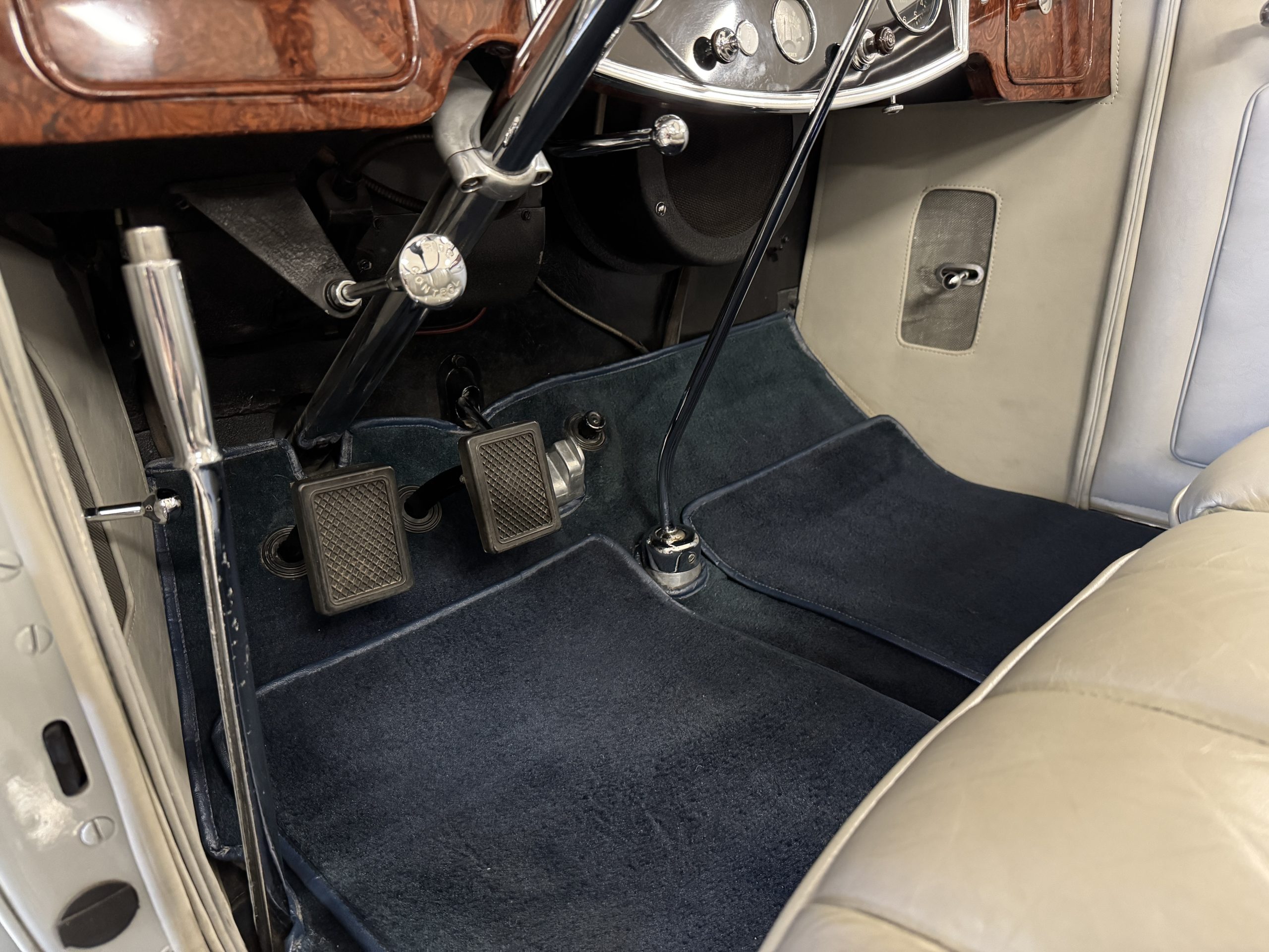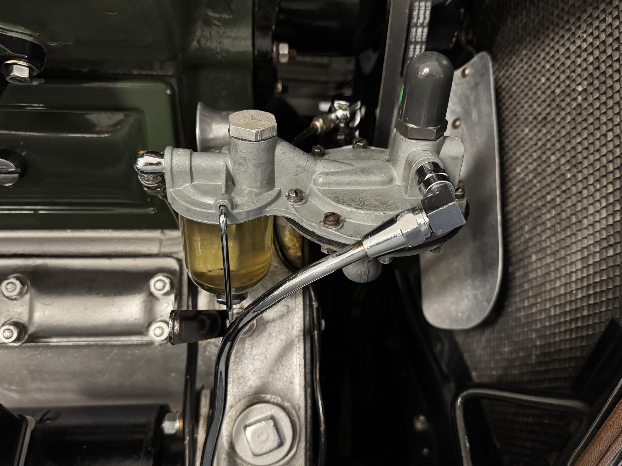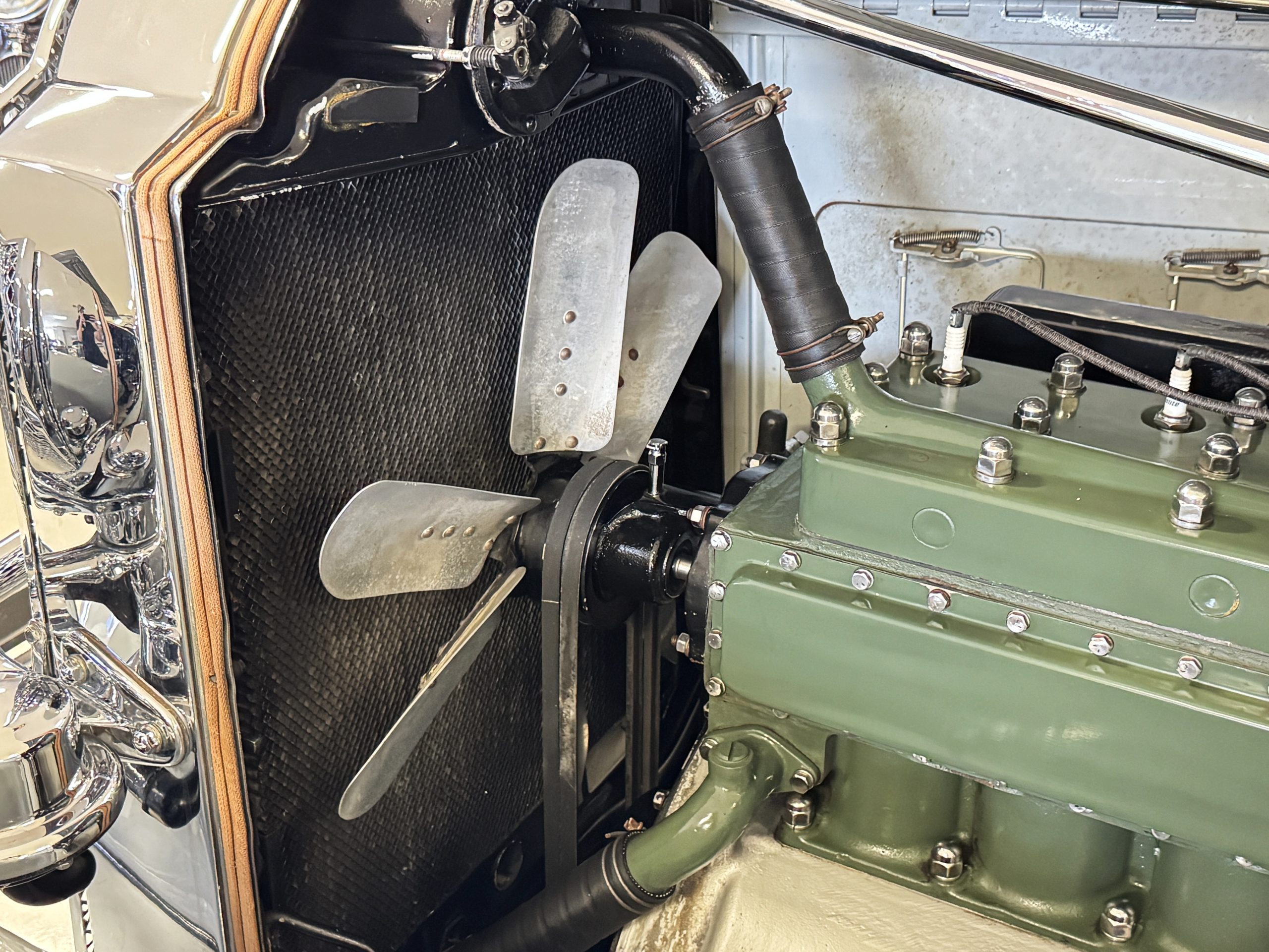Power is supplied by Packard’s 384.8 cubic inch L-head inline eight-cylinder engine, delivering 135 horsepower through a four-speed manual transmission. The Packard drives really well with plenty of power, smooth shifting and comfortable suspension. The 903 chassis features vacuum-assisted clutch, adjustable ride control, and four-wheel mechanical drum brakes, technological innovations that made the Deluxe Eight one of the most advanced American cars of its time. With a 142⅛-inch wheelbase, the Packard delivers a remarkably smooth and composed ride. Recent servicing in September 2025 included a new battery, spark plugs, fuel pump, filter, and line, along with a tank cleaning, ensuring reliable operation.