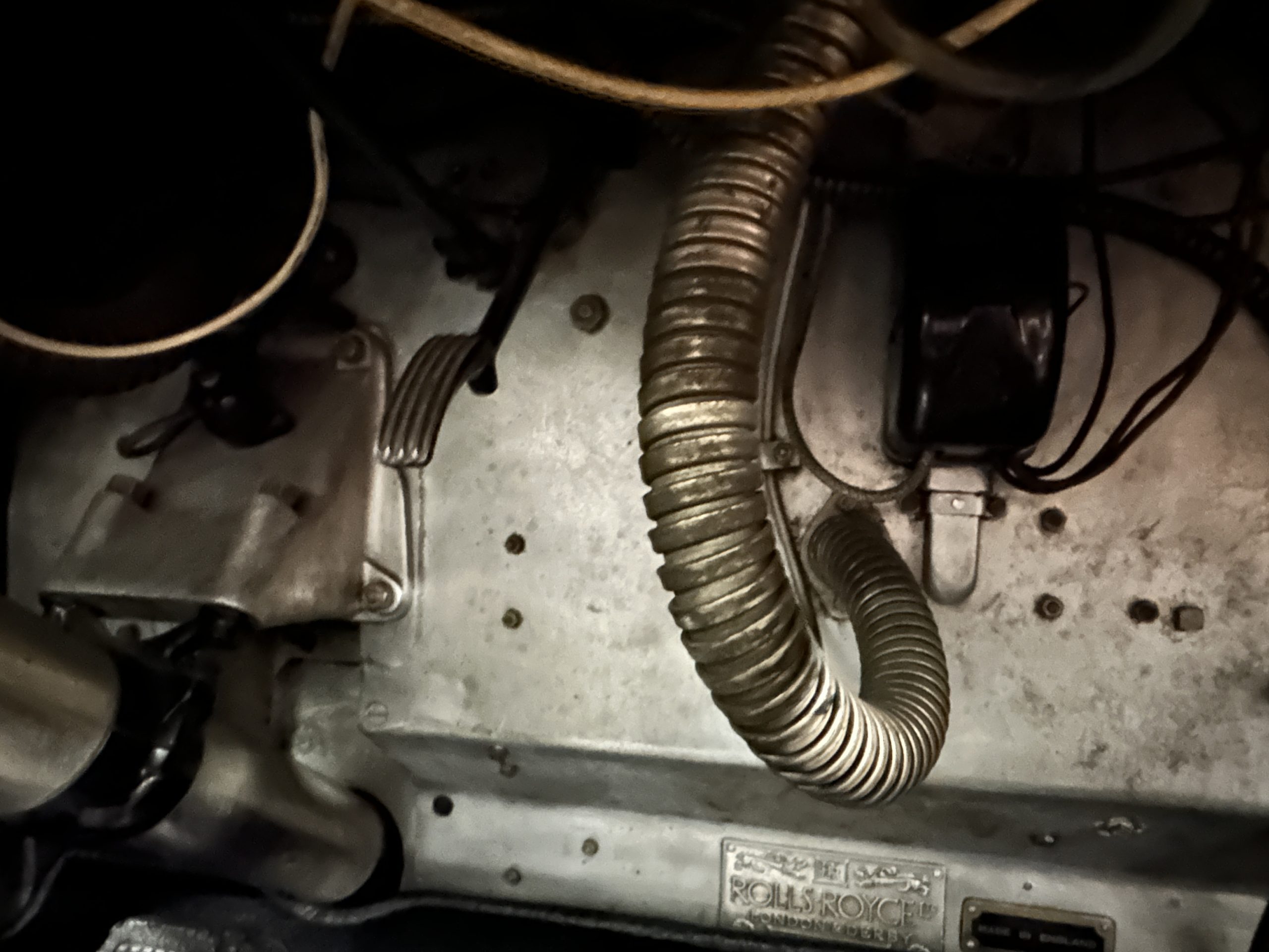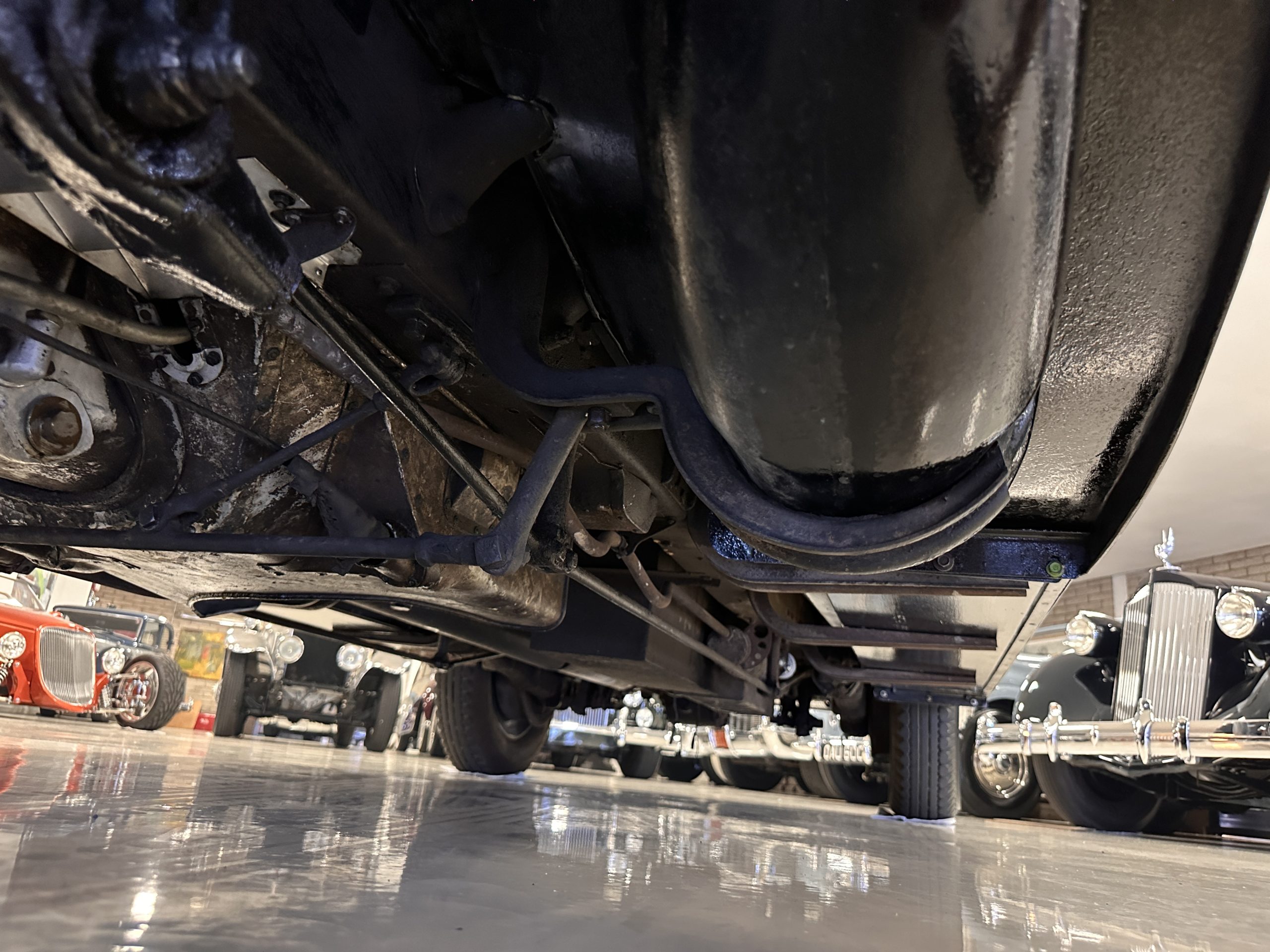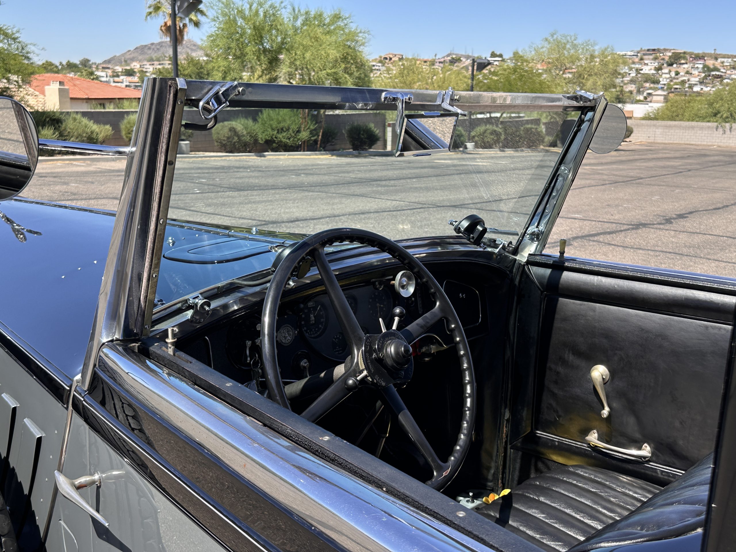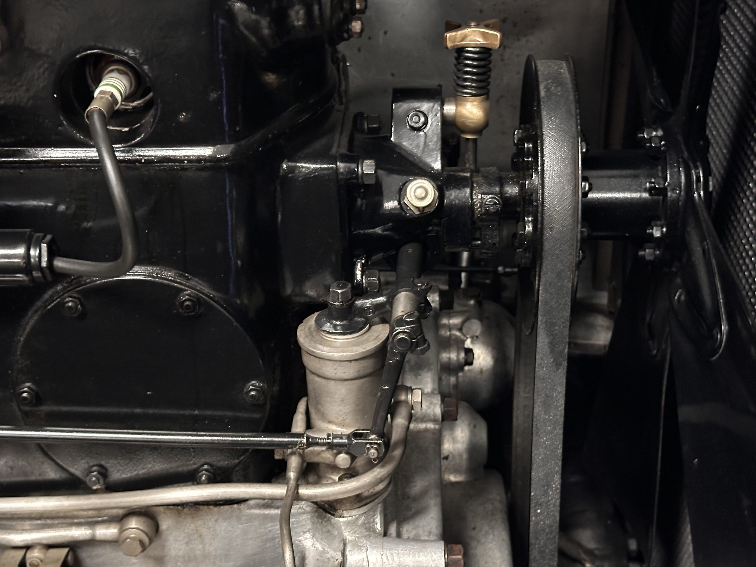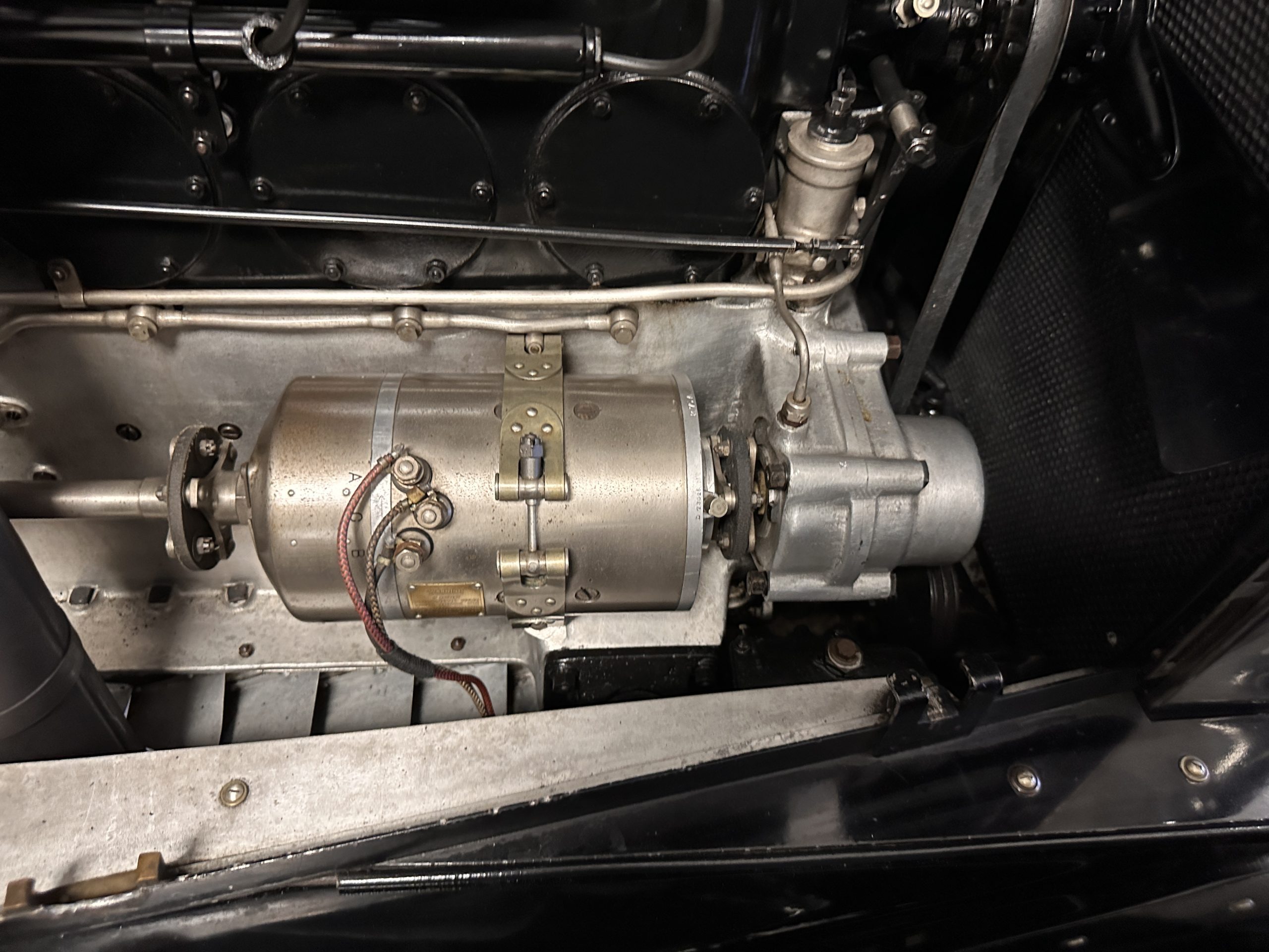 The engine compartment is home to the massive 7.7 liter inline-six engine that is the ultimate of refinement. This is the original engine (No. R75A) with matching numbered components. The later AJS Series engine delivered smoother power and better performance and is coupled with a four-speed manual transmission, which includes synchromesh on third and fourth gears. The engine compartment is beautifully detailed and includes the Dunlap wheel wrench and hammer. The drivetrain is quiet and powerful and performed well even in the 100-degree Fahrenheit weather in Phoenix.