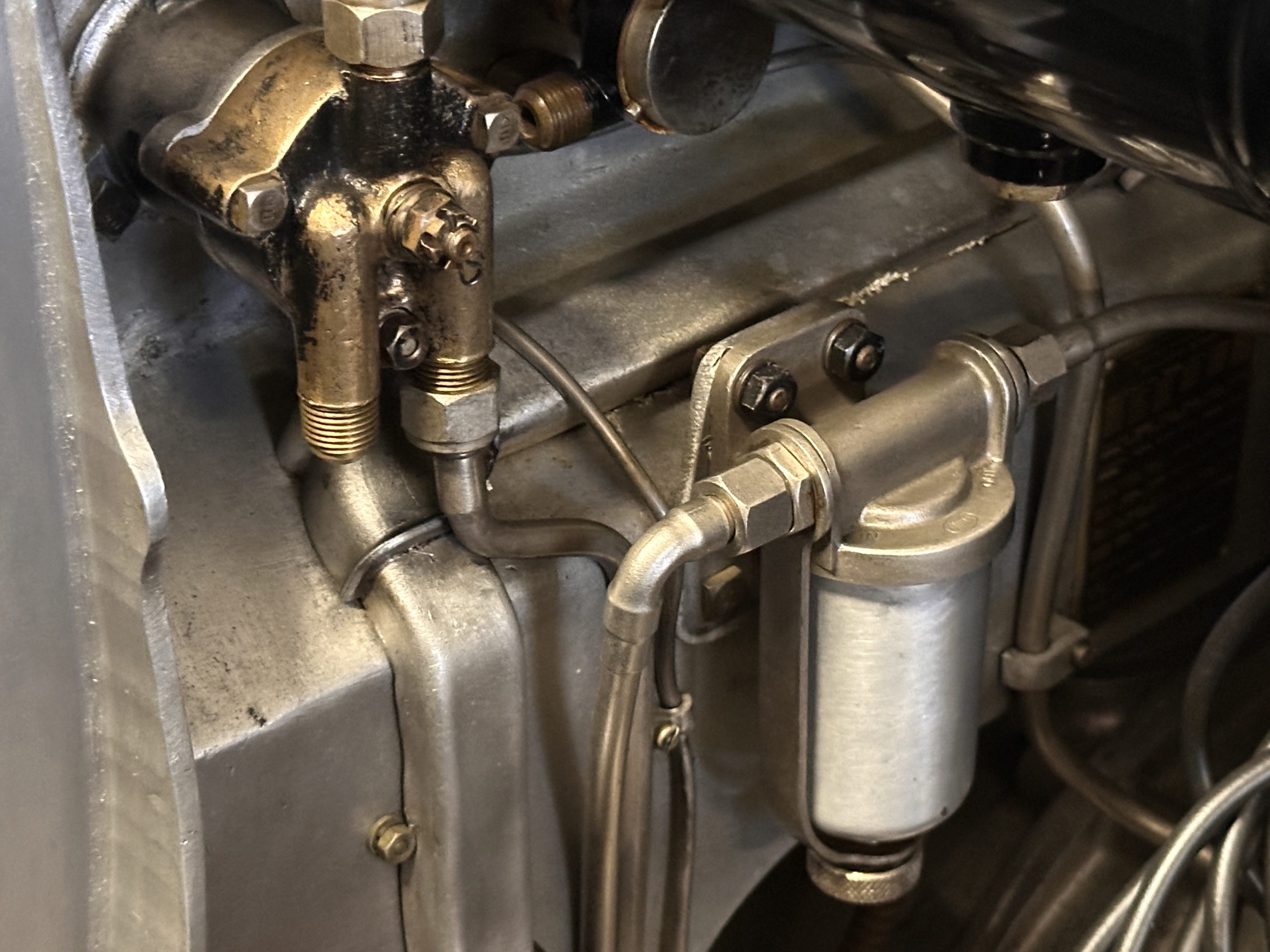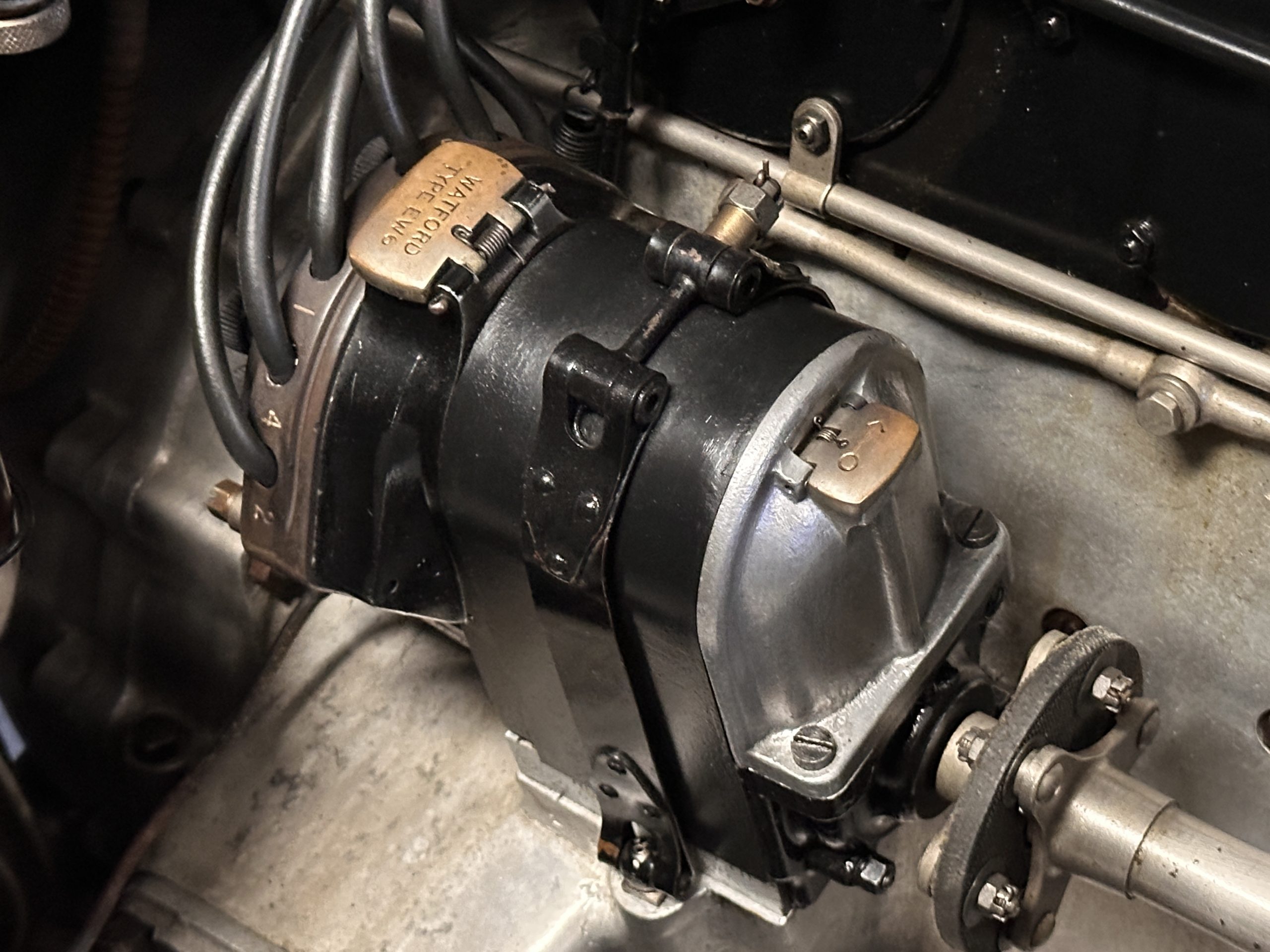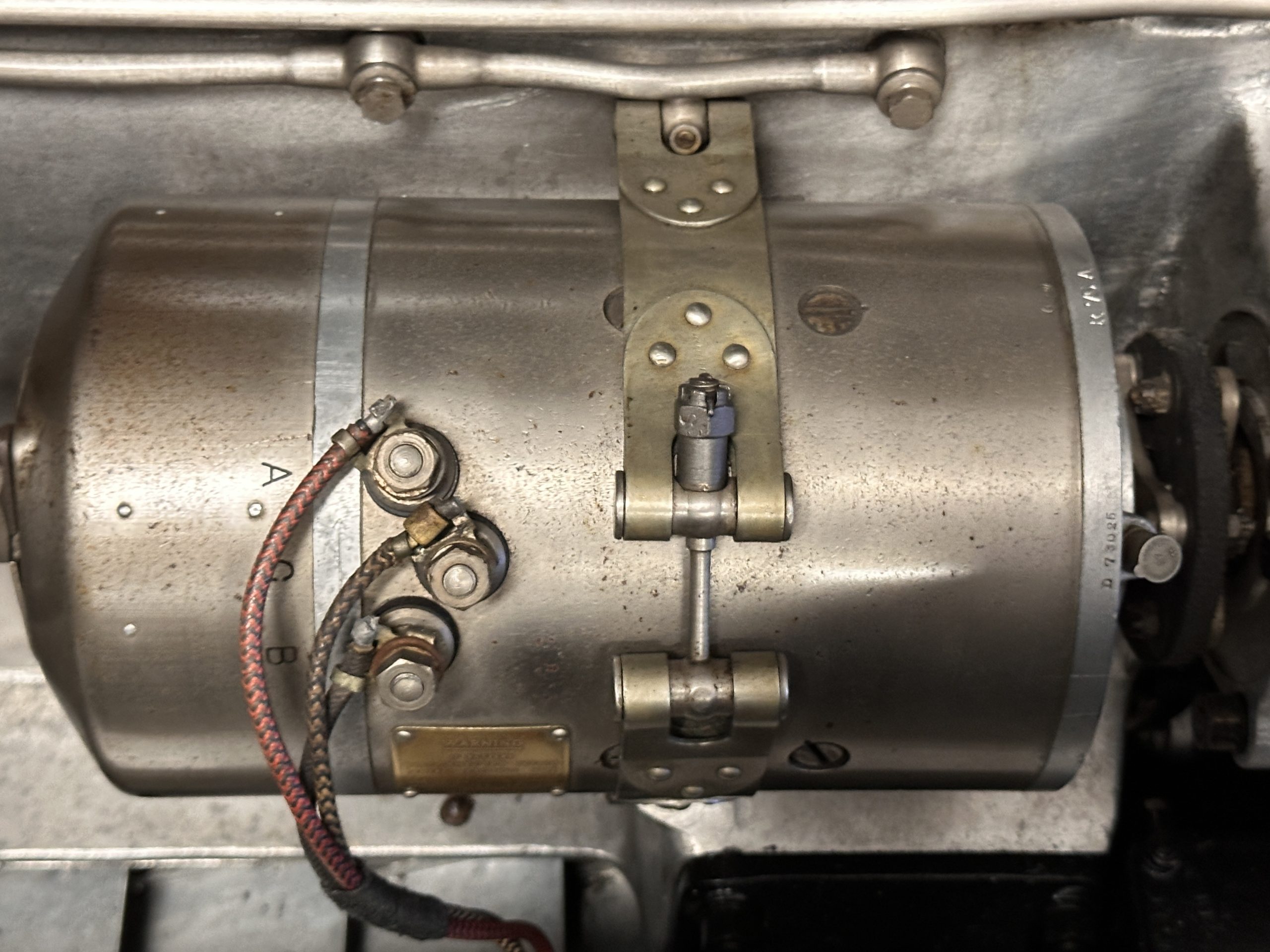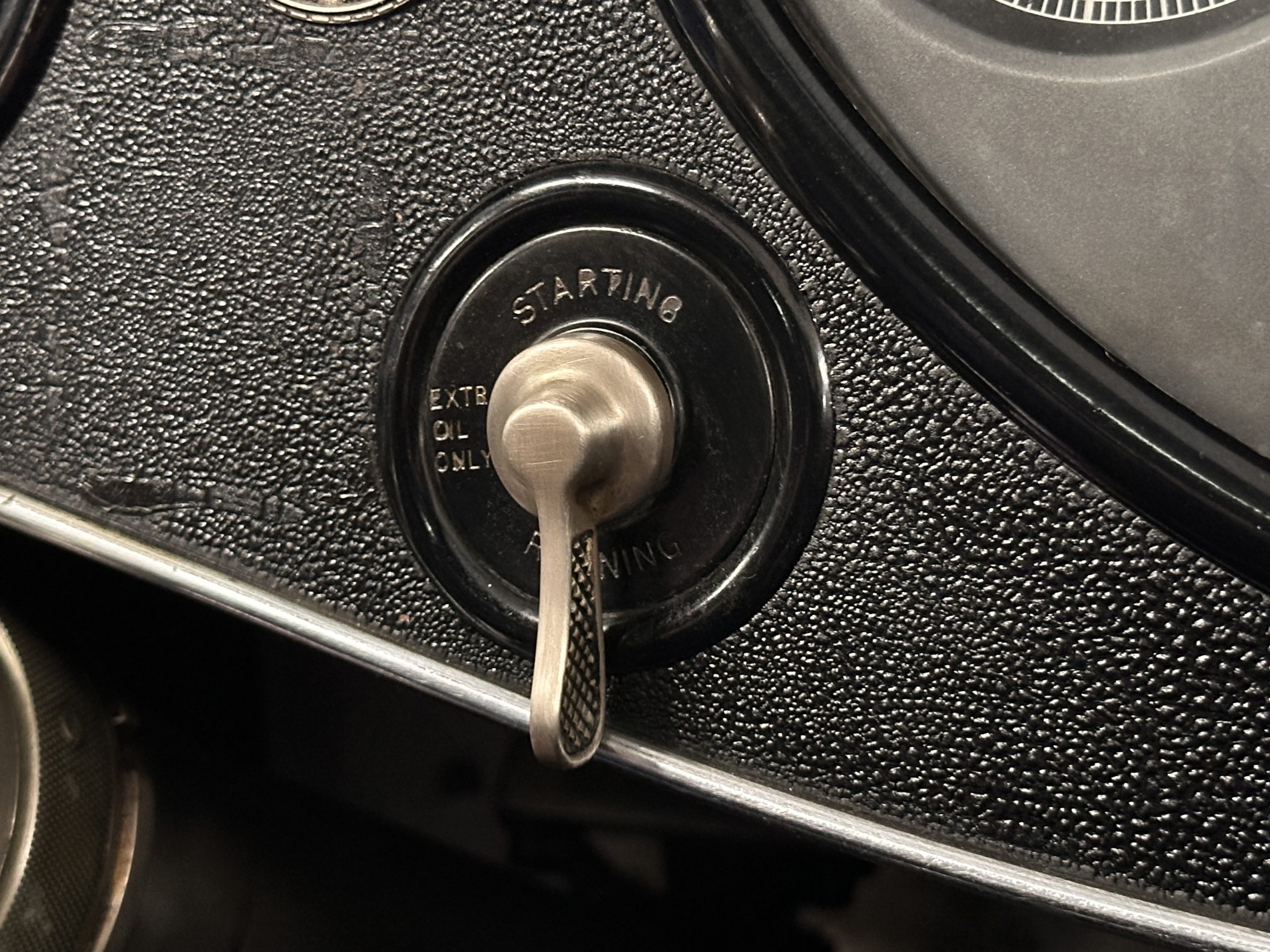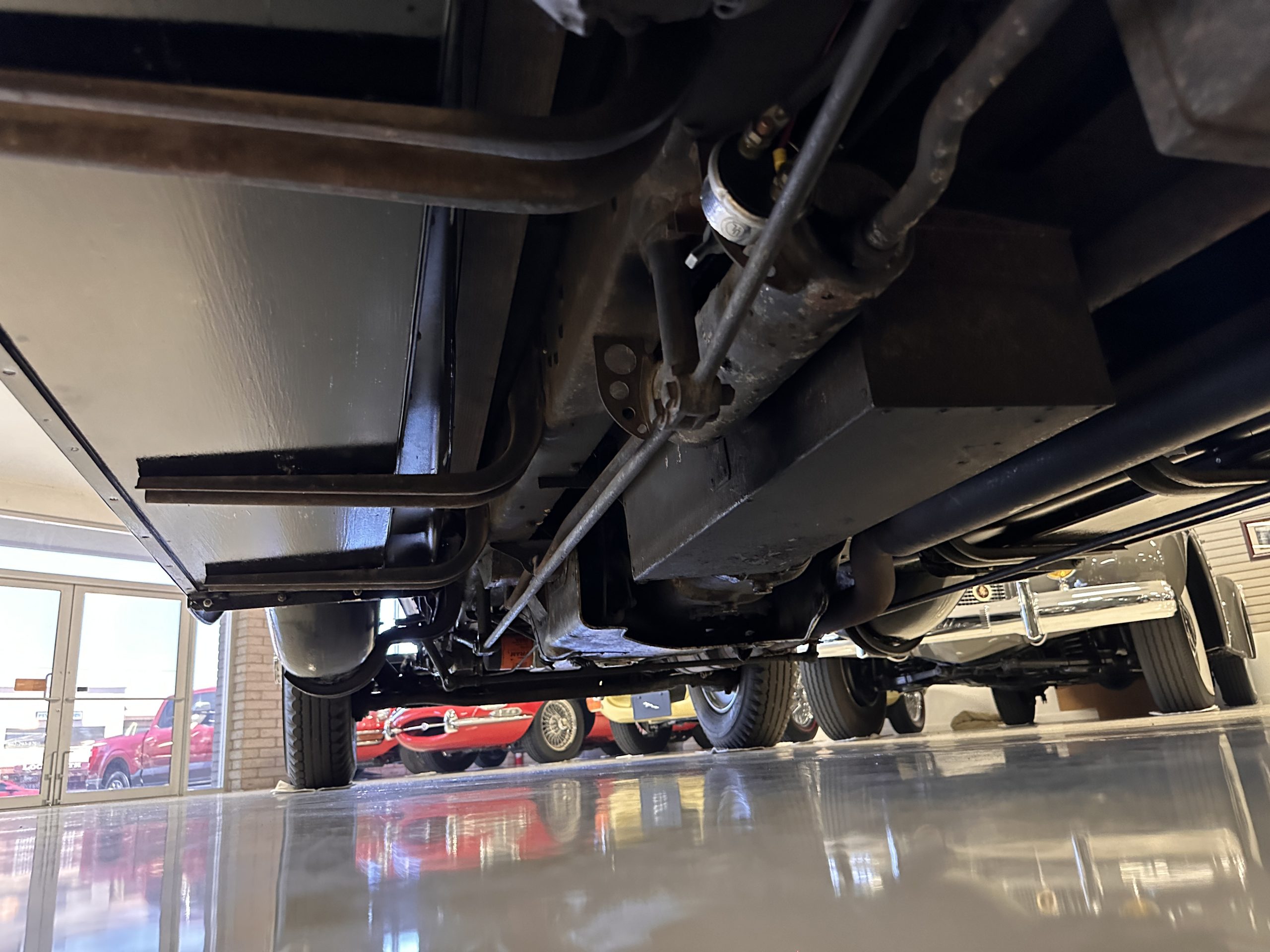 The engine compartment is home to the massive 7.7 liter inline-six engine that is the ultimate of refinement. This is the original engine (No. R75A) with matching numbered components. The later AJS Series engine delivered smoother power and better performance and is coupled with a four-speed manual transmission, which includes synchromesh on third and fourth gears. The engine compartment is beautifully detailed and includes the Dunlap wheel wrench and hammer. The drivetrain is quiet and powerful and performed well even in the 100-degree Fahrenheit weather in Phoenix.