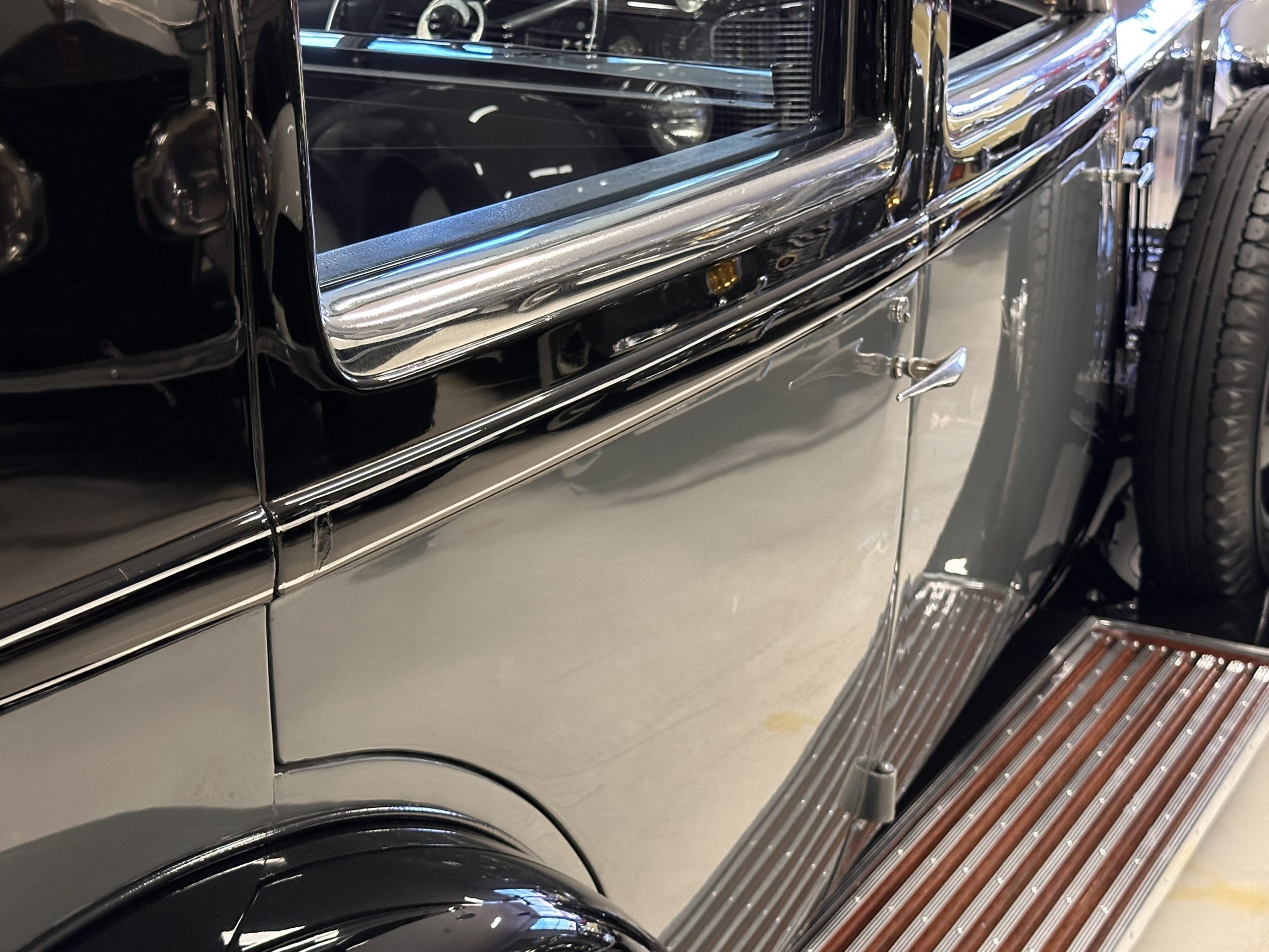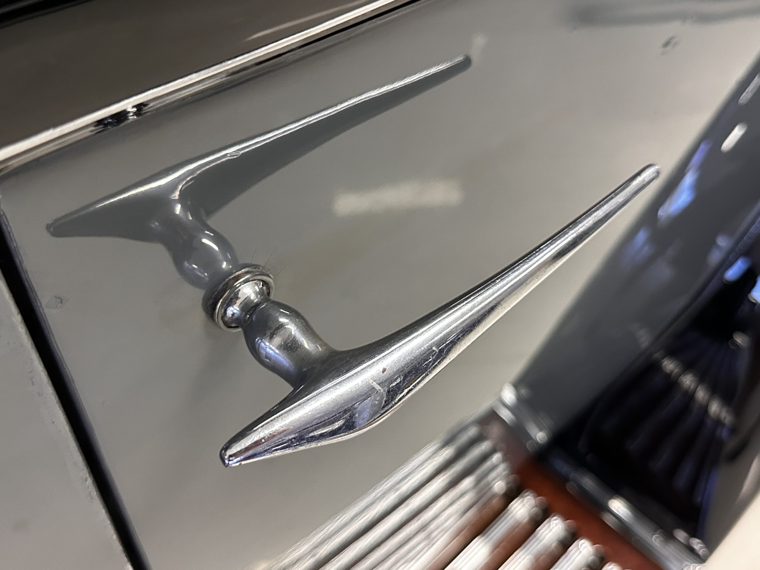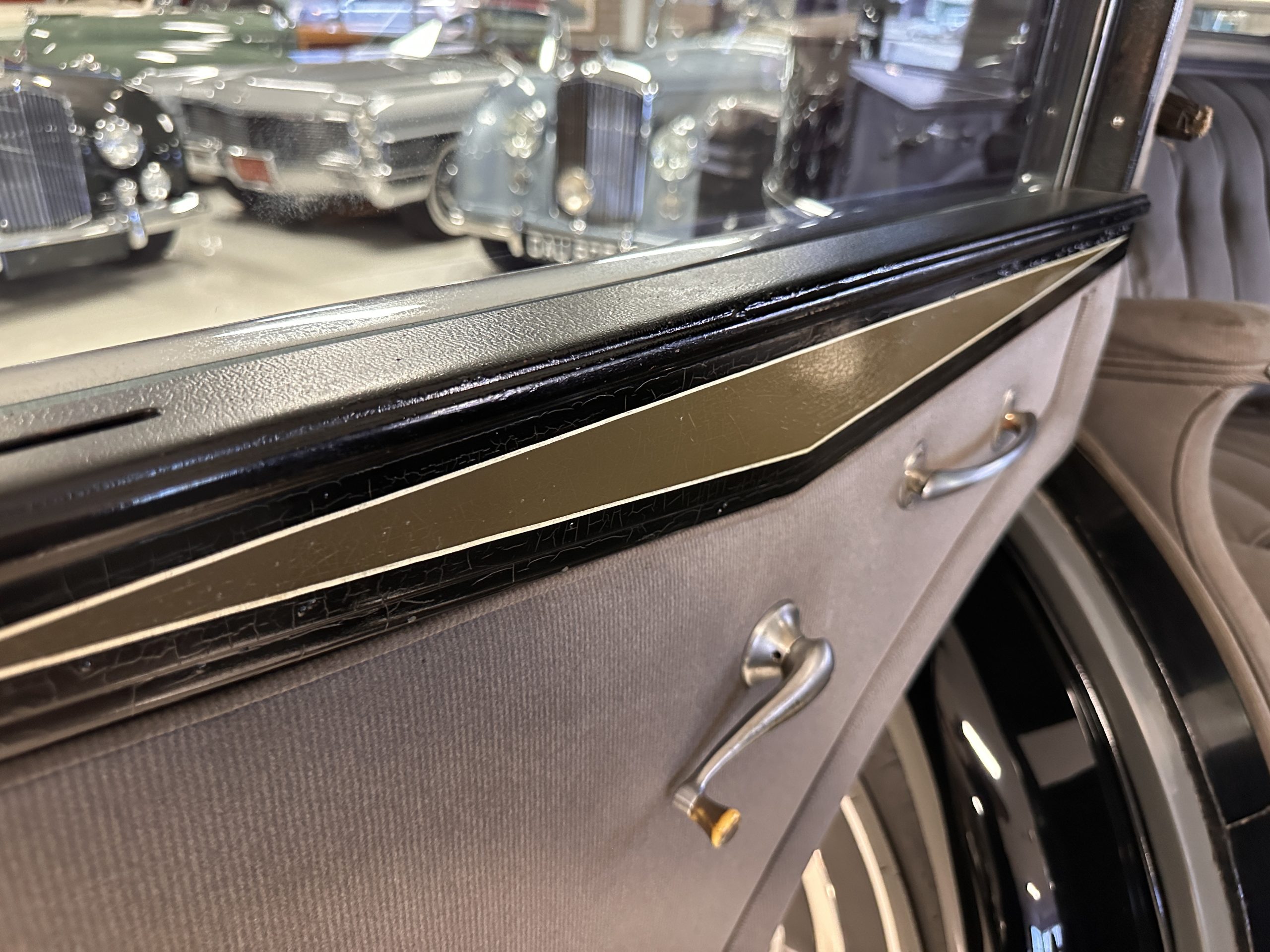 298AJS is the ultimate in luxury with its two-toned Gray and Black livery. Over the past year, the present owner has repainted most of the fenders in its original Masons Black with beautiful shine and luster. The Black on the upper portions of the body and hood appear to be original along with the Gray sides of the body. There are many small areas of touched up paint in the higher use areas but overall it looks wonderful and would present beautifully in a preservation concours class.