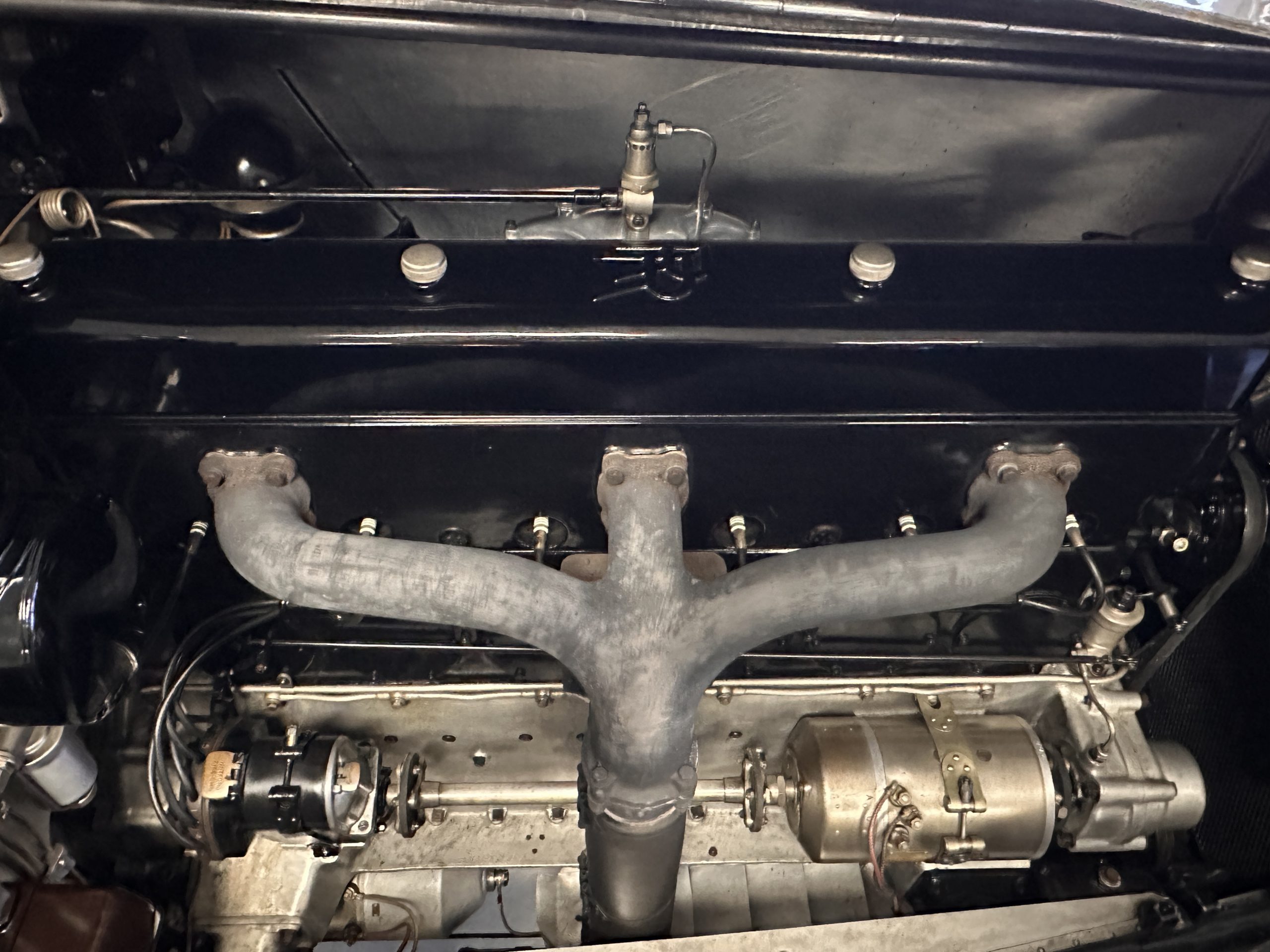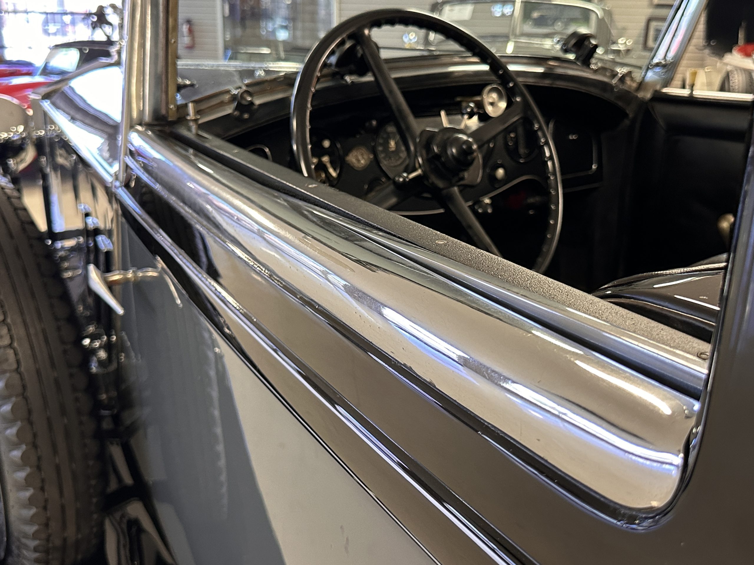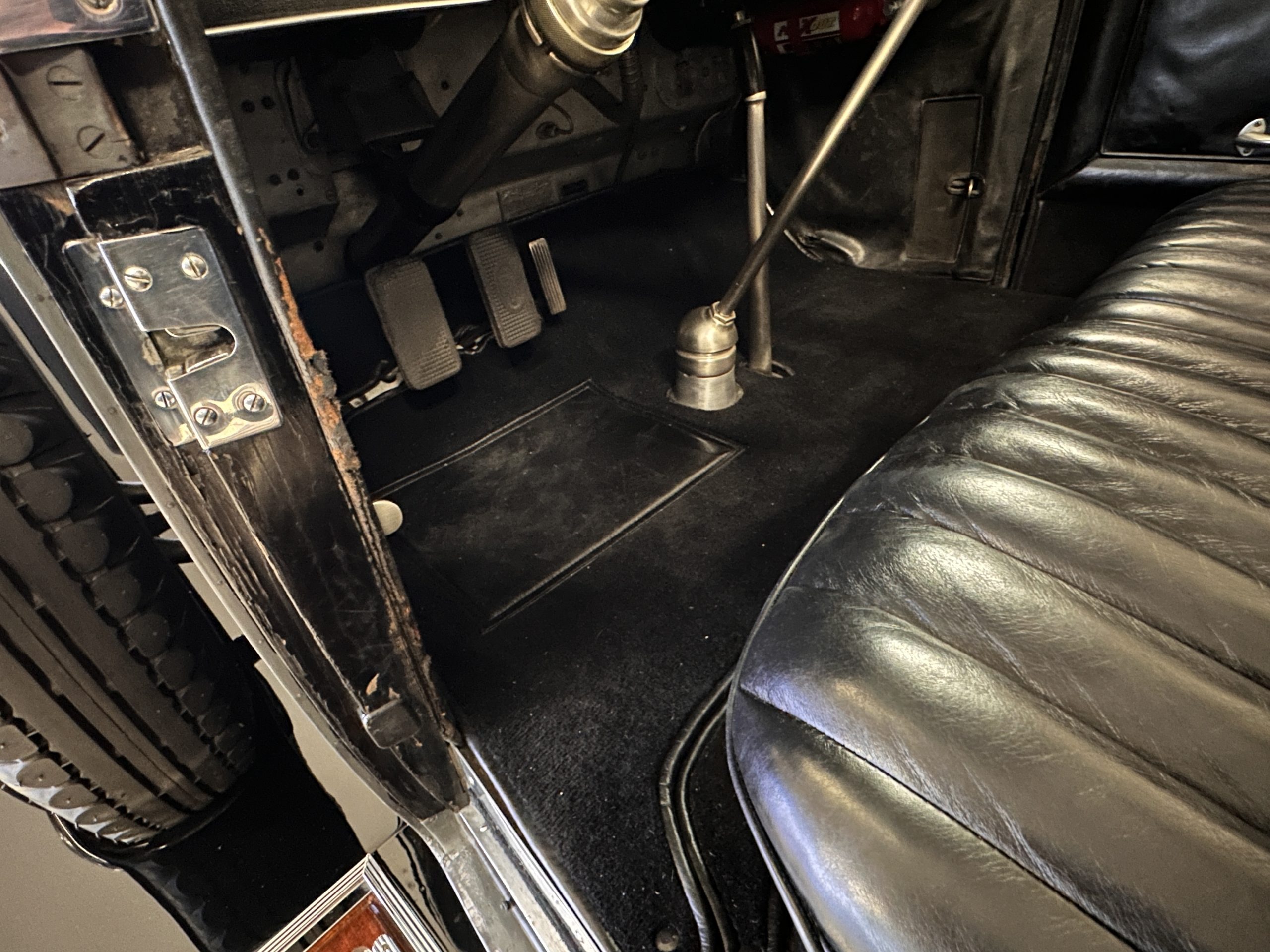 298AJS is the ultimate in luxury with its two-toned Gray and Black livery. Over the past year, the present owner has repainted most of the fenders in its original Masons Black with beautiful shine and luster. The Black on the upper portions of the body and hood appear to be original along with the Gray sides of the body. There are many small areas of touched up paint in the higher use areas but overall it looks wonderful and would present beautifully in a preservation concours class.