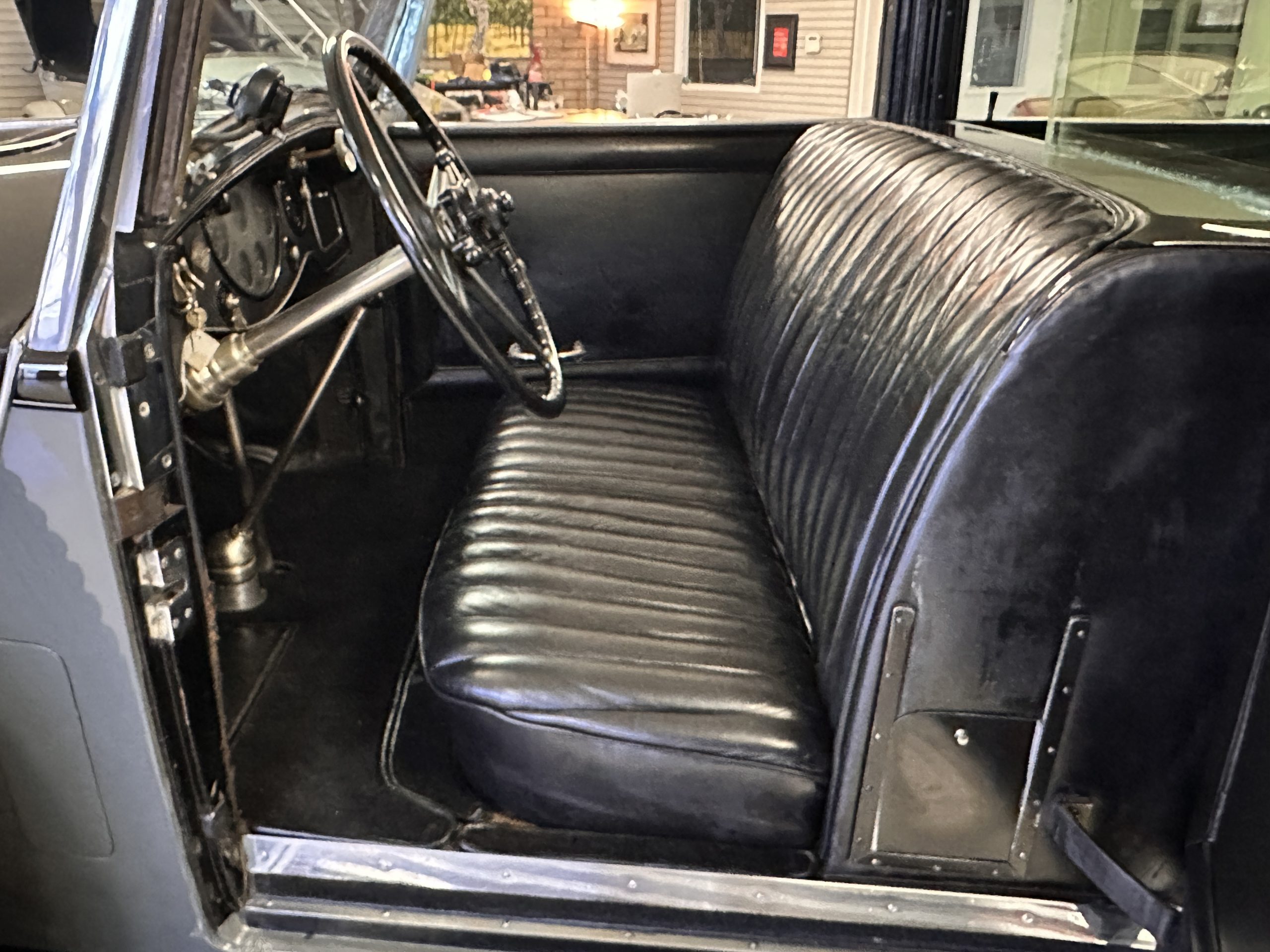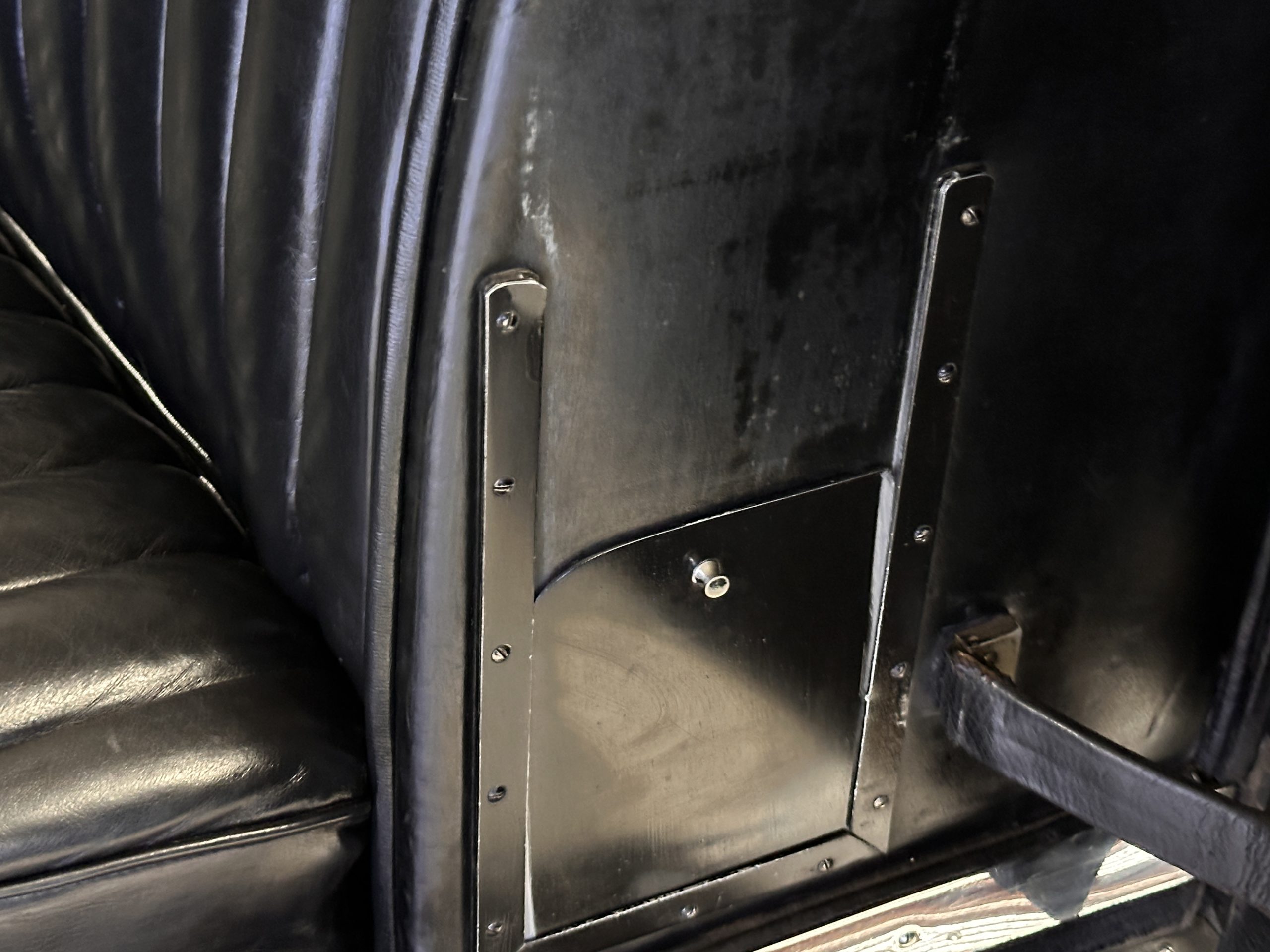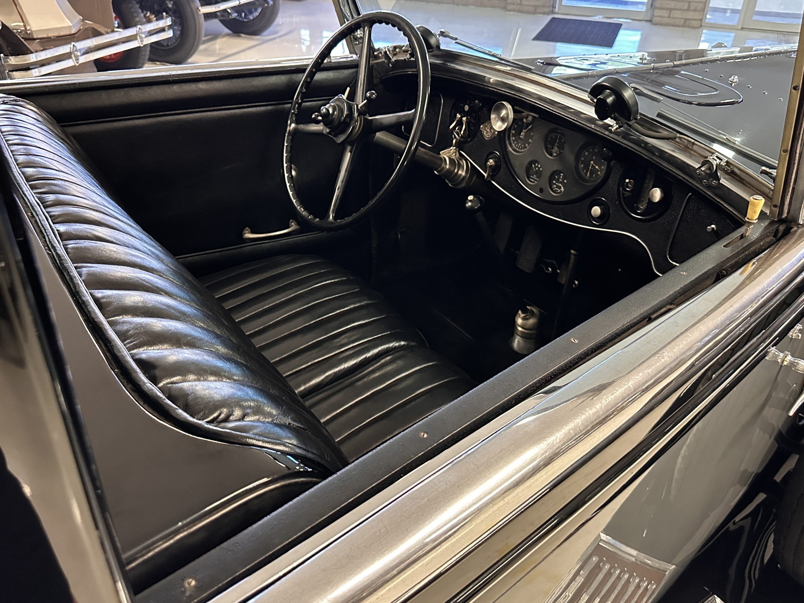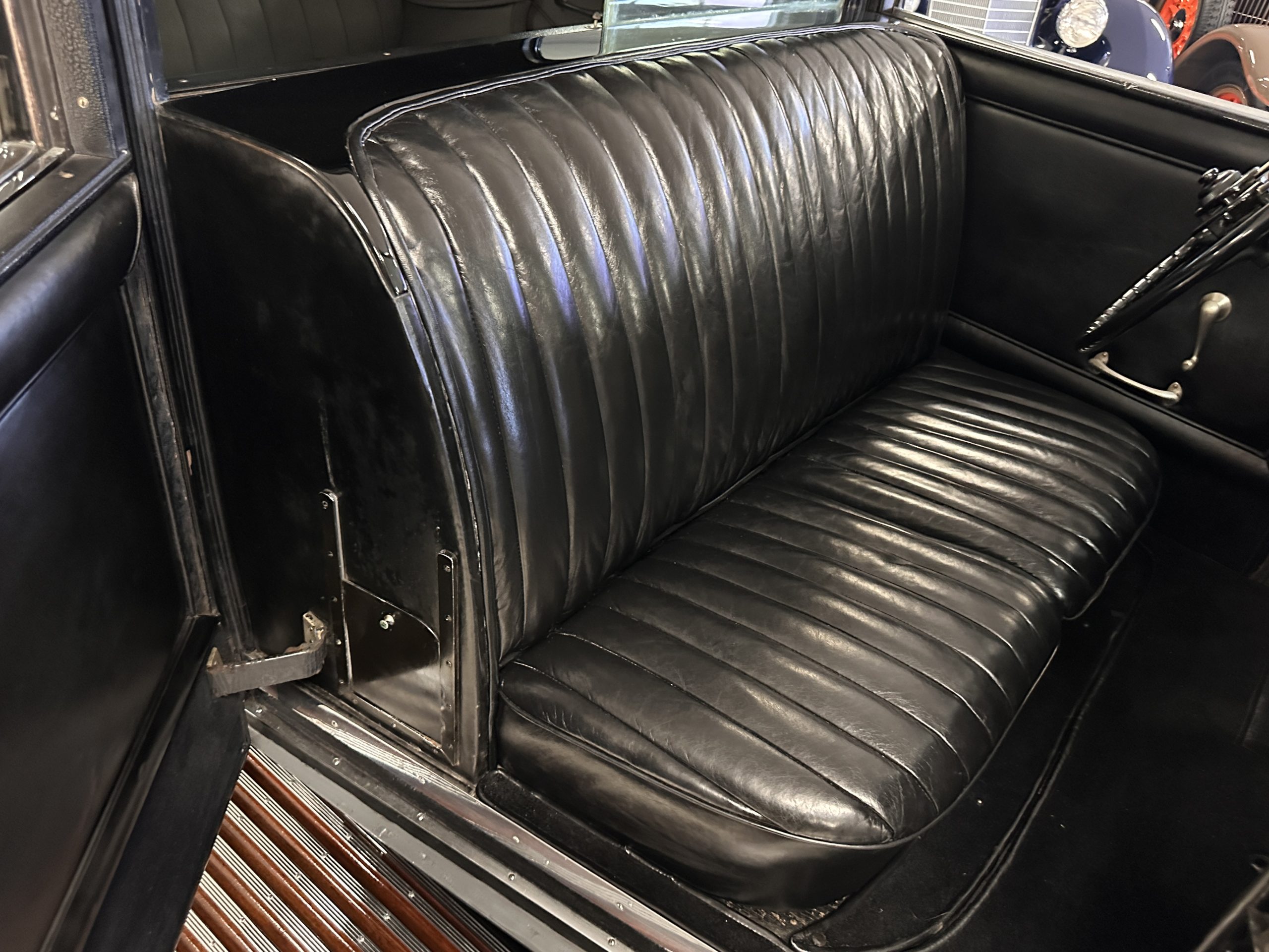 The interior is beautifully preserved with restoration performed only as needed. The driver’s compartment is a delight to experience when driving. The open chauffer’s compartment with its raked windscreen makes it very comfortable for driving. All of the instruments work as they should, save for the fuel gauge and the clock. The original black dashboard has superficial cracking from the original lacquer and the black leather seating has been replaced.
