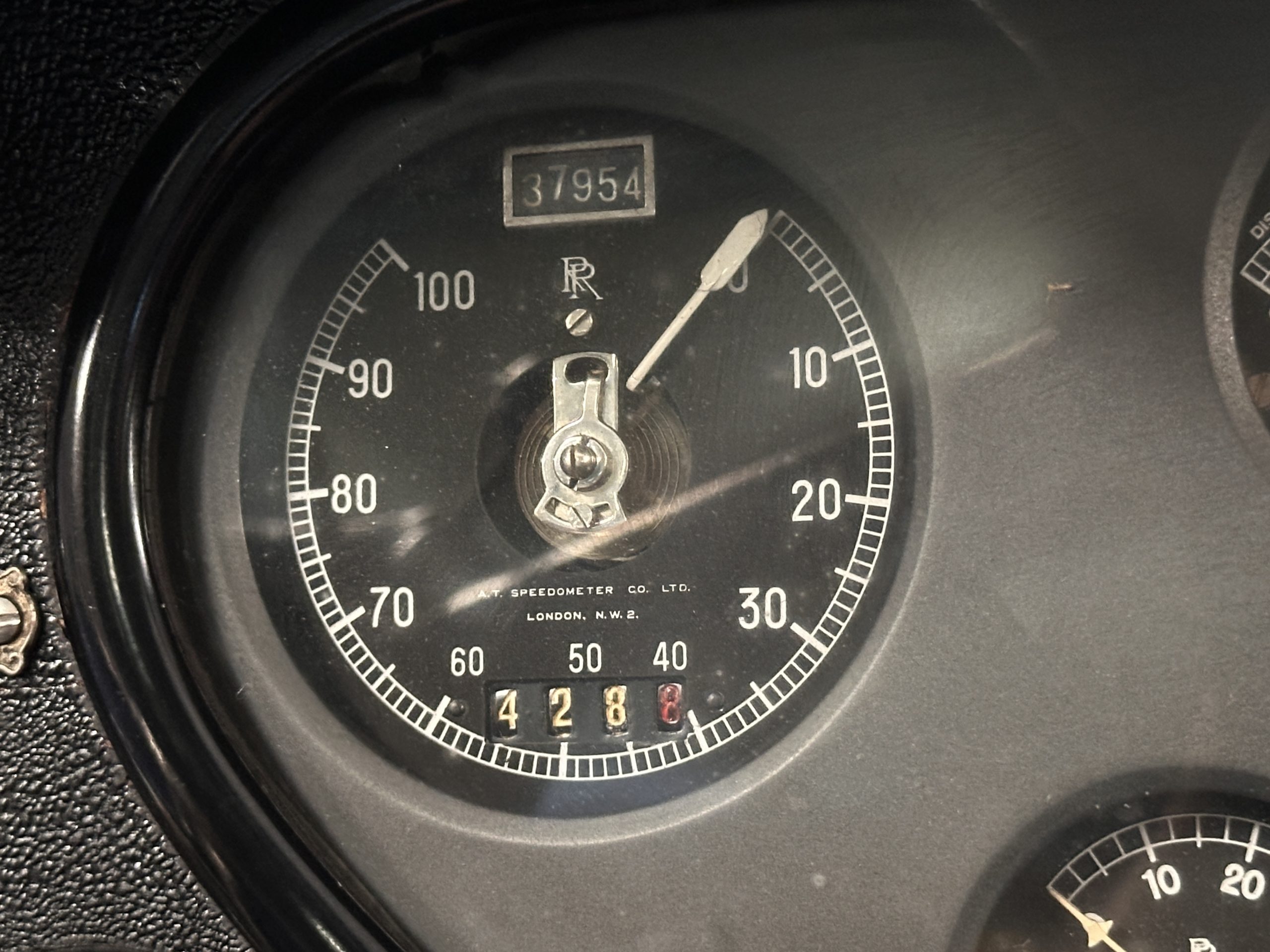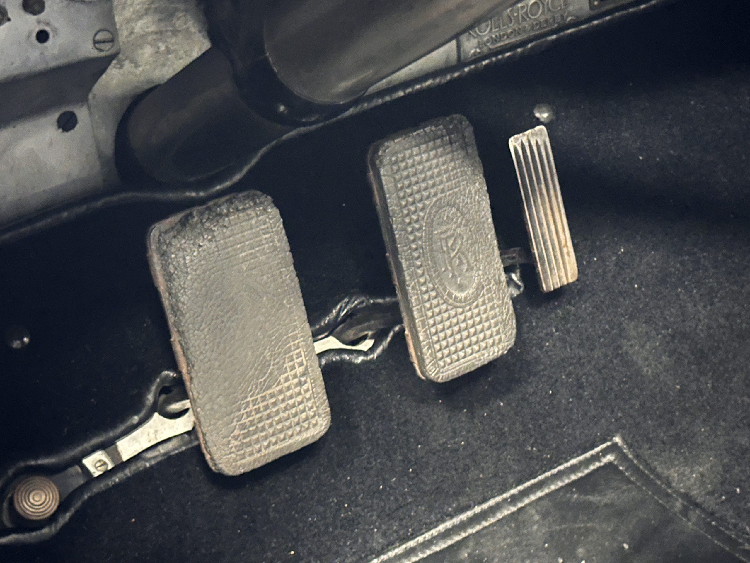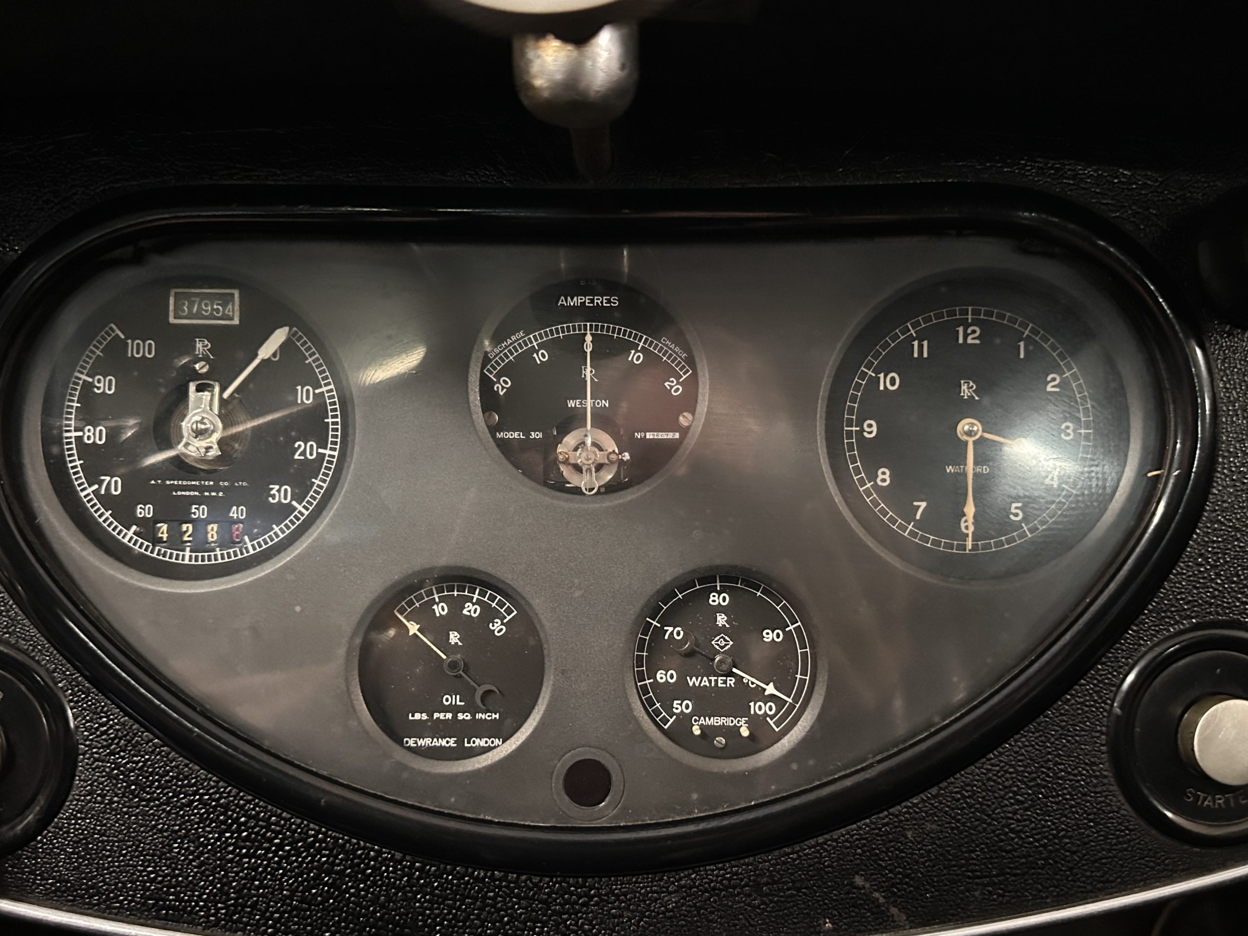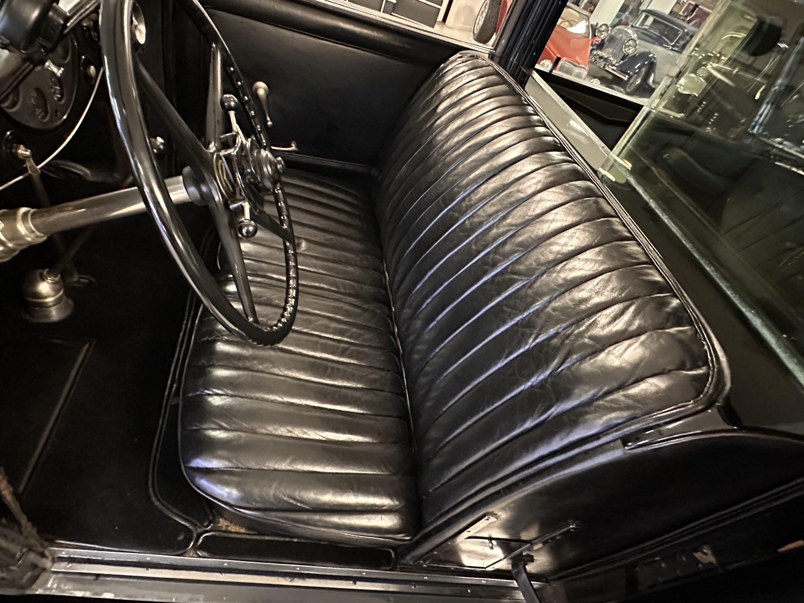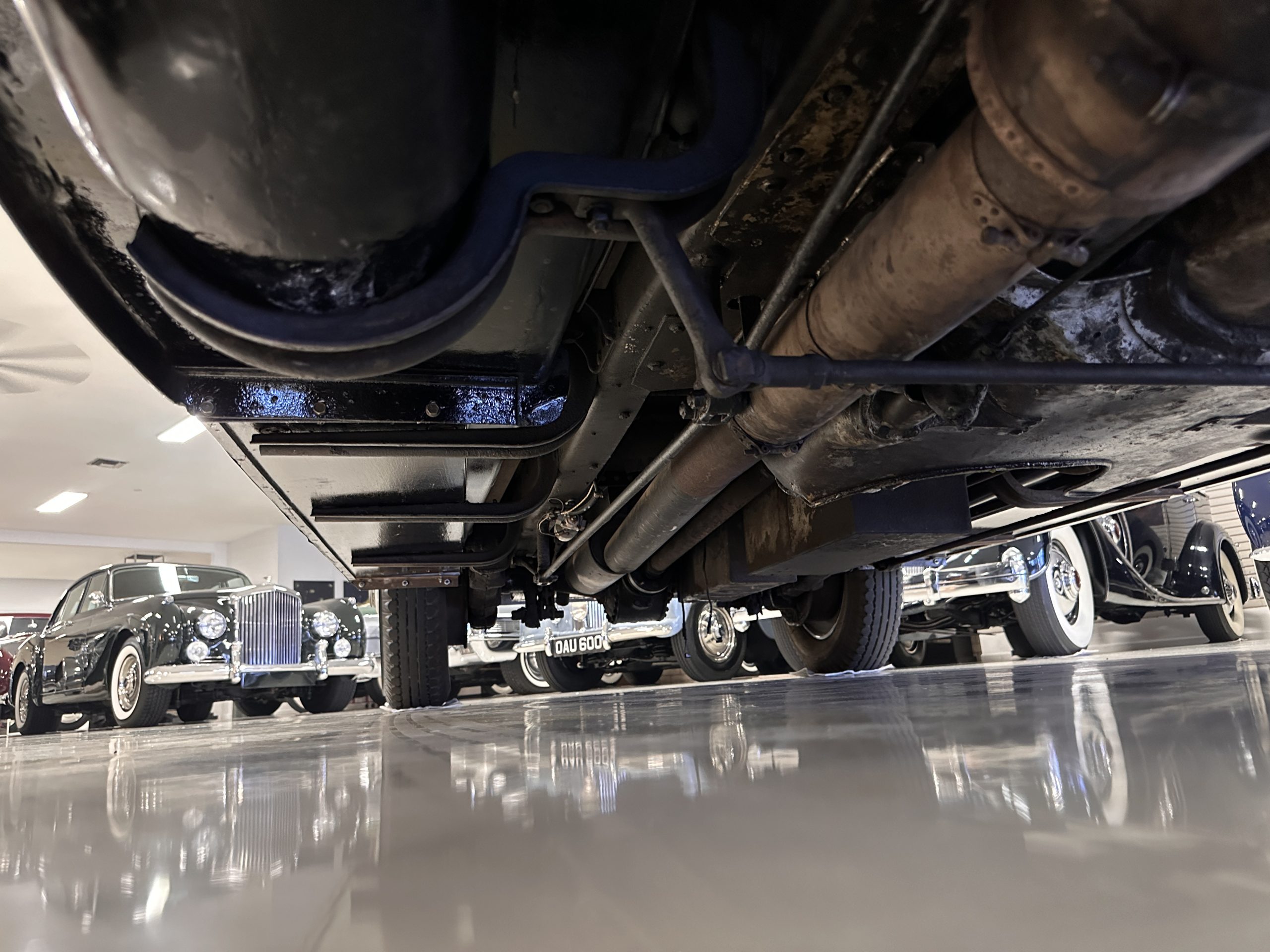 The interior is beautifully preserved with restoration performed only as needed. The driver’s compartment is a delight to experience when driving. The open chauffer’s compartment with its raked windscreen makes it very comfortable for driving. All of the instruments work as they should, save for the fuel gauge and the clock. The original black dashboard has superficial cracking from the original lacquer and the black leather seating has been replaced.