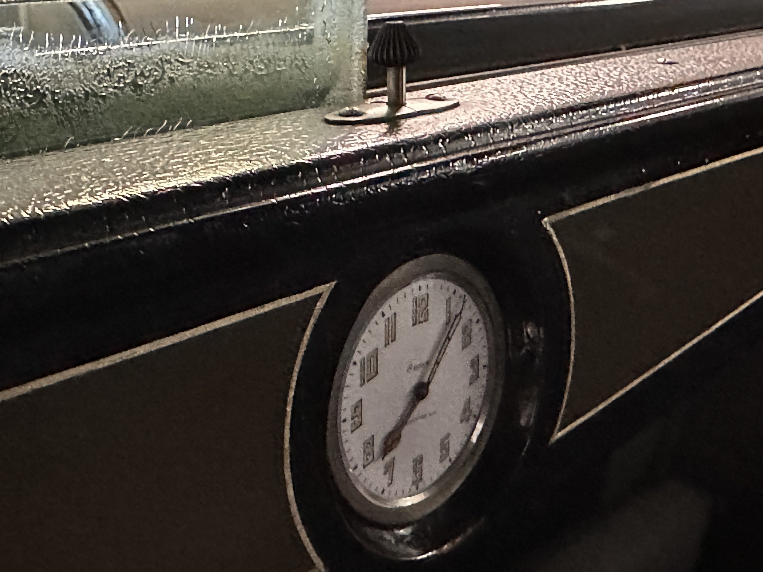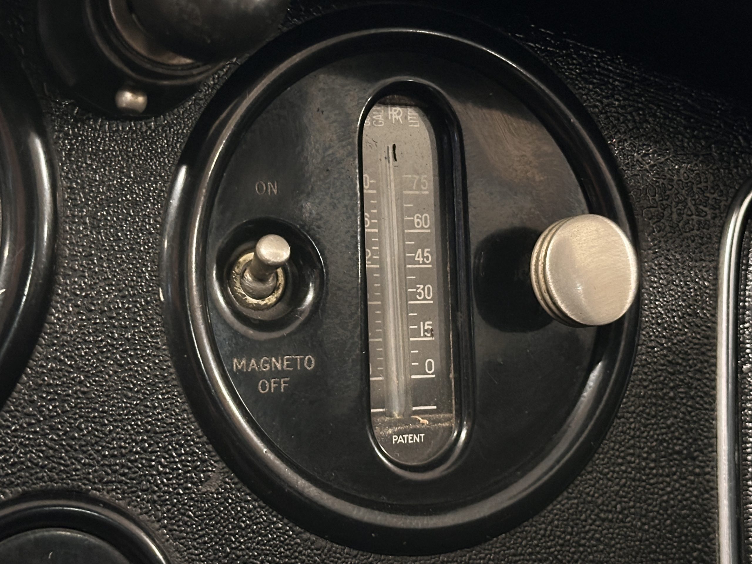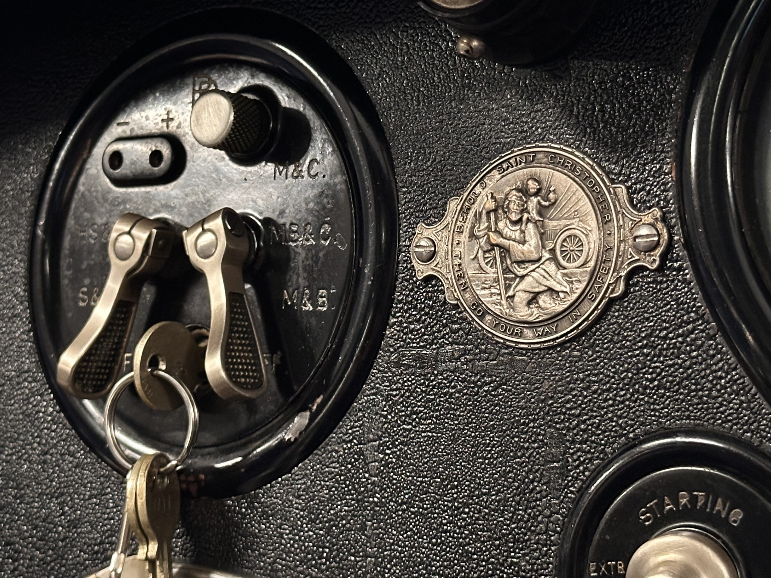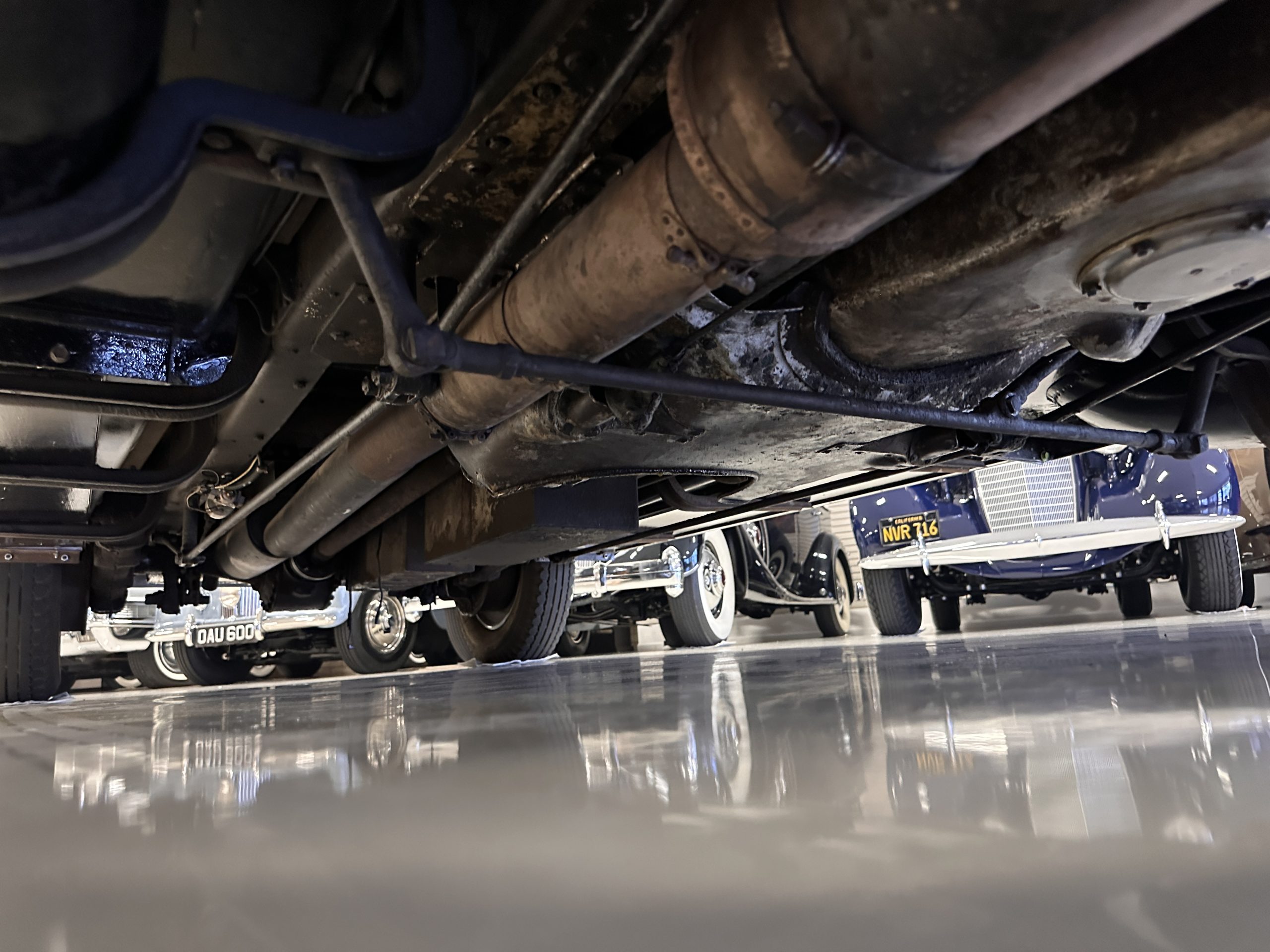 The interior is beautifully preserved with restoration performed only as needed. The driver’s compartment is a delight to experience when driving. The open chauffer’s compartment with its raked windscreen makes it very comfortable for driving. All of the instruments work as they should, save for the fuel gauge and the clock. The original black dashboard has superficial cracking from the original lacquer and the black leather seating has been replaced.