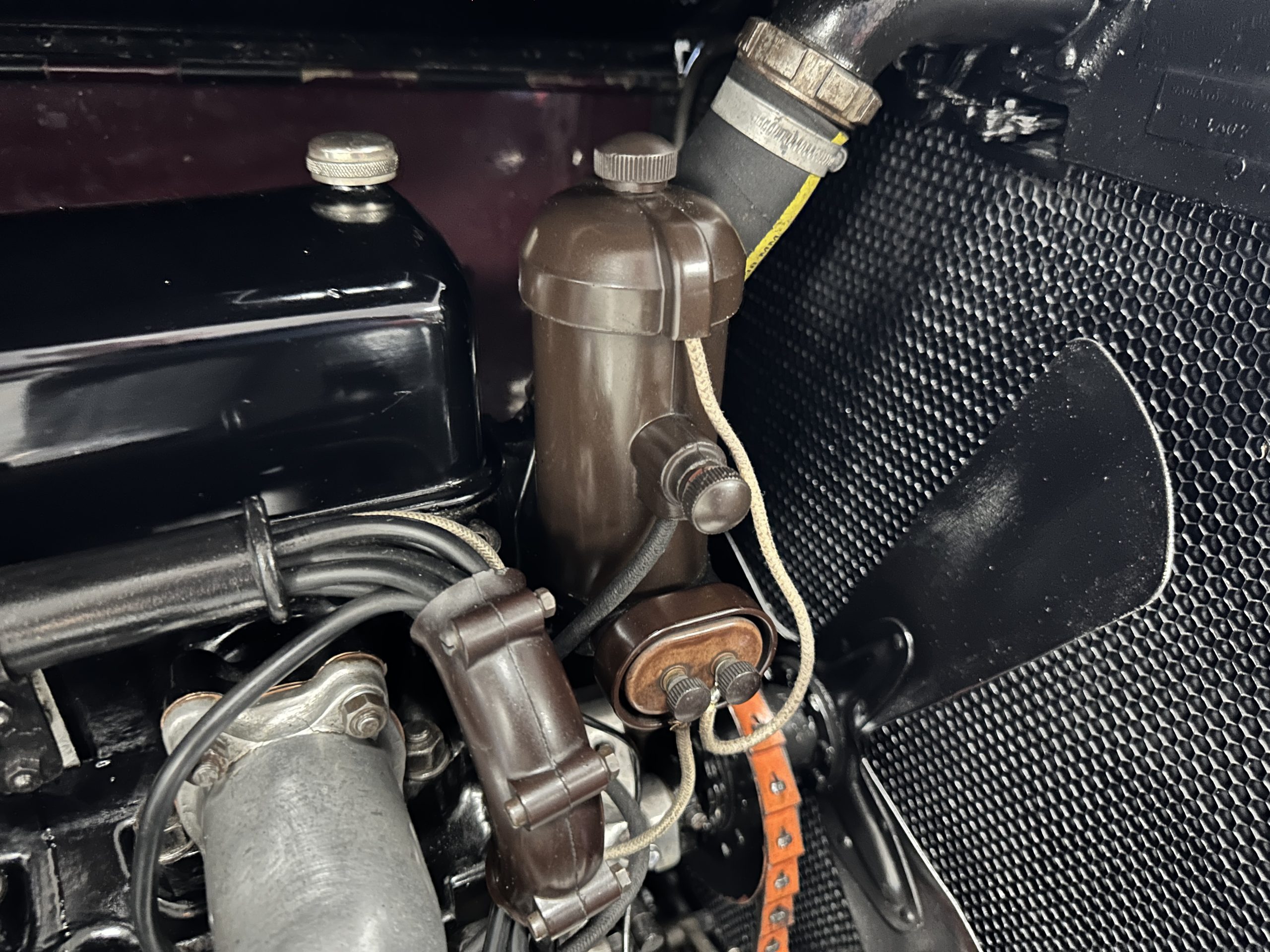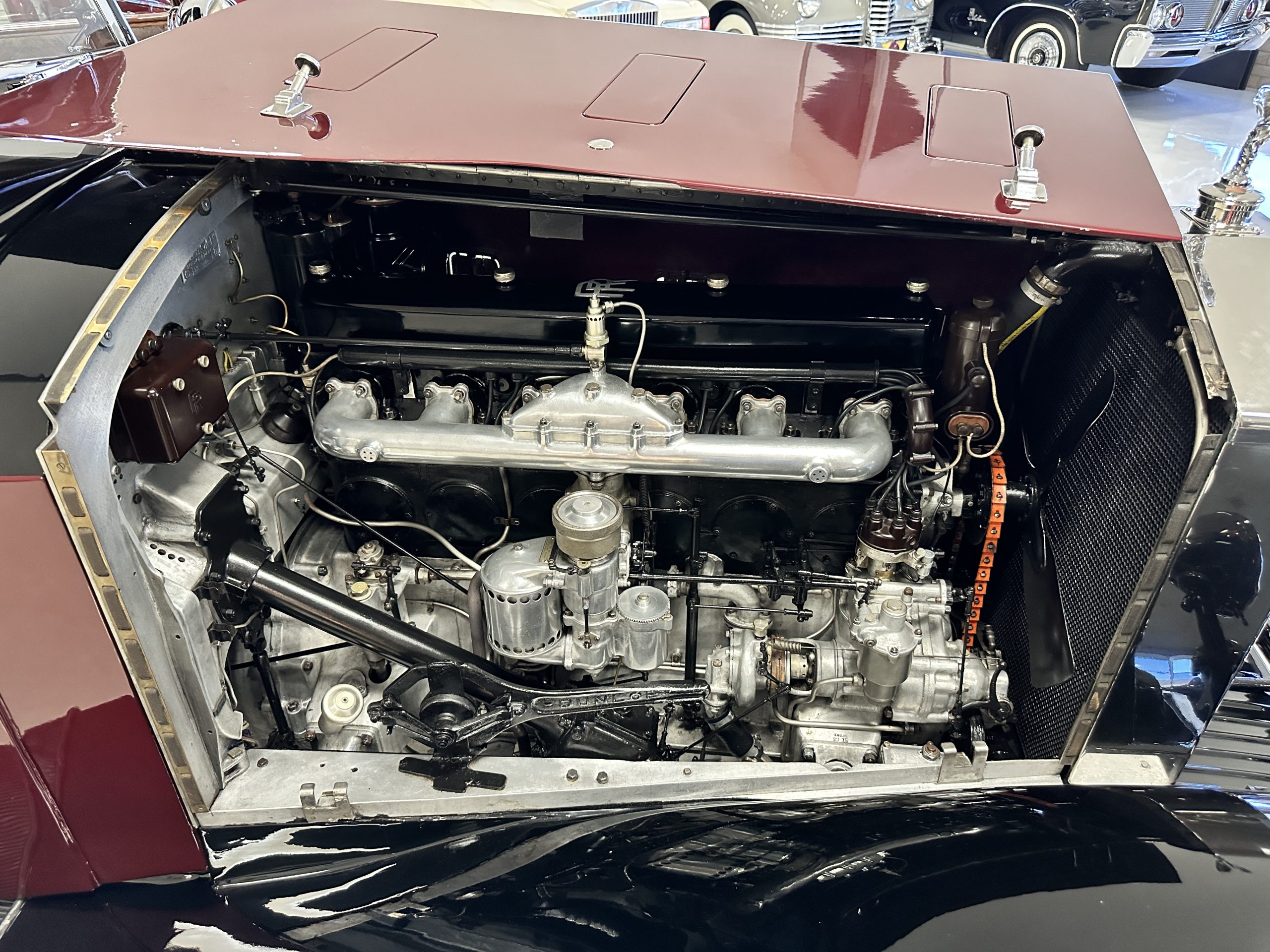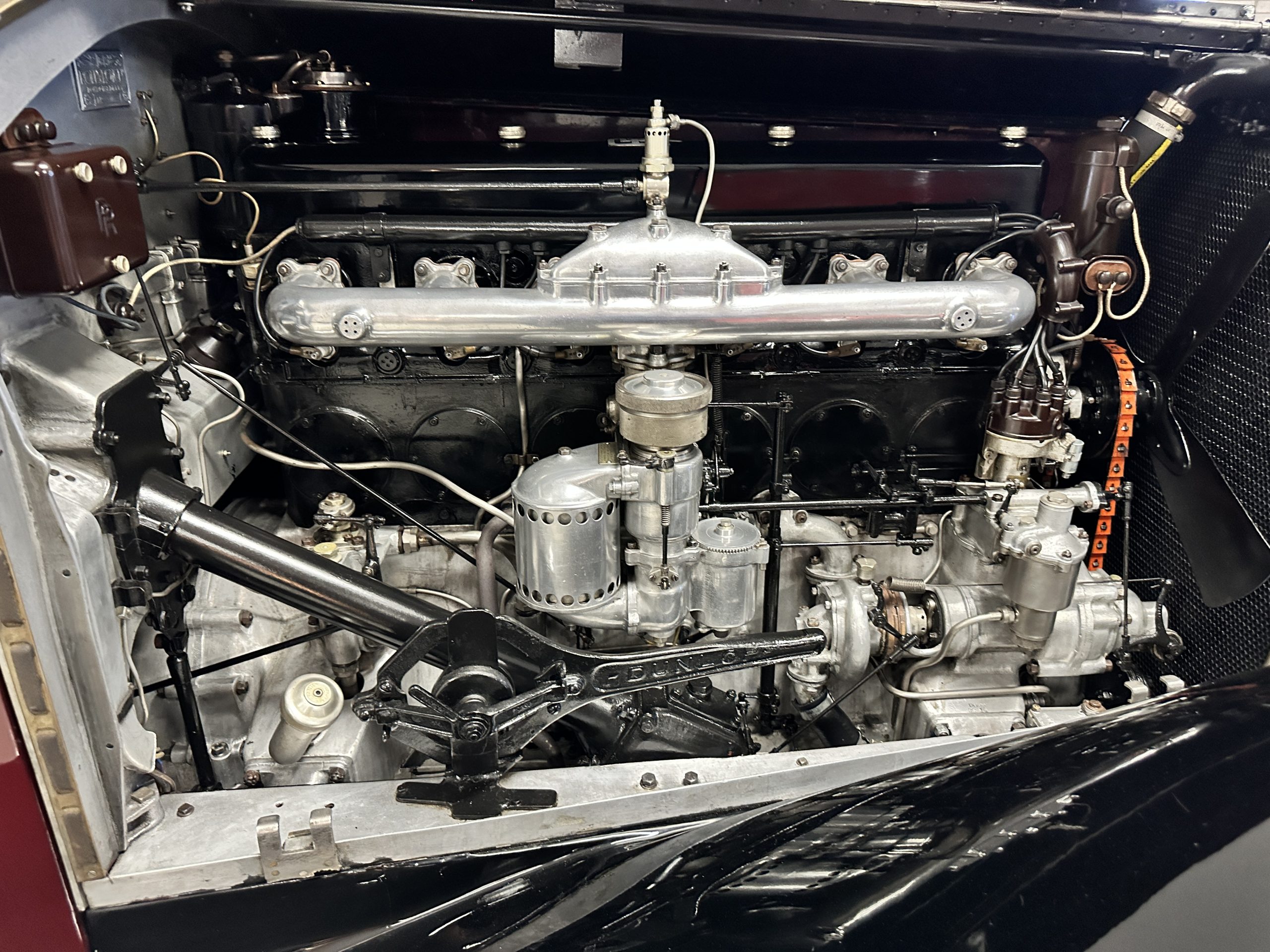 The engine compartment is detailed for show and is fantastic, showing the incredible advances in engineering that Rolls-Royce had made by 1933. The venerable 7.7 liter (468 cid) pushrod-OHV straight six was a refined version of the New Phantom (PI) with a new crossflow cylinder head. Synchromesh had been added to third and fourth gears making for a much more refined driving experience. This engine and the cooling system have all been rebuilt and are in excellent condition. The massive weight and long wheelbase of 150 inches makes for a wonderful ride quality. This Rolls comes complete with four decades of restoration, service and maintenance receipts, historical documents, old registrations and more.