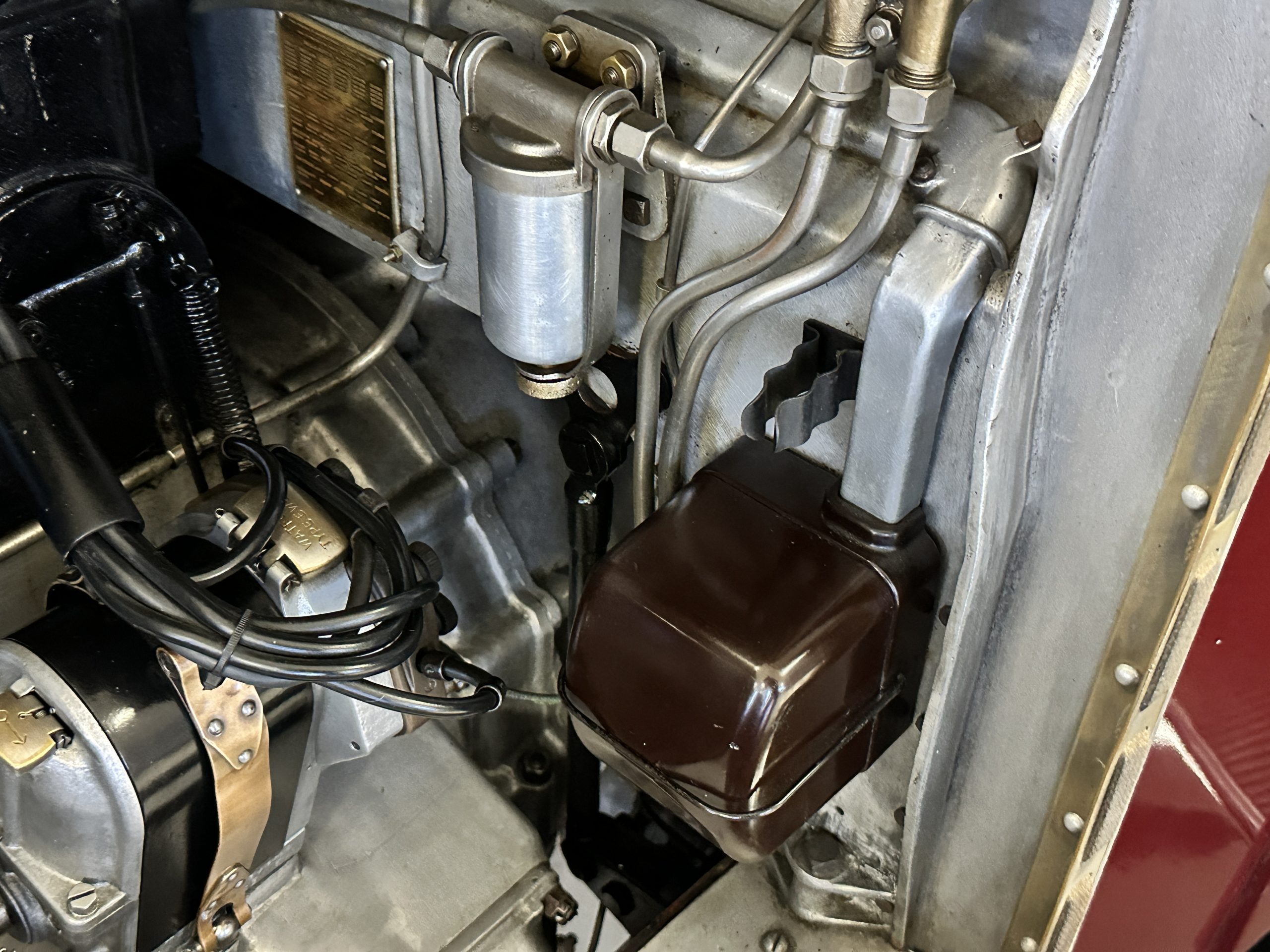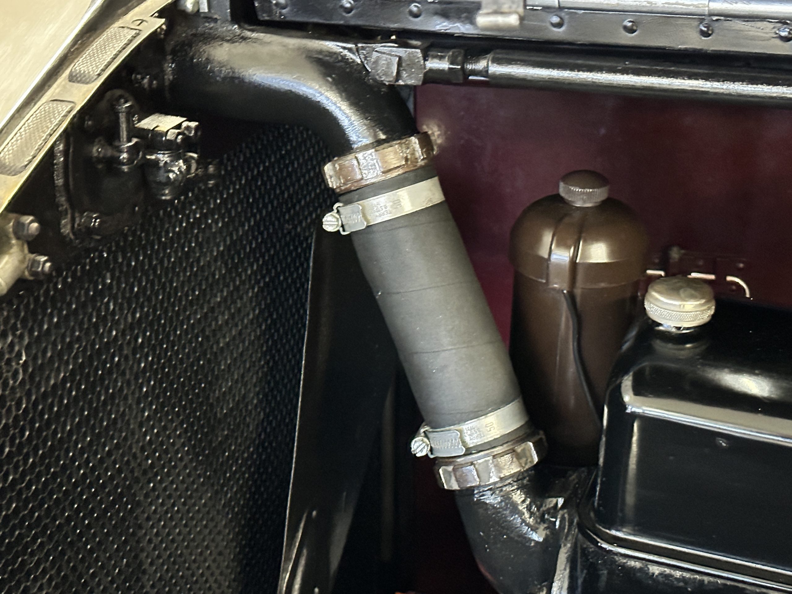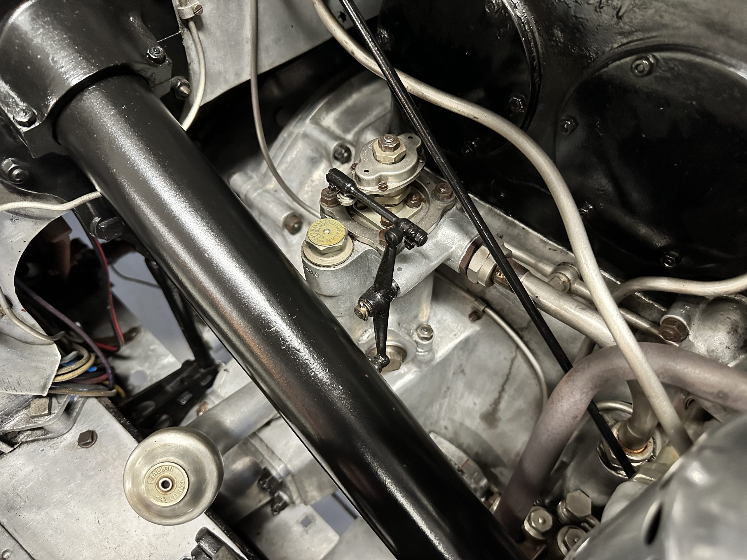 The engine compartment is detailed for show and is fantastic, showing the incredible advances in engineering that Rolls-Royce had made by 1933. The venerable 7.7 liter (468 cid) pushrod-OHV straight six was a refined version of the New Phantom (PI) with a new crossflow cylinder head. Synchromesh had been added to third and fourth gears making for a much more refined driving experience. This engine and the cooling system have all been rebuilt and are in excellent condition. The massive weight and long wheelbase of 150 inches makes for a wonderful ride quality. This Rolls comes complete with four decades of restoration, service and maintenance receipts, historical documents, old registrations and more.