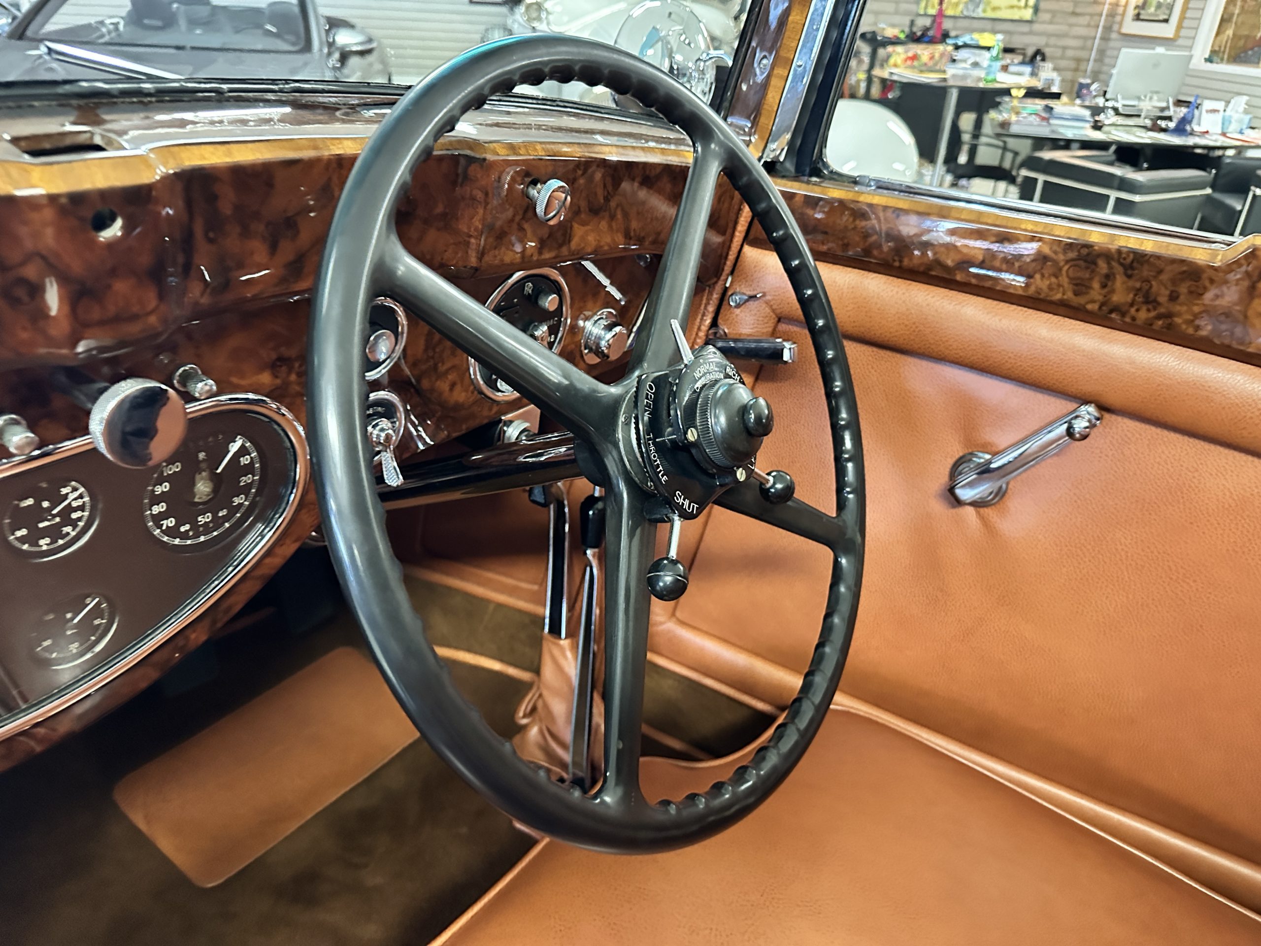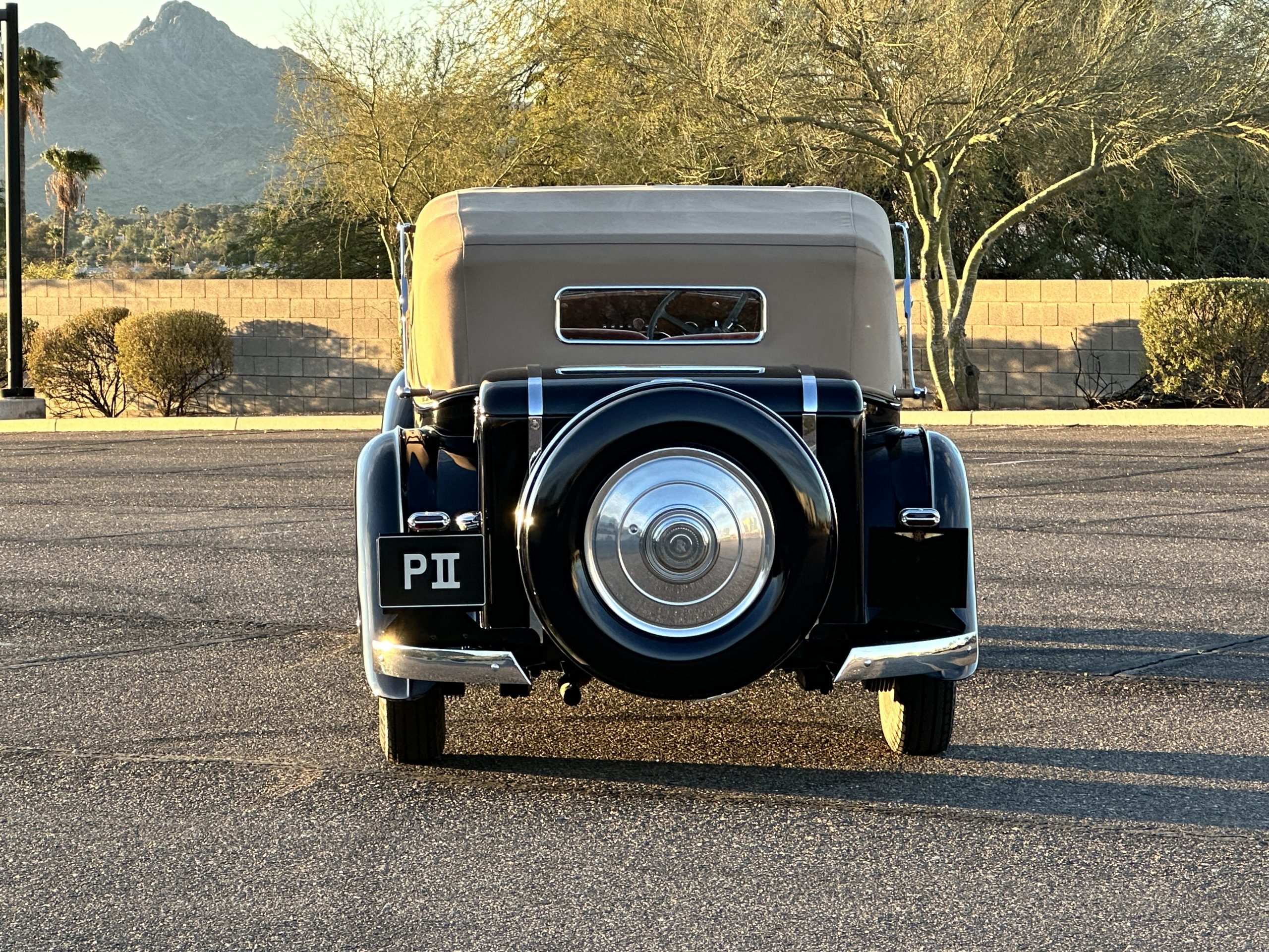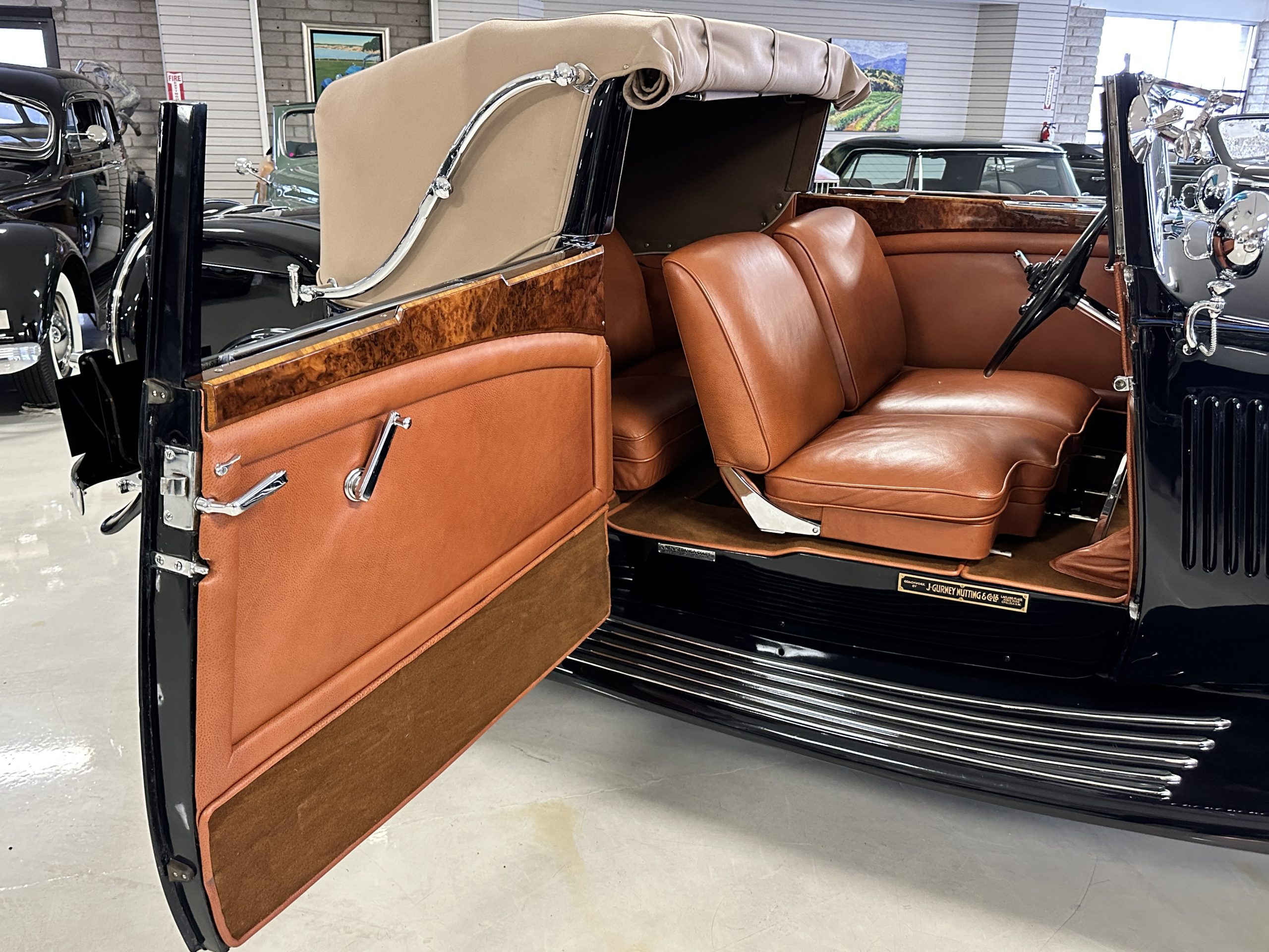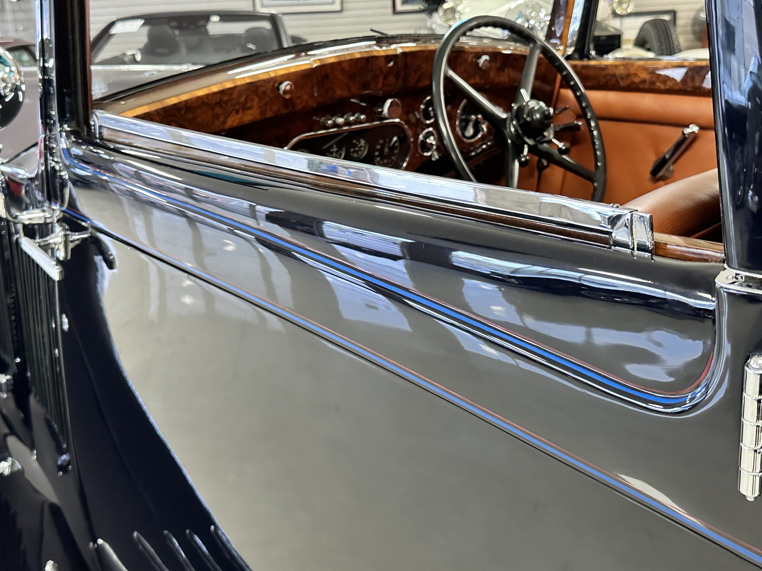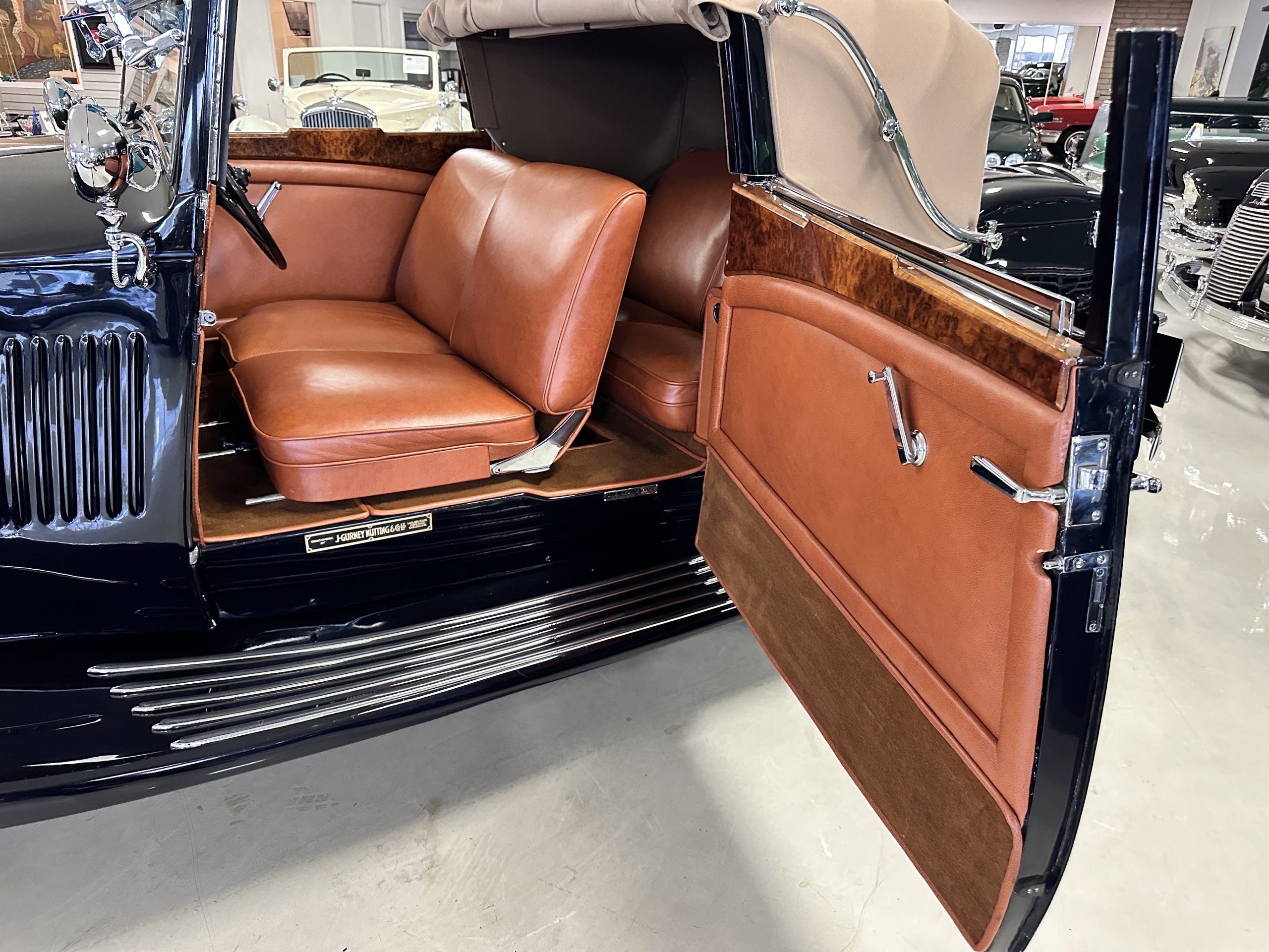 By the 1950s, 82PY had moved to California, where it was owned by several very well-known collections. By 1964, it had been acquired by the late enthusiast Robert G. Valpey of Palos Verdes, California, who installed the present engine, number XO55. Mr. Valpey sold the car in 1976 to another noted West Coast collector, Barry Hon of California. Six years later it became part of the collection of Ross Bewley, who exhibited the car at the Pebble Beach Concours d’Elegance in 1986. In 2007 and 2008, 82PY had very extensive mechanical restoration, including a complete engine and cooling system rebuild by the specialists at AJ Glew & Company of Draycott, Gloucestershire. By 2012, the Rolls then became part of the distinguished museum of Academy of Art University in San Francisco, alongside many other important Full Classics. It has been featured in numerous books on Rolls-Royce including Raymond Gentile’s The Rolls-Royce Phantom II Continental.