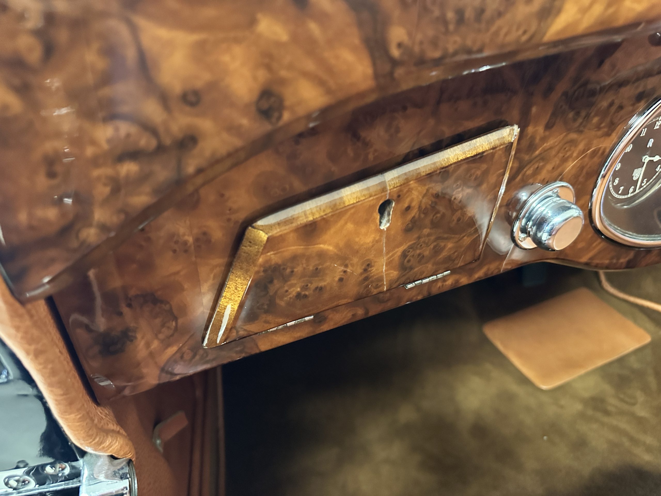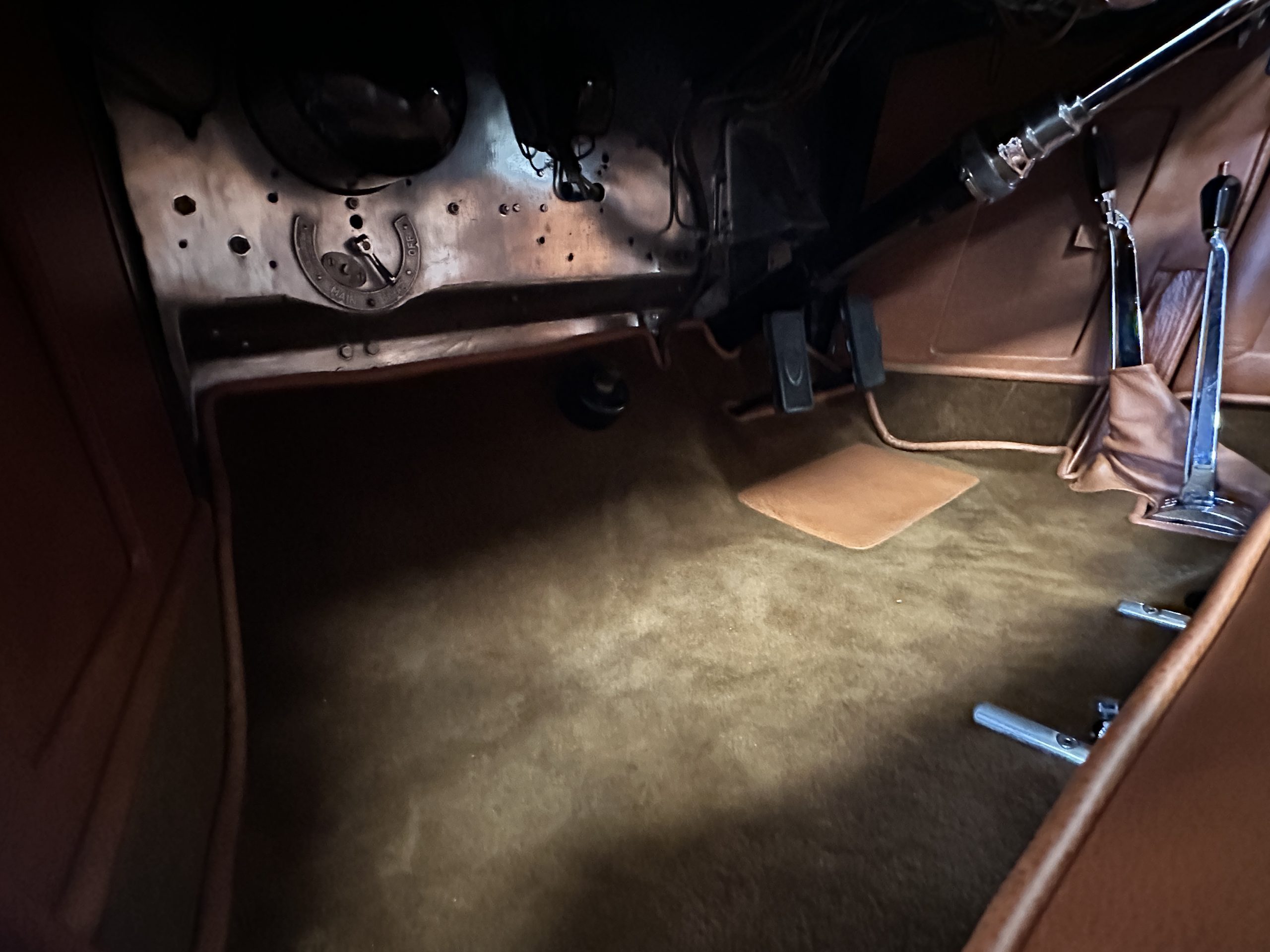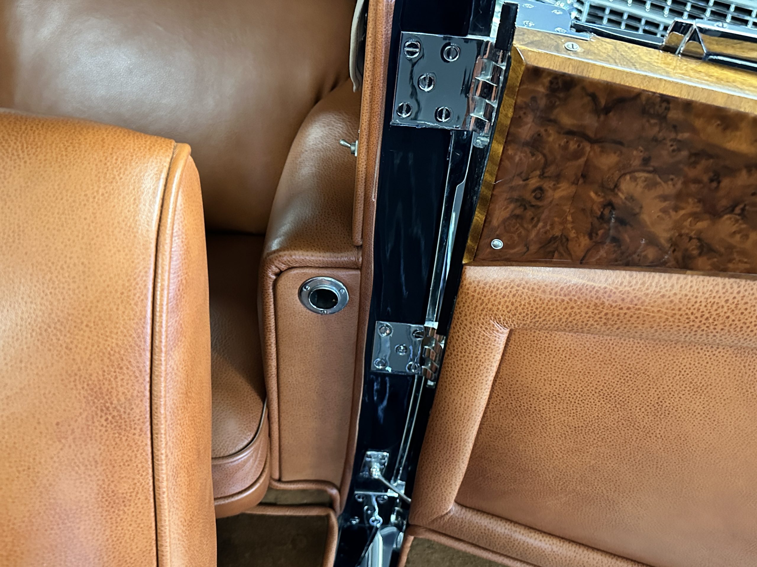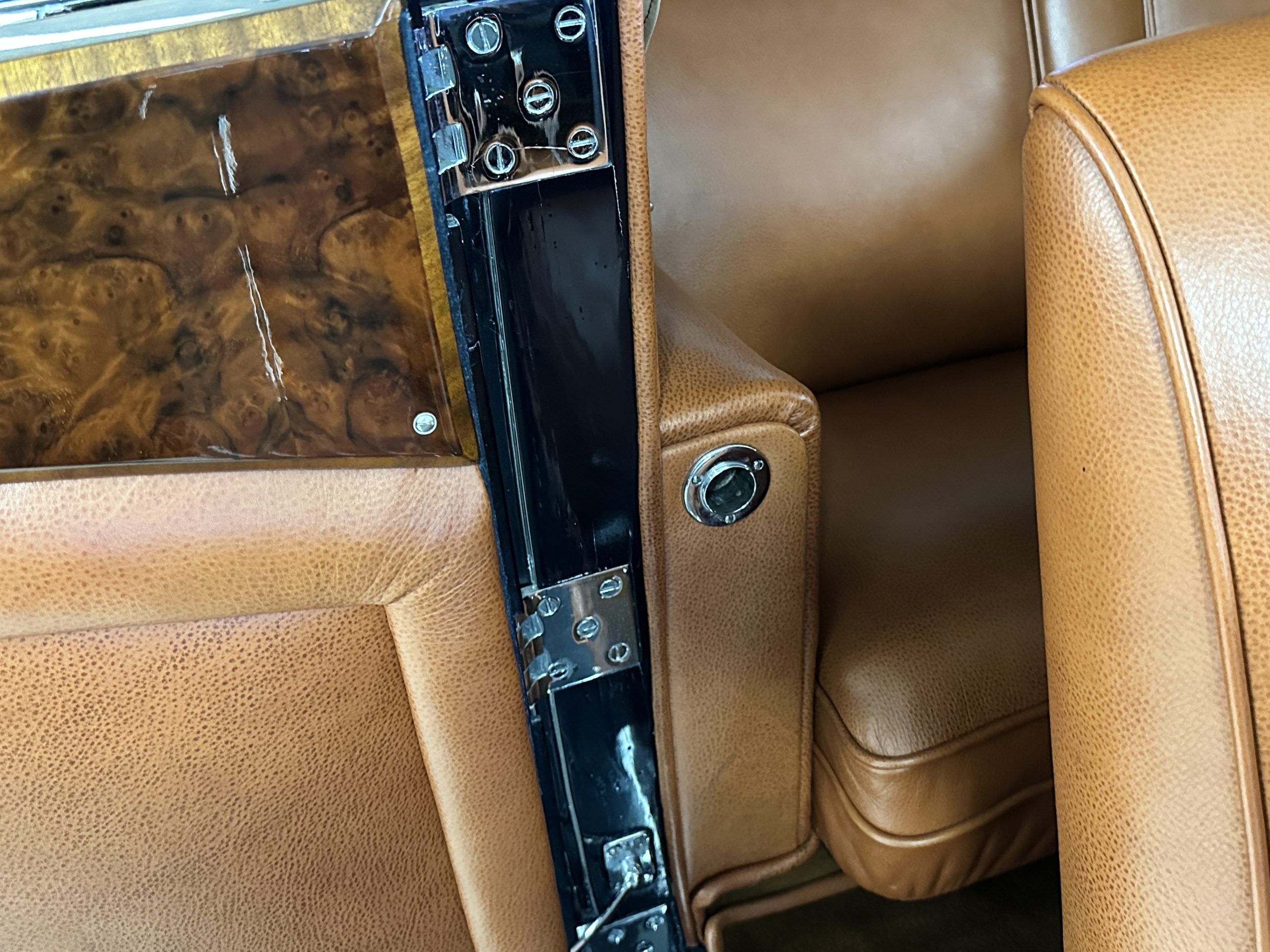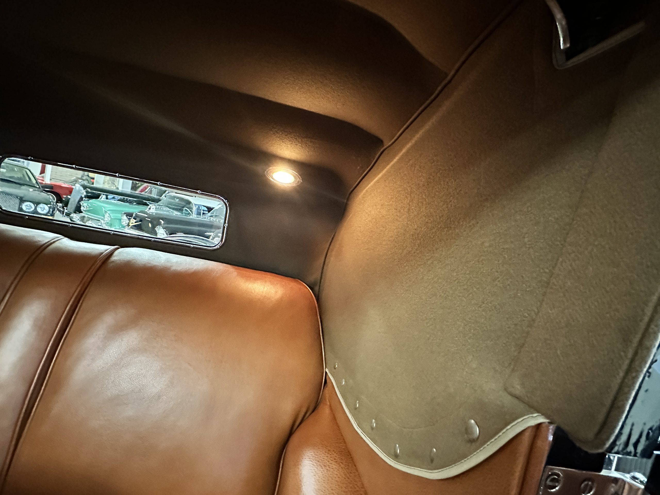The interior of 82PY is simply spectacular. The beautiful Russet Brown leather appears nearly new and is soft and supple to the touch. The matching Wilton wool carpeting is also as new and lends a rich feel to the interior. The gorgeous burl walnut dash and accents is deep and rich with minimal age-related cracking. The interior chrome and the instrumentation also present in very good to excellent condition. All of the gauges work well, and the restored steering wheel feels great while driving.