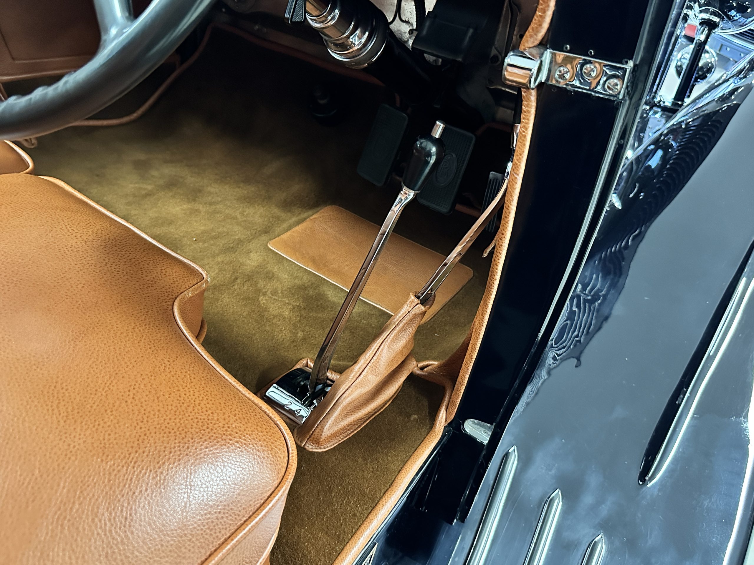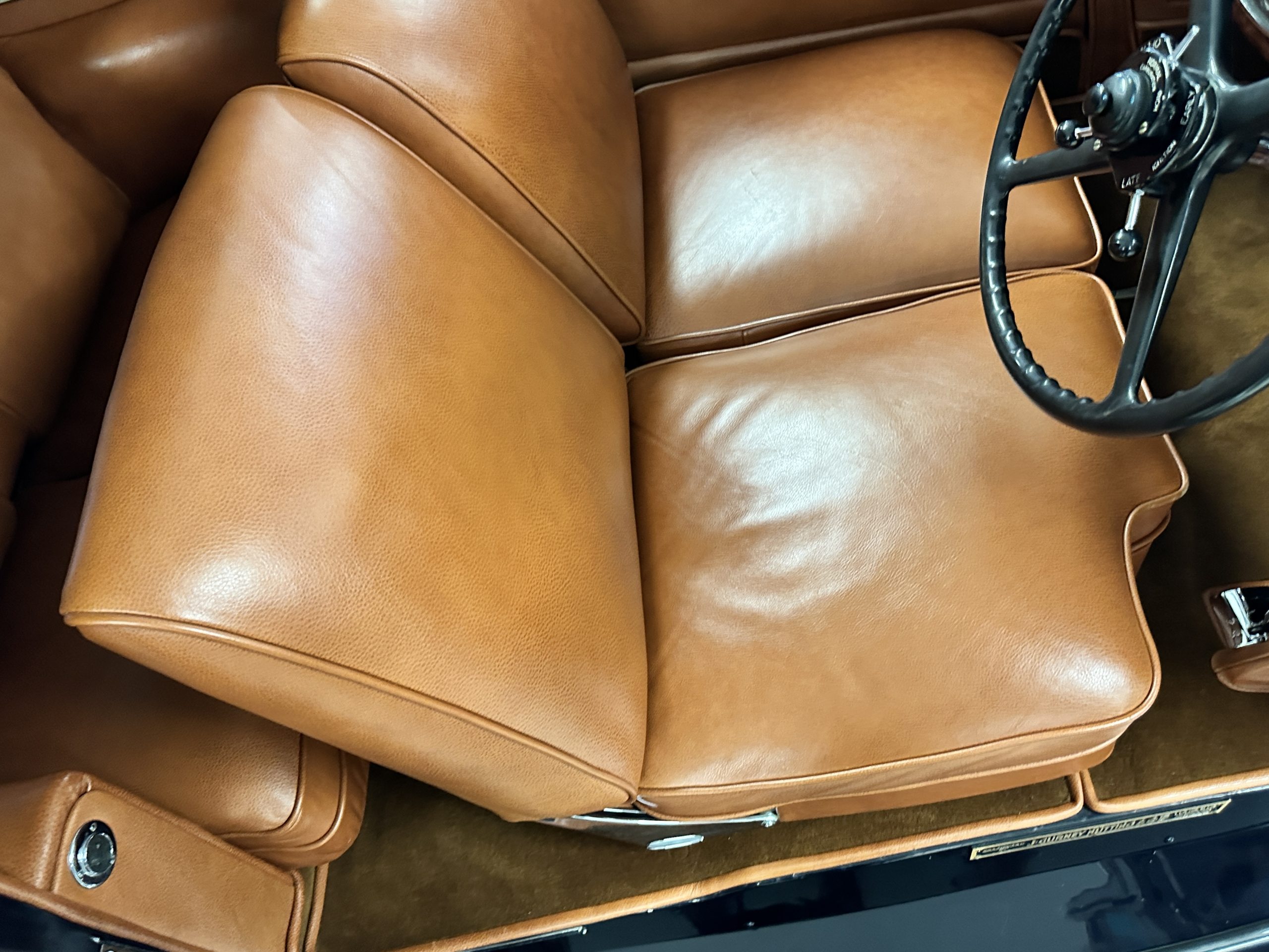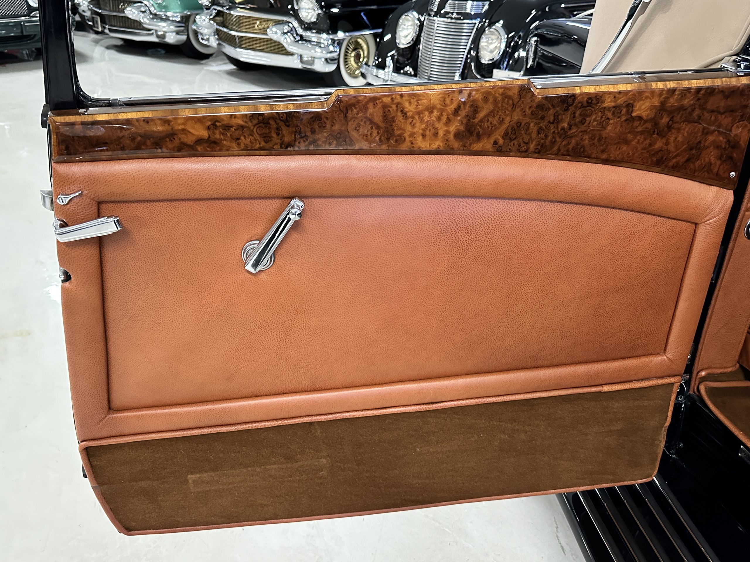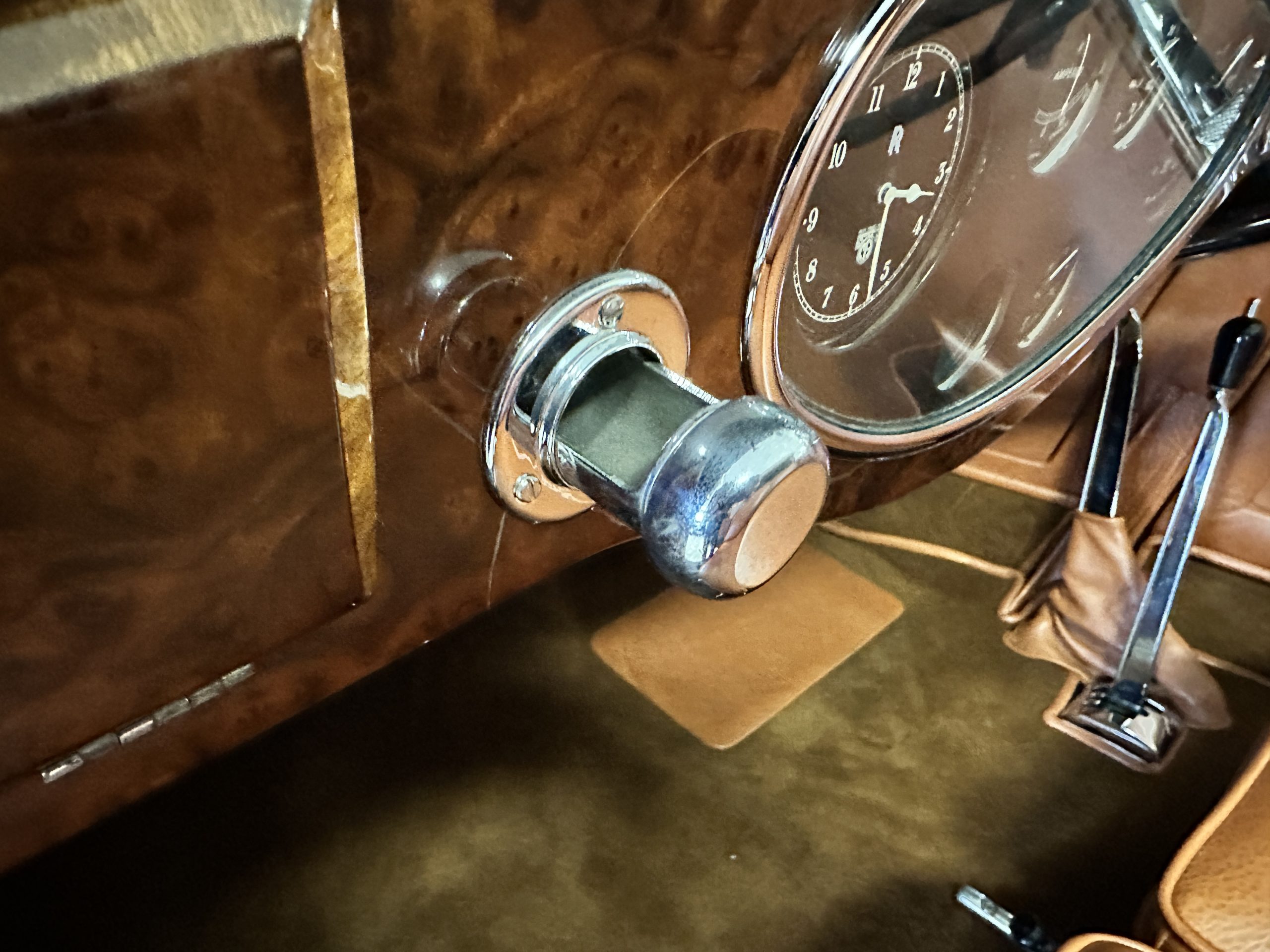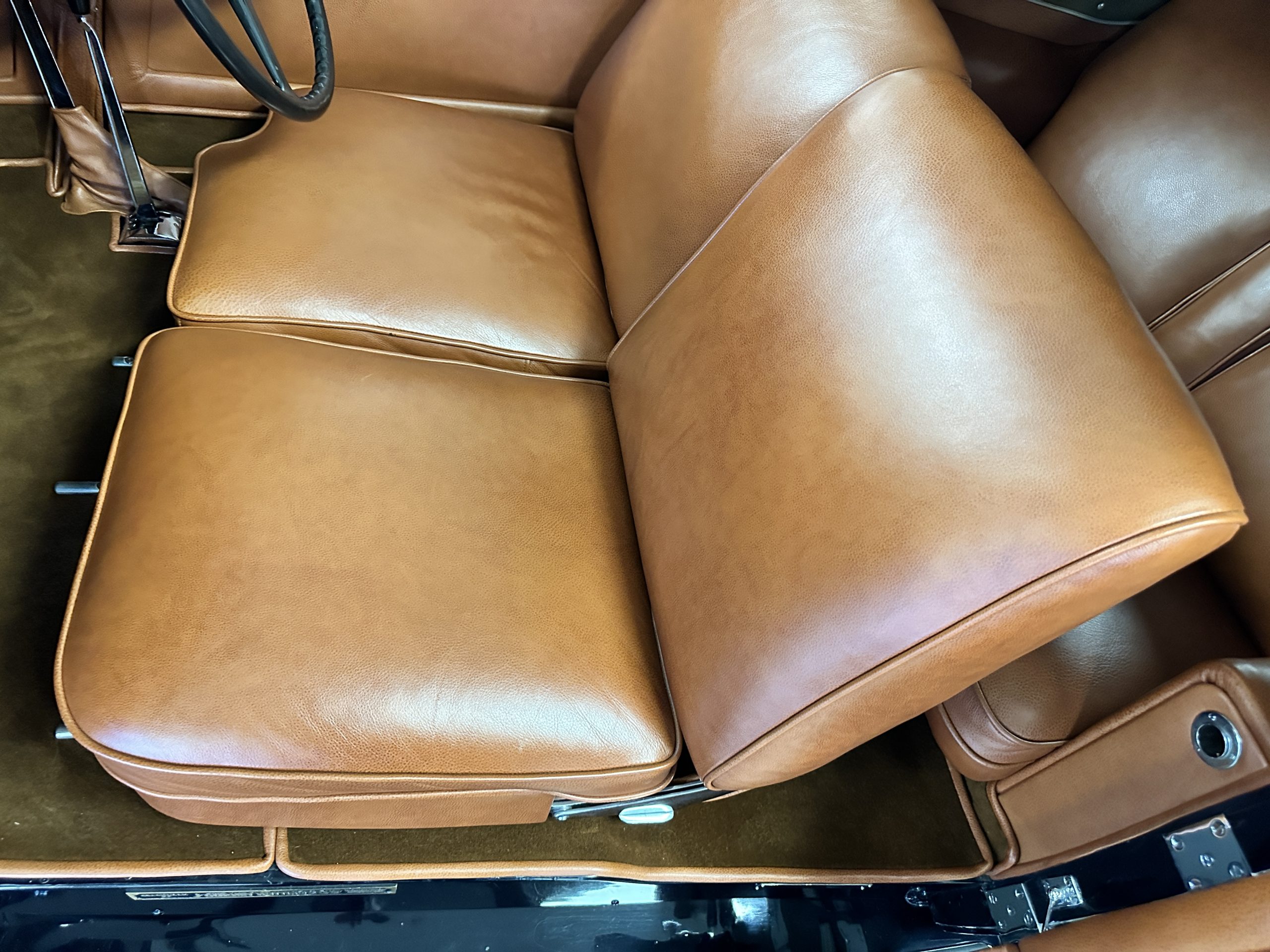 The interior of 82PY is simply spectacular. The beautiful Russet Brown leather appears nearly new and is soft and supple to the touch. The matching Wilton wool carpeting is also as new and lends a rich feel to the interior. The gorgeous burl walnut dash and accents is deep and rich with minimal age-related cracking. The interior chrome and the instrumentation also present in very good to excellent condition. All of the gauges work well, and the restored steering wheel feels great while driving.