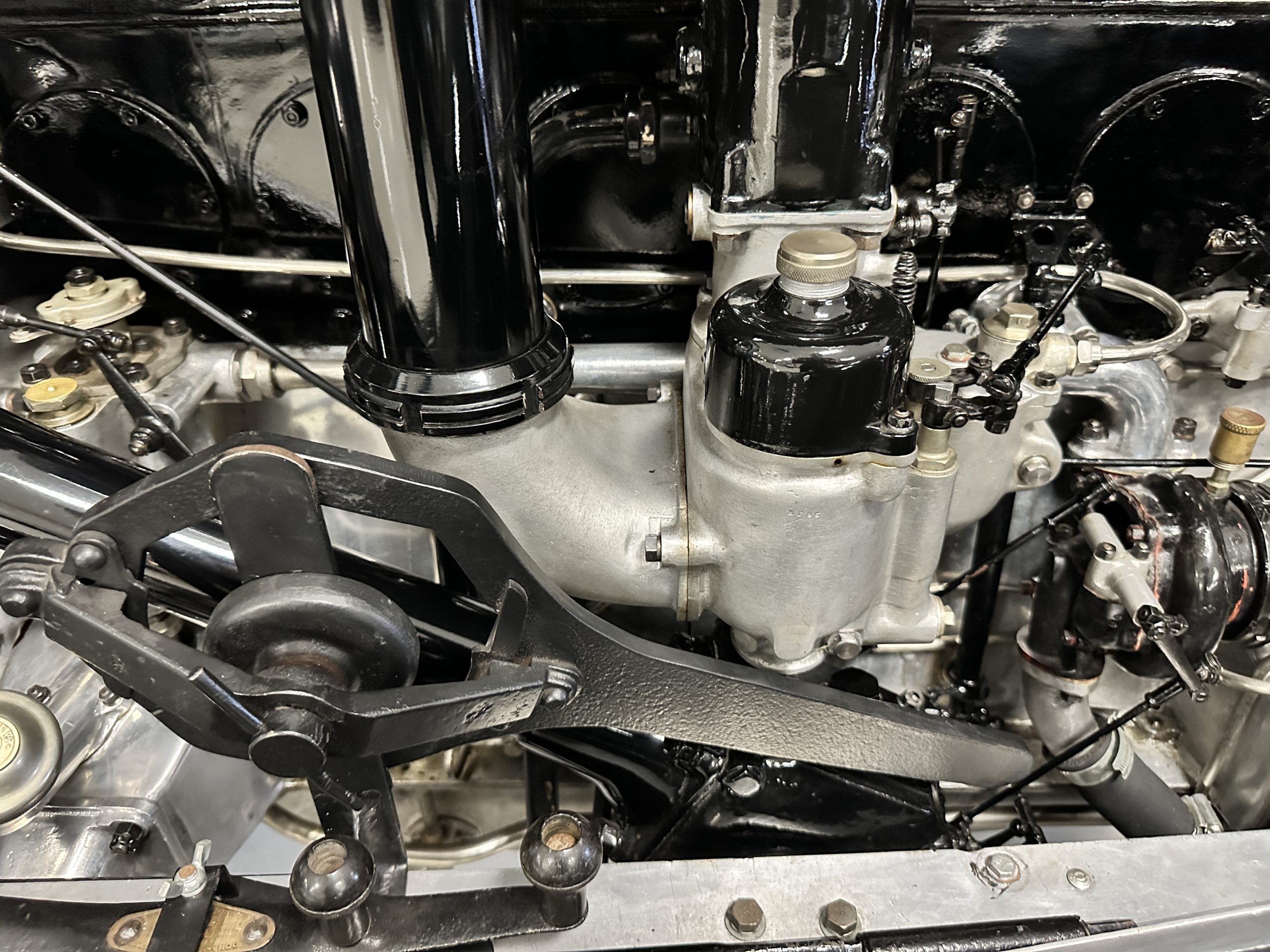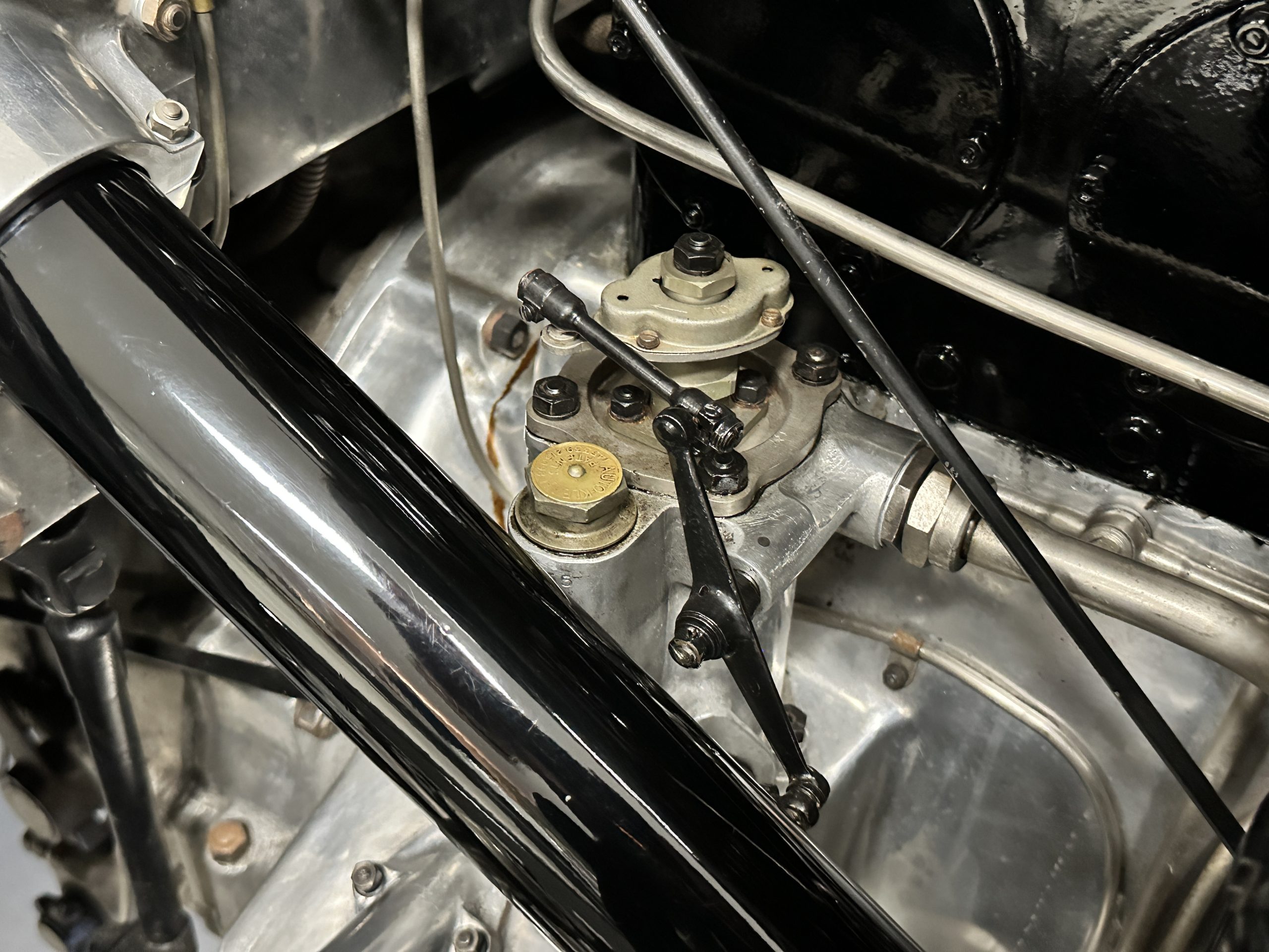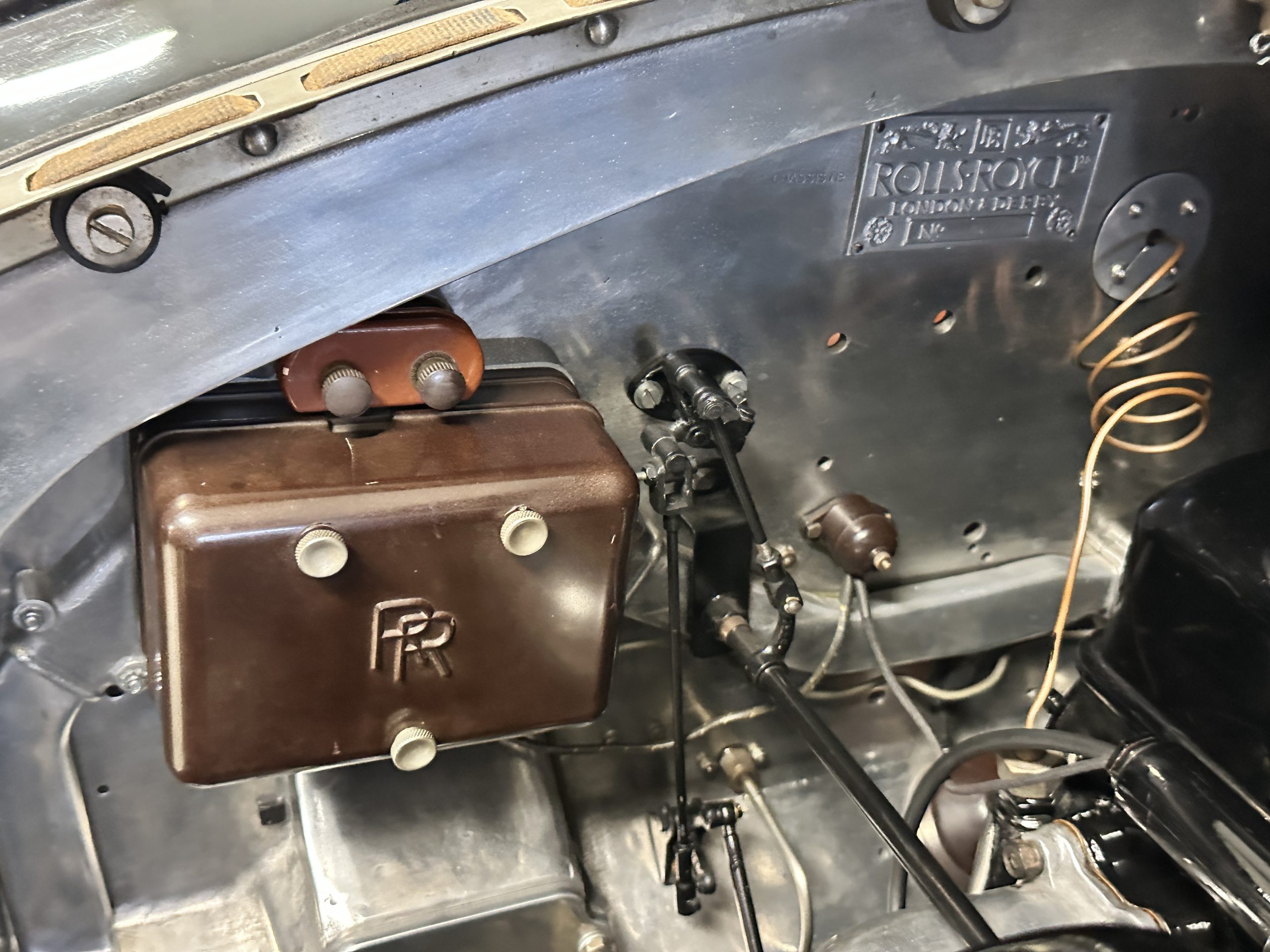 The engine compartment is detailed for concours and presents beautifully. There is no doubt that this Phantom II Continental has received excellent service and upkeep. The venerable 7.7 liter straight six-cylinder is quiet and powerful. The engineers at AJ Glew & Company did a tremendous job rebuilding the engine. It starts easily and performs well. There are no rattles, excessive smoking and the oil pressure and operating temperatures are all appropriate for a Phantom II. The chassis is well detailed and also shows that this Rolls has been well serviced and cared for.
