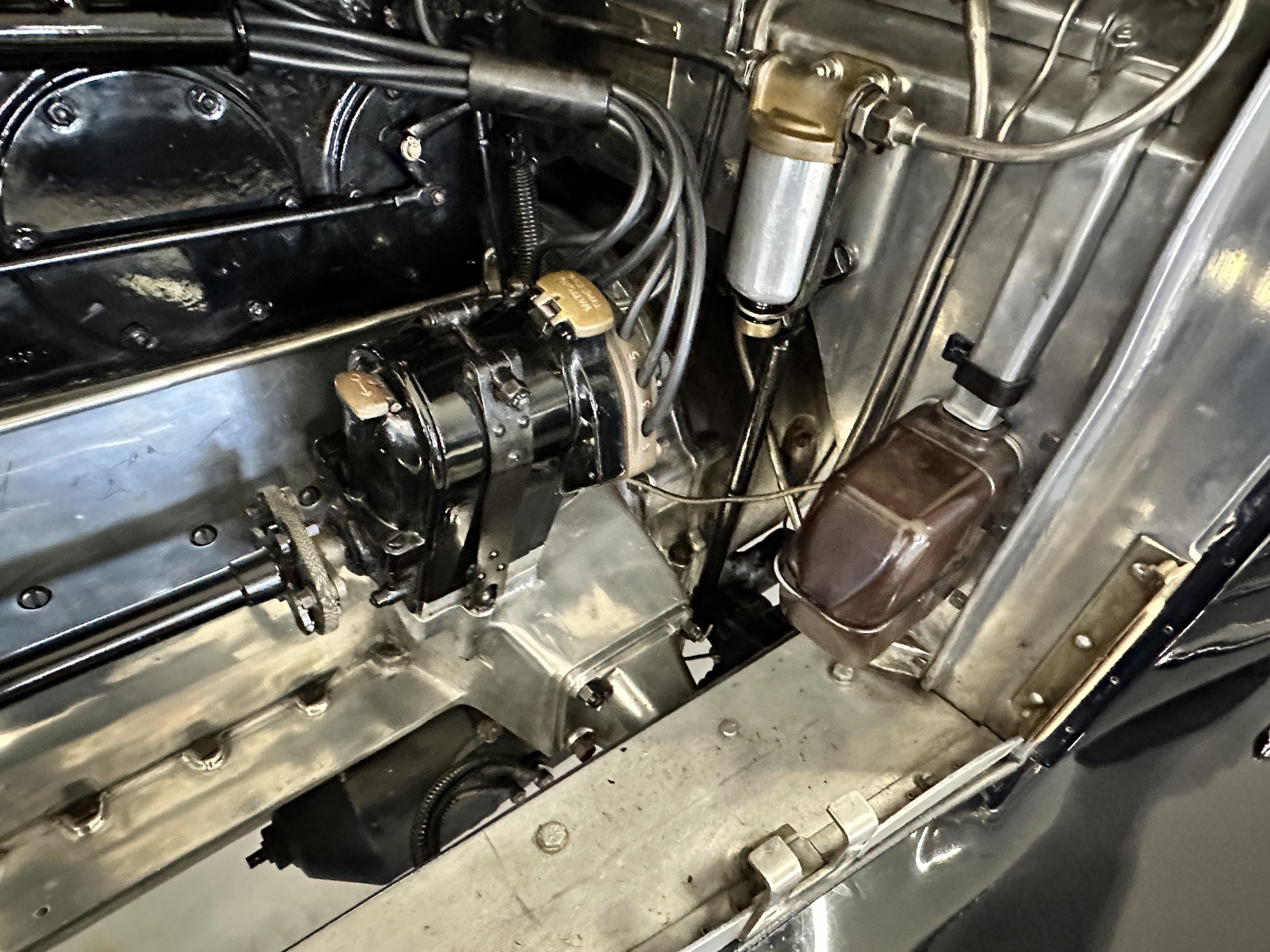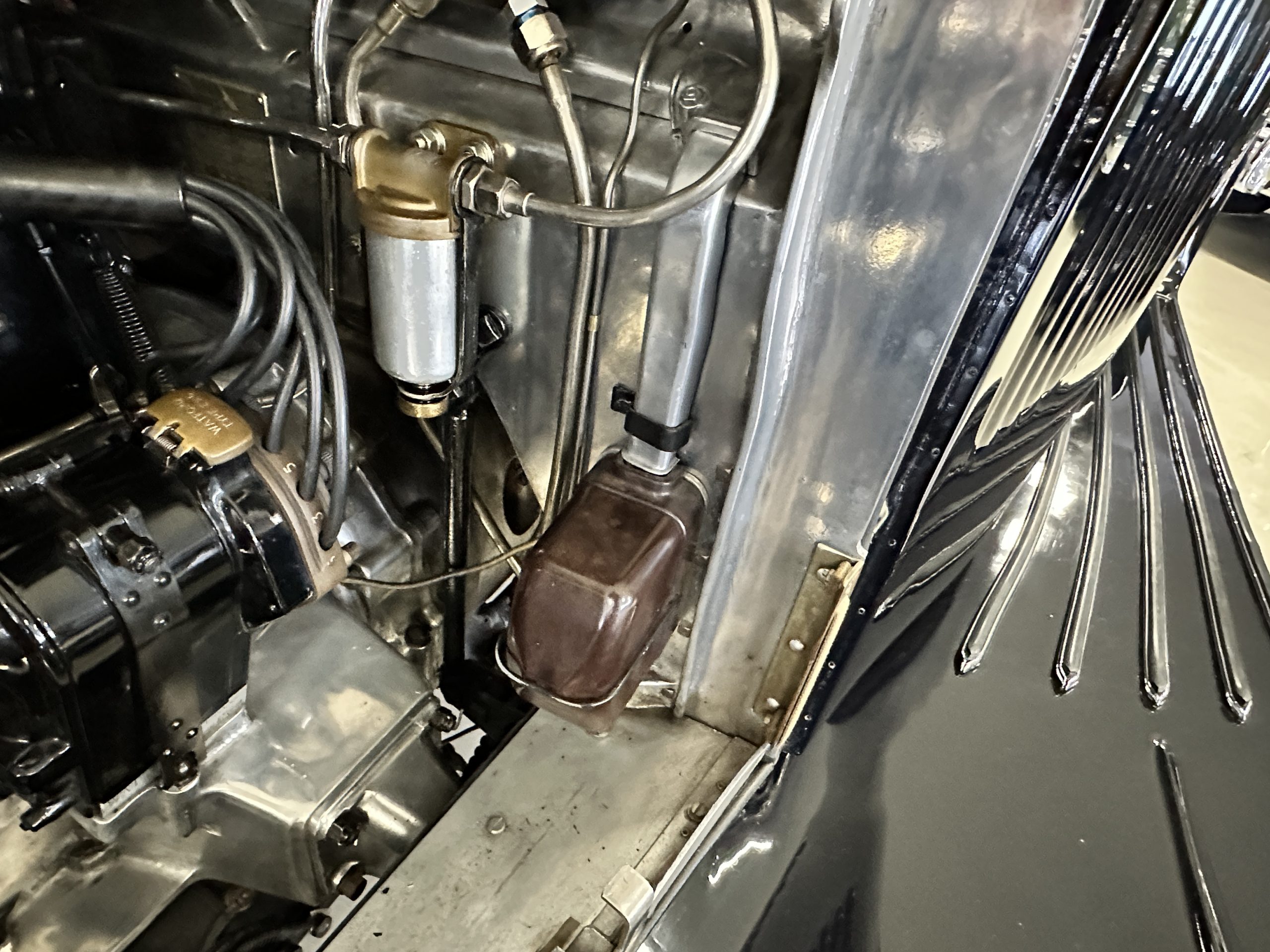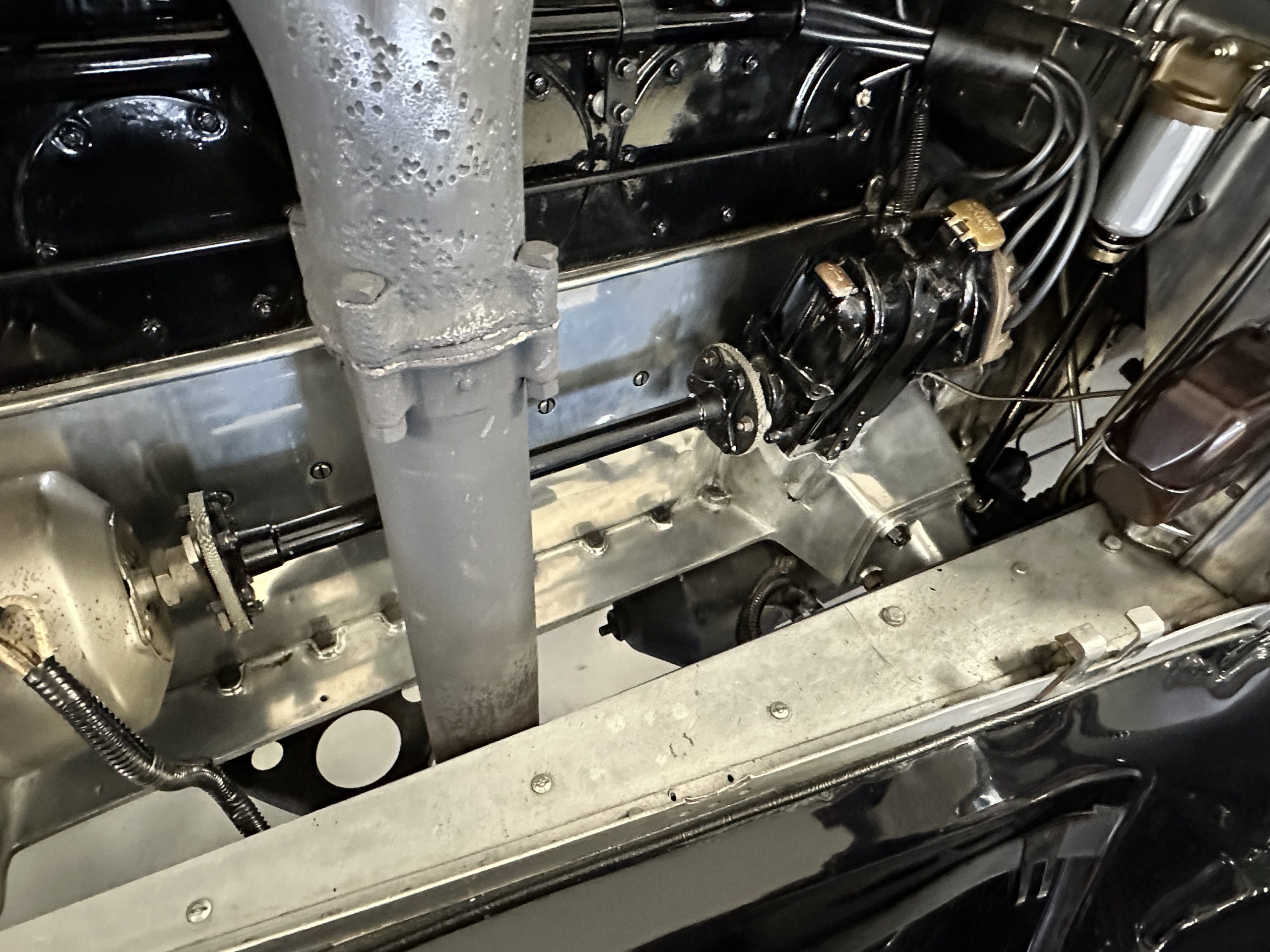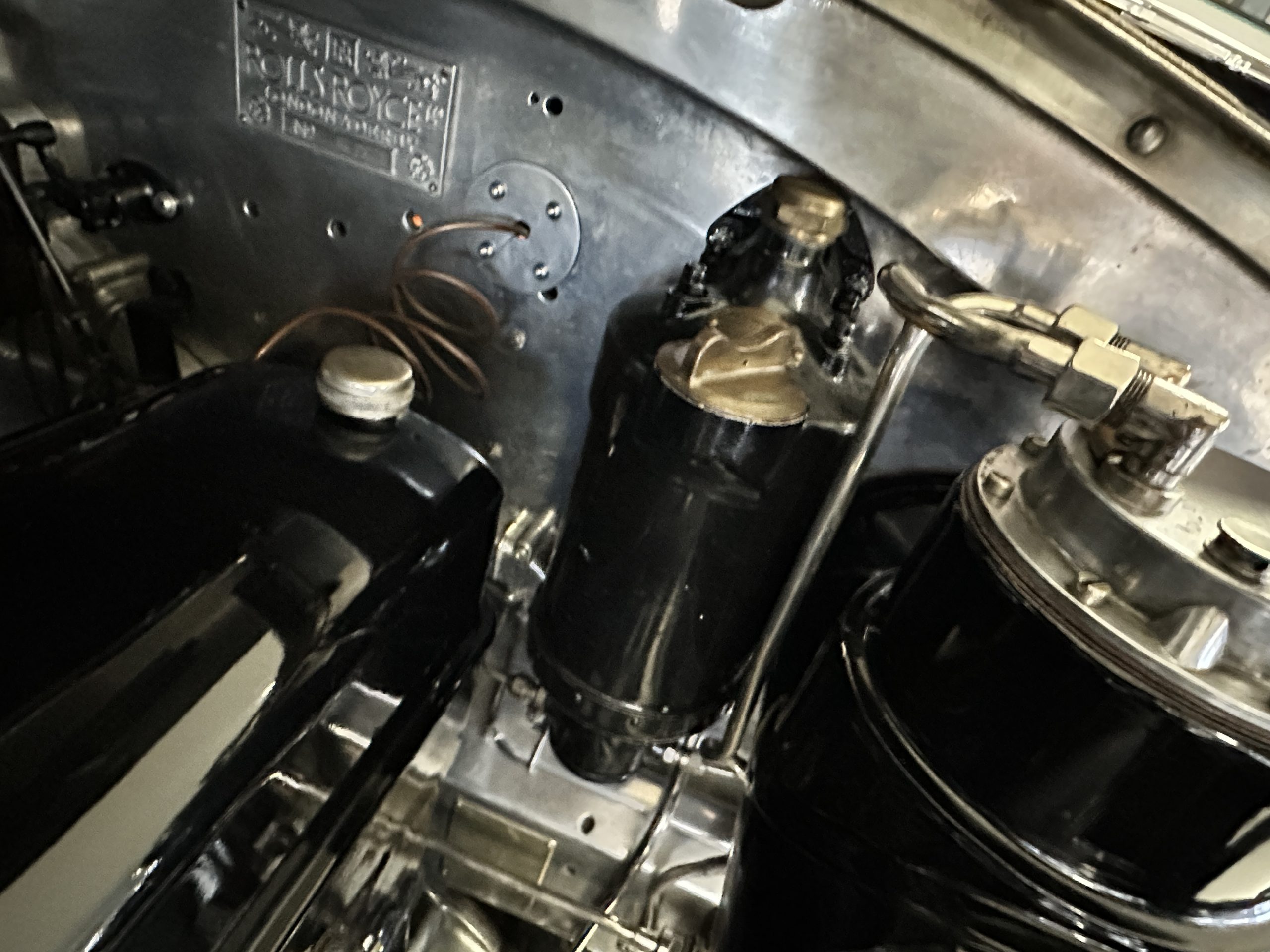 The engine compartment is detailed for concours and presents beautifully. There is no doubt that this Phantom II Continental has received excellent service and upkeep. The venerable 7.7 liter straight six-cylinder is quiet and powerful. The engineers at AJ Glew & Company did a tremendous job rebuilding the engine. It starts easily and performs well. There are no rattles, excessive smoking and the oil pressure and operating temperatures are all appropriate for a Phantom II. The chassis is well detailed and also shows that this Rolls has been well serviced and cared for.