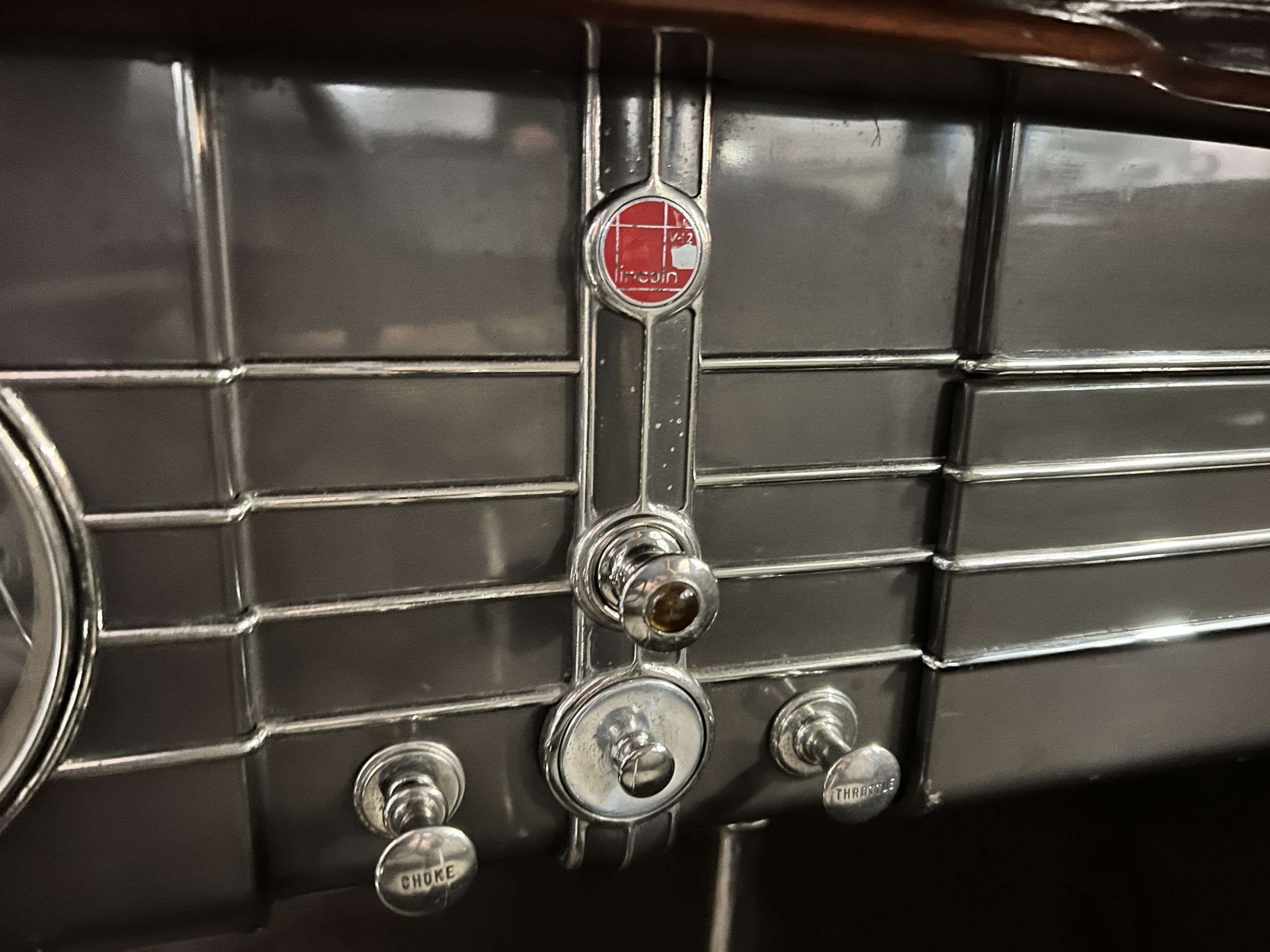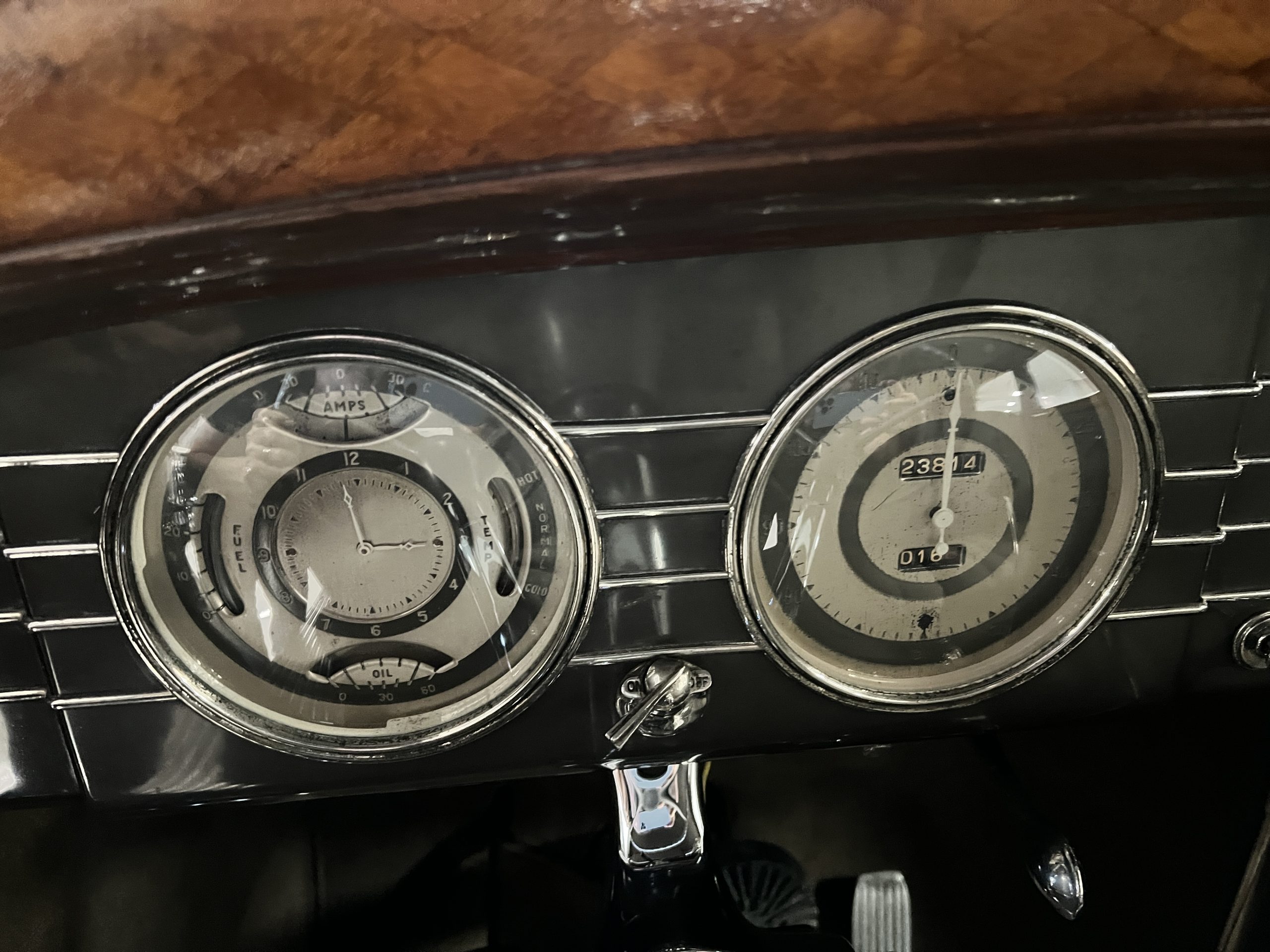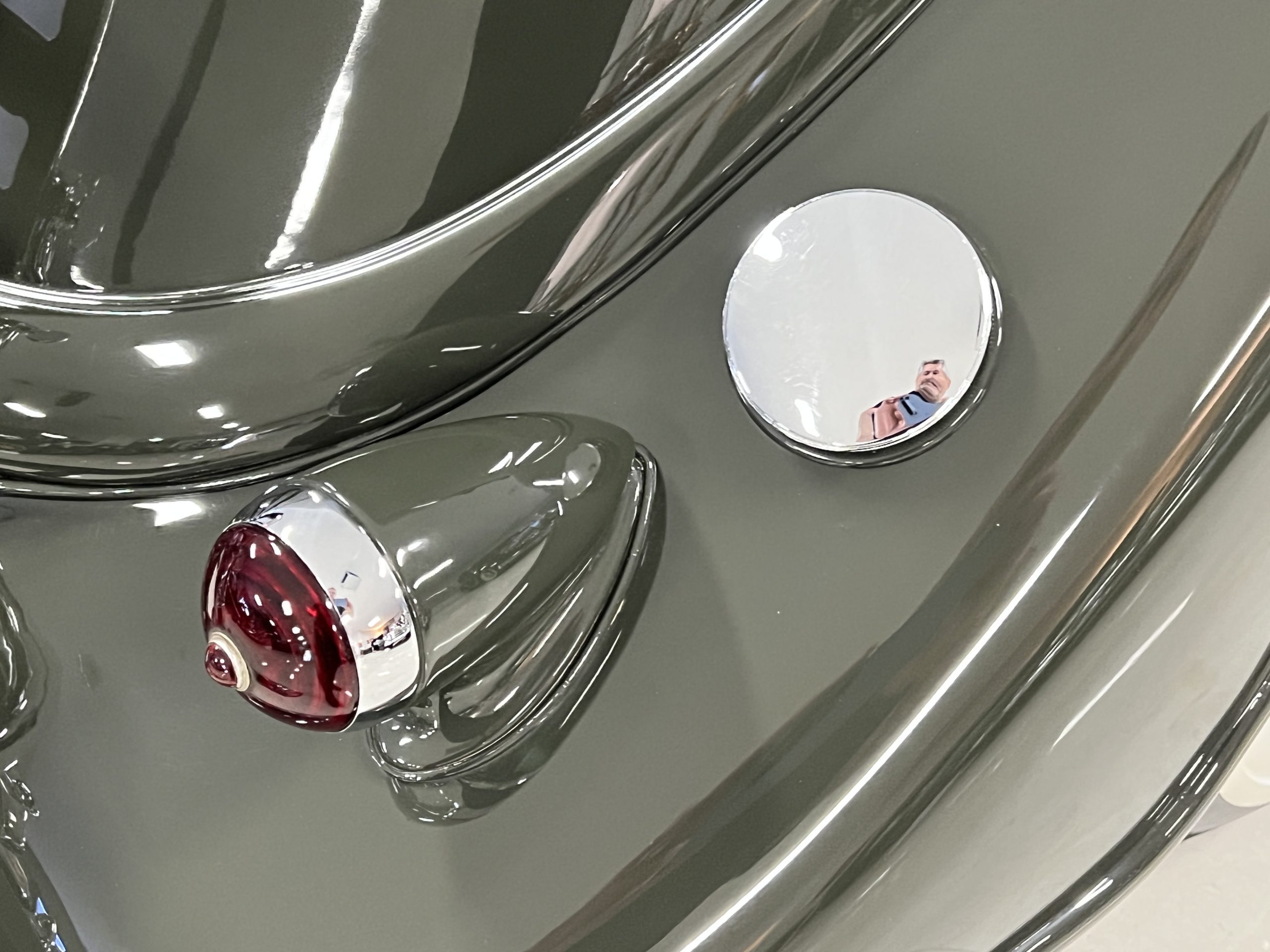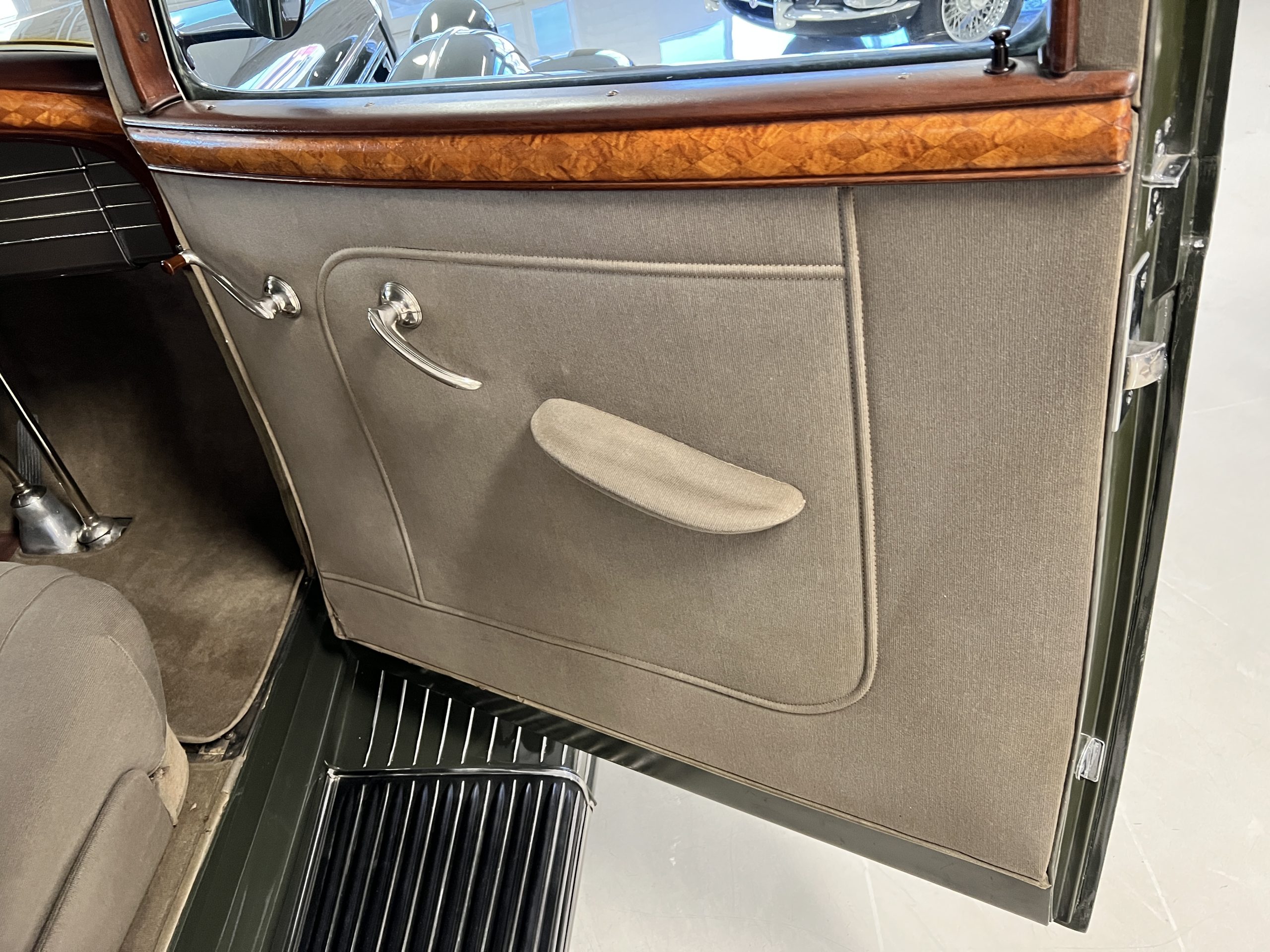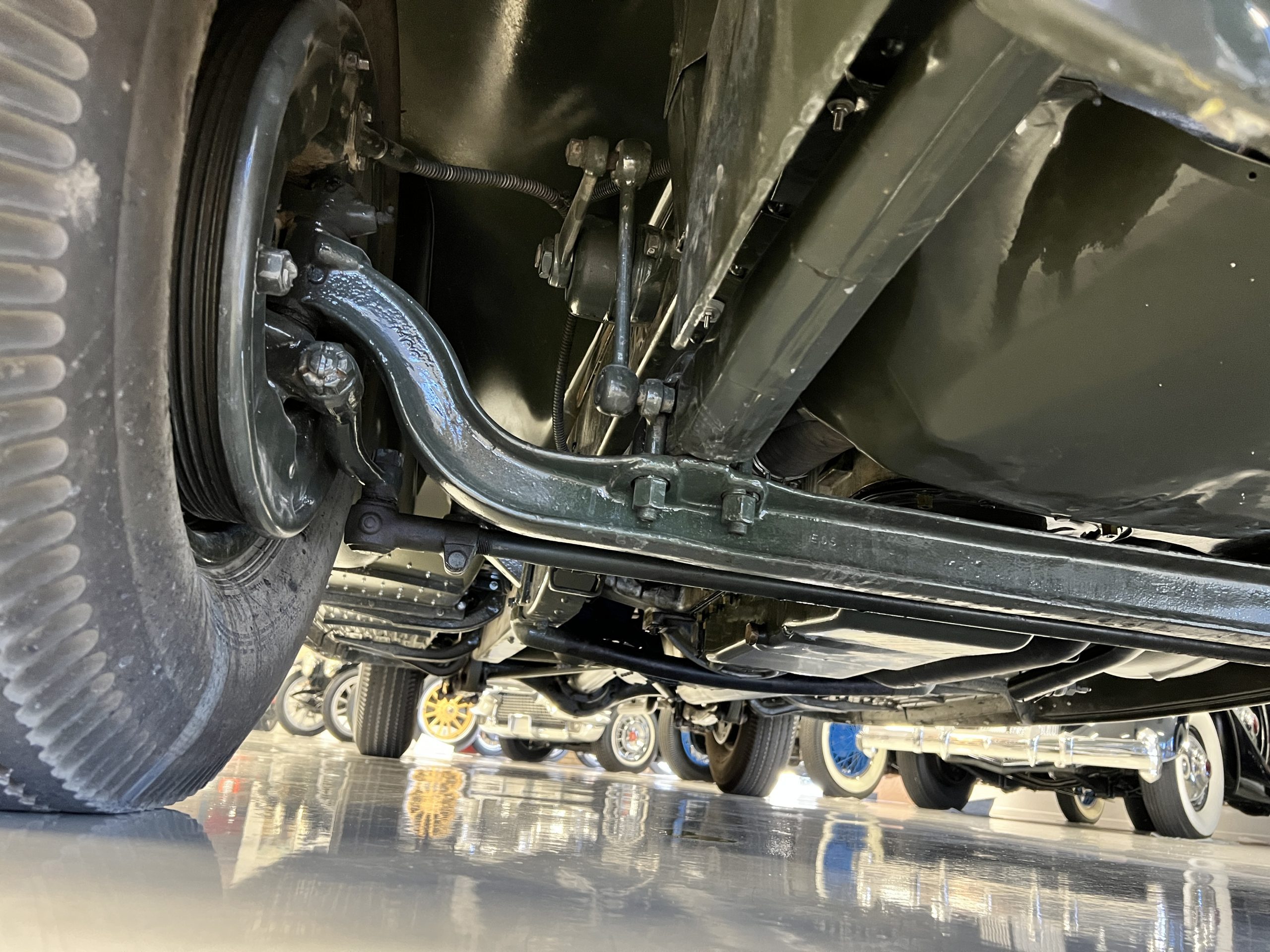 The livery was refinished in its original Slate Green. The paint is fantastic and is complimented by gray coachstripes and beautiful chrome finished throughout. This was accomplished from the thorough restoration with a bare metal respray and all the finishes redone to very high concours standards.