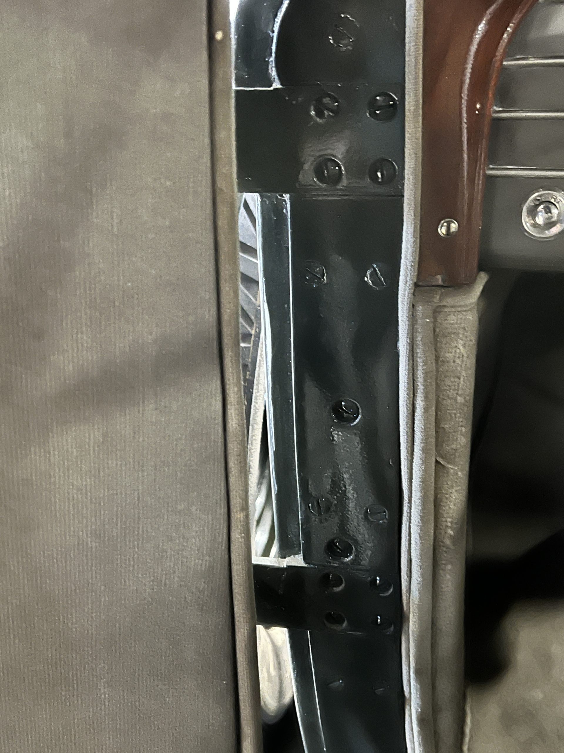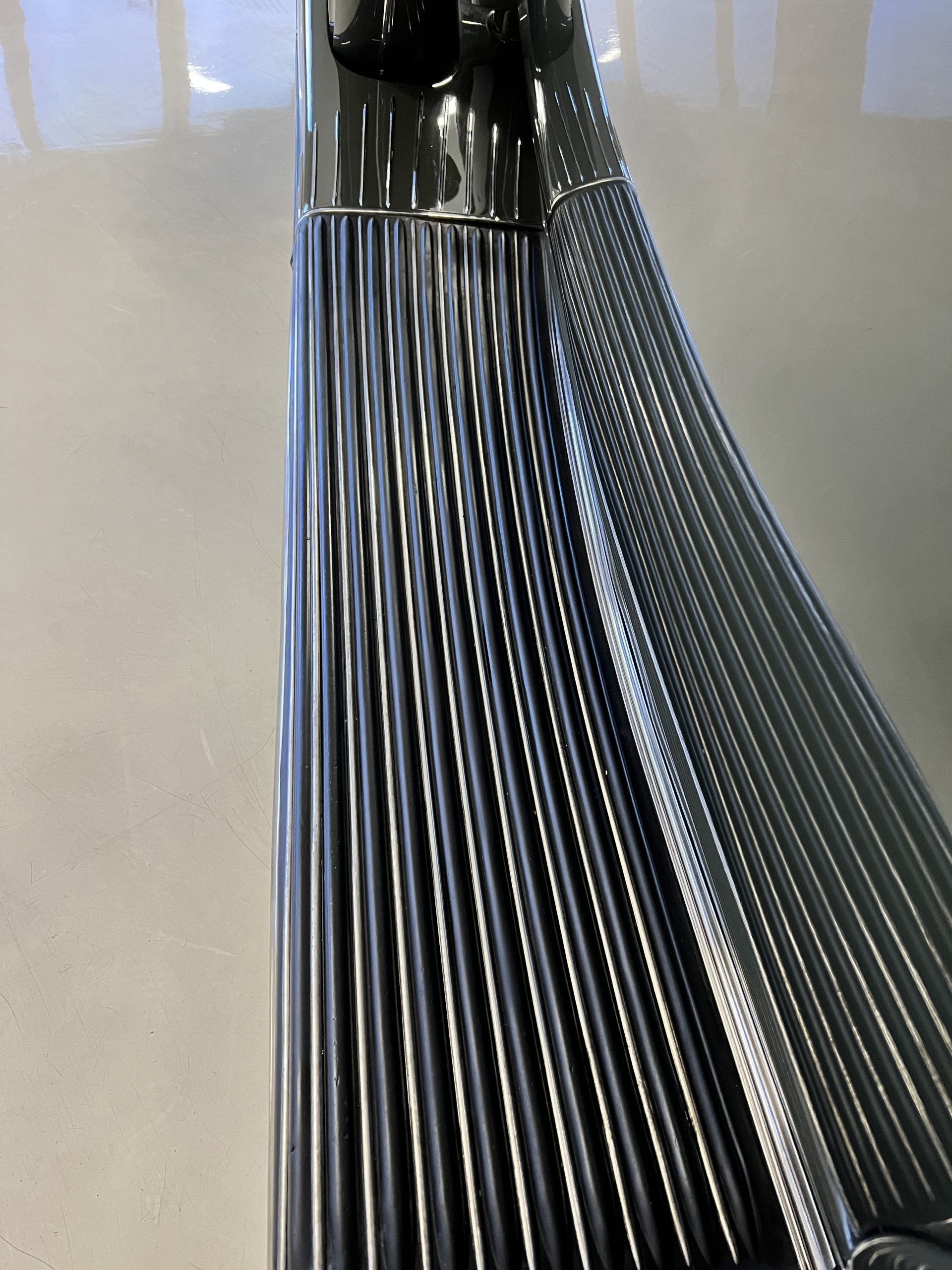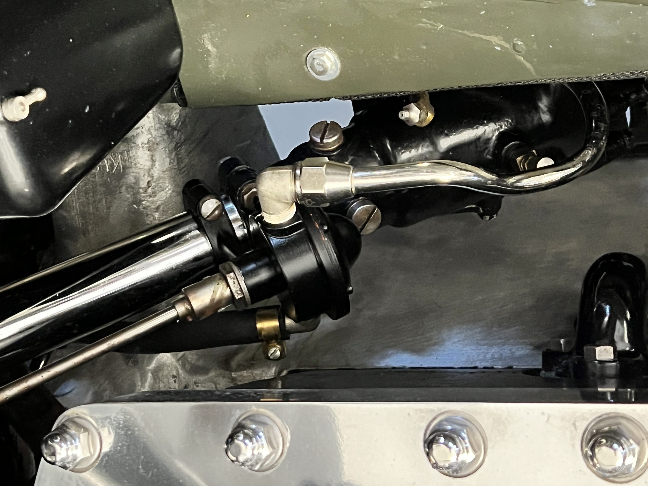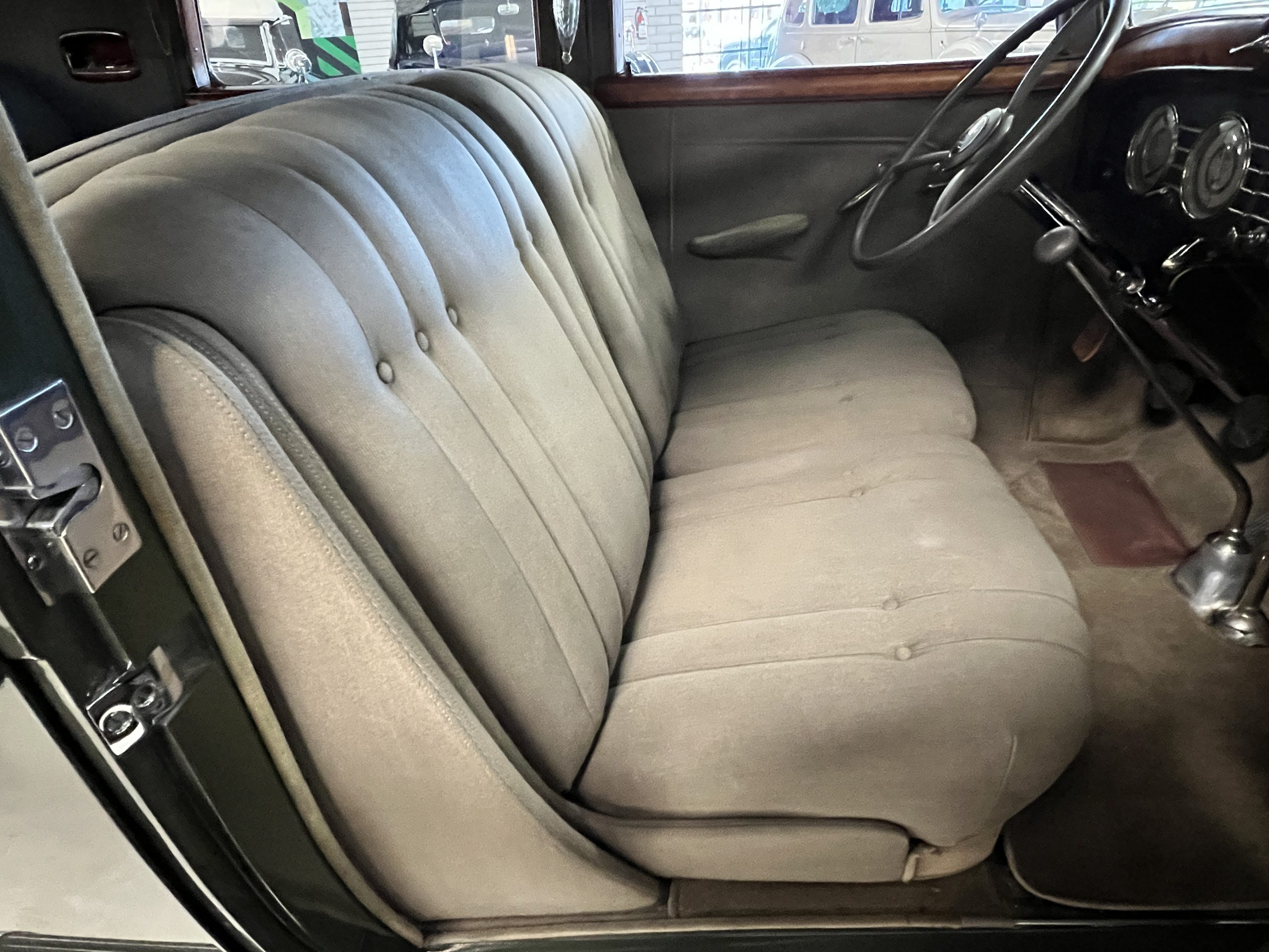 The livery was refinished in its original Slate Green. The paint is fantastic and is complimented by gray coachstripes and beautiful chrome finished throughout. This was accomplished from the thorough restoration with a bare metal respray and all the finishes redone to very high concours standards.
