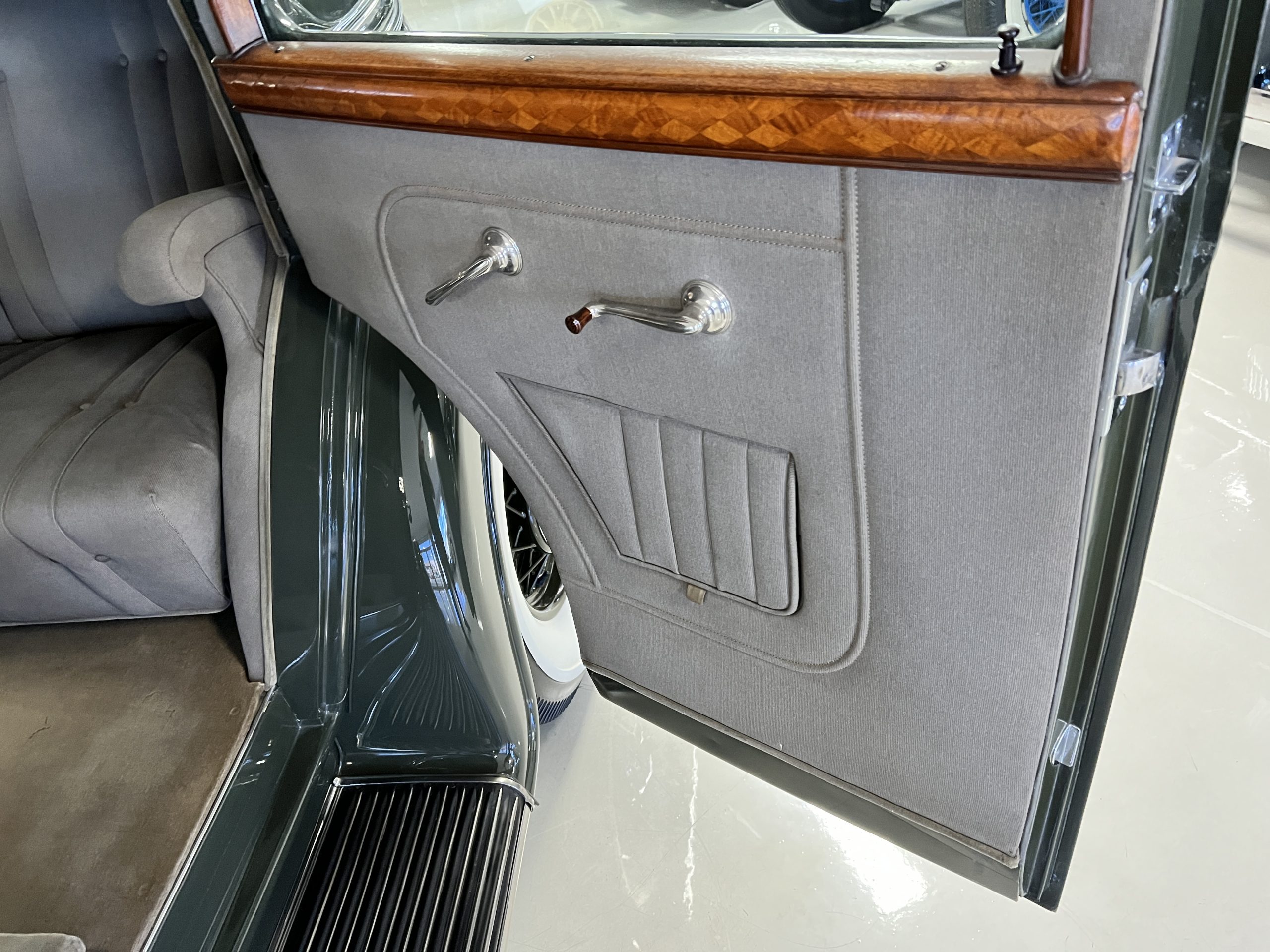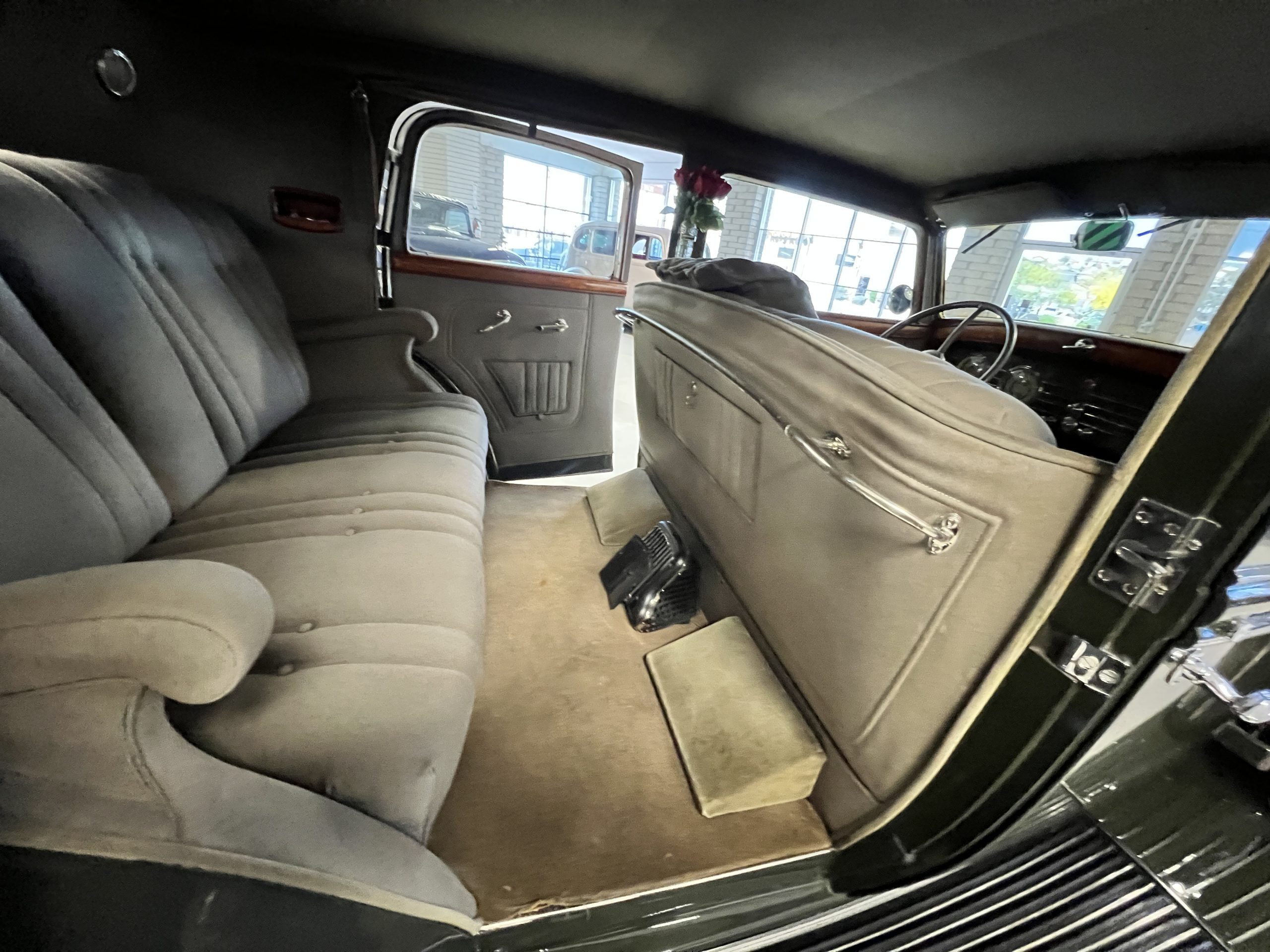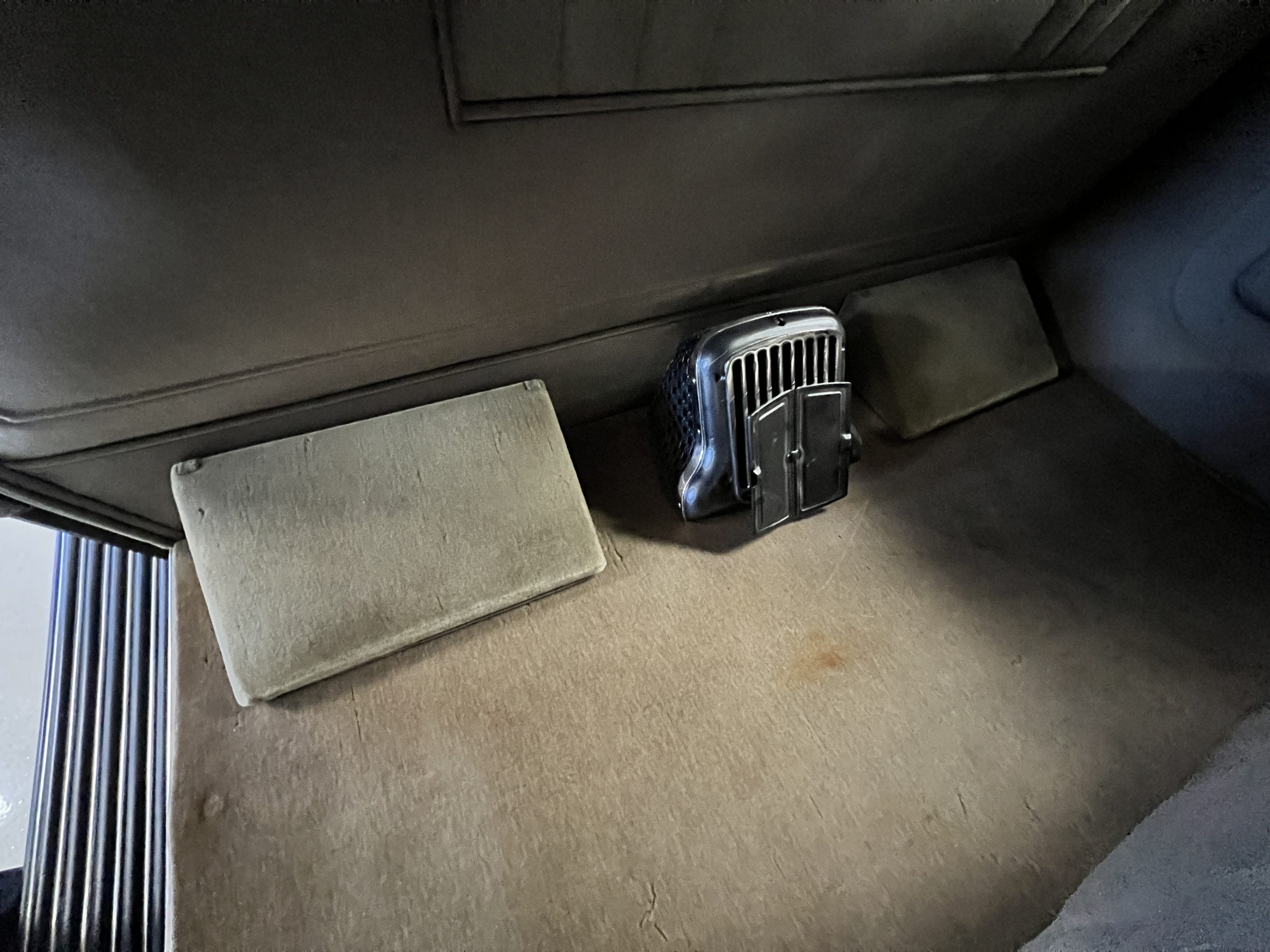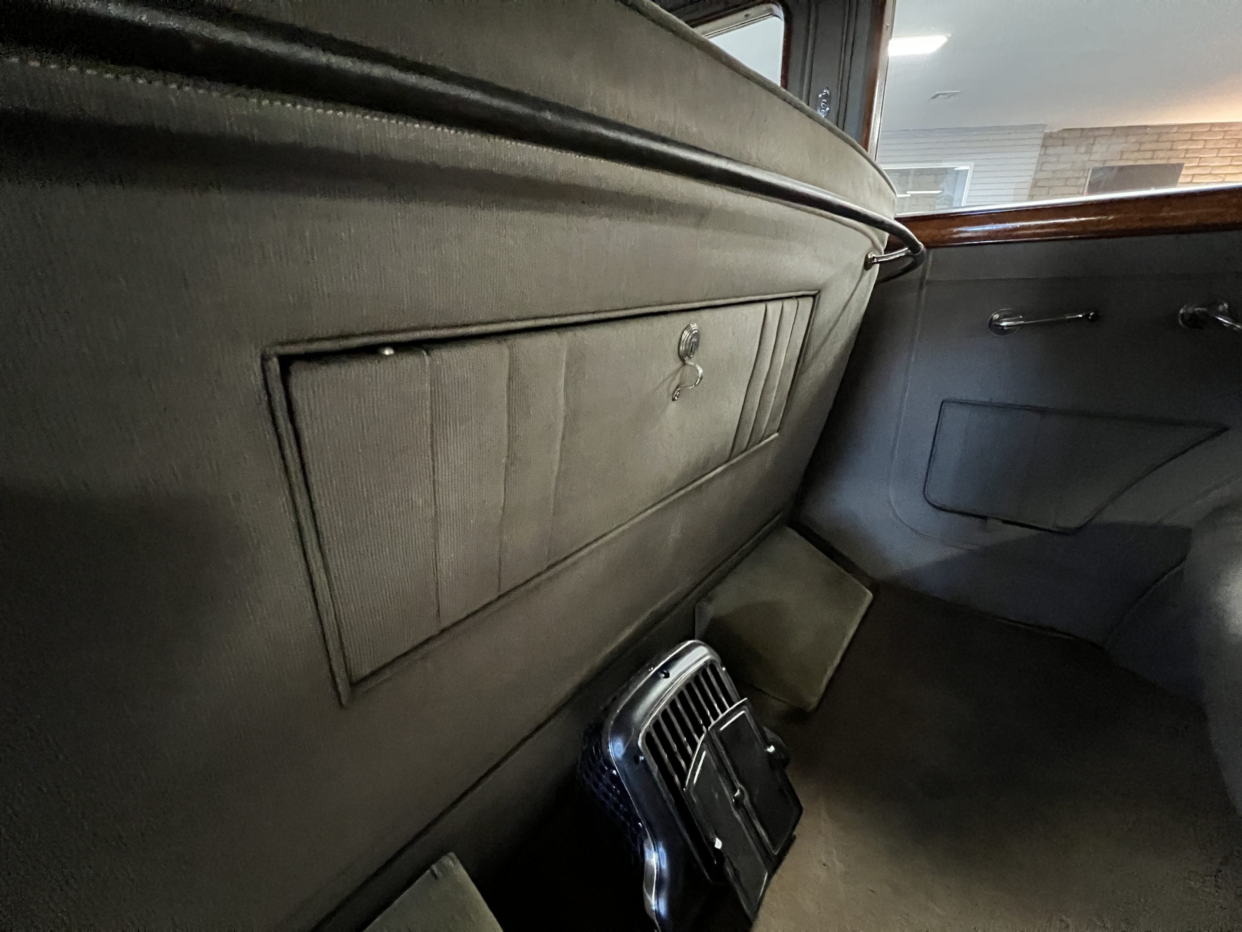 The most incredible part of this classic is the original interior, Trim Code 1645. All of the interior is original save for the front mosstread carpet which has been replaced with an original replacement. The interior is very close to perfect given its age. The wool broadcloth is nearly perfect with none of the usual staining. There are a few very small moth holes in the headliner, but they are almost un-noticeable without a fine inspection. The rear passenger compartment has a heater and twin vanities. It all remains in gorgeous condition today. The rear compartment also has its compliment of silk shade, which are also in beautiful original condition. The dashboard and inlaid wood panels are all in beautiful condition. Even the keys and keyfob are original to the car and in remarkable condition today. The rear compartment has its original floor heater as well as the foot rests.