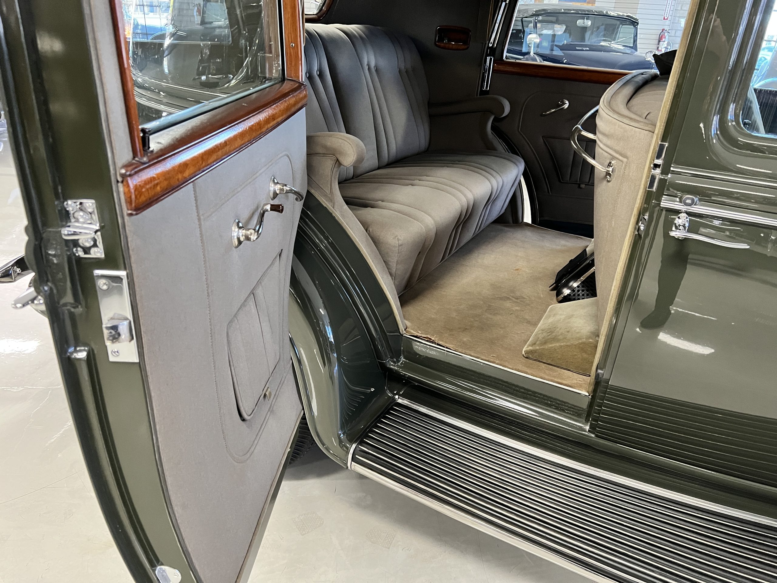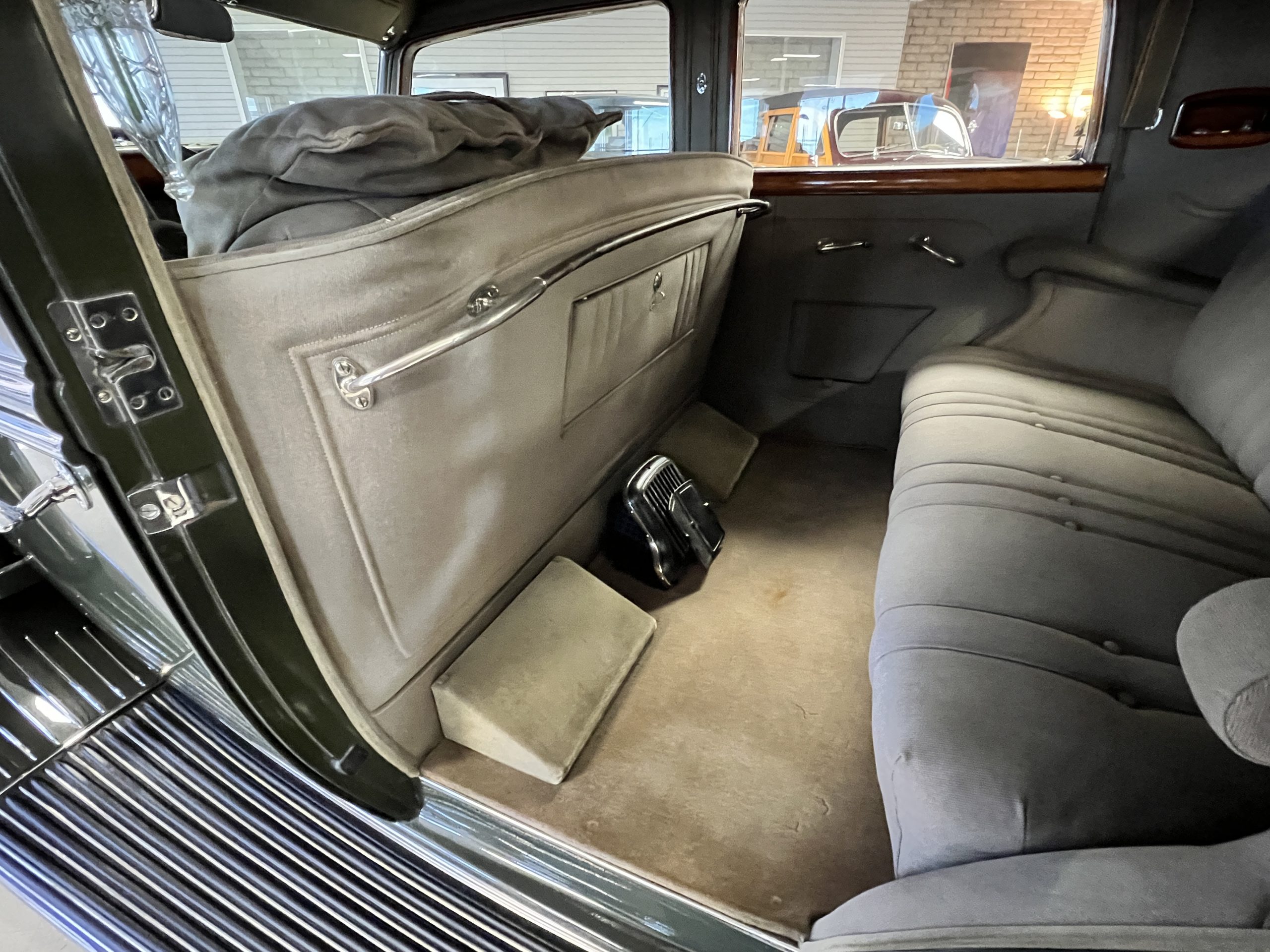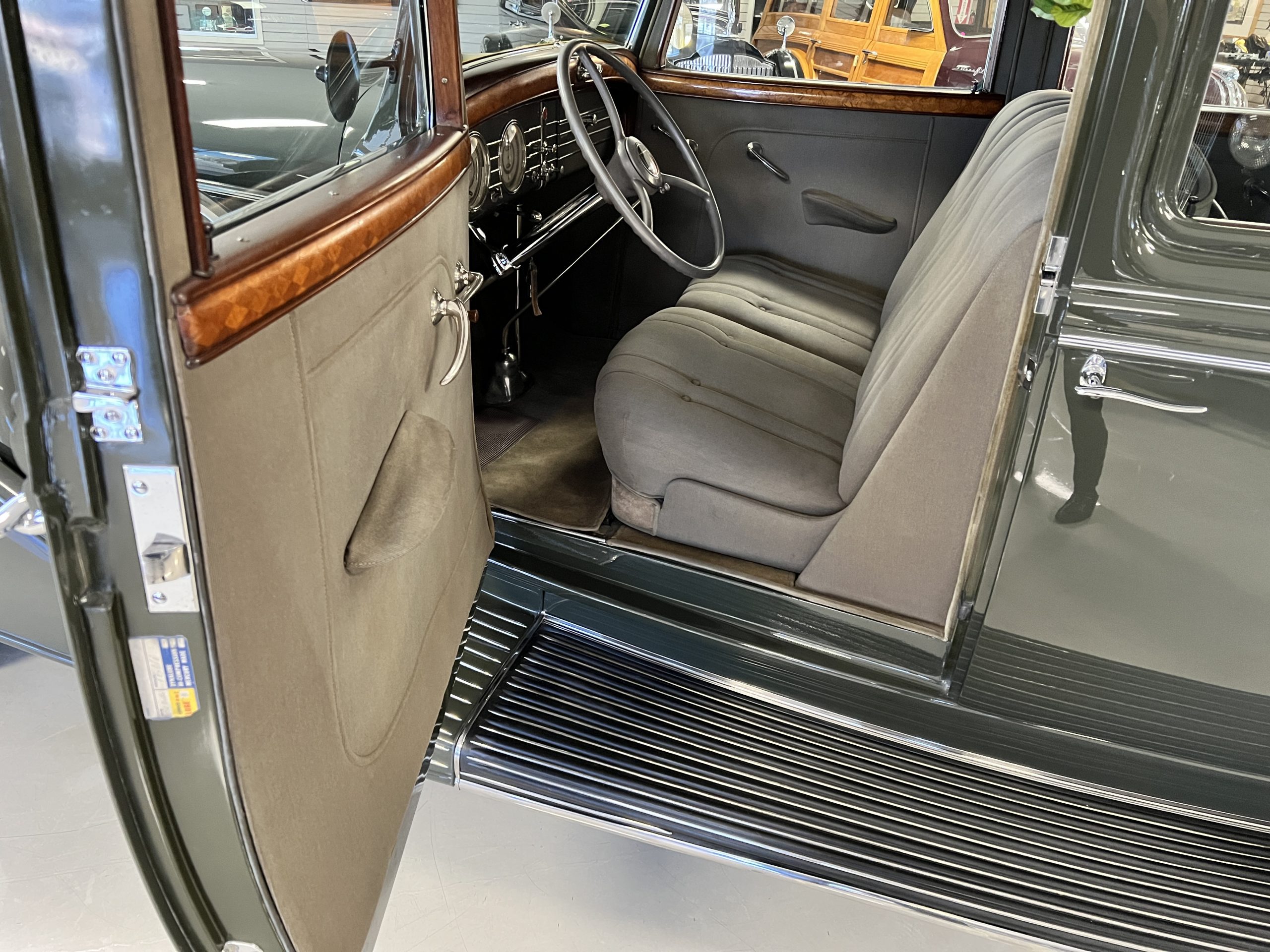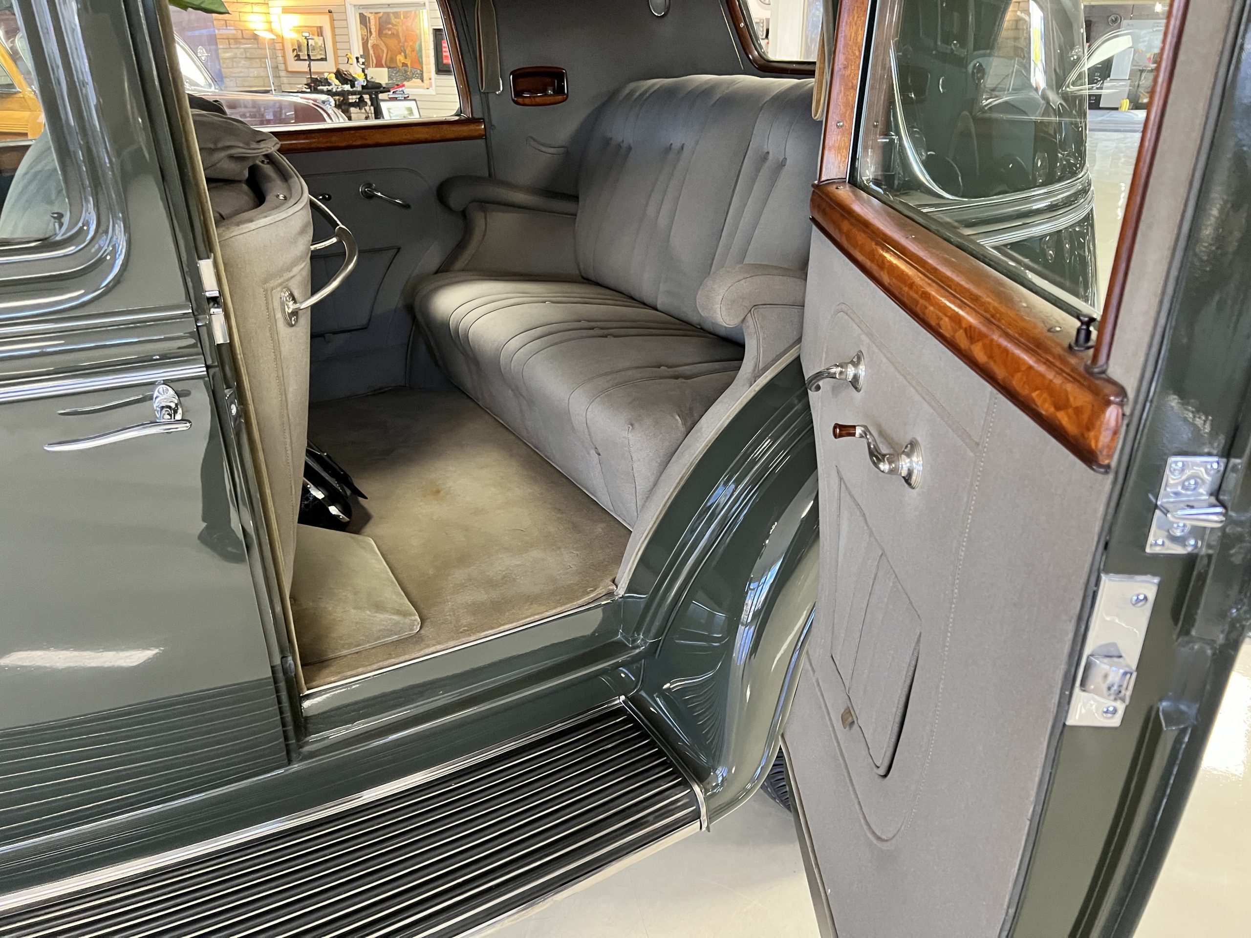 The most incredible part of this classic is the original interior, Trim Code 1645. All of the interior is original save for the front mosstread carpet which has been replaced with an original replacement. The interior is very close to perfect given its age. The wool broadcloth is nearly perfect with none of the usual staining. There are a few very small moth holes in the headliner, but they are almost un-noticeable without a fine inspection. The rear passenger compartment has a heater and twin vanities. It all remains in gorgeous condition today. The rear compartment also has its compliment of silk shade, which are also in beautiful original condition. The dashboard and inlaid wood panels are all in beautiful condition. Even the keys and keyfob are original to the car and in remarkable condition today. The rear compartment has its original floor heater as well as the foot rests.