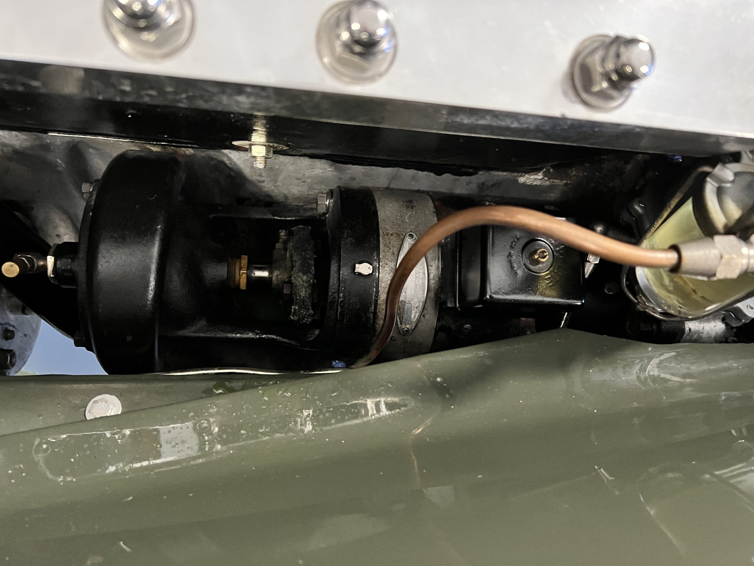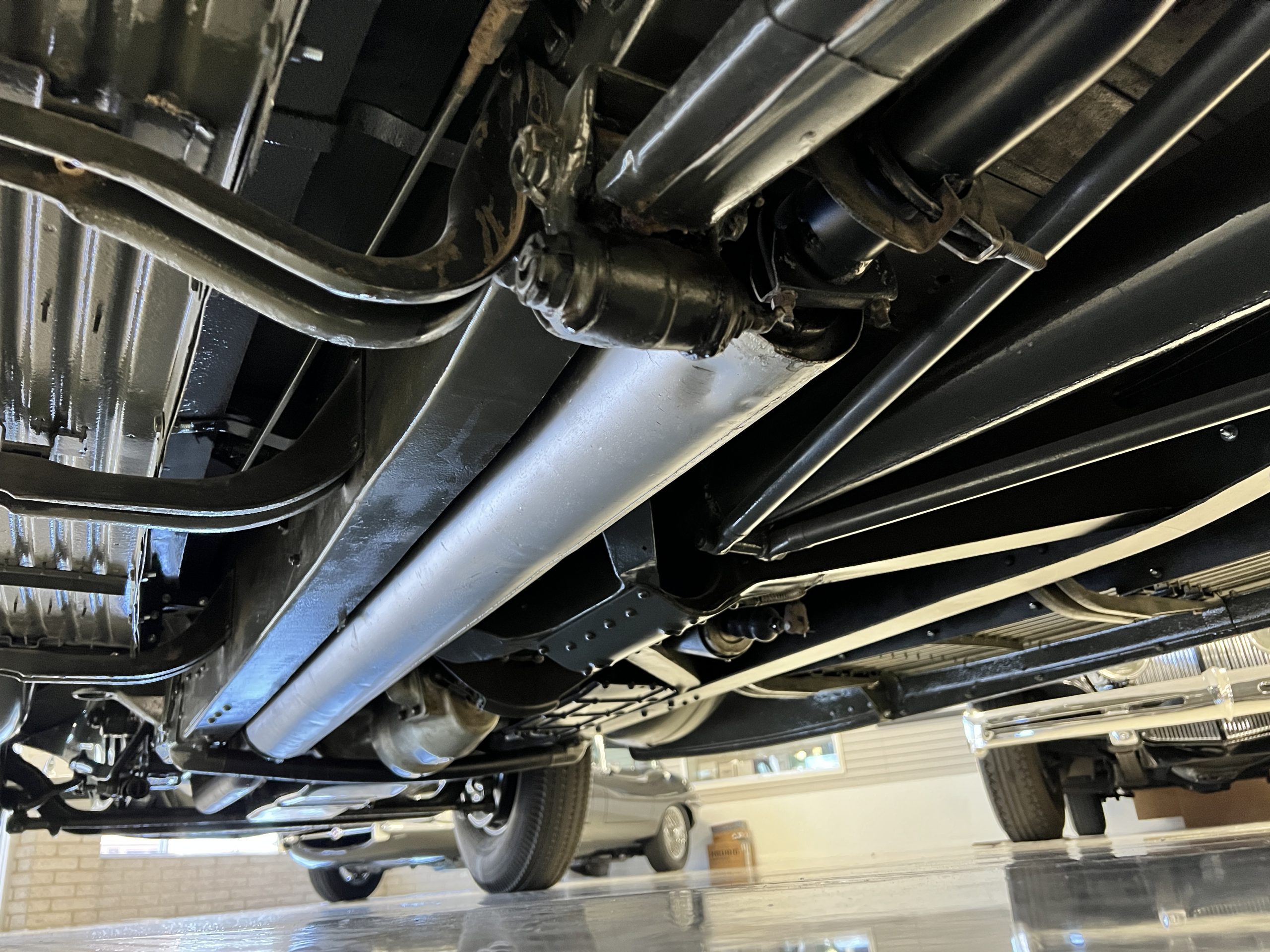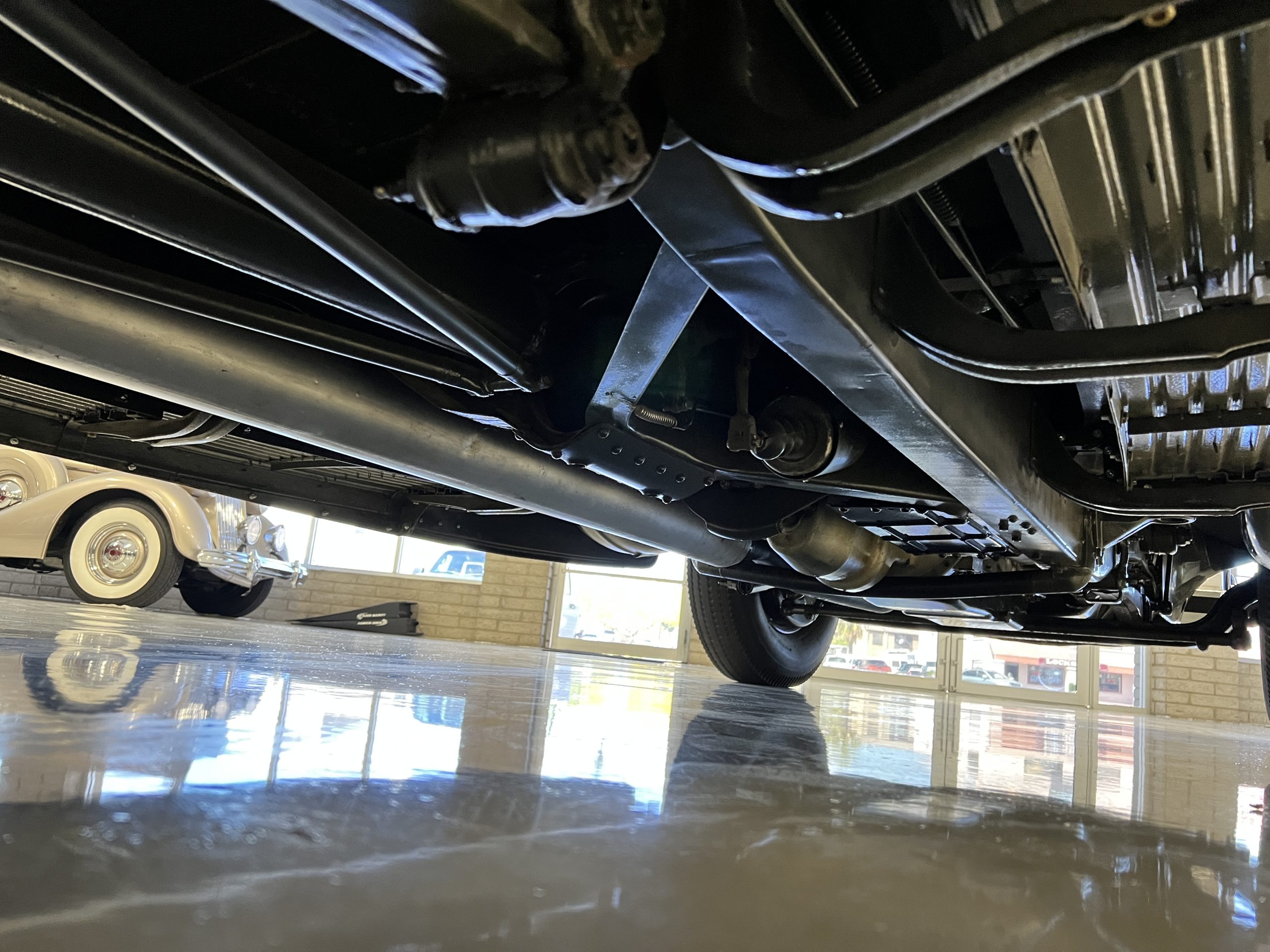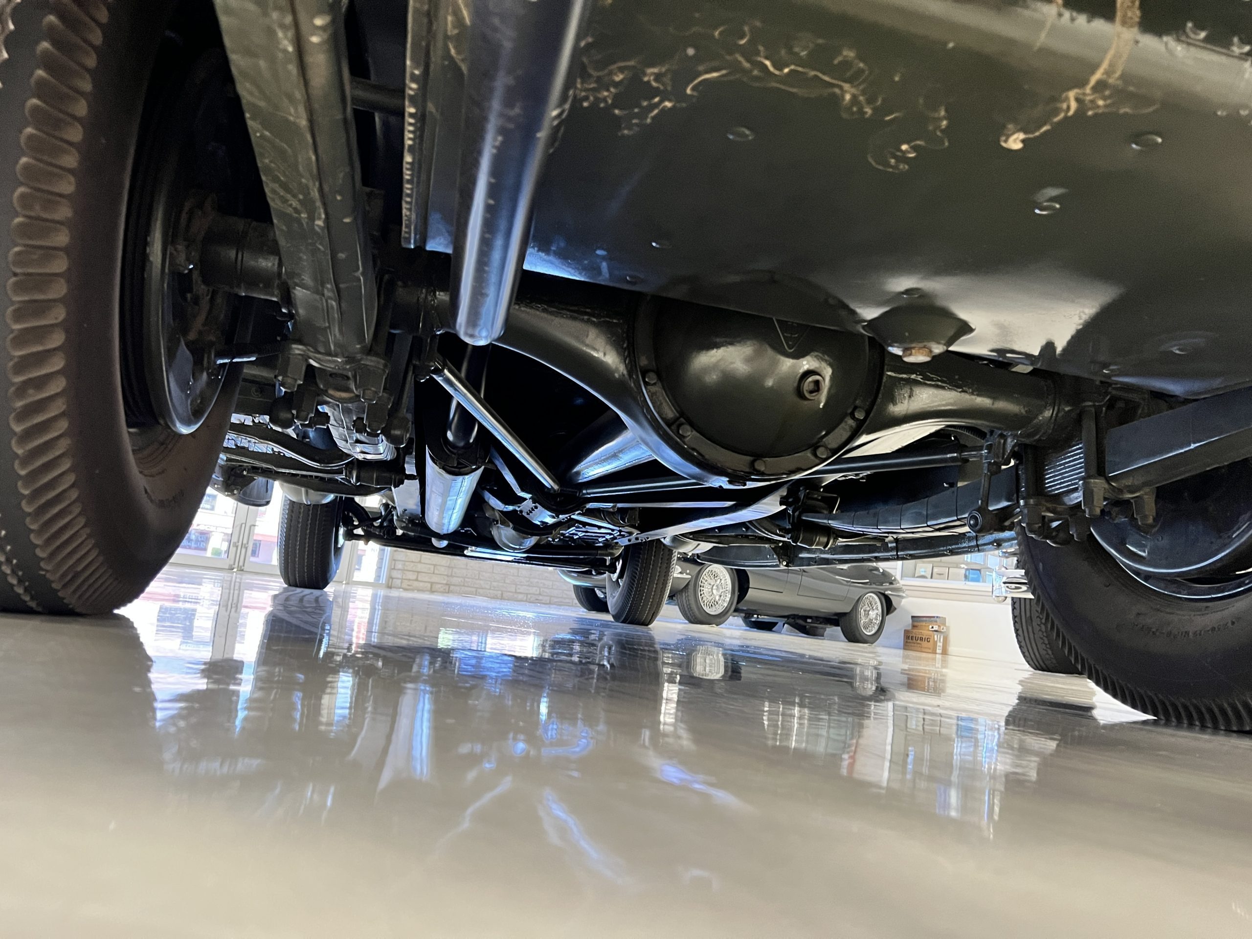 The engine compartment and the venerable 414 CID V12 are all in concours condition today. With 150 bhp, the V12 performs beautifully today, especially on the smaller and lighter shorter wheelbase. The engine was carefully disassembled and carefully inspected. It exhibited almost no wear and was then reassembled and new replacement aluminum heads were installed. It is now running beautifully. The chassis was completely stripped and repainted to concours standards in a matching Slate Green. It is gorgeous!