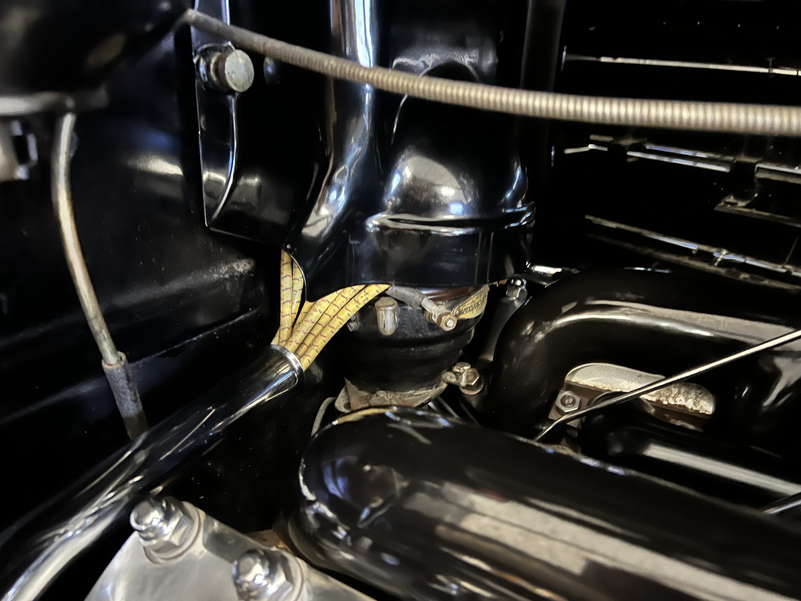 Every detail was attended to. The body was stripped to bare metal, the chassis was also stripped and refinished. The engine was removed and torn down to find there was no wear in the cylinders or other components. All the porcelain and finishes are done to top concours level.