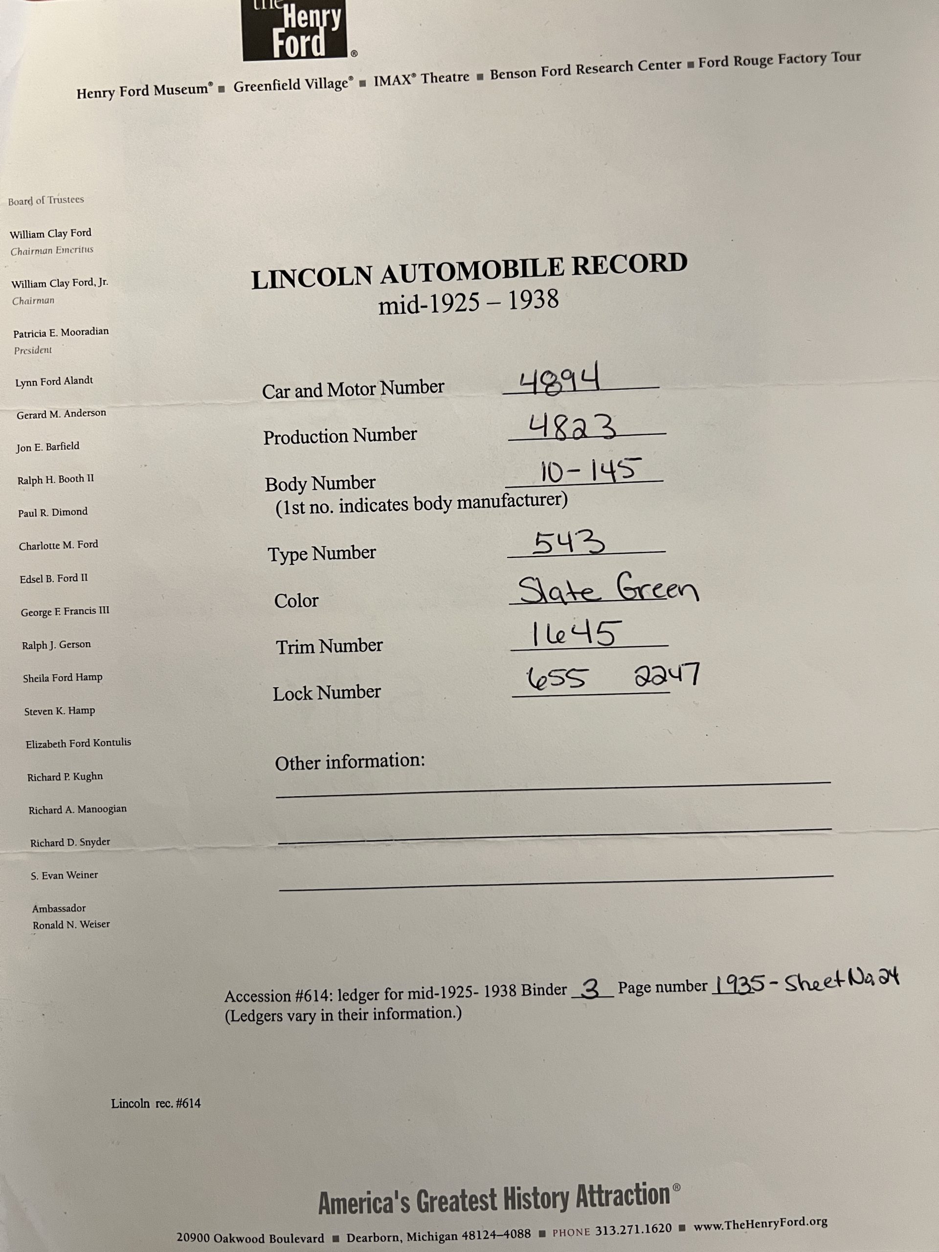 It was delivered new to a petite person from Avon, CT who special ordered it with a drivers seat removeable pillow and extra thick peddle pads. Early in its life, it developed a cracked head and was stored. By the 1950’s, the Lincoln was acquired by Mr. Charles Walker of Avon, CT. By July 27, 1955, the K had accumulated 16,111 miles. The Walker family enjoyed the K for the next 40+ years, showing it at many local and regional events. See the photo gallery for the photos showing it with them in the late 1950’s and early 1960’s at car shows. When Charles passed, his son, Rich inherited the K. Rich Walker continued to enjoy the K until October of 1994.