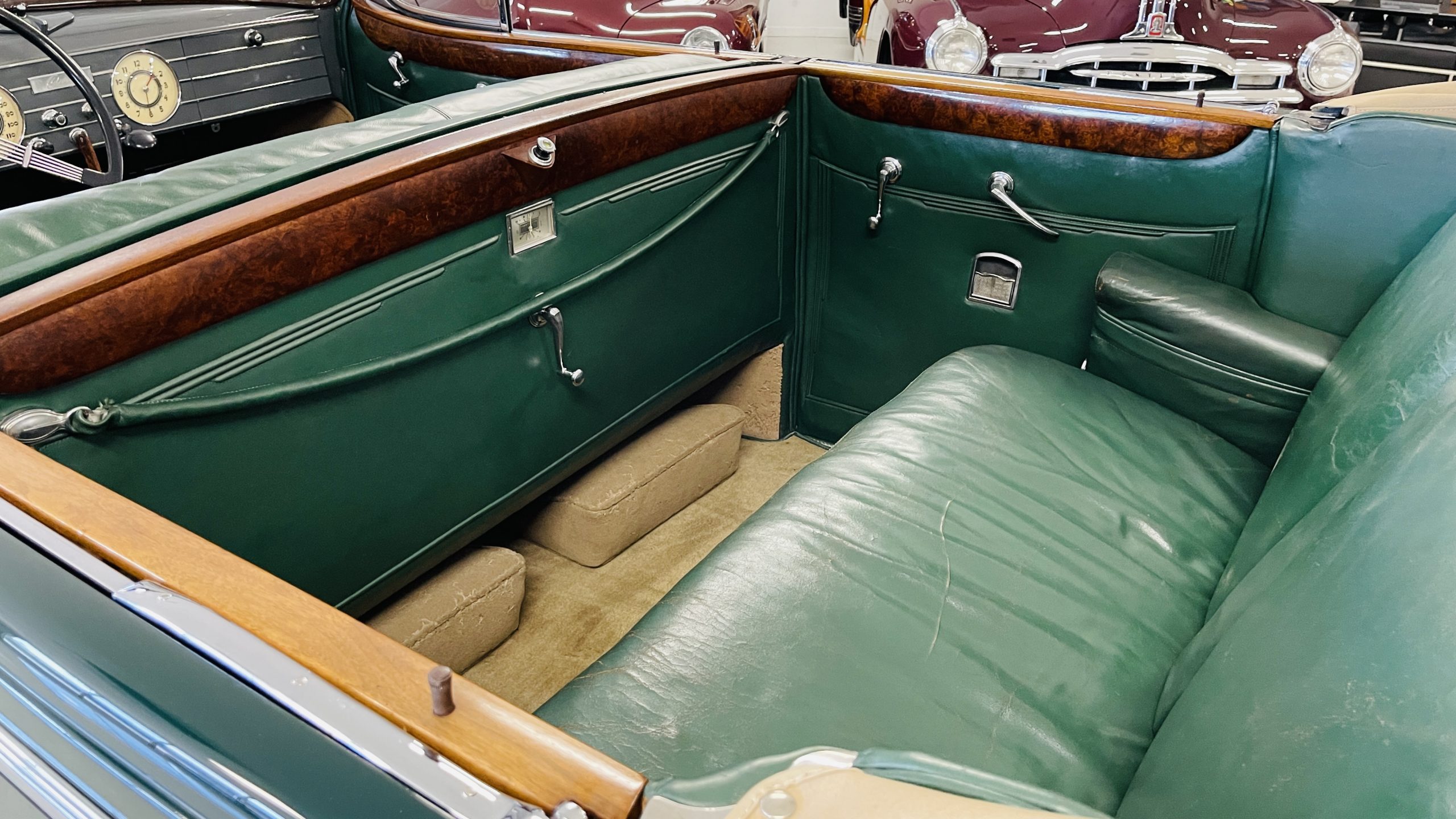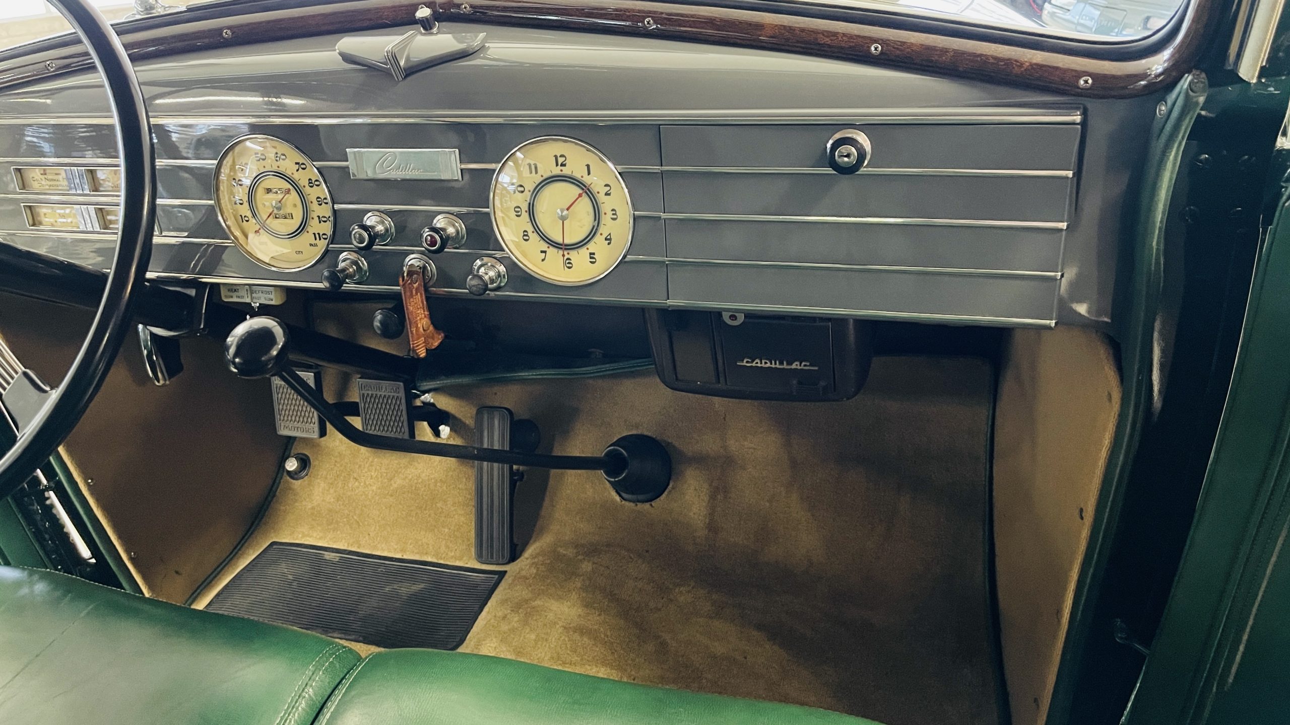 The beautiful green leather interior is largely original with only a reupholstering of the front seat and new carpet during its 85-year history. The door panels look terrific, save for some wear marks near the footwell and from the utilization of the window cranks. The front seats are comfortable and show little signs of wear. The rear seat shows well when considering the age and still has a soft and supple cushion. The two-family history and the original interior are examples that this Cadillac has been incredibly well loved and cared for since new.