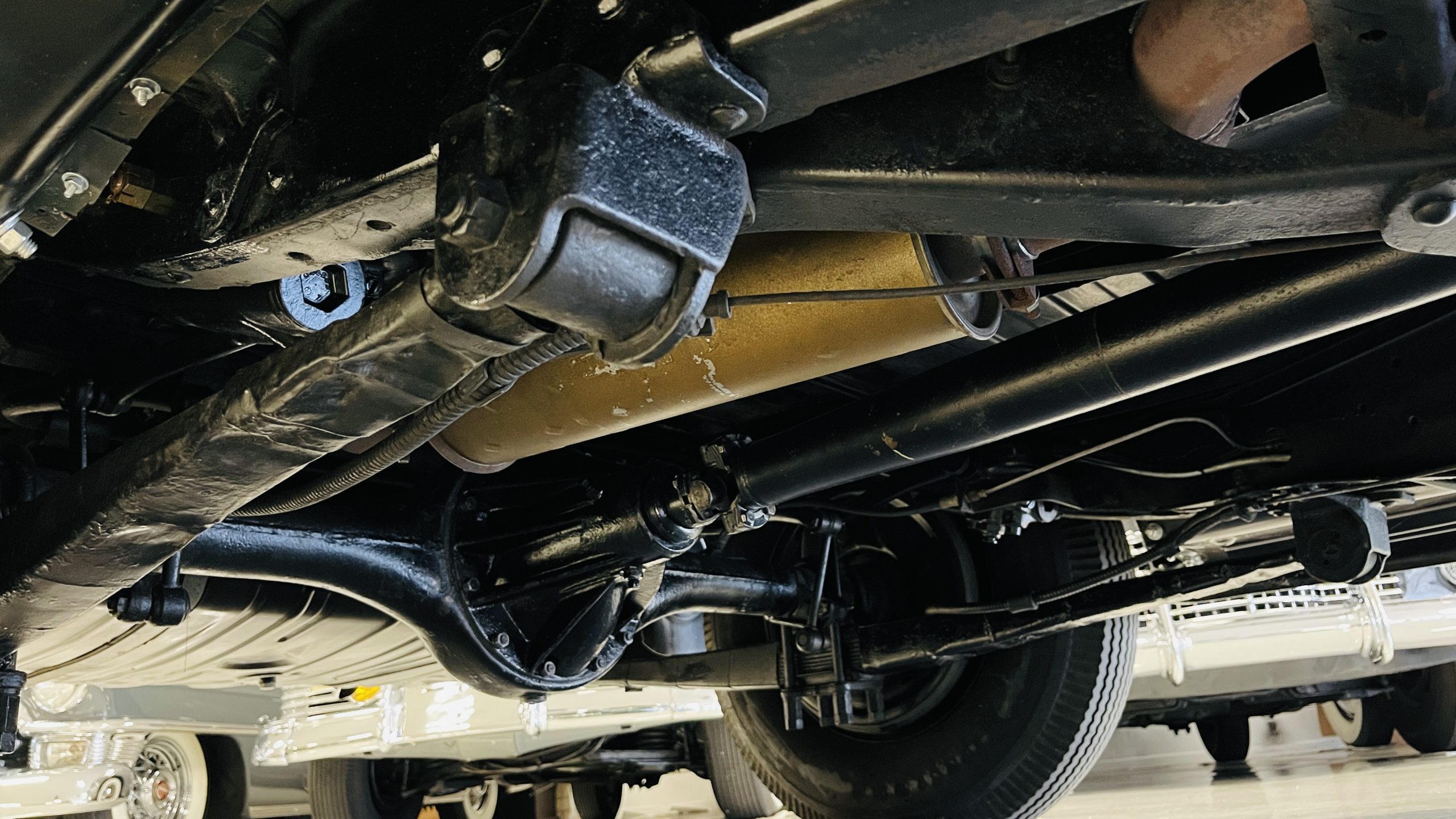 Mechanically, this Cadillac is ready for the show field and for long distance touring. The 346 cubic inch V8 offered 135 horsepower when new and provides ample power. The floor mounted three speed manual transmission moves through the gears well and offers a confidence inspiring driving experience. The engine compartment is finely detailed, and the undercarriage is clean.