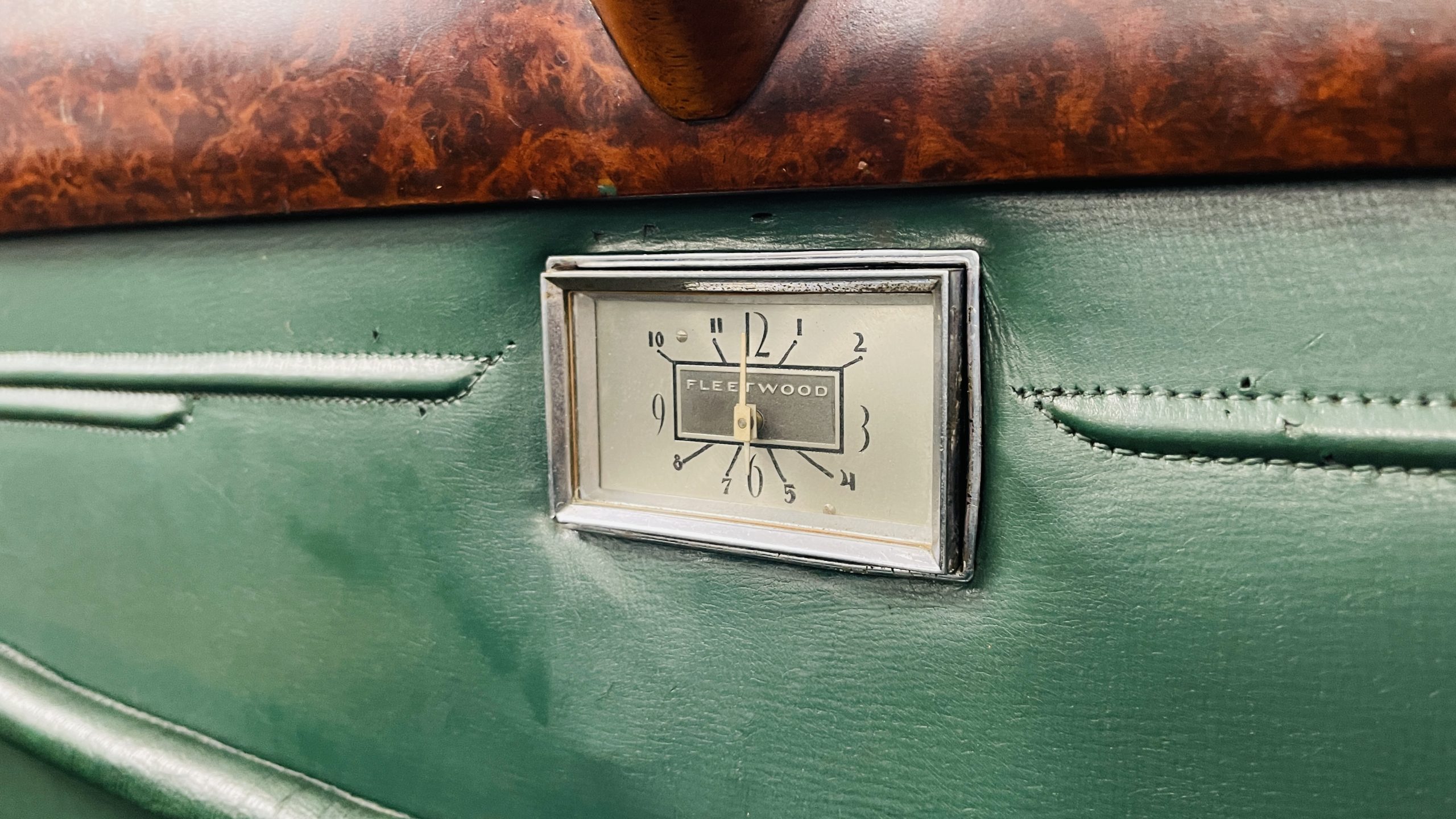 The wood trim looks very nice and really reveals the quality and beauty that Cadillac is known for. The dash and instrumentation are clear and clean. The division operates with a near effortless twist of the handle. Adorning the area around the division window handle are a cigar lighter and a rare Fleetwood clock. The interior accent lighting is functional and bright.
