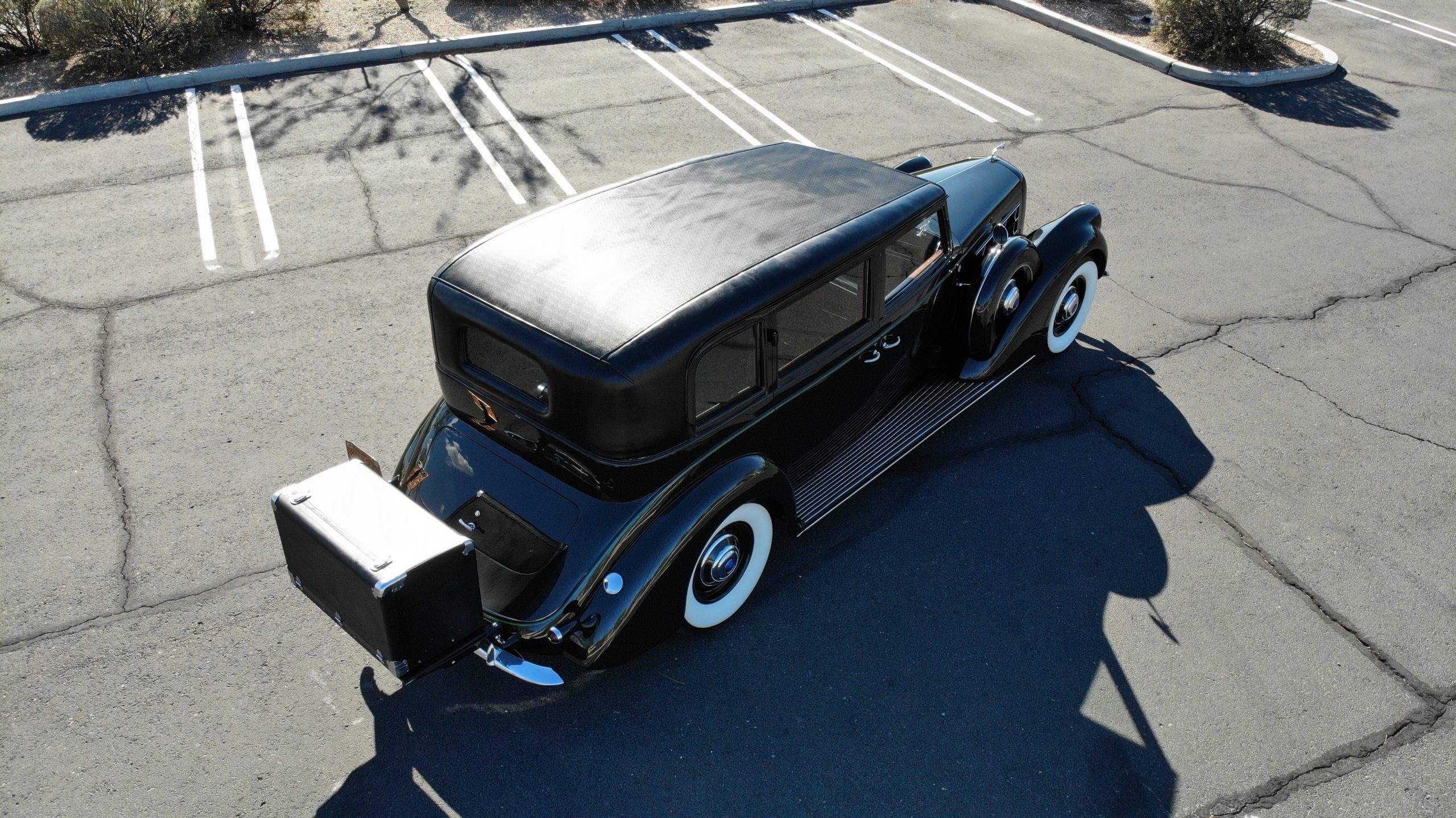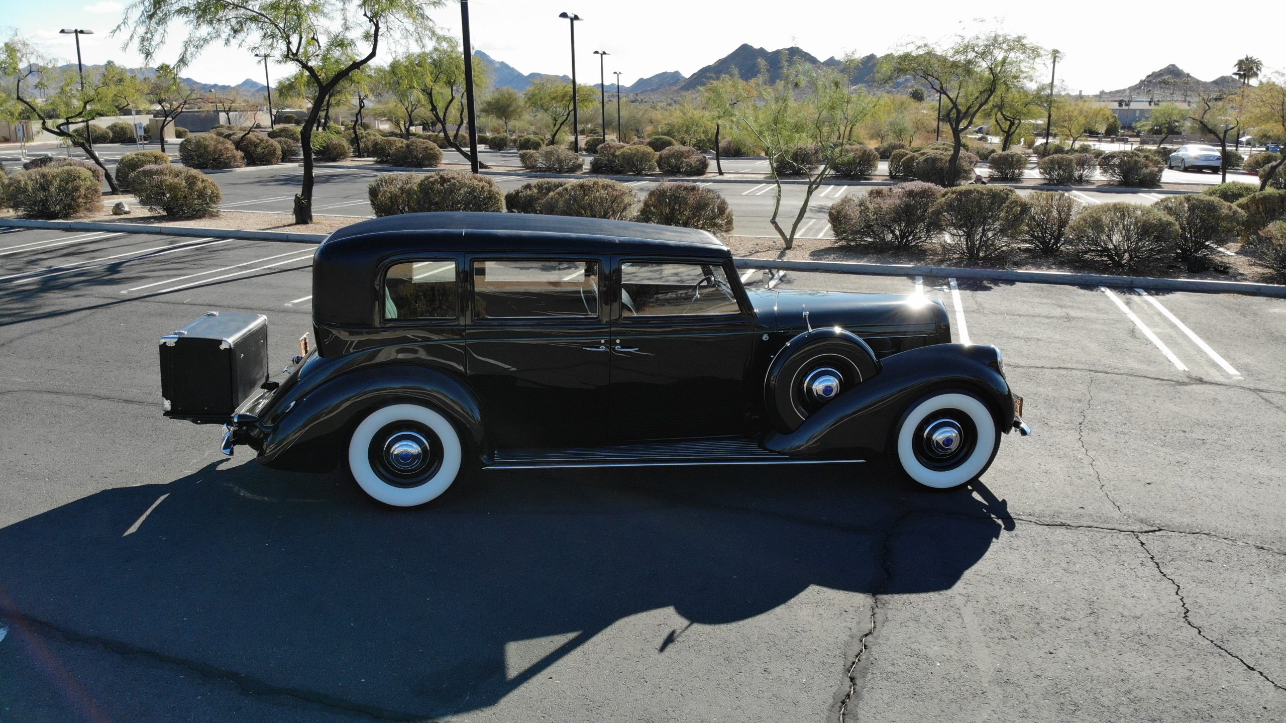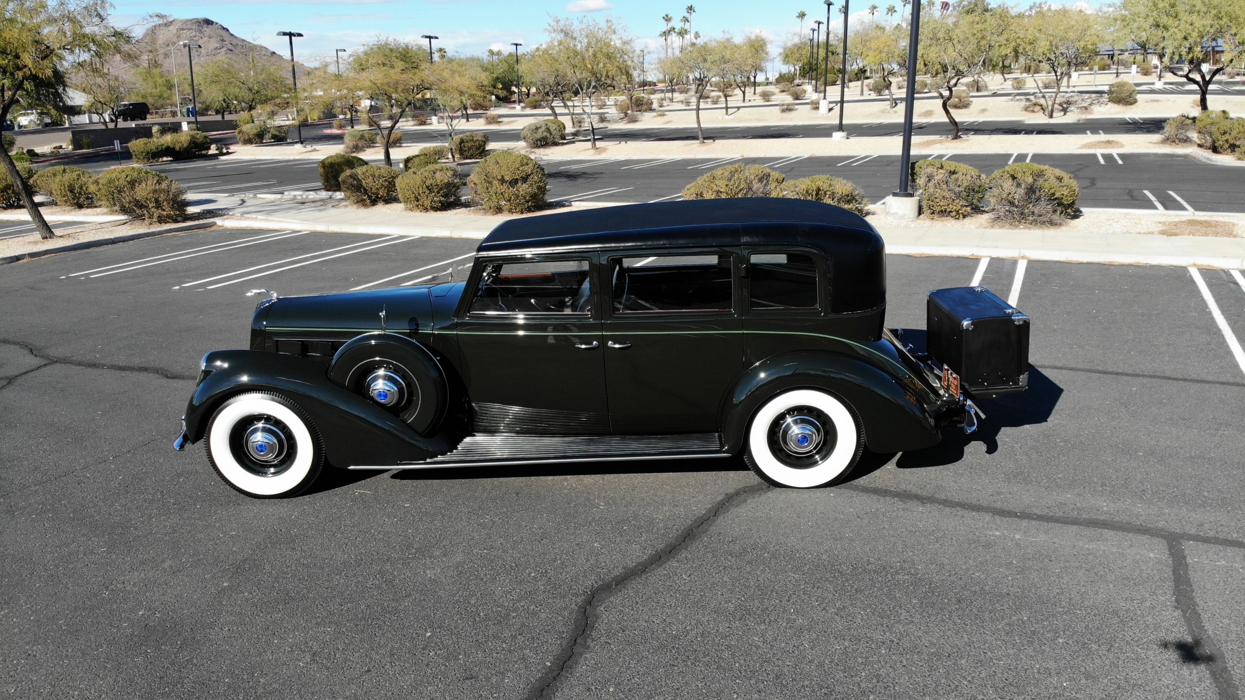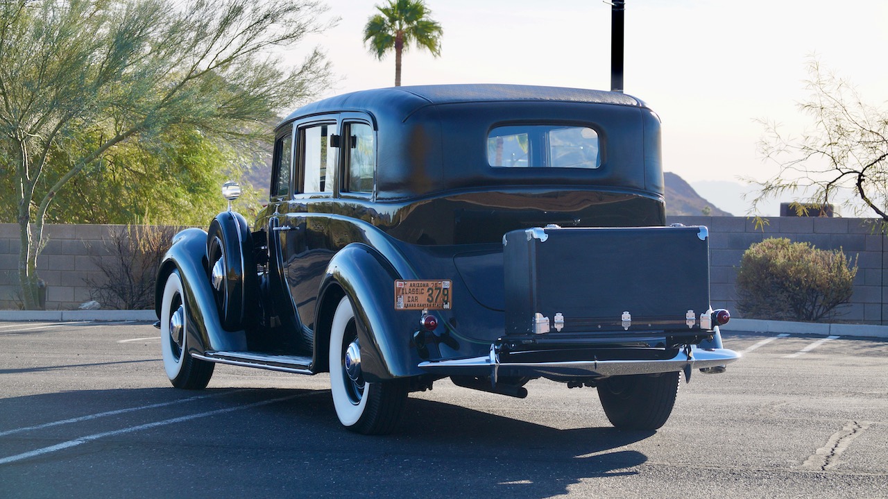 The Lincoln is accessorized with a correct black leather luggage trunk with four fitted pieces of luggage inside. This is all in beautiful show condition today.