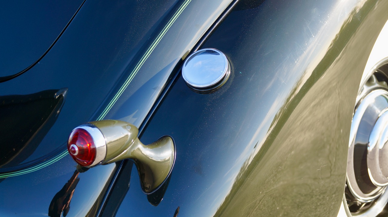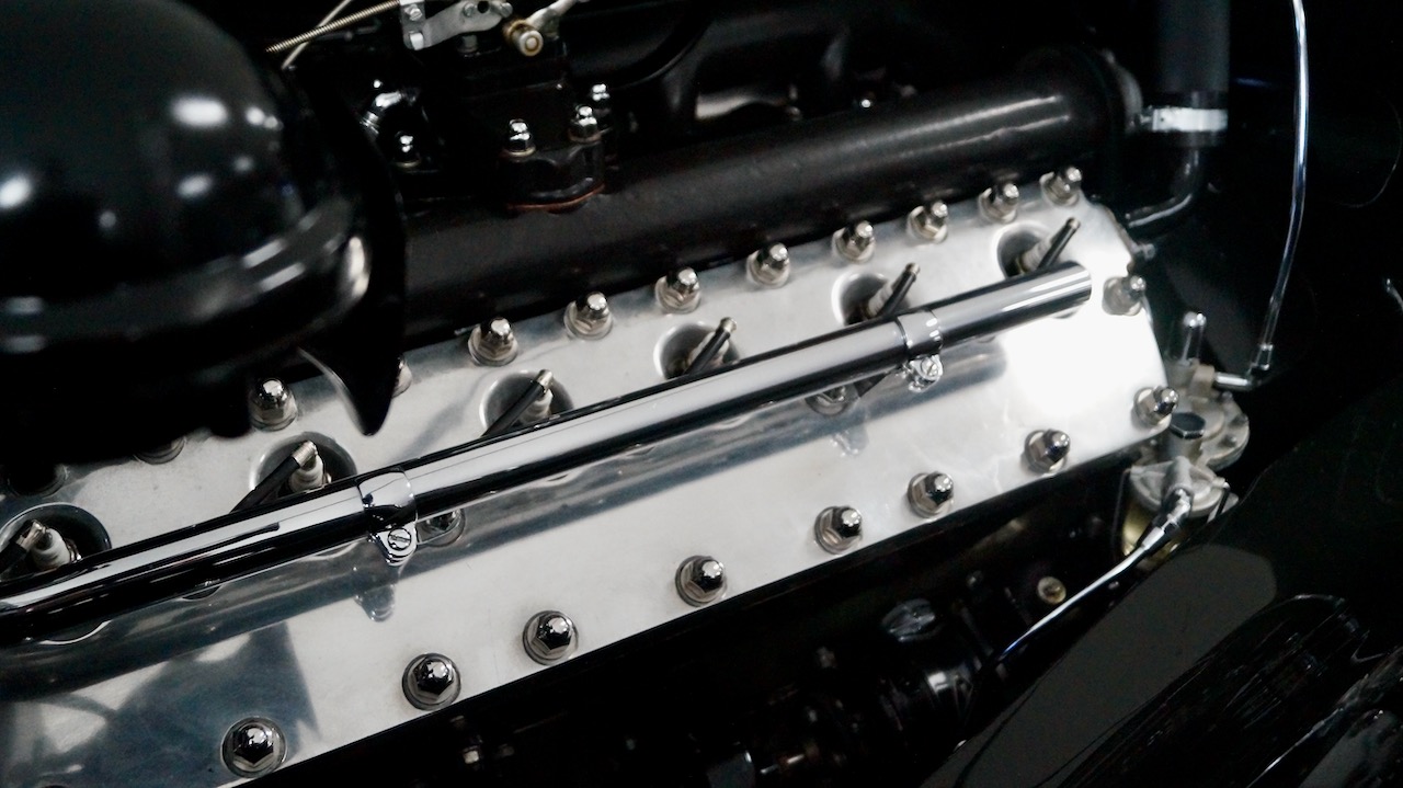 The engine compartment is beautifully detailed and the engine is smooth and powerful in all respects. The details are very accurate and there is little needed to make this ready for concours competition. Mechanically, we found no issues that need attention. The electric fuel pump comes on with the ignition and battery disconnect is easily accessible. This Lincoln also has been upgraded with a high speed rear end and drives well on highways. This Lincoln comes complete with documentation going back to 1969, including letters from Hermann C. Brunn about this car and a huge stack of receipts for the restoration and maintenance. The documents include copies of the original Brunn drawings for this design.