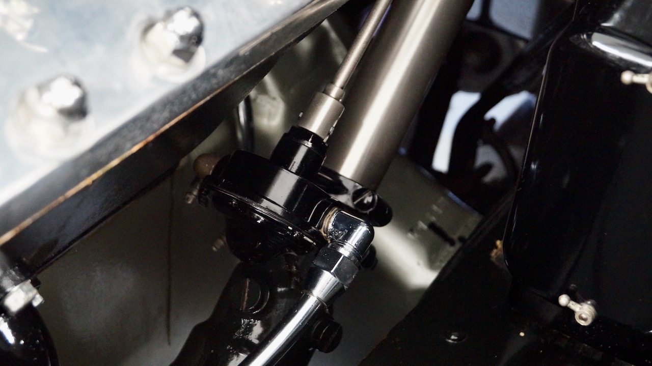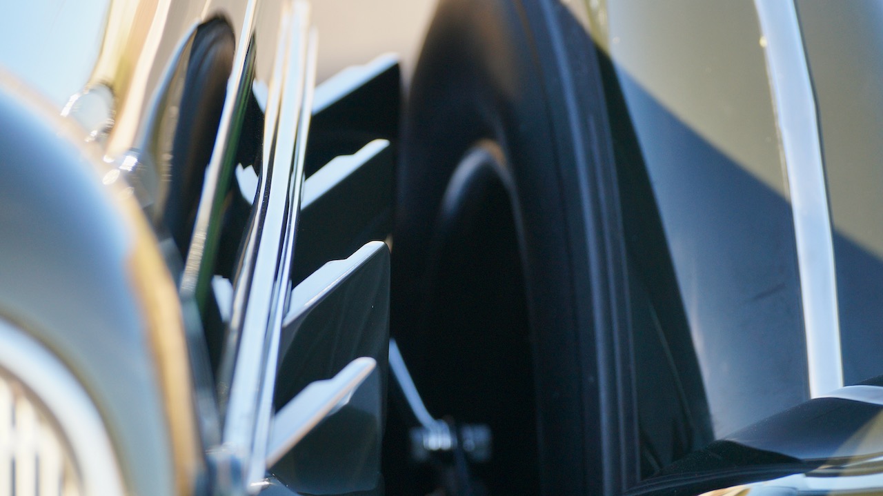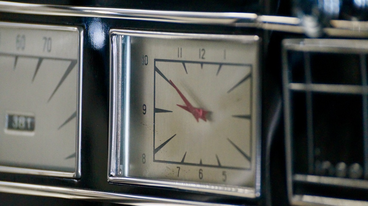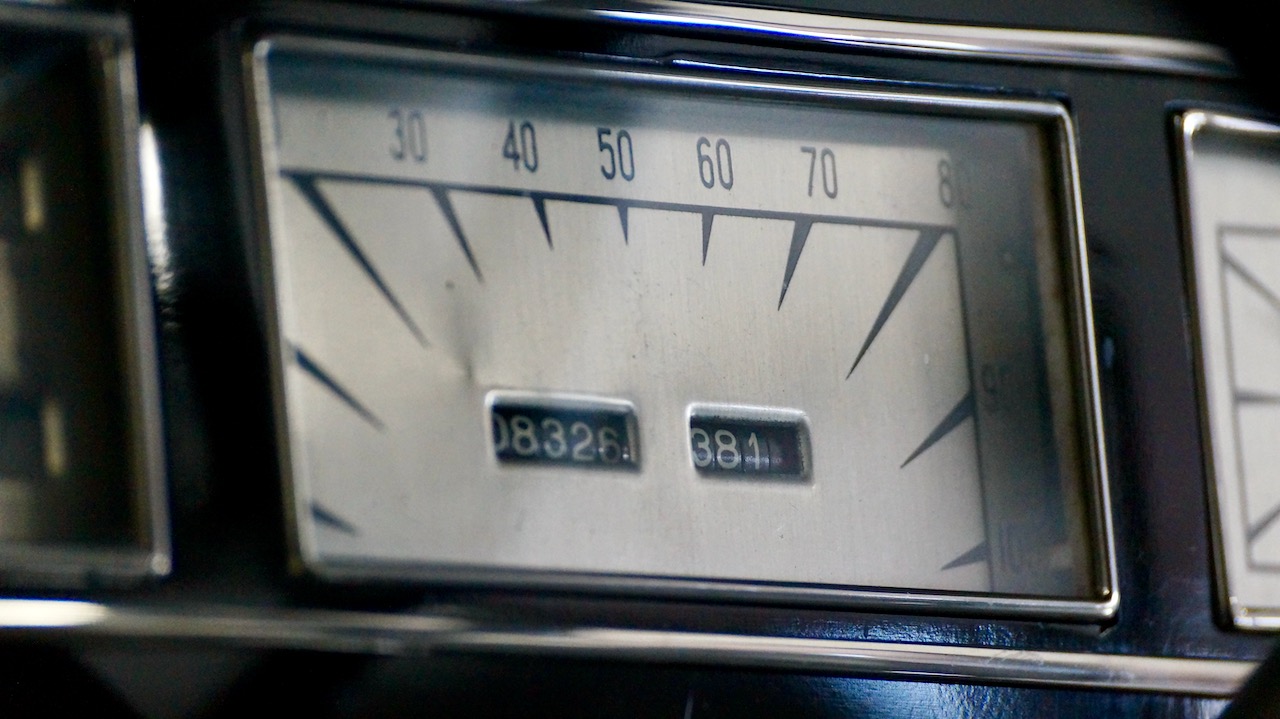 The interior has beautiful and correct black leather for the chauffeur’s compartment. The leather is soft and supple and shows minimal wear, commensurate with the 8,000 miles added since the restoration. The dashboard was fully restored and is well done with several light scratches near the top of the steering wheel where rings or nails hit the painted surface while touring.