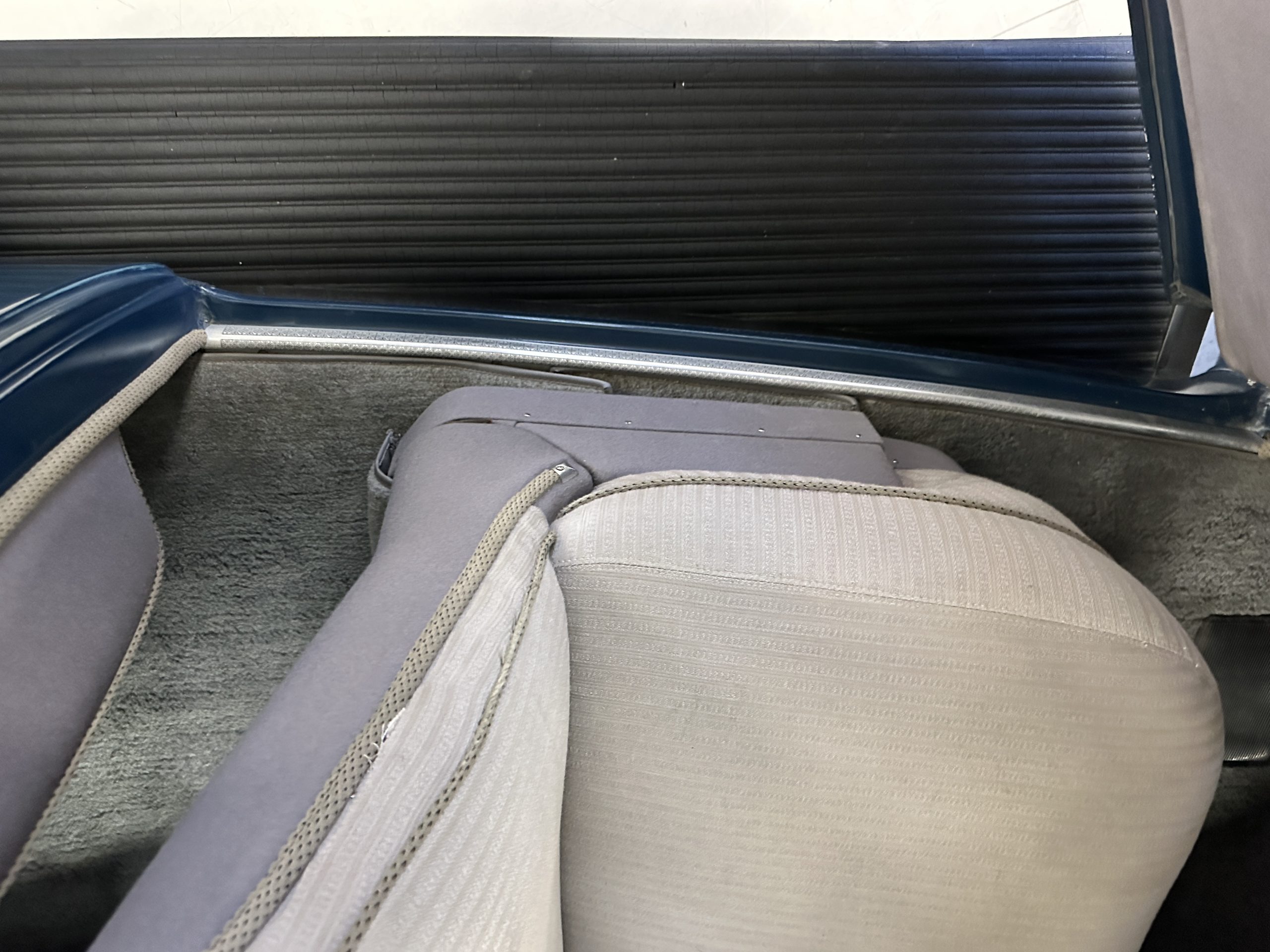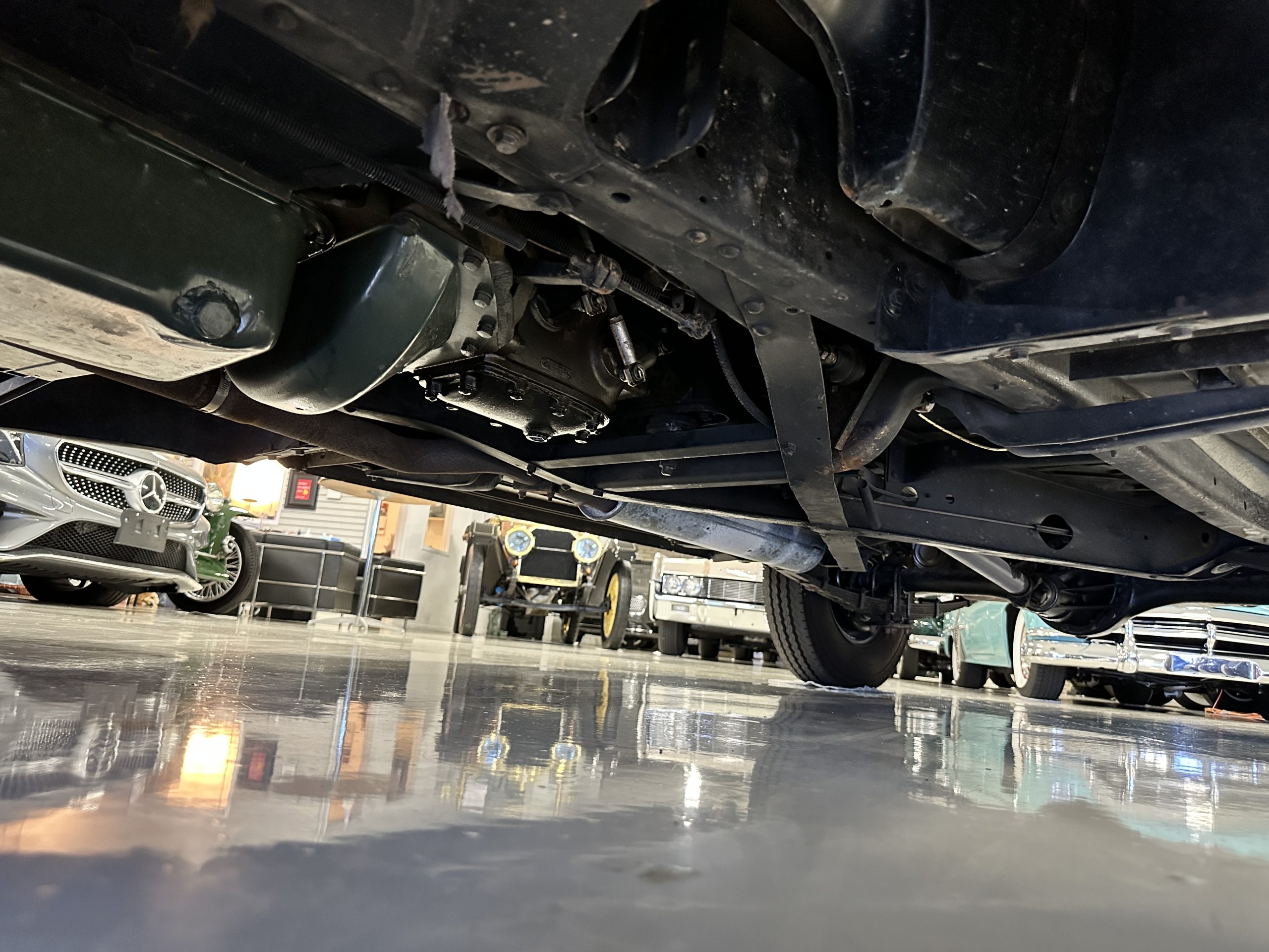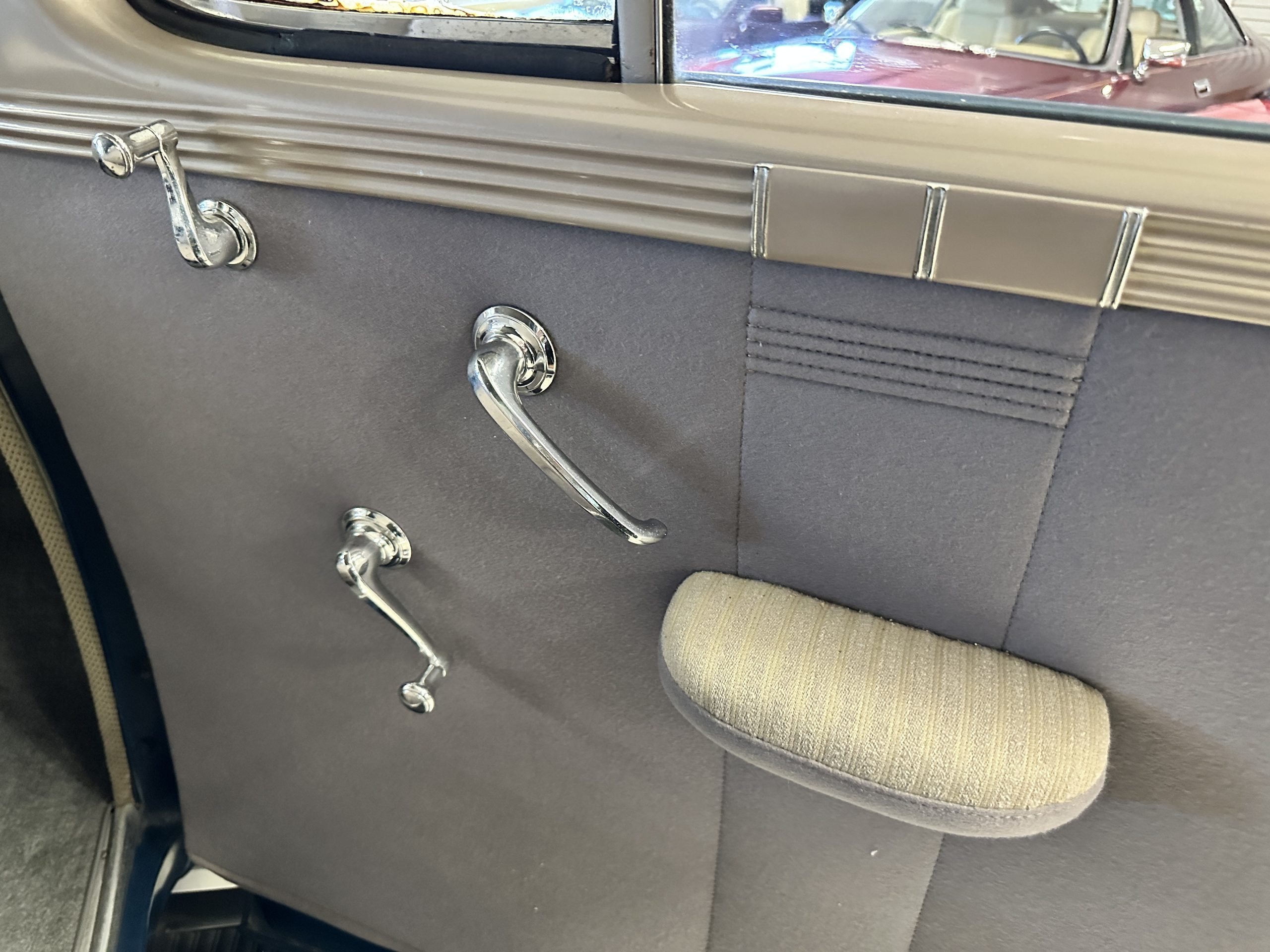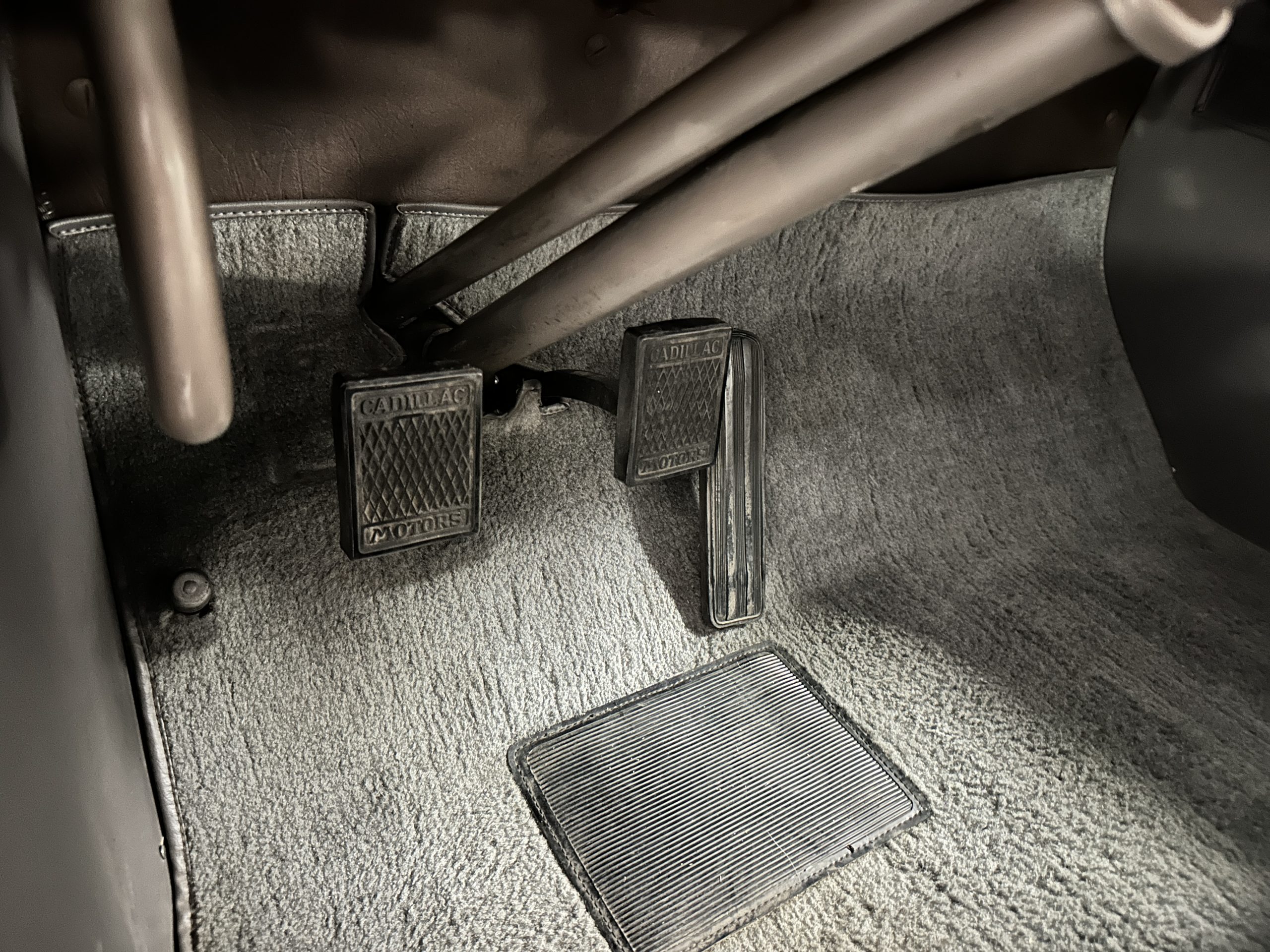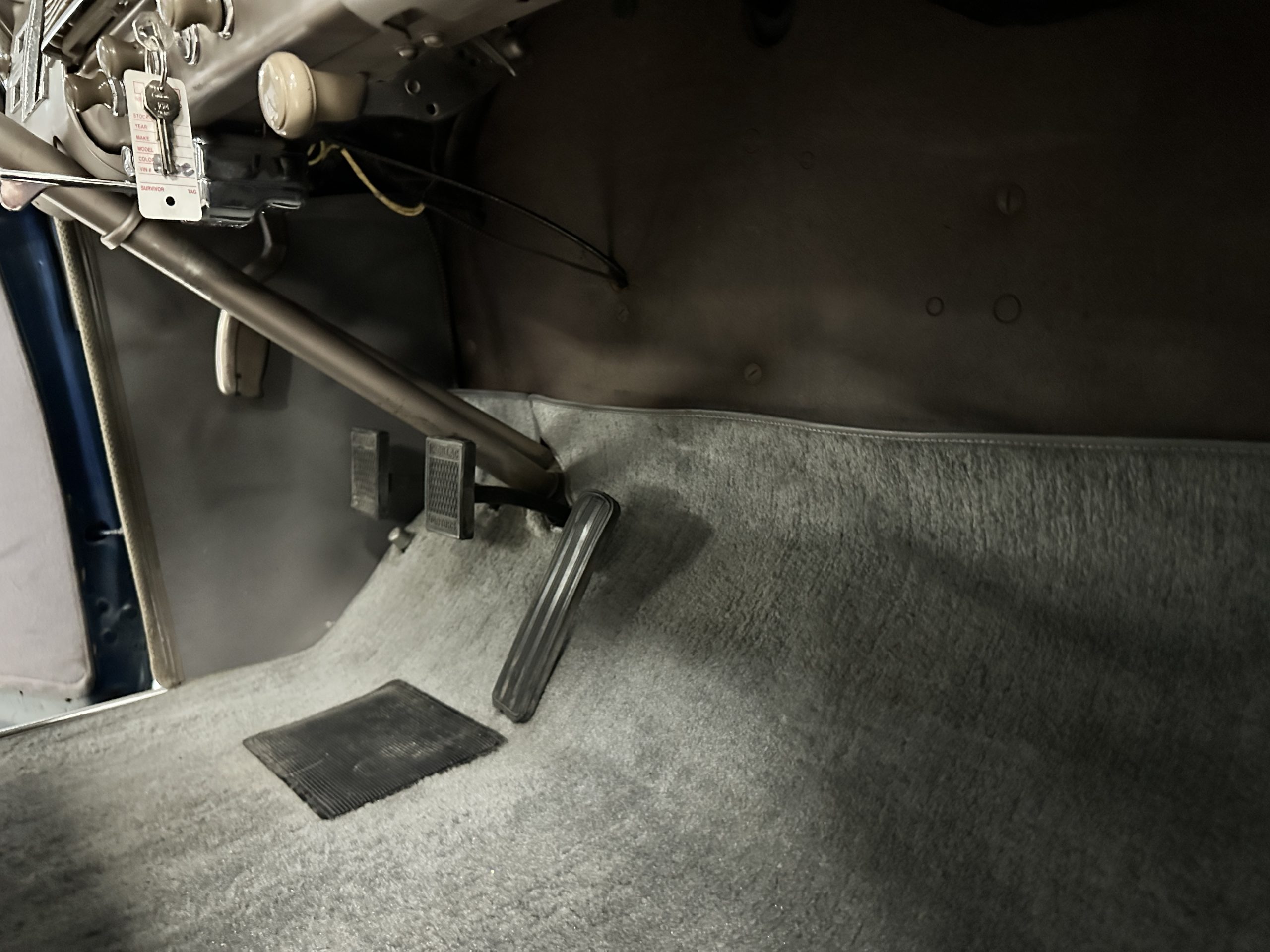 The interior is a correct gray Ribbed Cloth (Trim Code 33) and is very correct in its appearance and workmanship. The door panels are gray wool broadcloth. Behind the front seats are two jump seats, which would normally be referred to as an Opera Coupe. The carpet is a gray nylon that is a terrific color match to the upholstery. There is a well installed turn signal lever under the dash that is very well placed for ease of use. Overall, the interior presents well and has been redone over the years to appear correct.