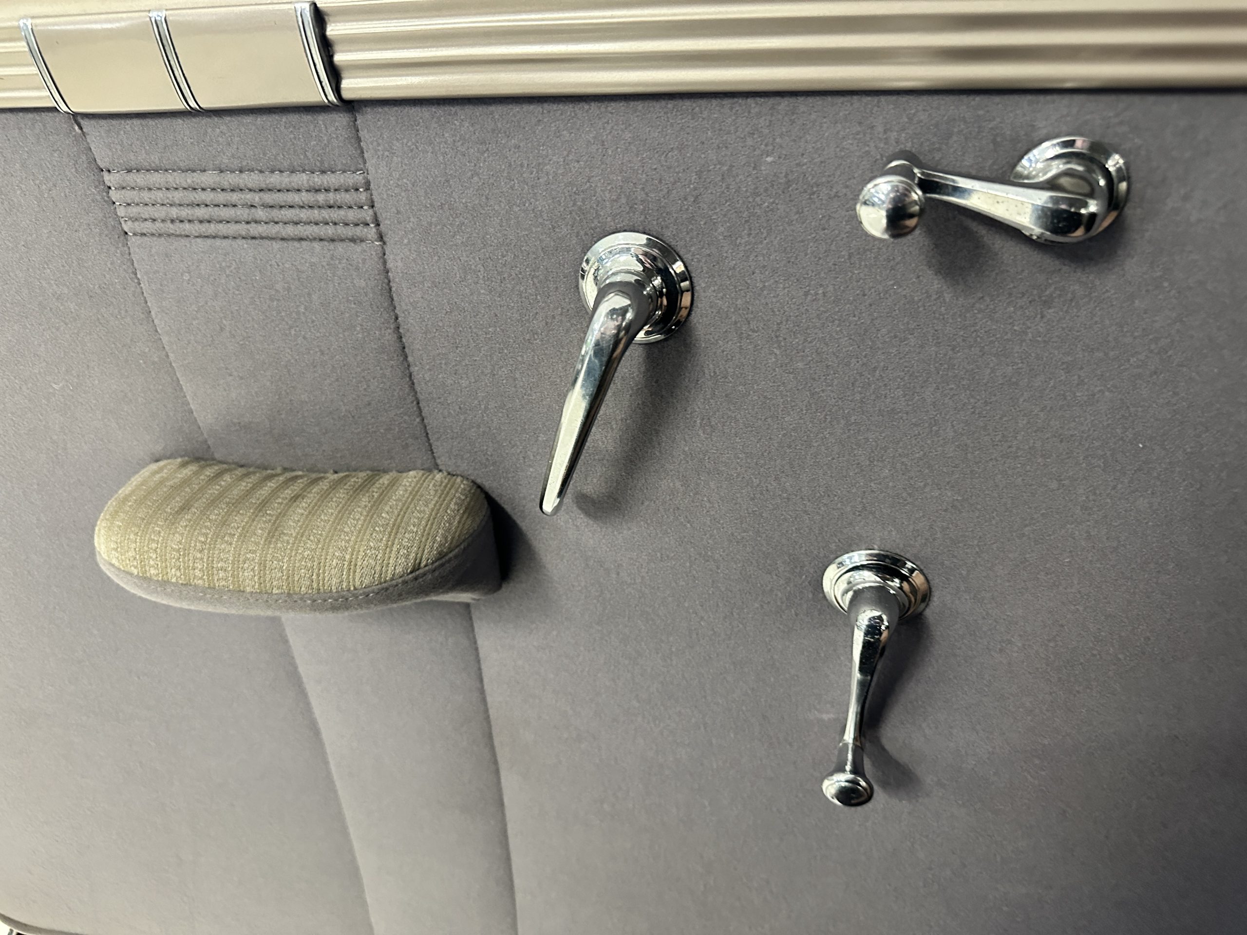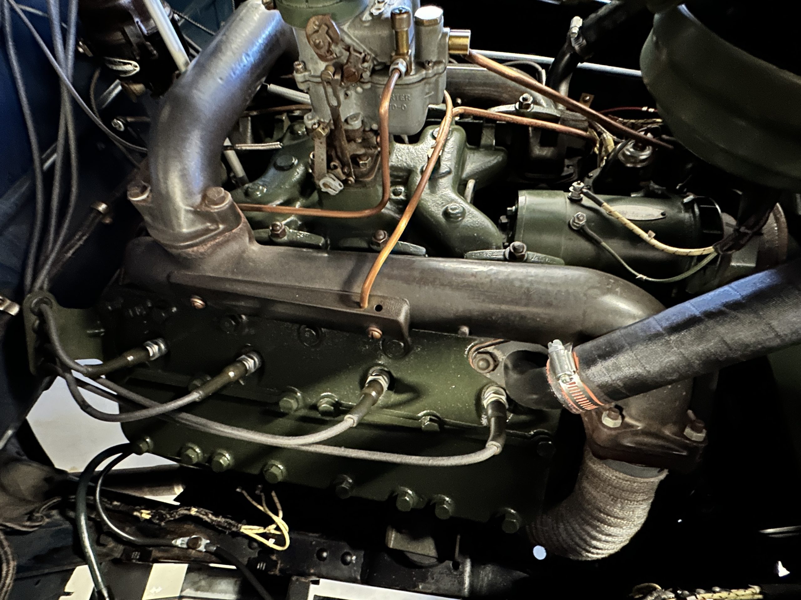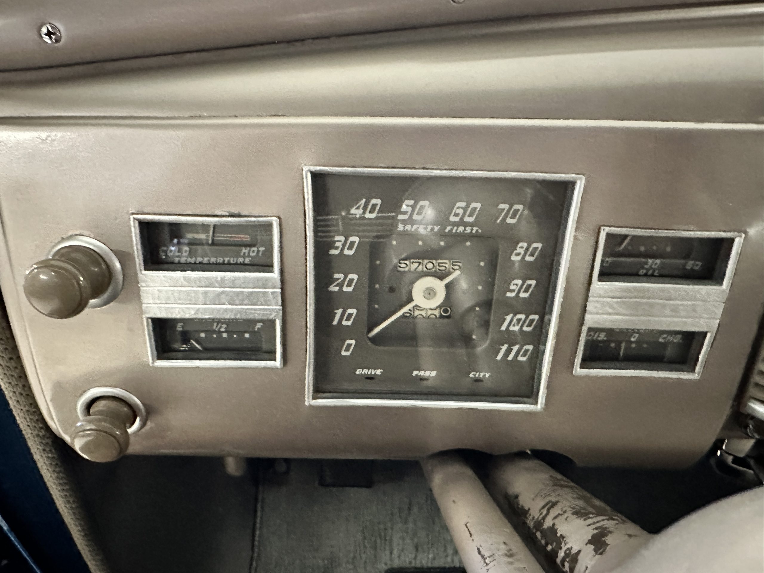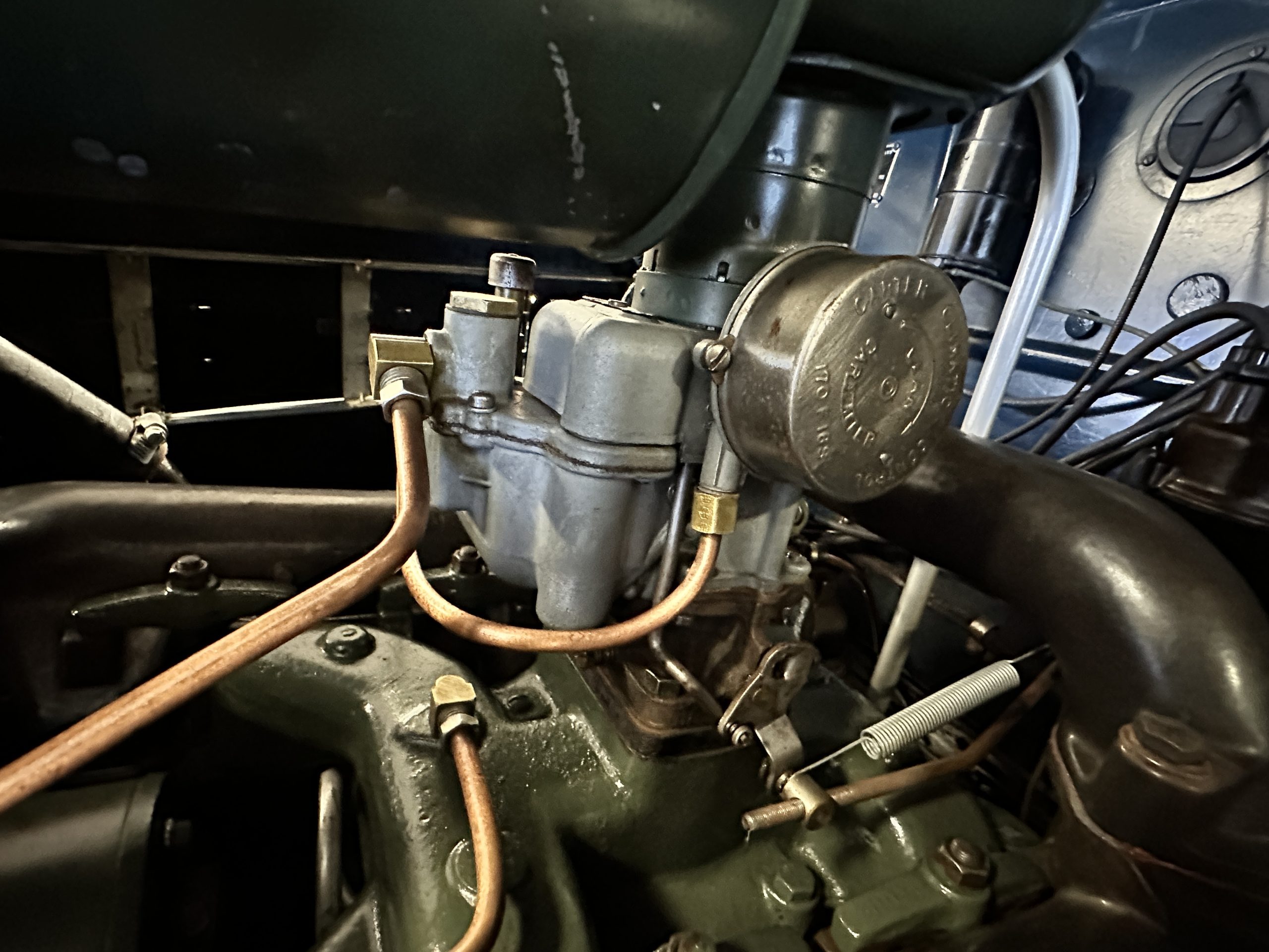 The interior is a correct gray Ribbed Cloth (Trim Code 33) and is very correct in its appearance and workmanship. The door panels are gray wool broadcloth. Behind the front seats are two jump seats, which would normally be referred to as an Opera Coupe. The carpet is a gray nylon that is a terrific color match to the upholstery. There is a well installed turn signal lever under the dash that is very well placed for ease of use. Overall, the interior presents well and has been redone over the years to appear correct.
