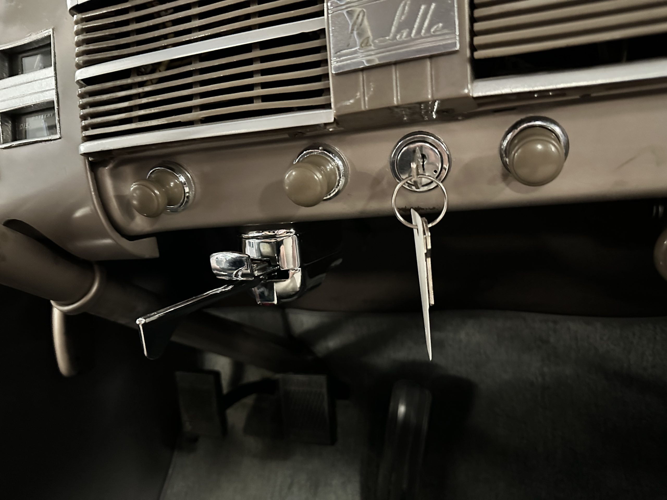 The wiring harness, gas tank, shocks and bushings have all recently been replaced. Mechanically, this LaSalle is ready to be toured in and enjoyed. In the trunk is the spare wheel, jack and wheel wrench. The original trunk mat is present and in wonderful original condition. This LaSalle comes complete with a huge collection of manuals, spare parts and accessories as well as file history.