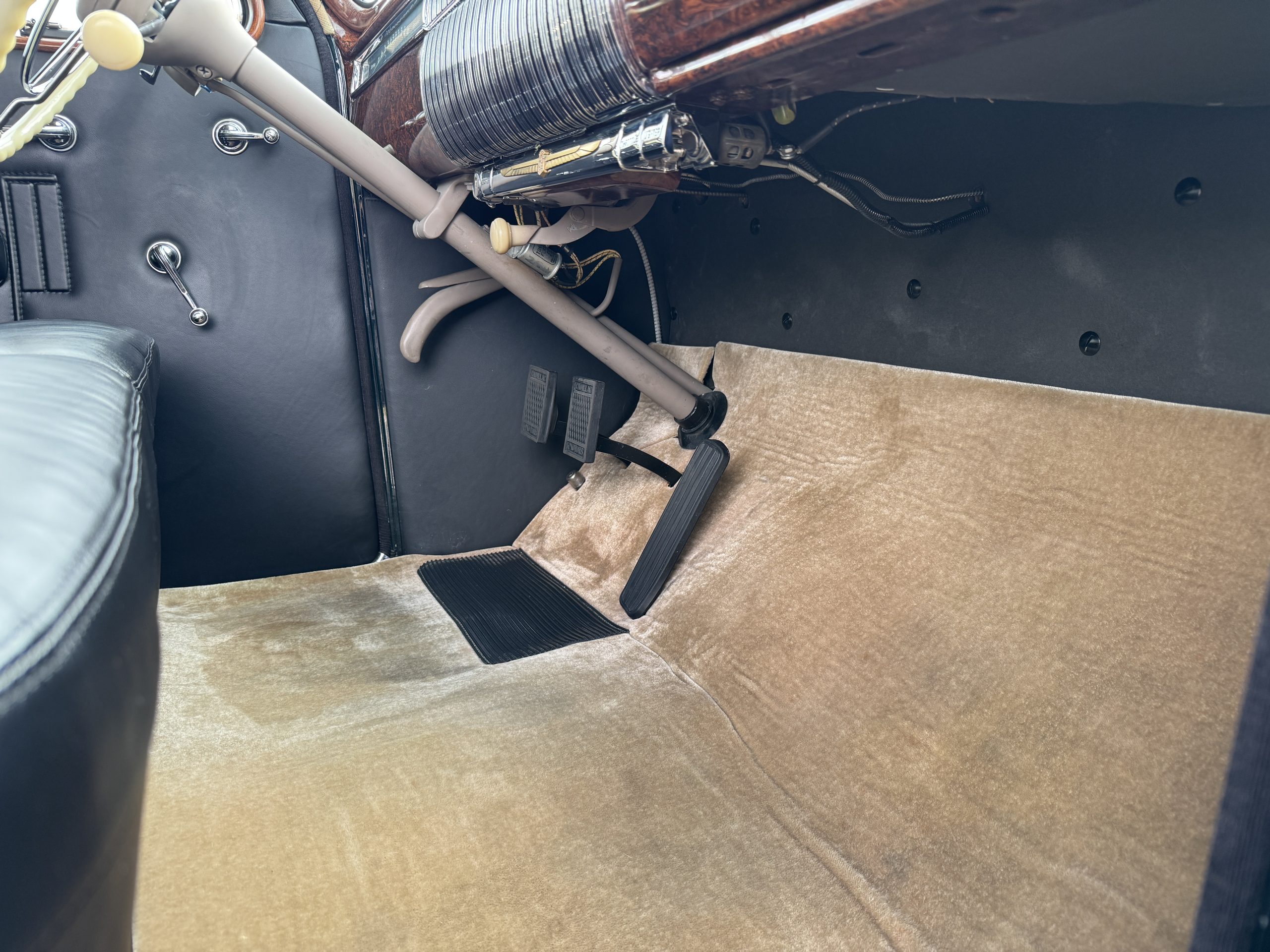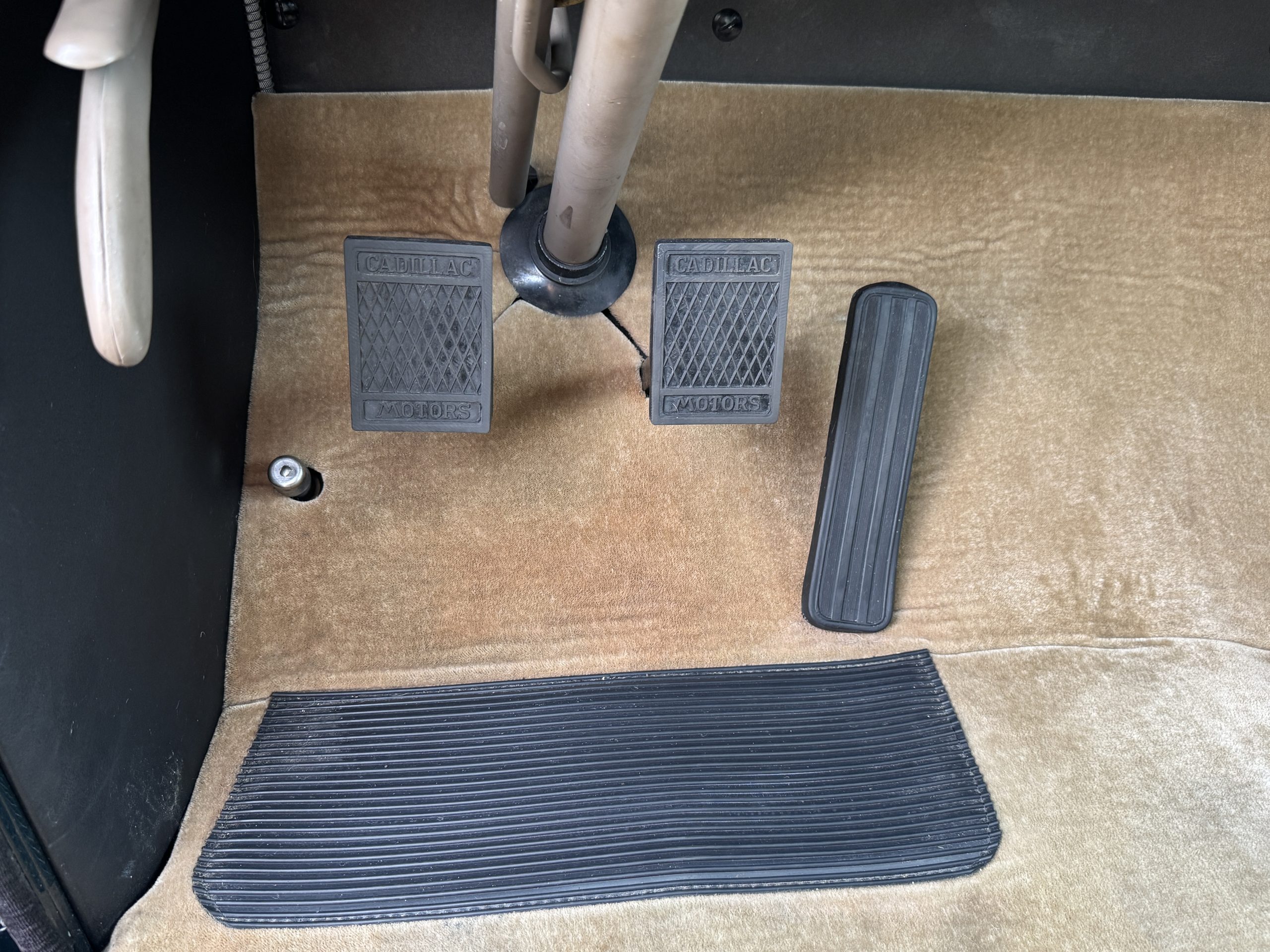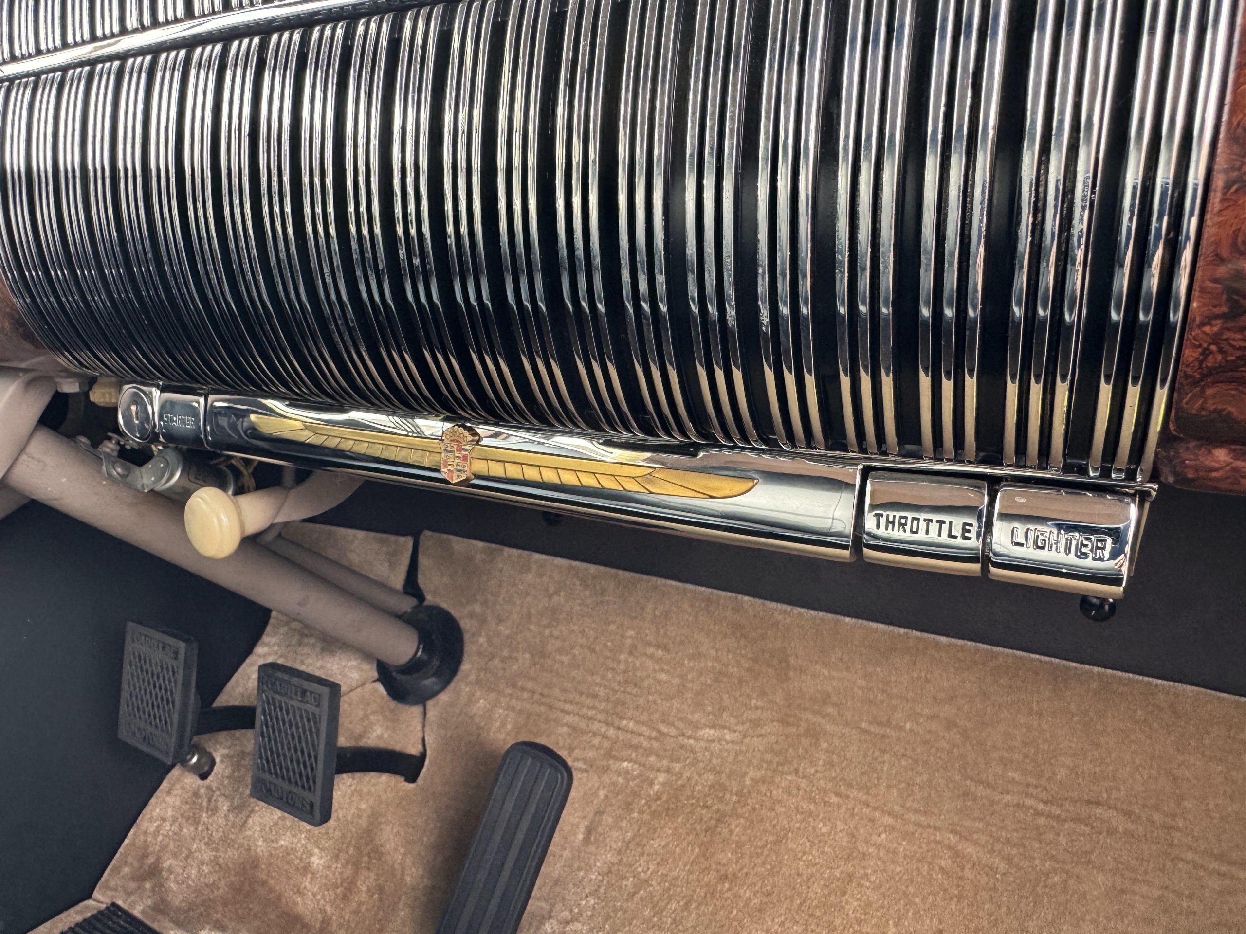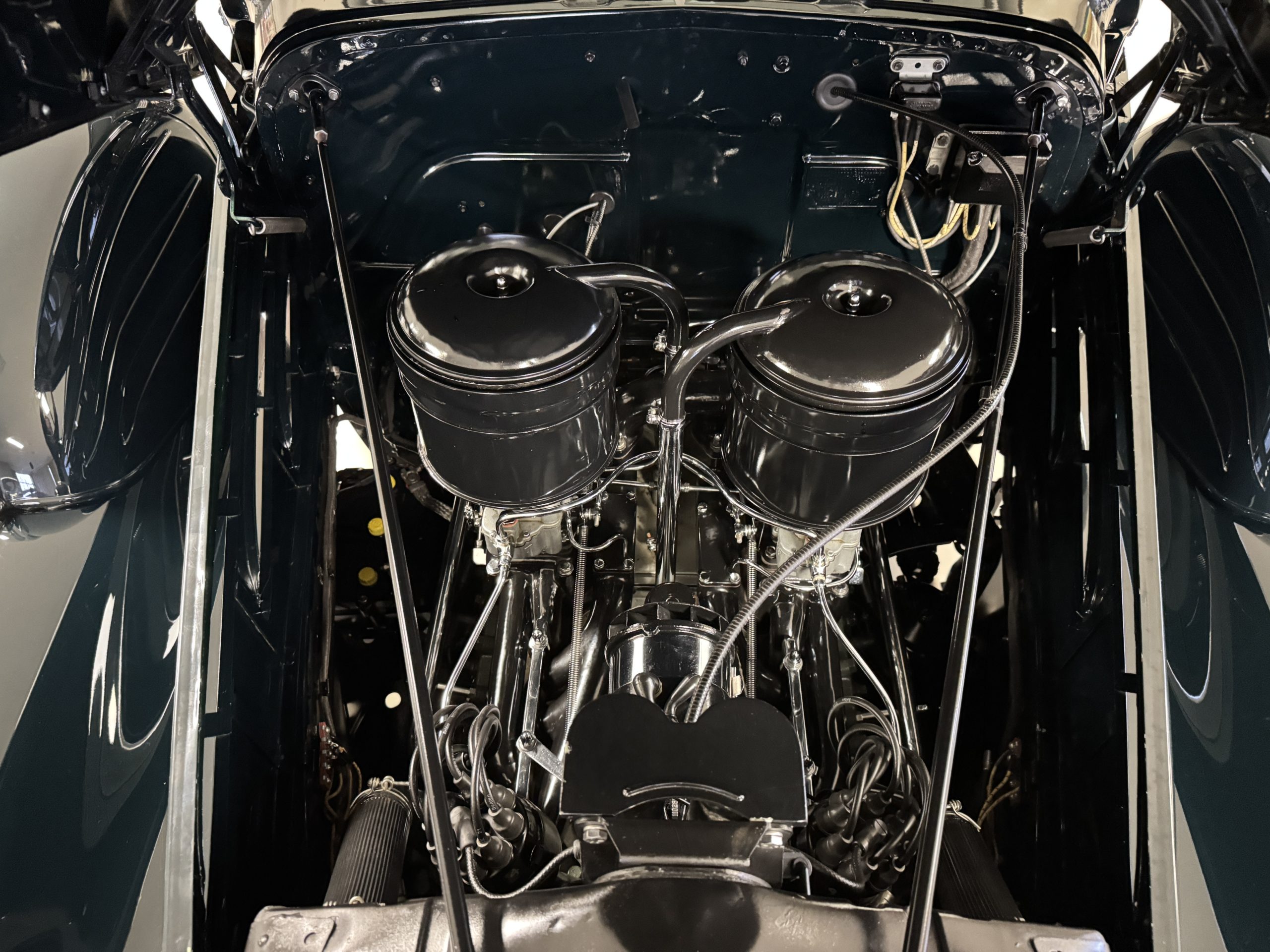 Power is provided by the original Series 90 L-head 431 cubic inch V-16 engine, equipped with dual carburetors, twin fuel pumps, and twin distributors, paired with the original three-speed synchromesh manual transmission with column shift. The drivetrain has been thoroughly cleaned, serviced, and maintained since the restoration, delivering the hallmark smoothness and near-silent operation that defined Cadillac’s V-16 flagship. Independent front suspension with coil springs, semi-elliptic rear leaf springs, and four-wheel hydraulic drum brakes provide a composed, “boat-like” ride quality, with the steering box rebuilt in 2024. This Cadillac remains a mechanically sorted and historically significant example of prewar American engineering at its absolute peak.